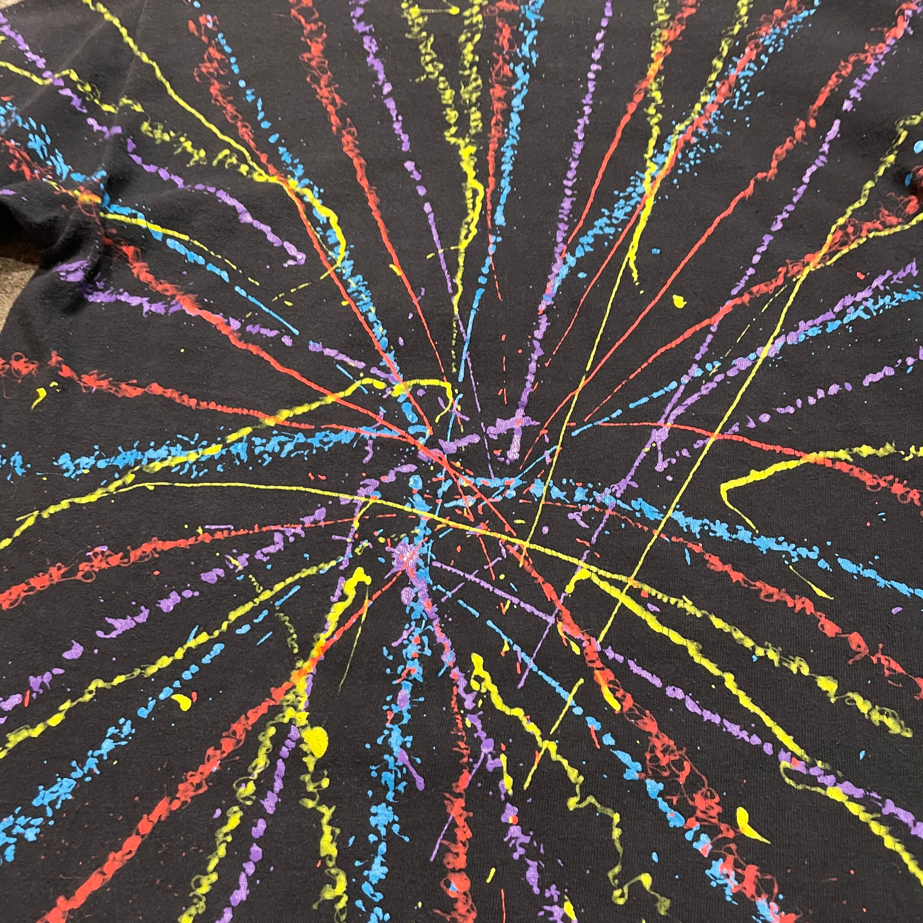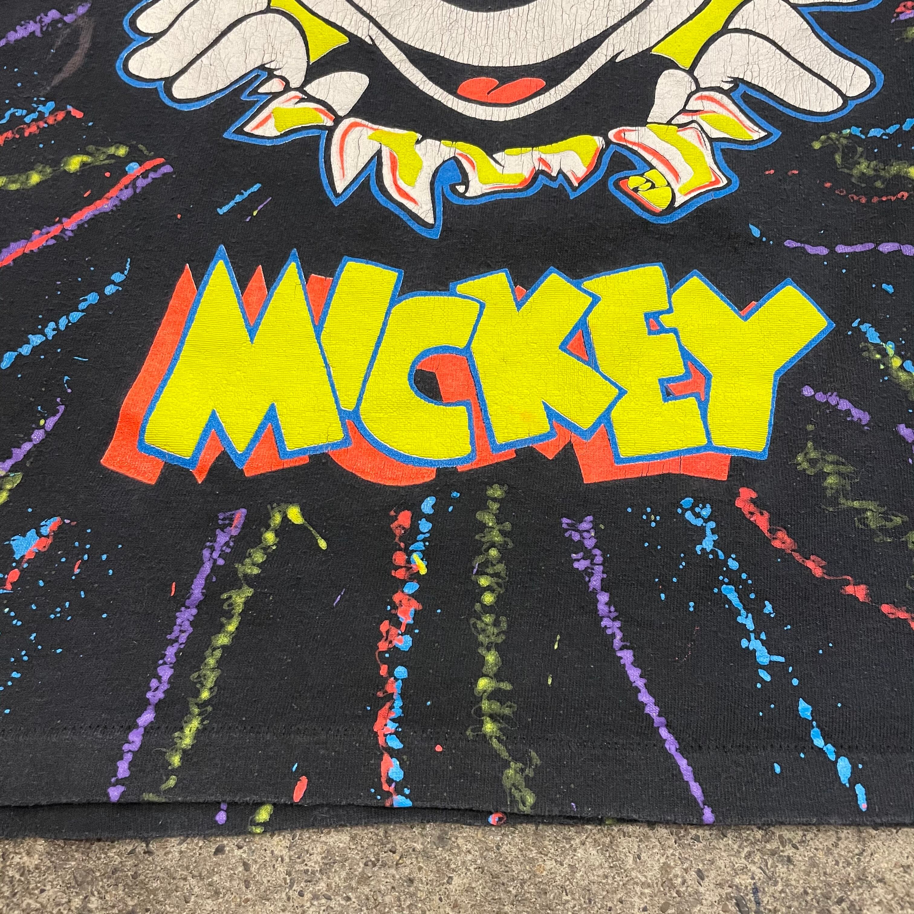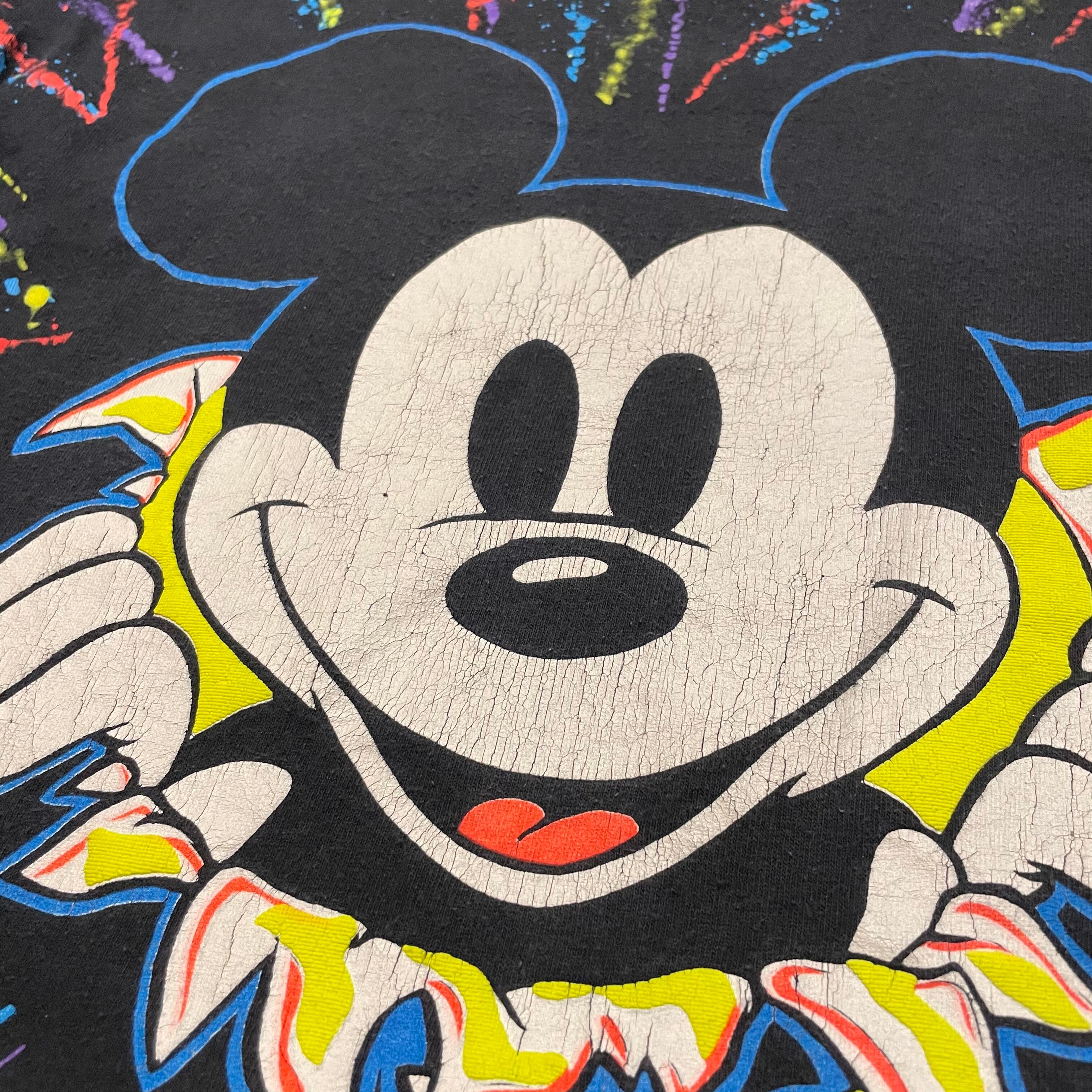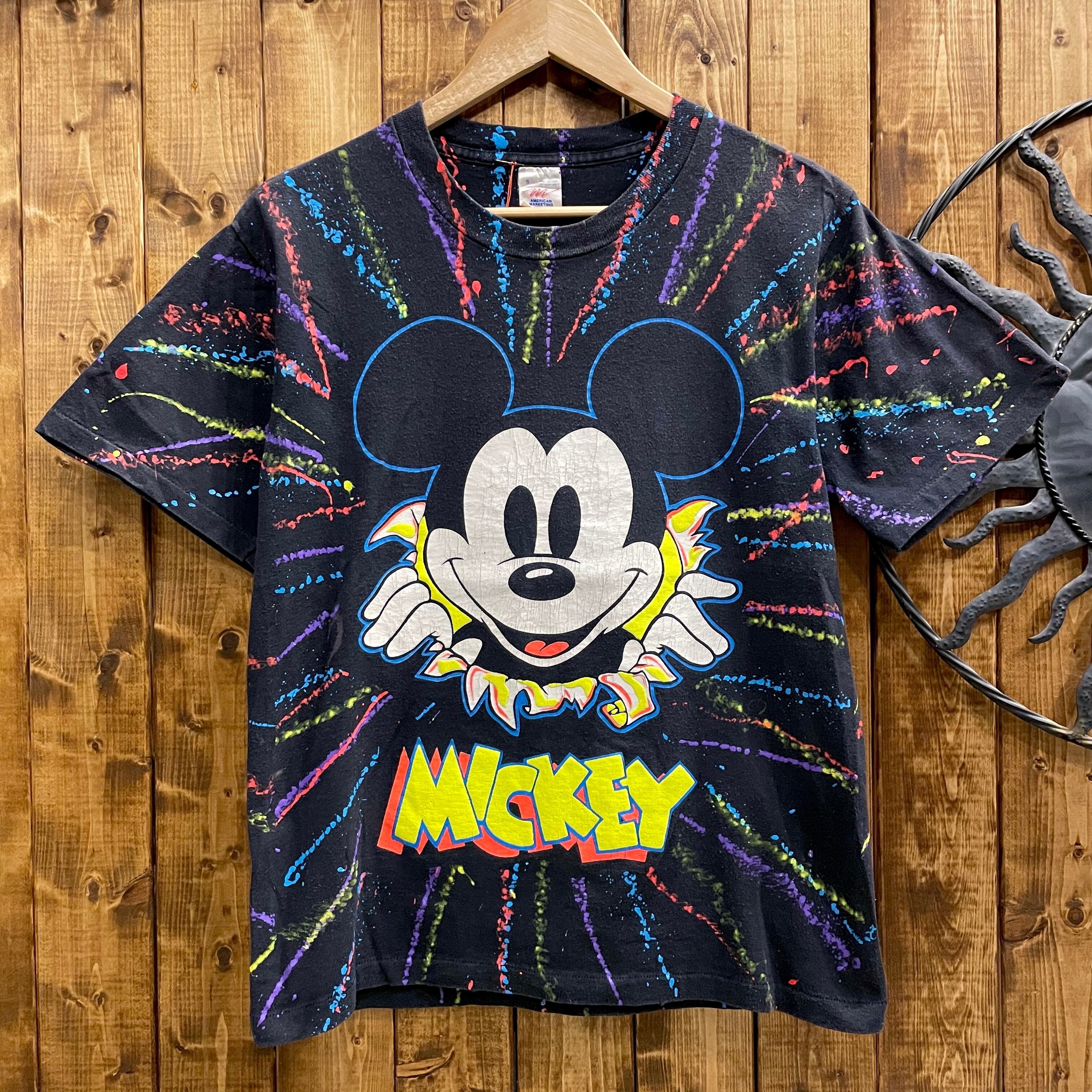 ネオンカラーのペイントがインパクトがあってかわいいミッキープリントのTシャツです。