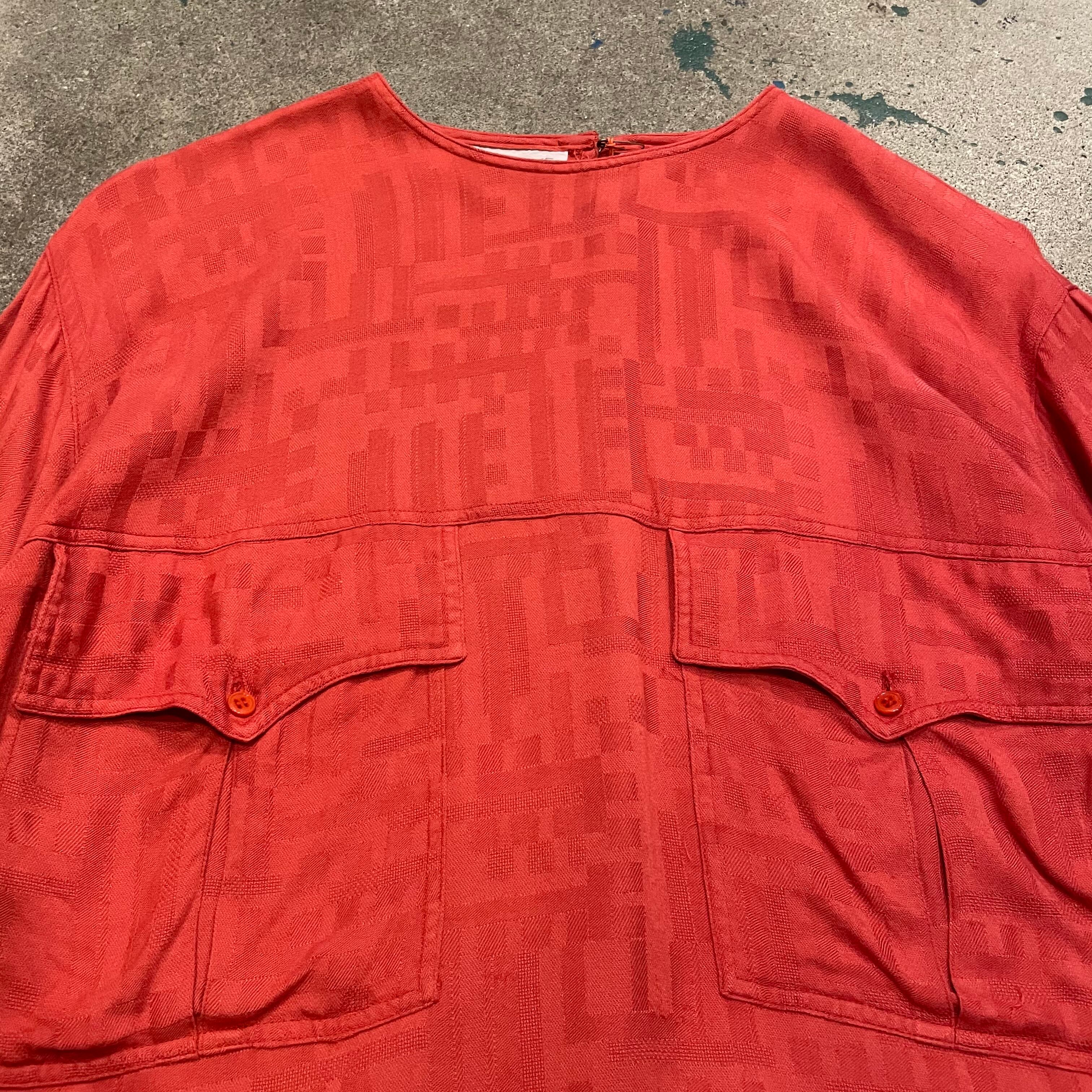 模様が織られていてシンプルすぎず、大きなパッチポケットが2つ付いていてかわいいです。