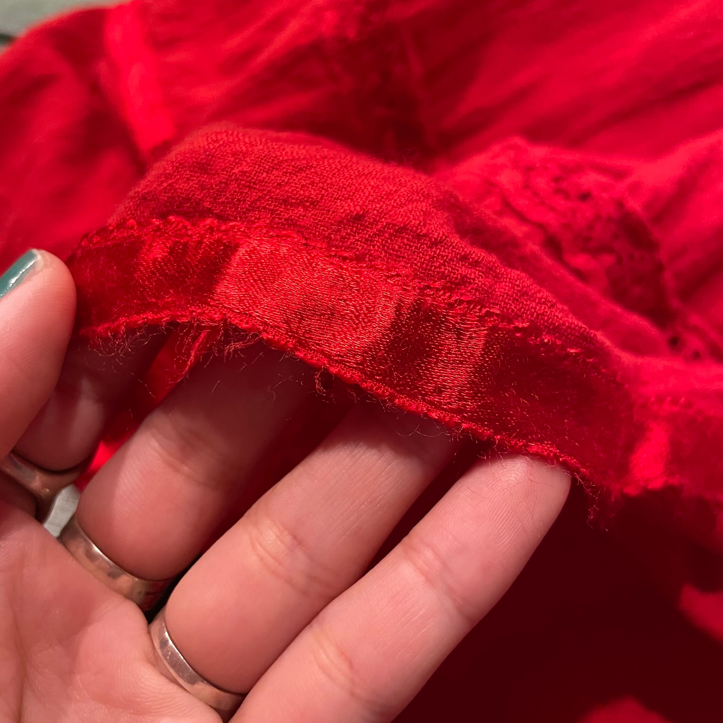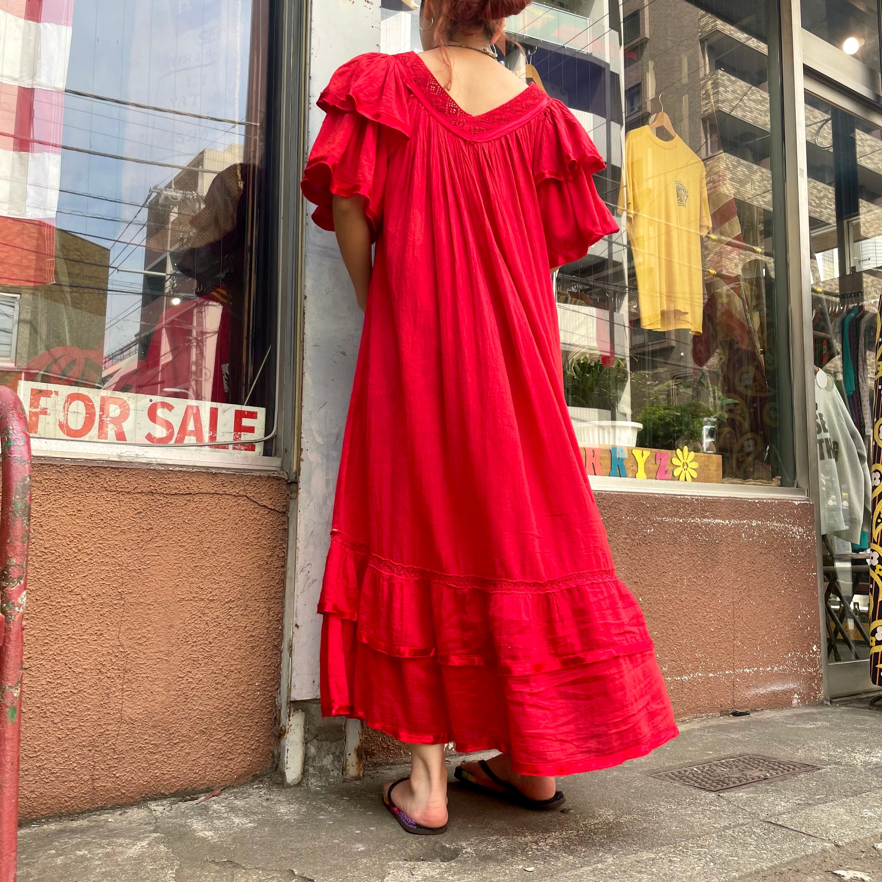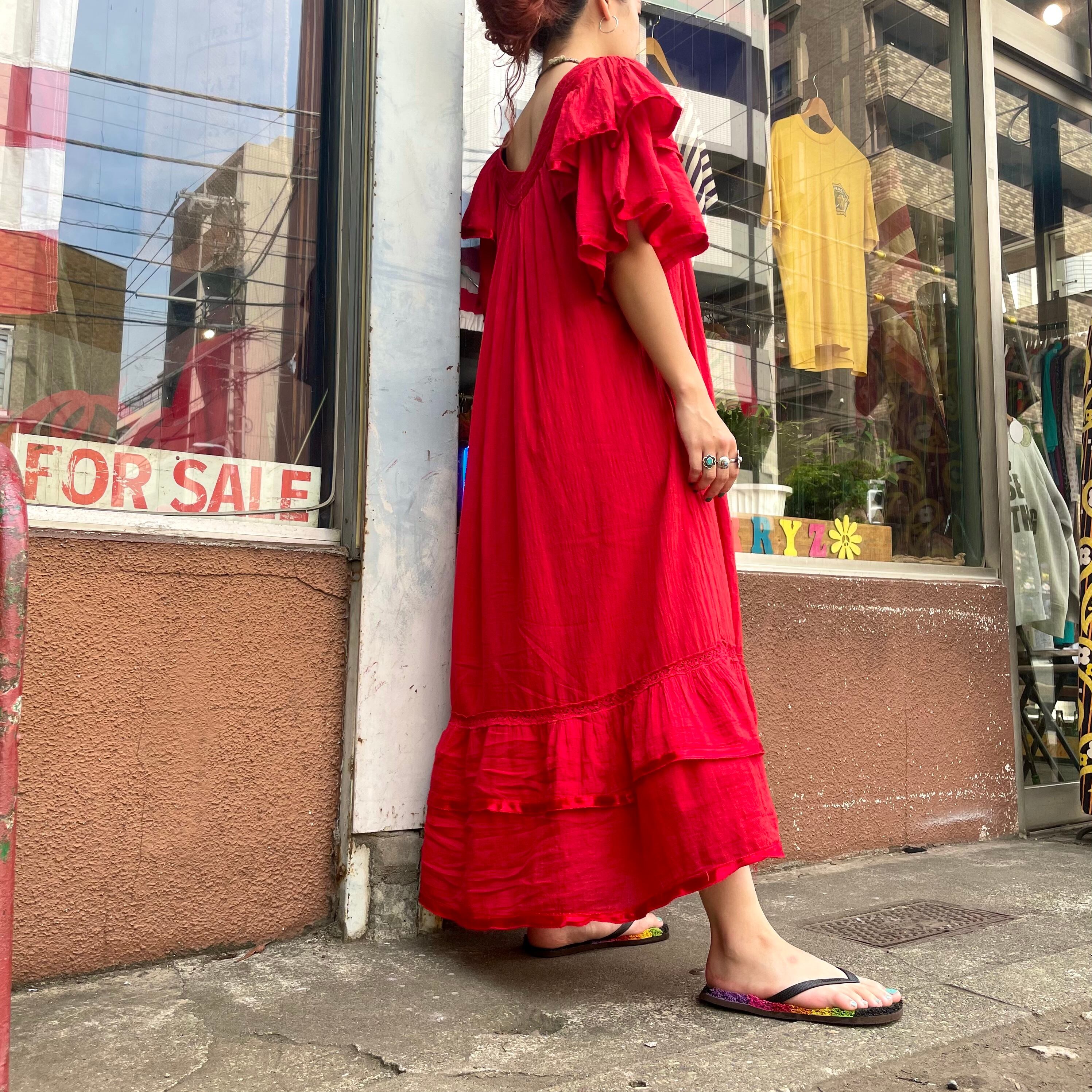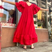 袖のボリュームがとてもかわいいワンピースです。真っ赤で潔くて良いですね。