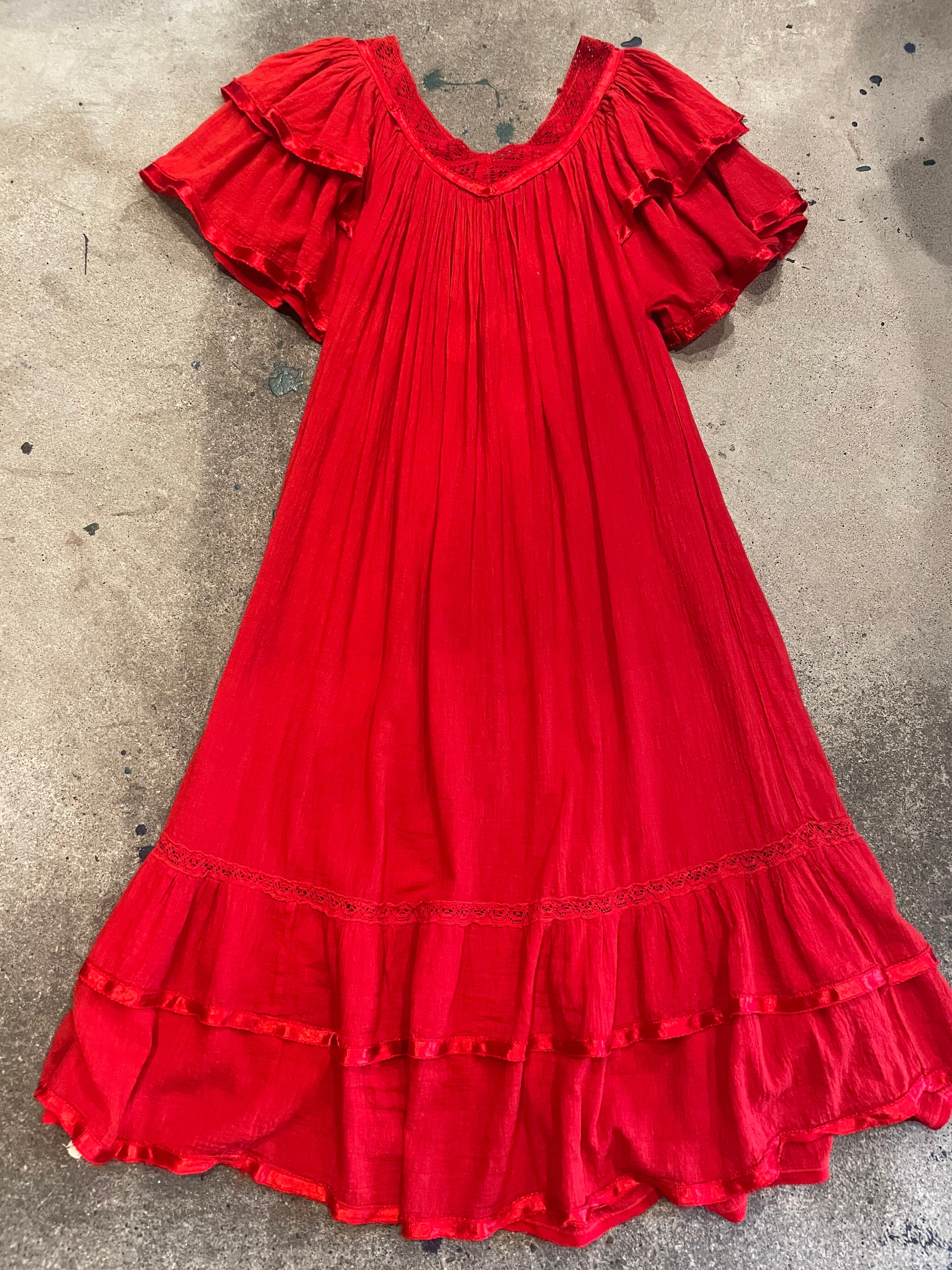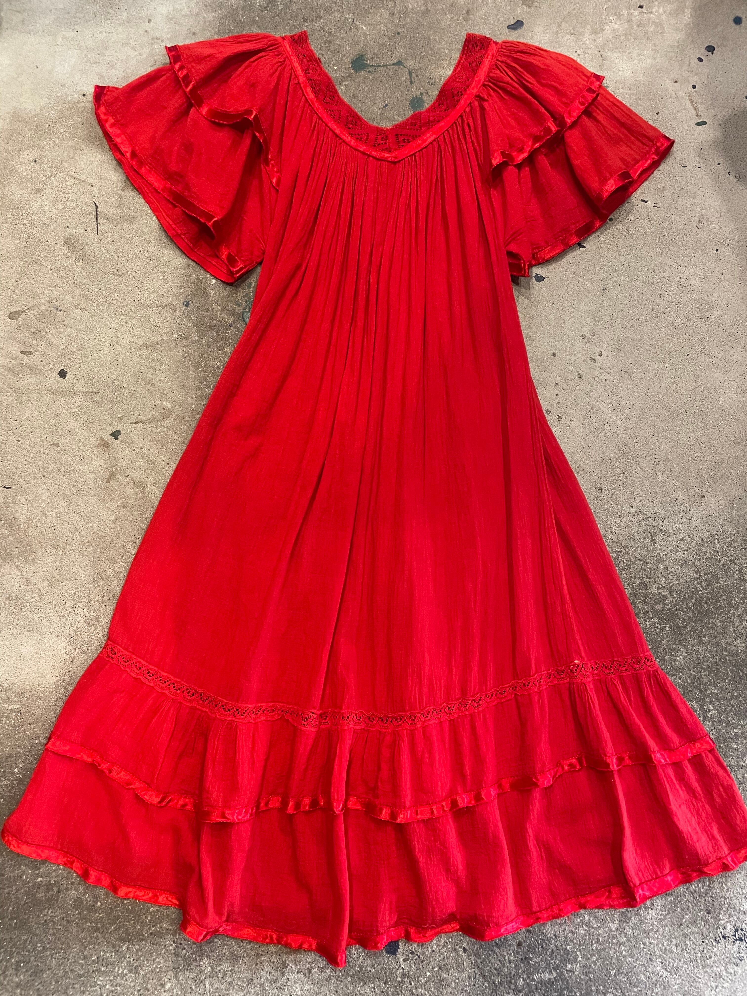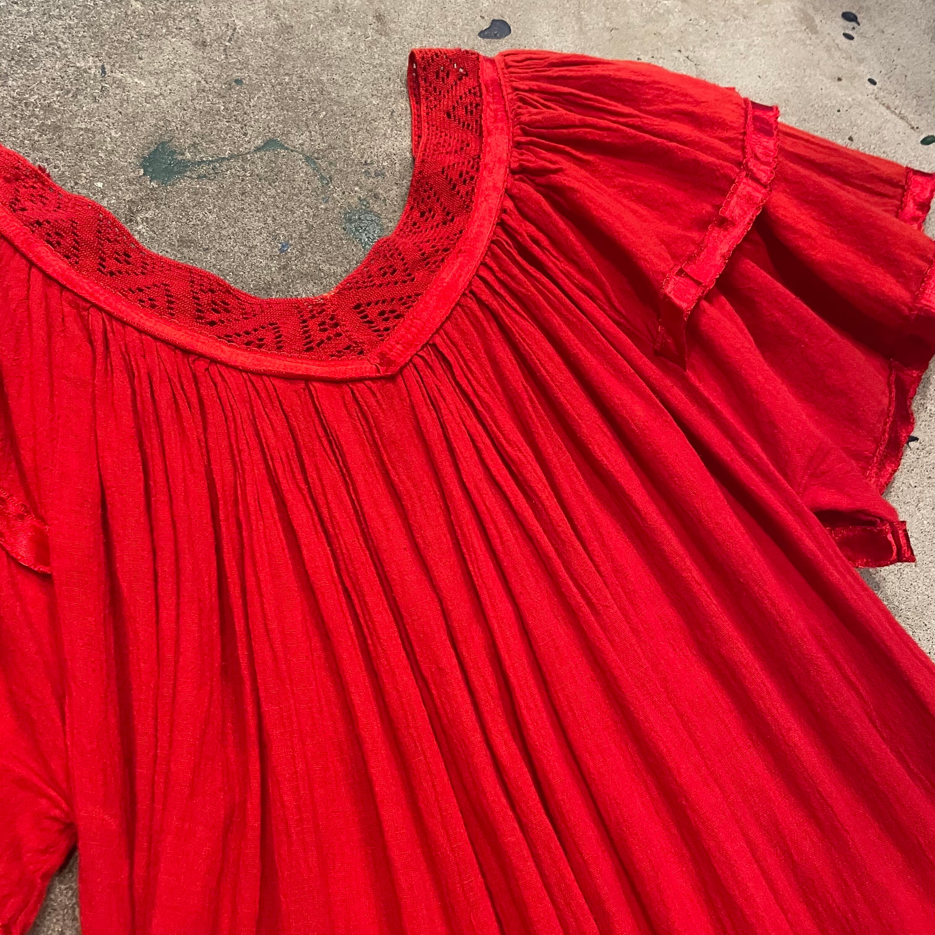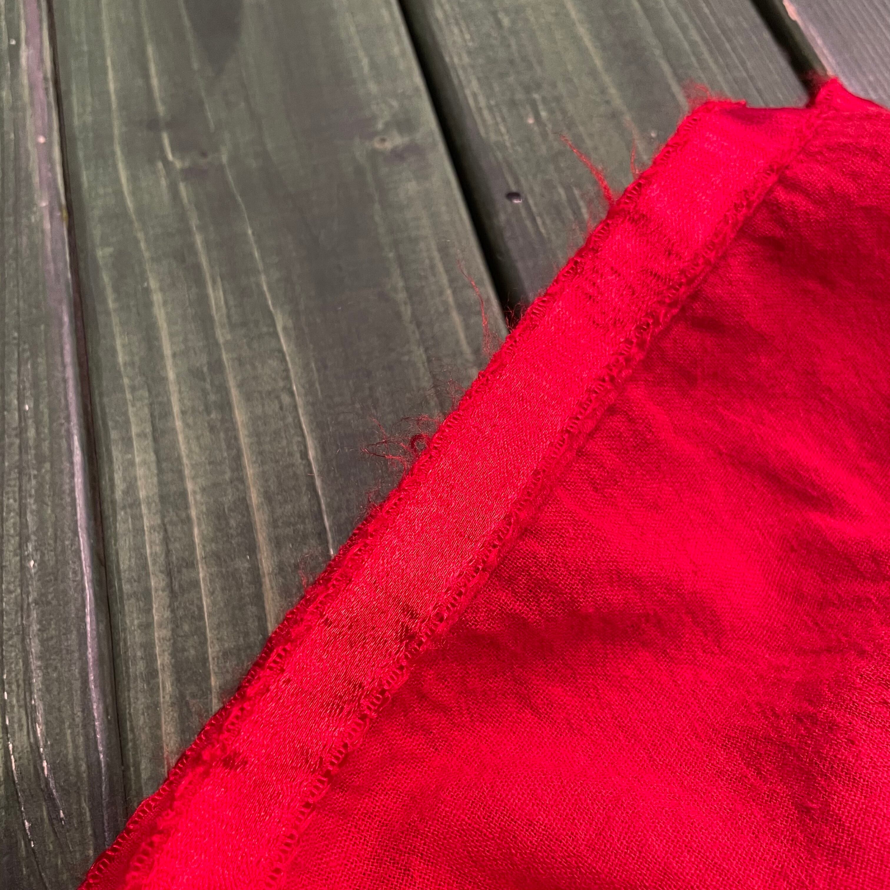 袖のボリュームがとてもかわいいワンピースです。真っ赤で潔くて良いですね。