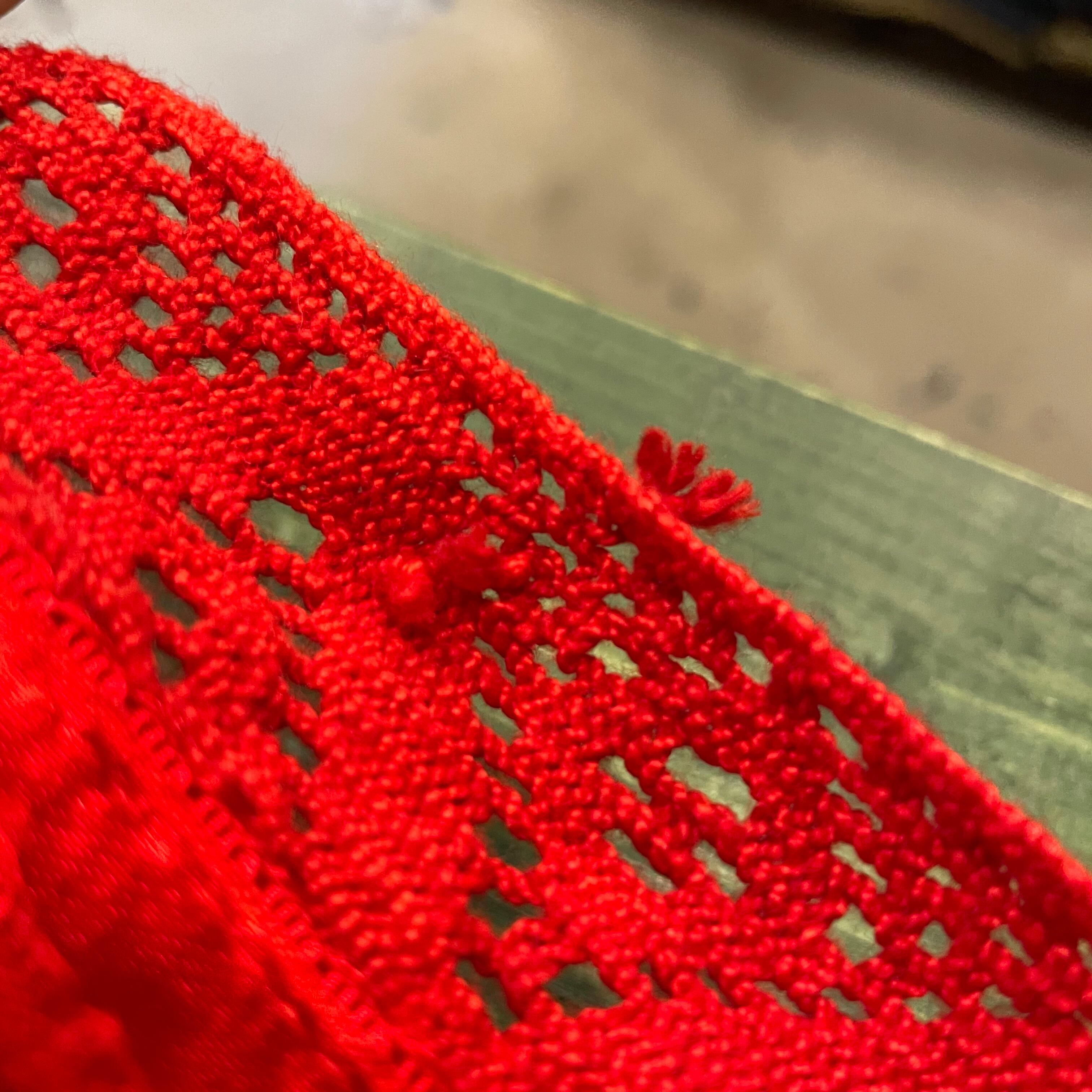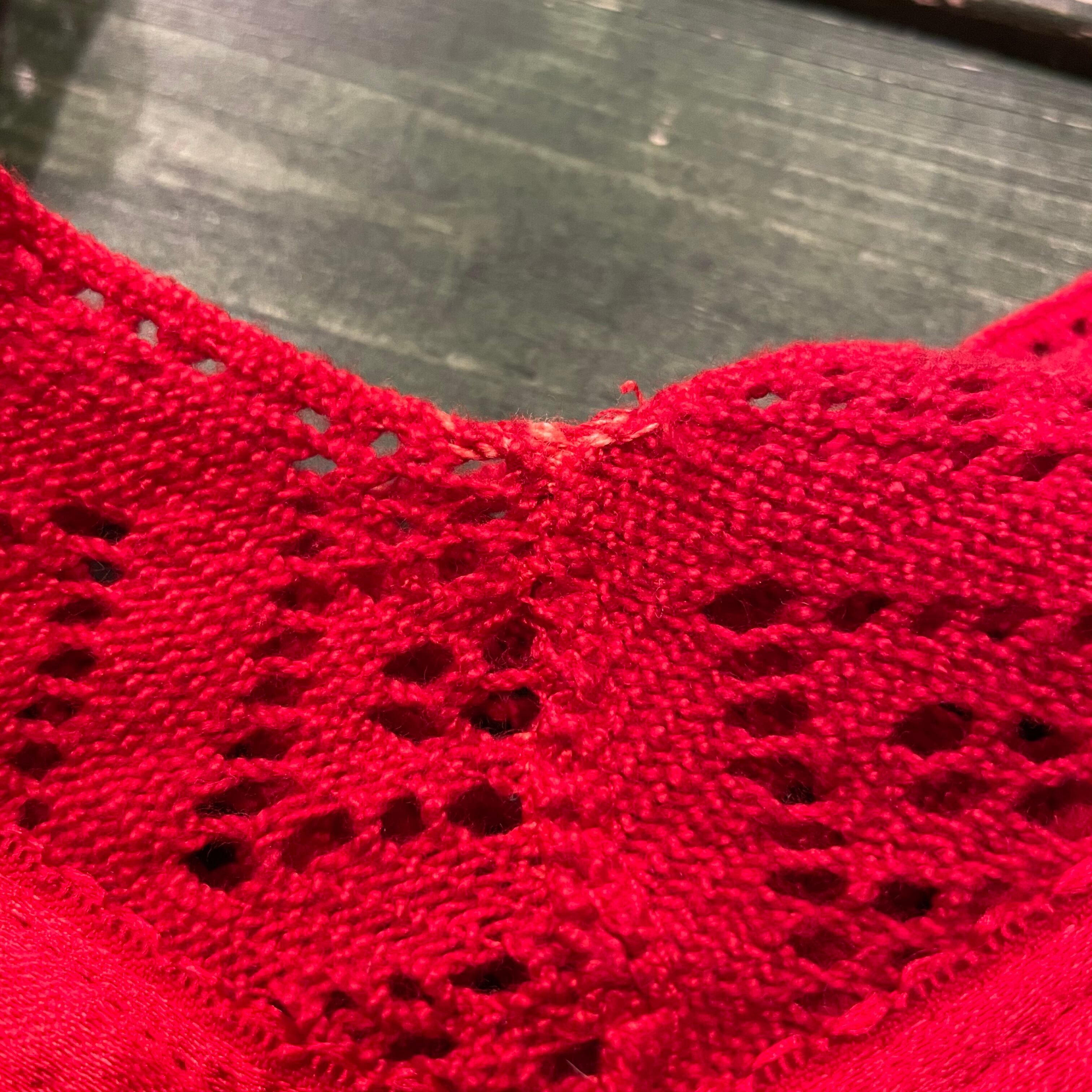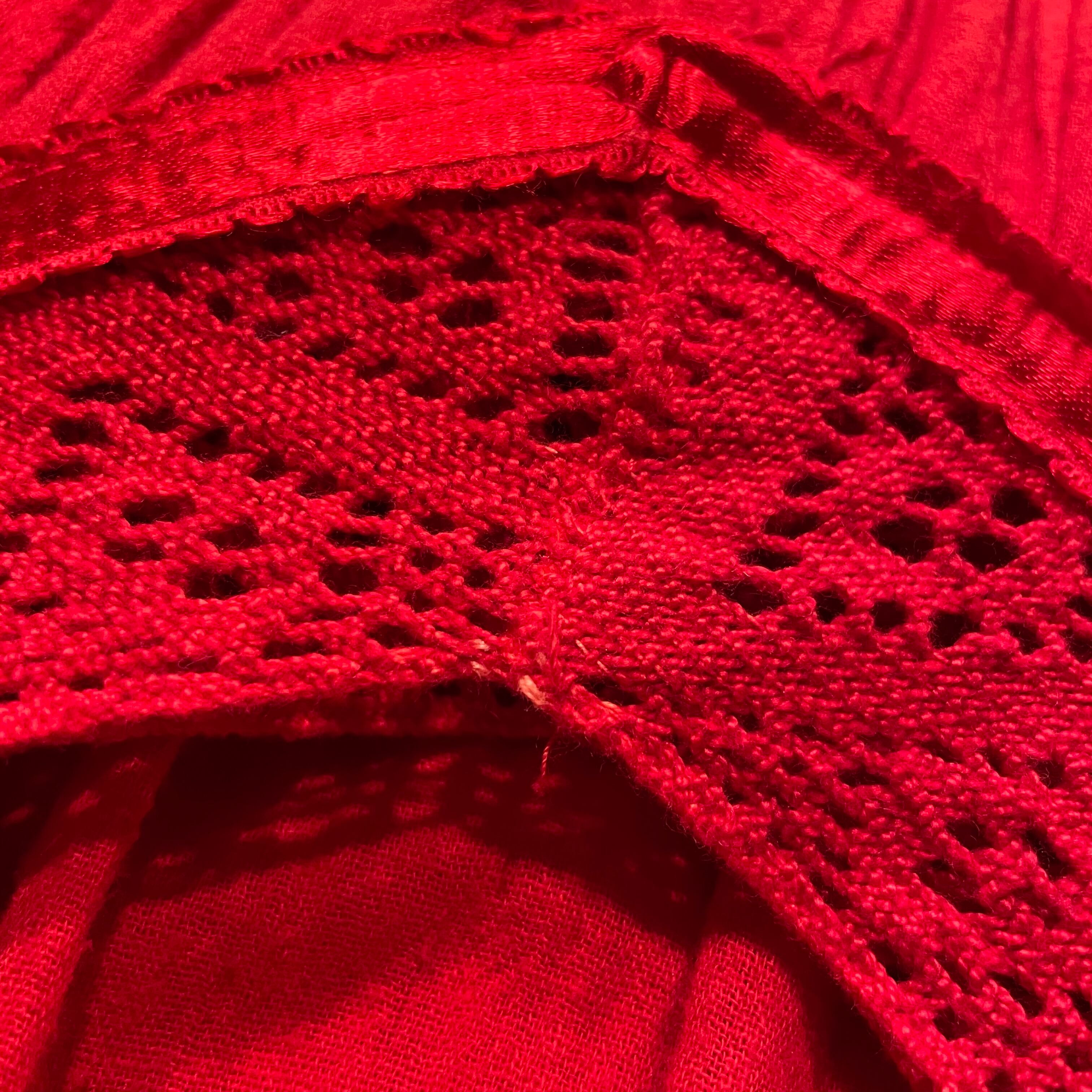染まりきらず白っぽい部分、レースに糸のつなぎ目のような部分、サテンリボンの毛羽立ち等があります。使用感のある商品ですので古着にご理解のある方のご購入をお願い致します。