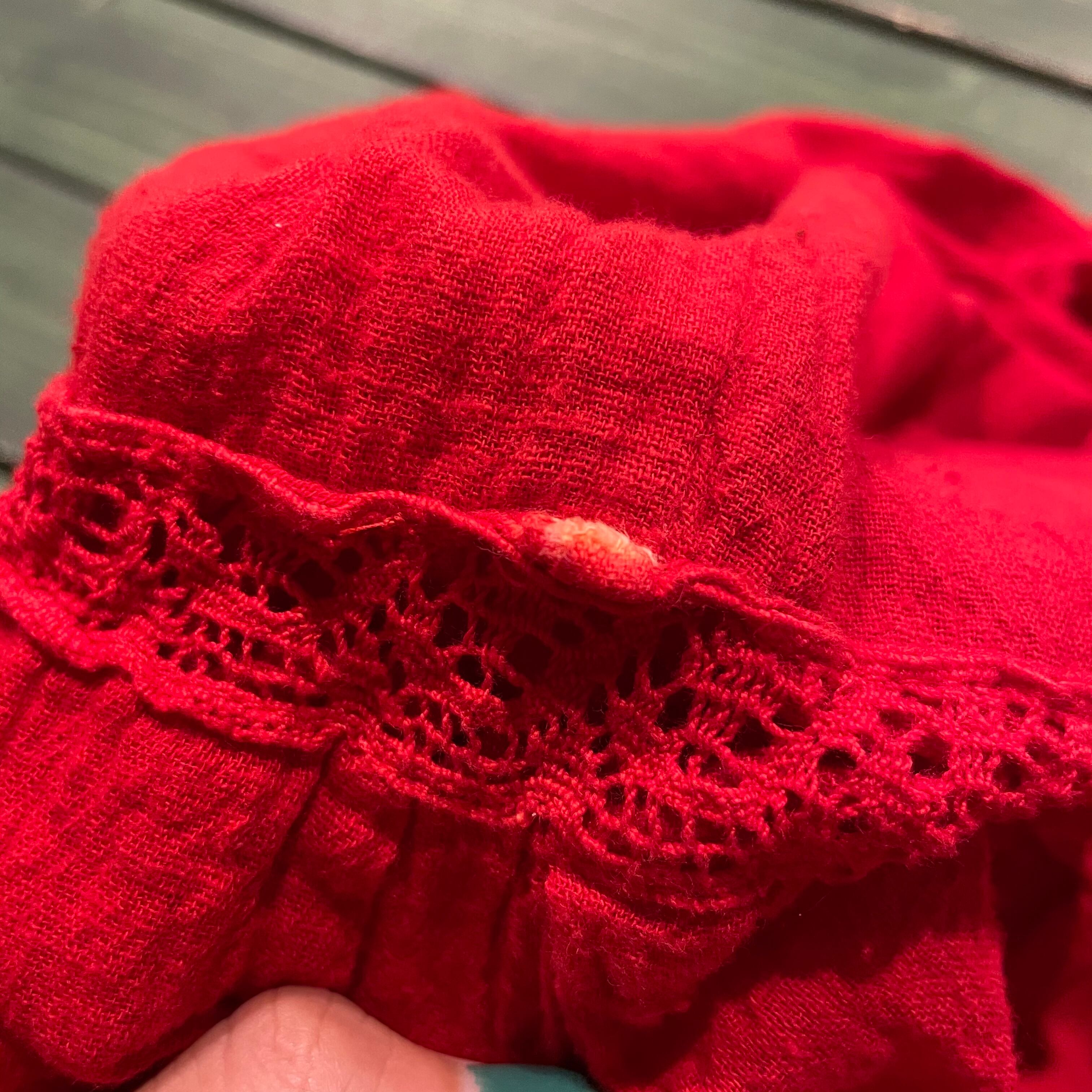 柔らかいコットンガーゼのような生地感で、袖や胸元にたっぷりギャザーがよっていて素敵です。