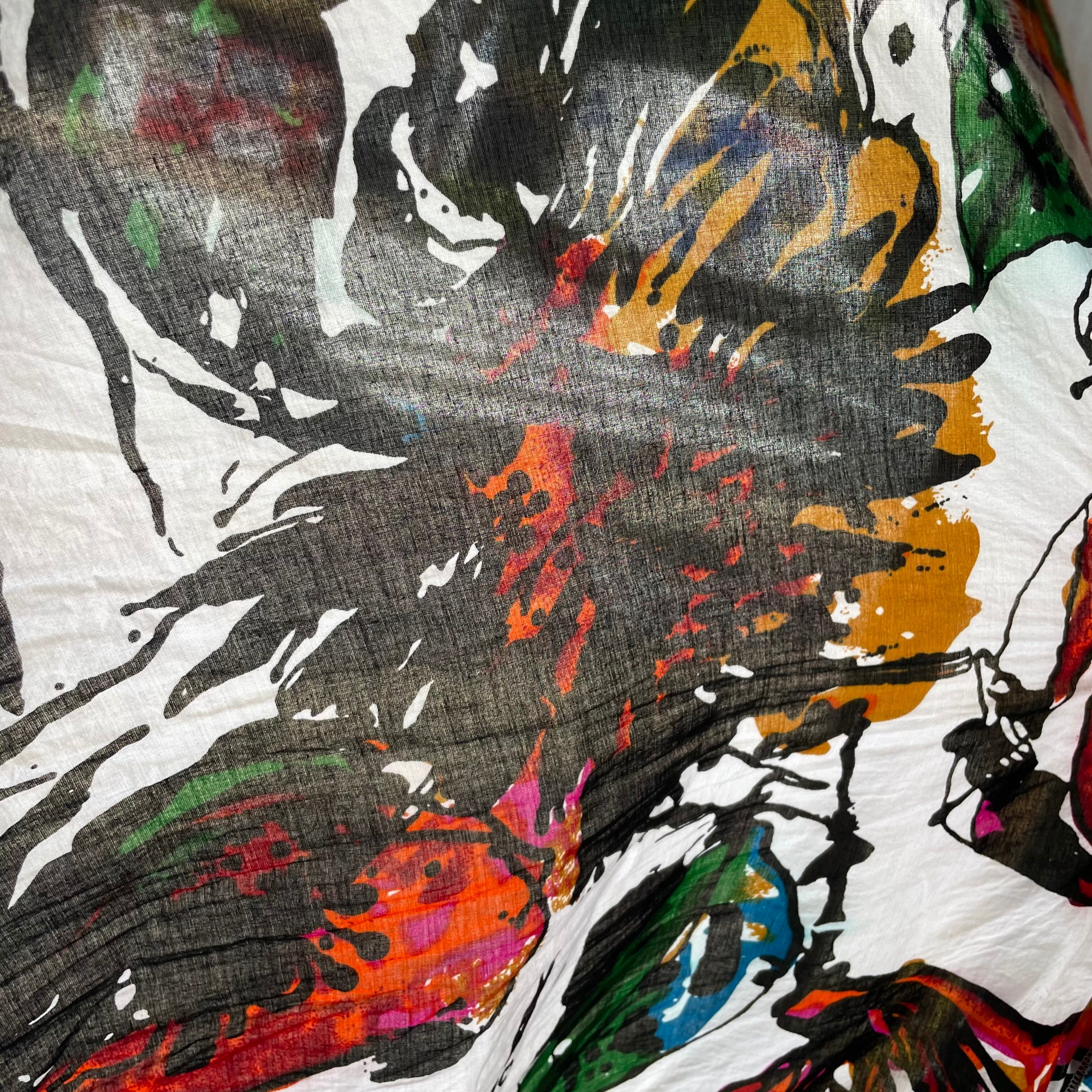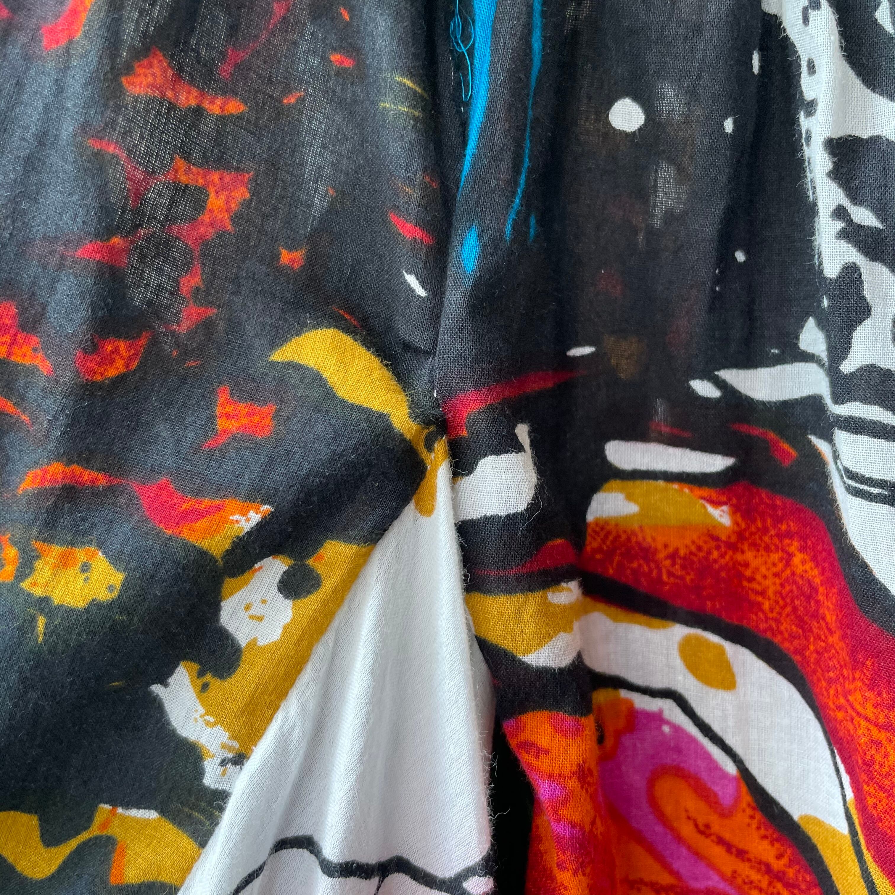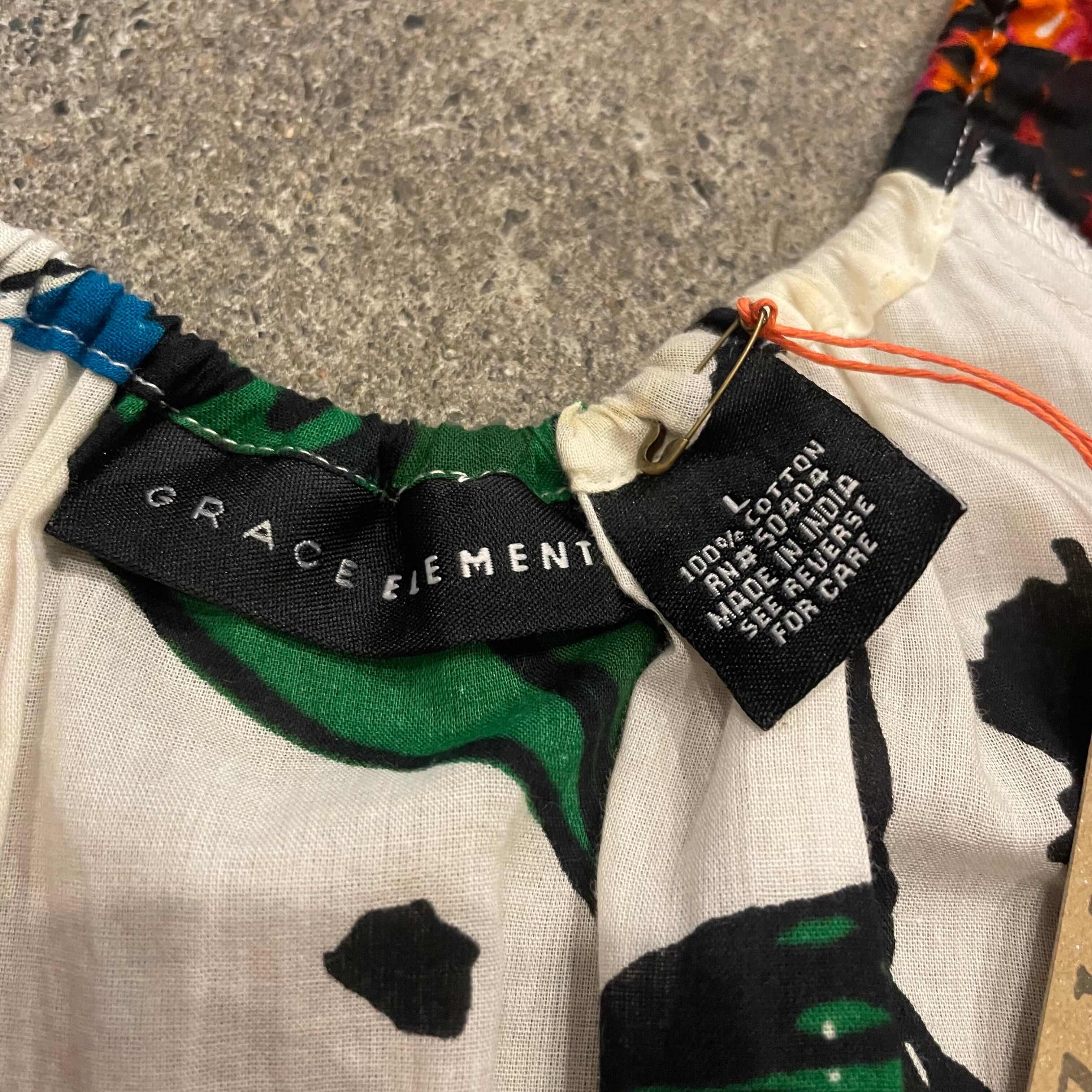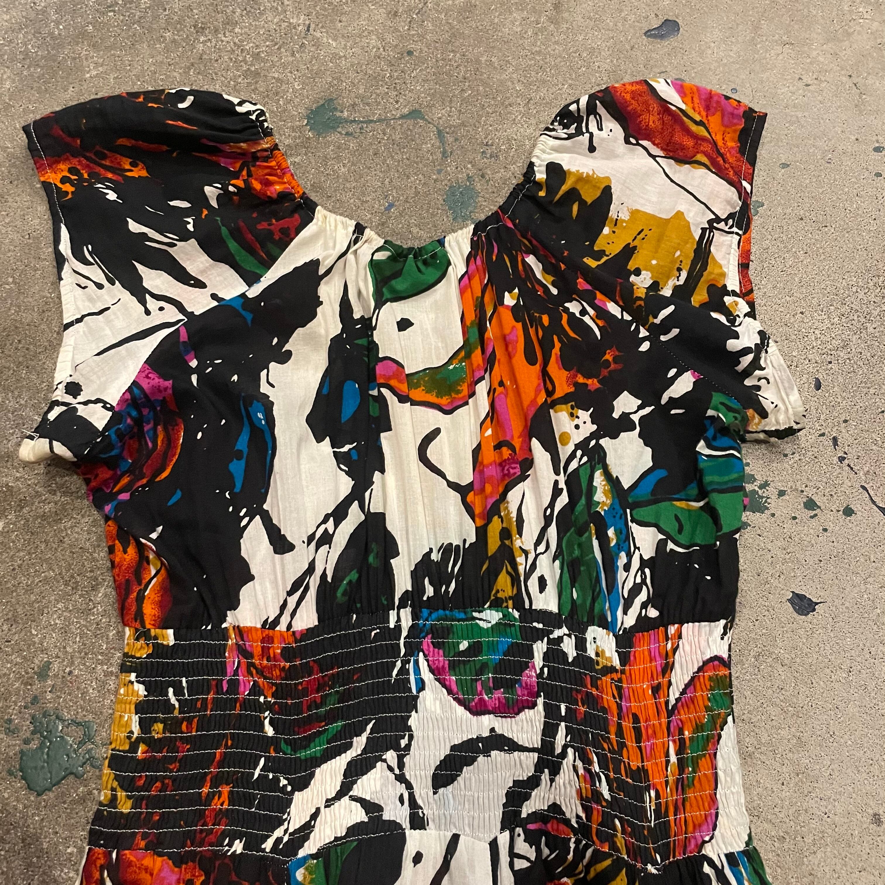白地に植物なのか果物なのか素敵な柄のワンピースです。かなり薄手のコットンでスカート部分にはかなりのボリュームがあり、ヒラヒラと風になびいてとてもかわいいシルエットです。