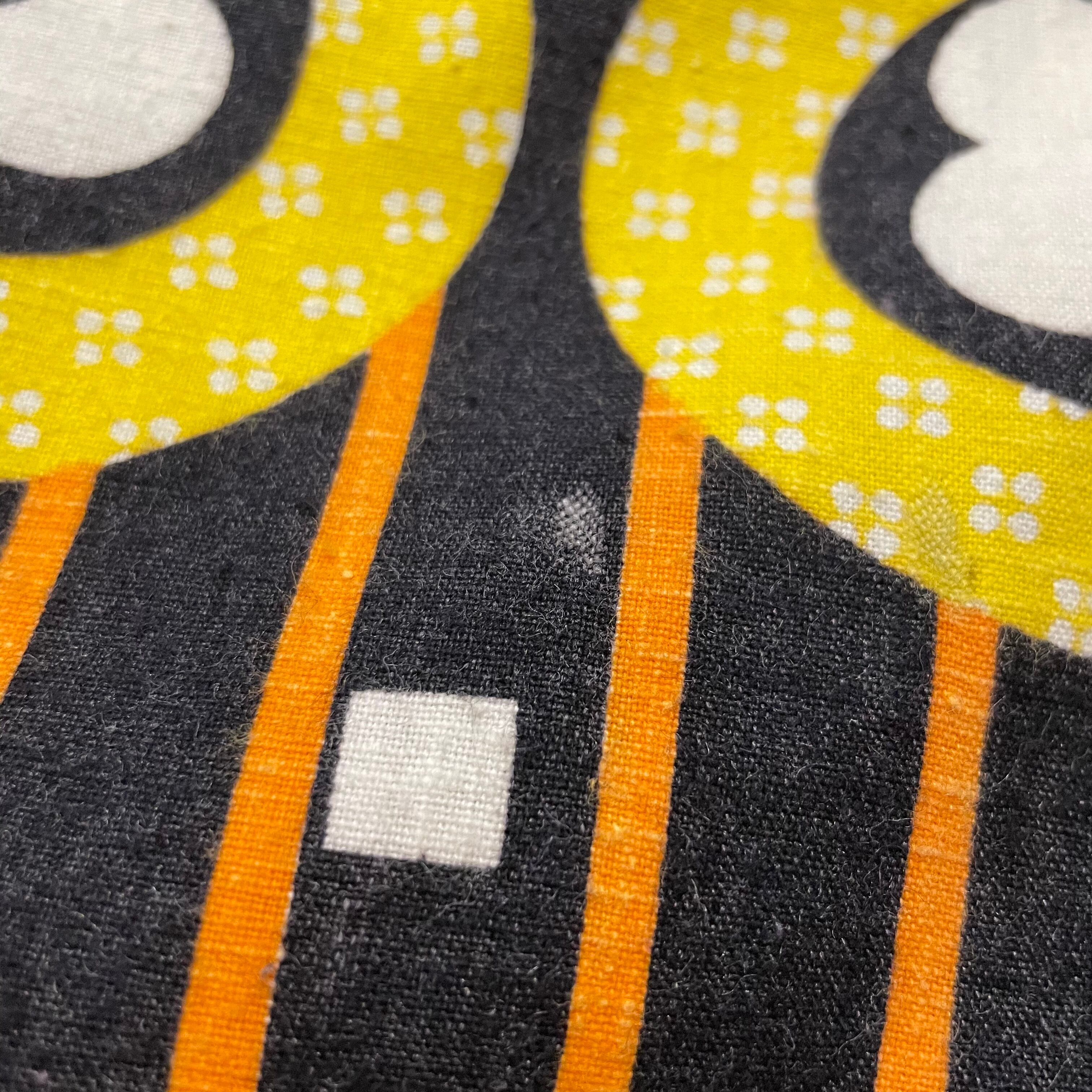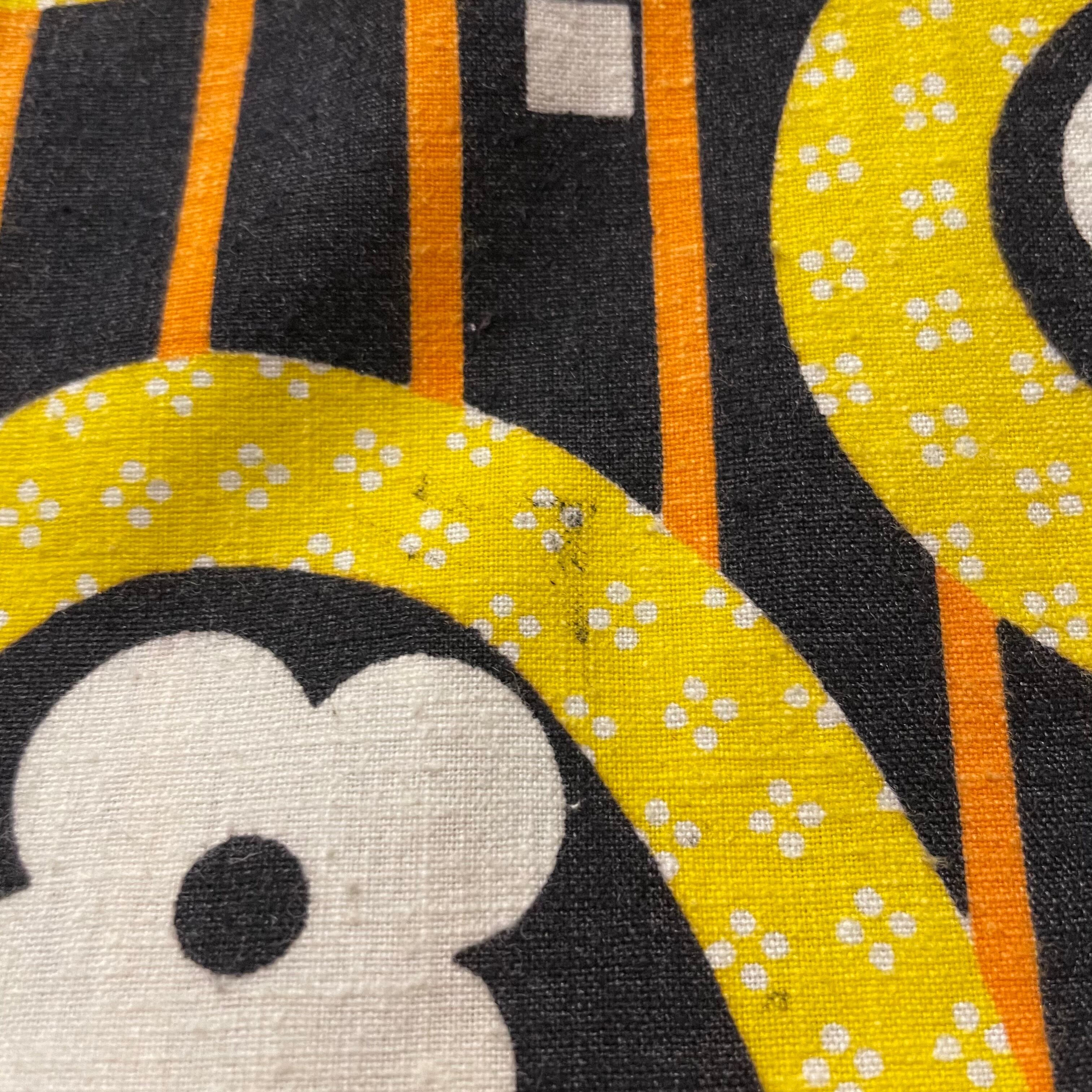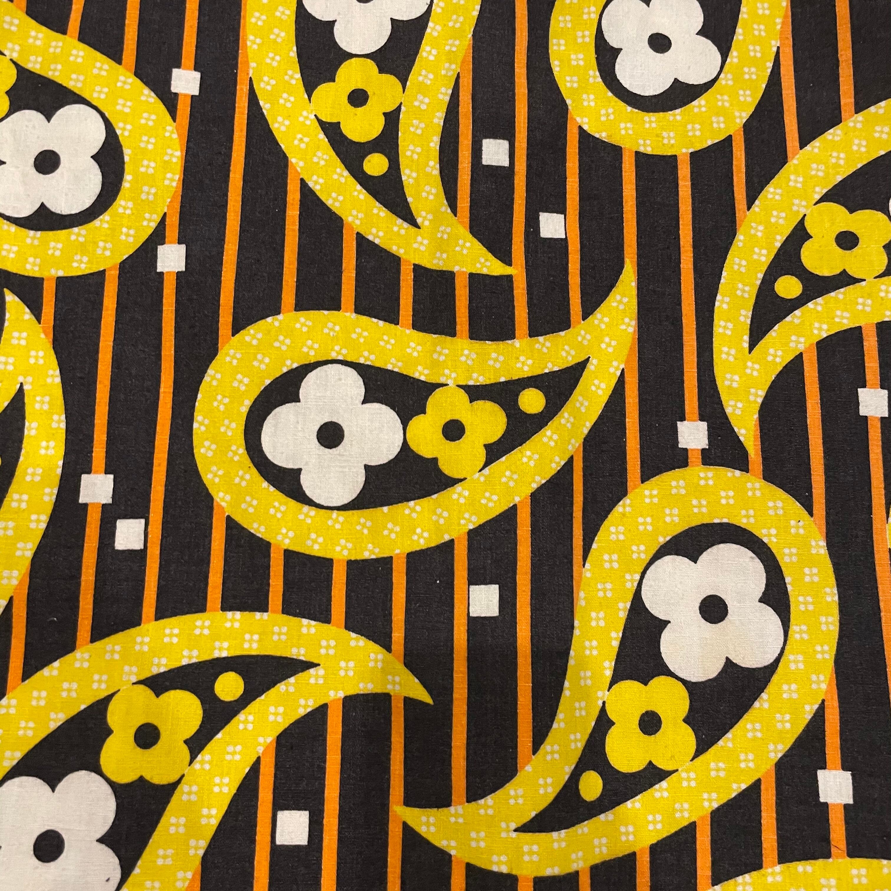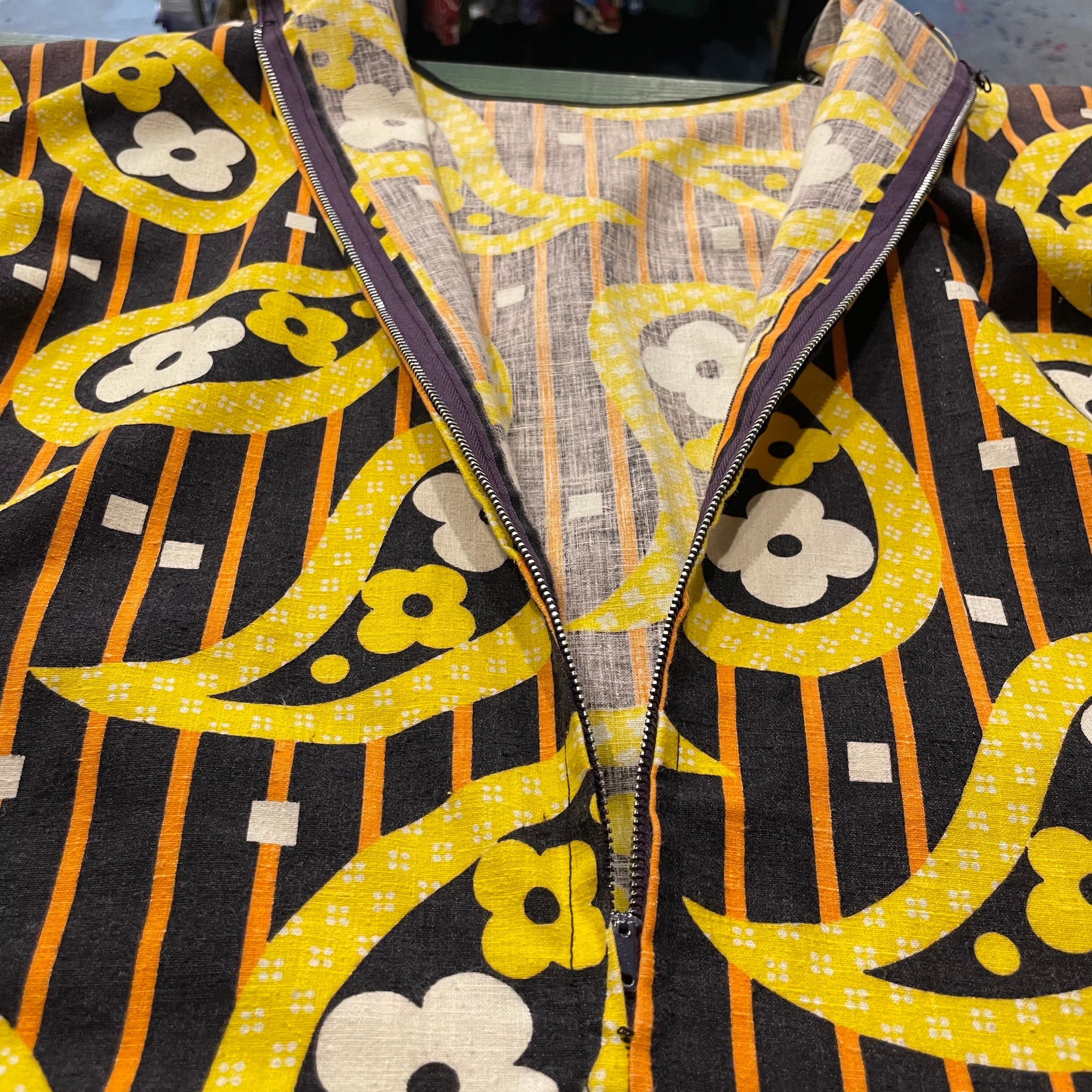 ストライプにペイズリーの大胆な柄がインパクトがあってかわいいワンピースです。おそらくハンドメイドのもので、シンプルな作りではありますが、不思議な雰囲気が魅力的な一着です。フリンジのベストを合わせたり、ベルトでウエストマークしても印象が変わって楽しそうですね!