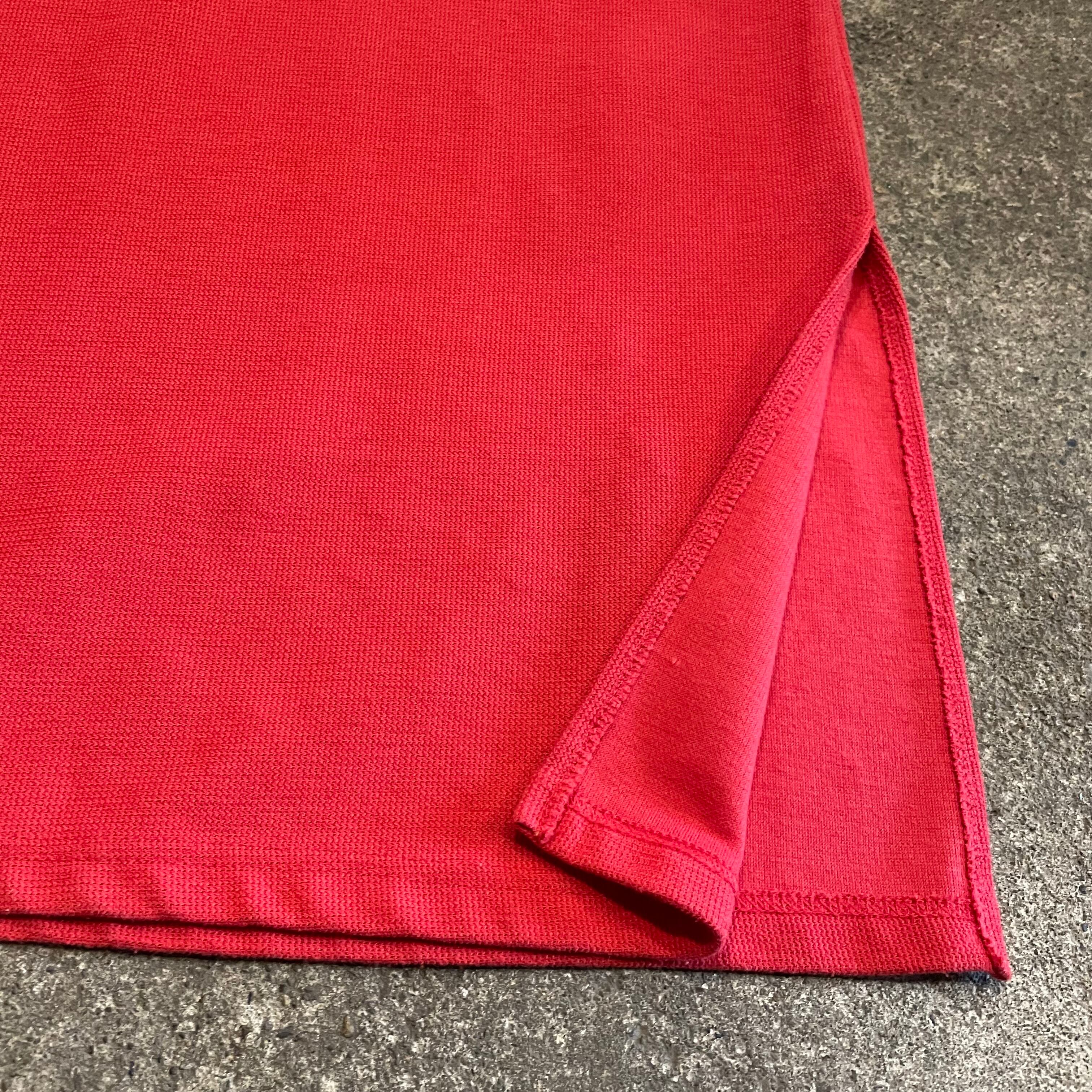 ポロシャツのような肌触りの生地もとても気持ち良くてリラックスして着られます。すっきりシンプルなシルエットですので羽織ものも選ばずいろんなものと相性が良さそうです。
