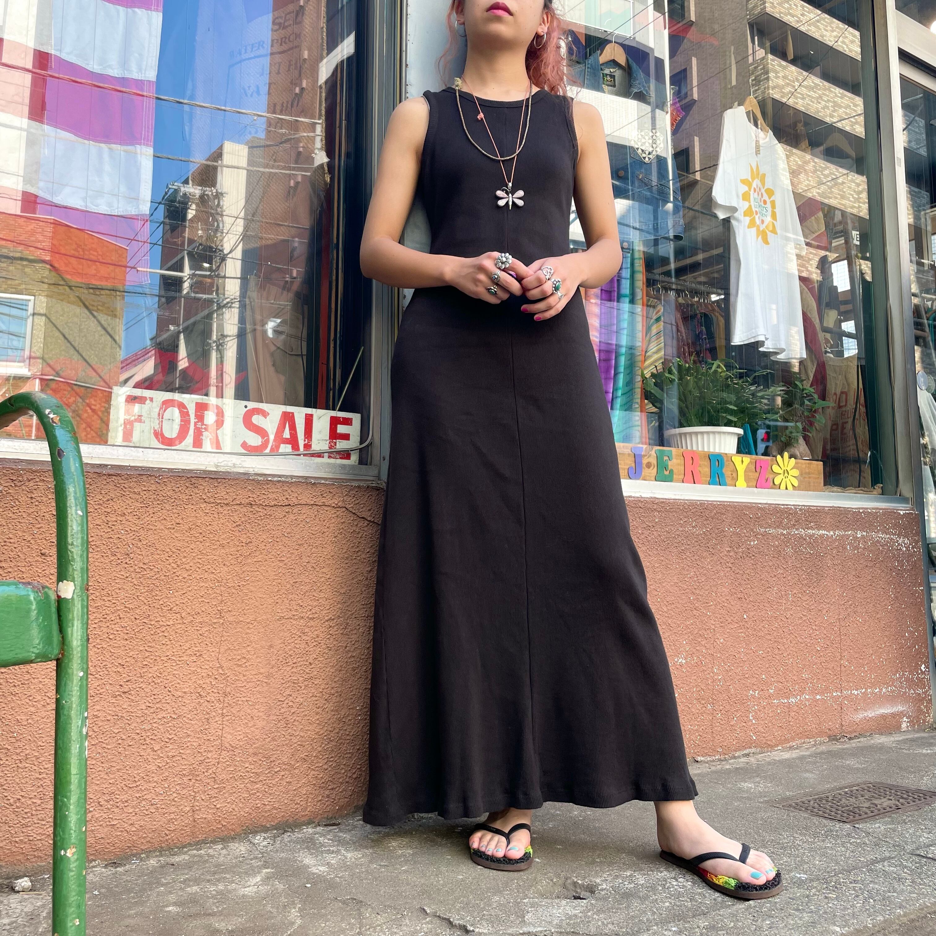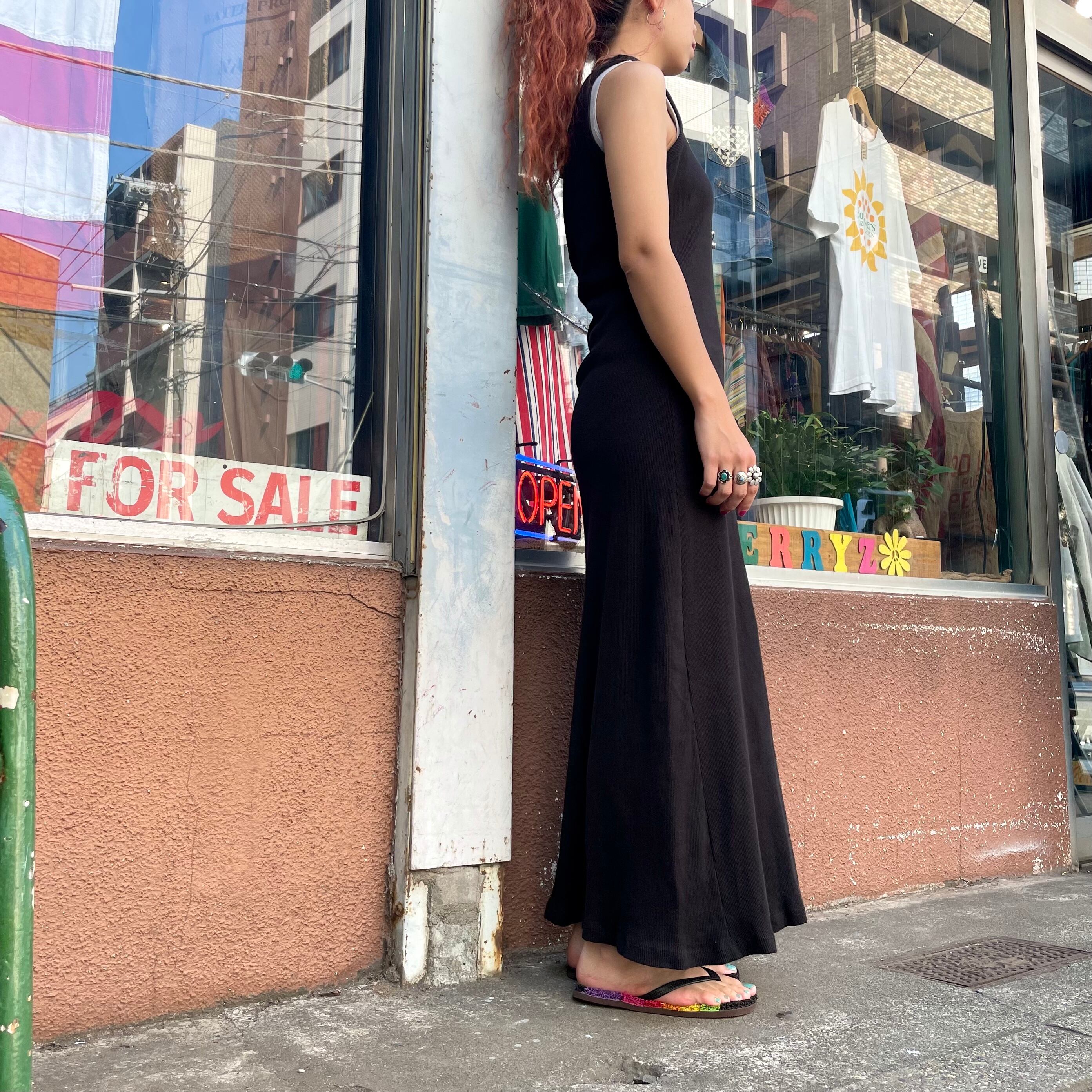 とてもシンプルな黒のリブワンピースです。