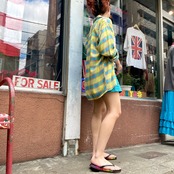 しっかりめのレーヨンのような肌触りが気持ちよく、真夏でも陽避けなどにお使いいただけそうです。黄色×水色の爽やかな色味も良いですね!