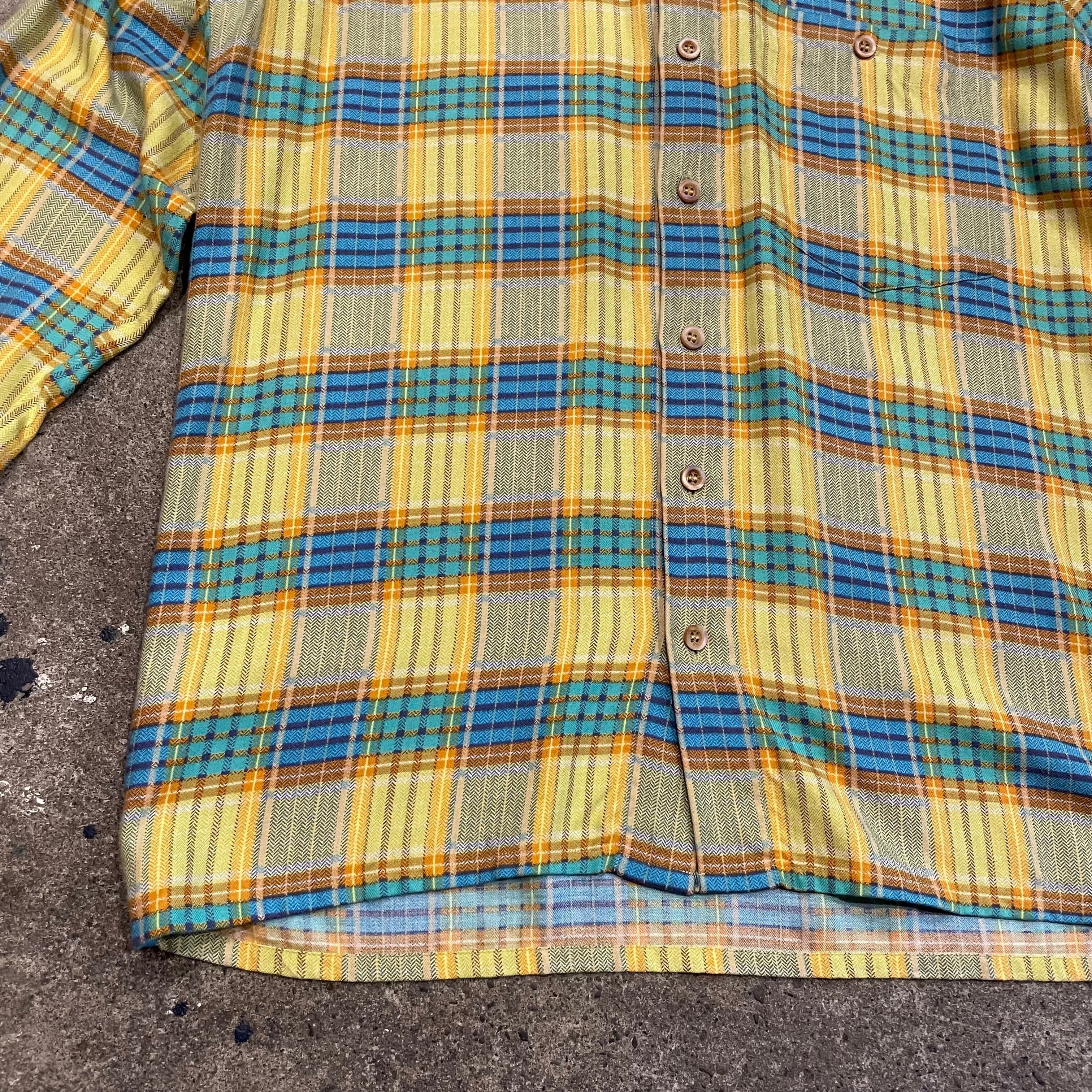 テロンとした生地感が羽織に使いやすいチェック柄のシャツです。