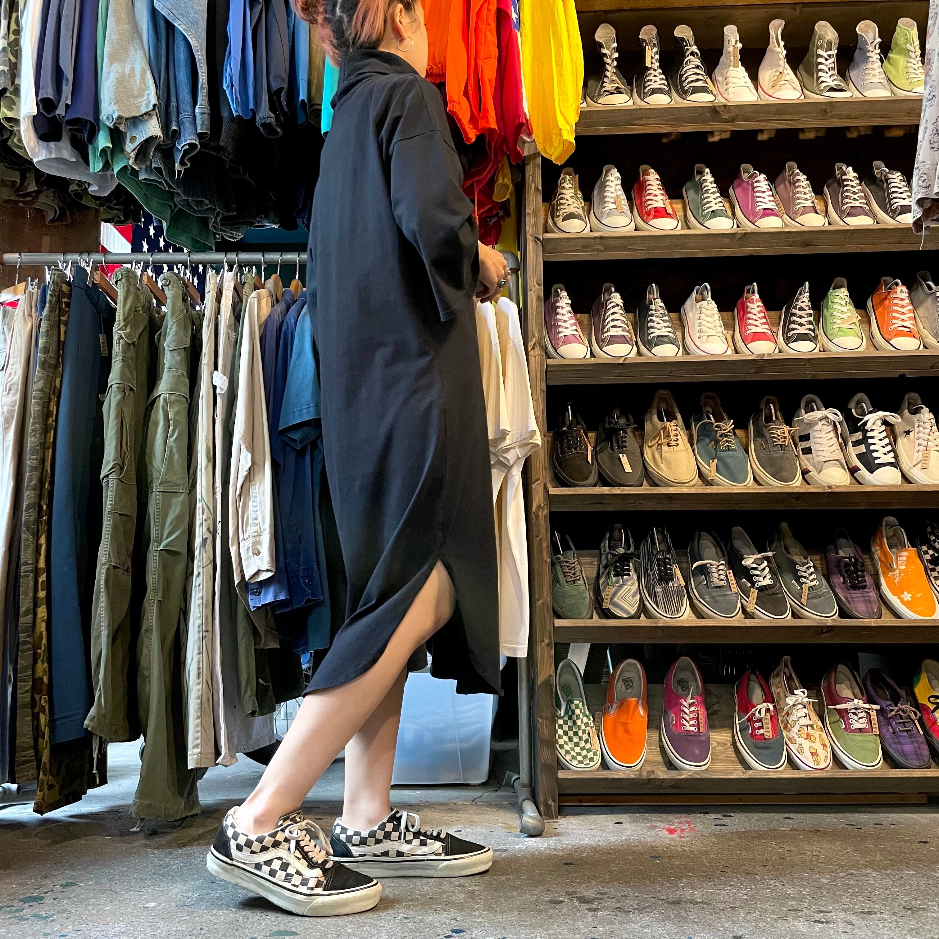 Tシャツのような素材感ですっぽり一枚で楽ちんで良いですね!ボトムを重ねたりアクセサリーや小物で遊んでもかわいいと思います。