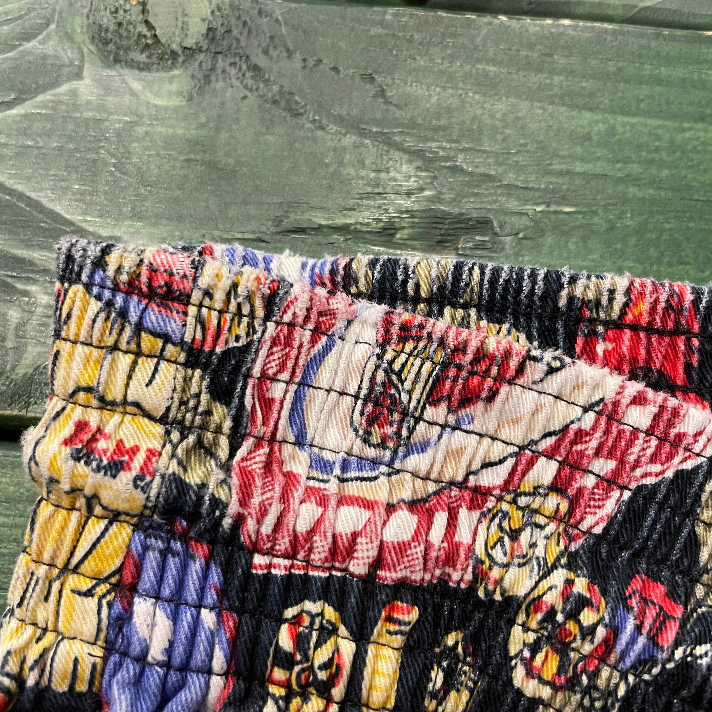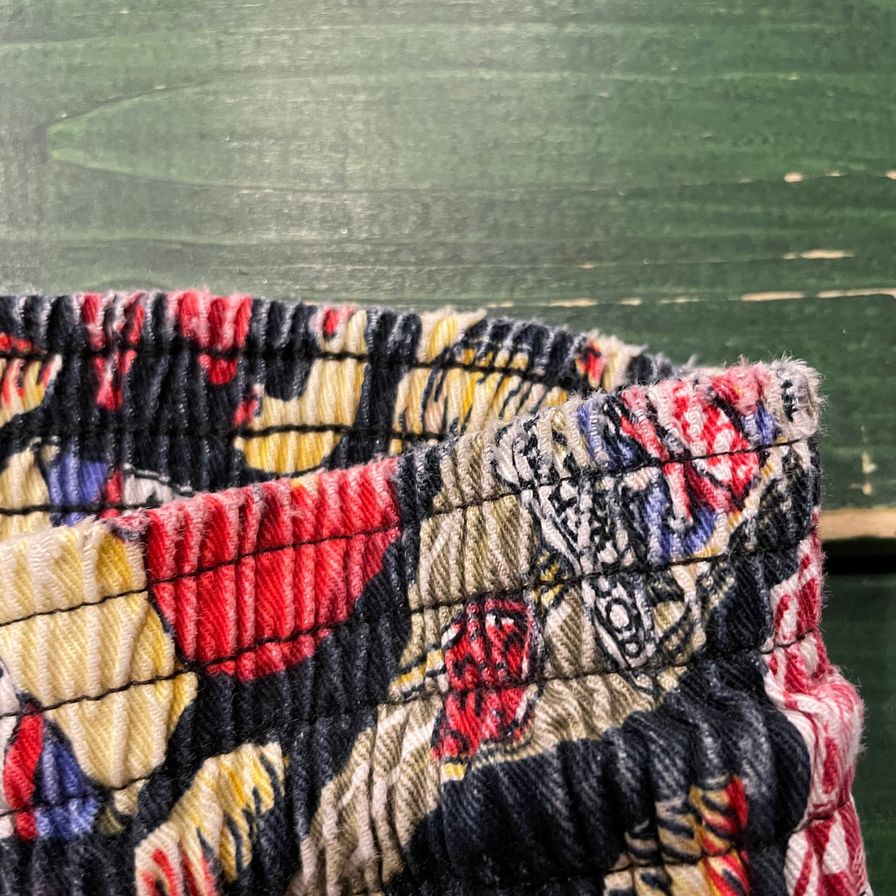 かなりインパクトがあっておもしろい一着だと思います。トップスに黒を持ってくれば意外とすんなり着てしまえますし、派手な色と合わせてポップに着ても良いですね!しっかりめのコットンで着心地も良い感じです。