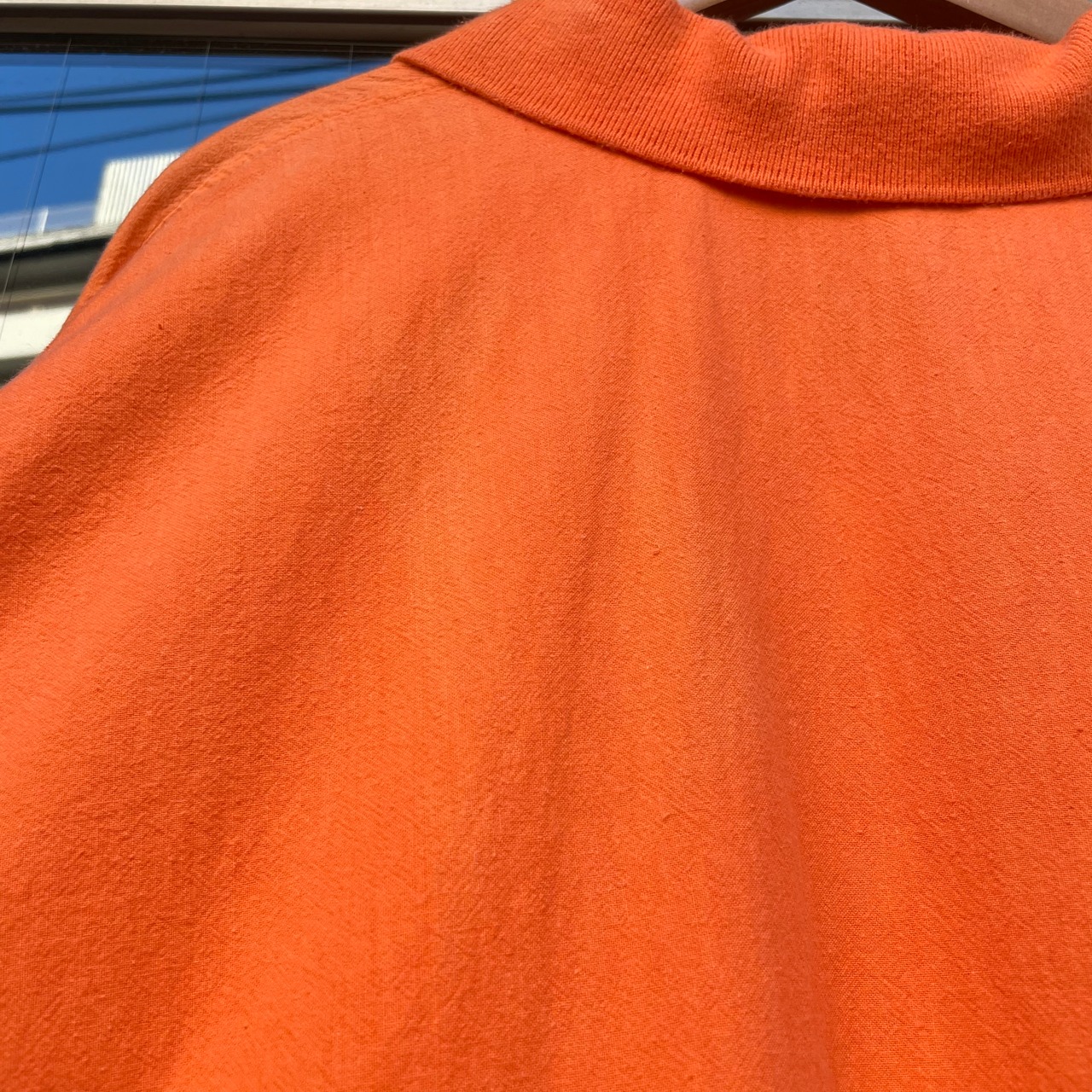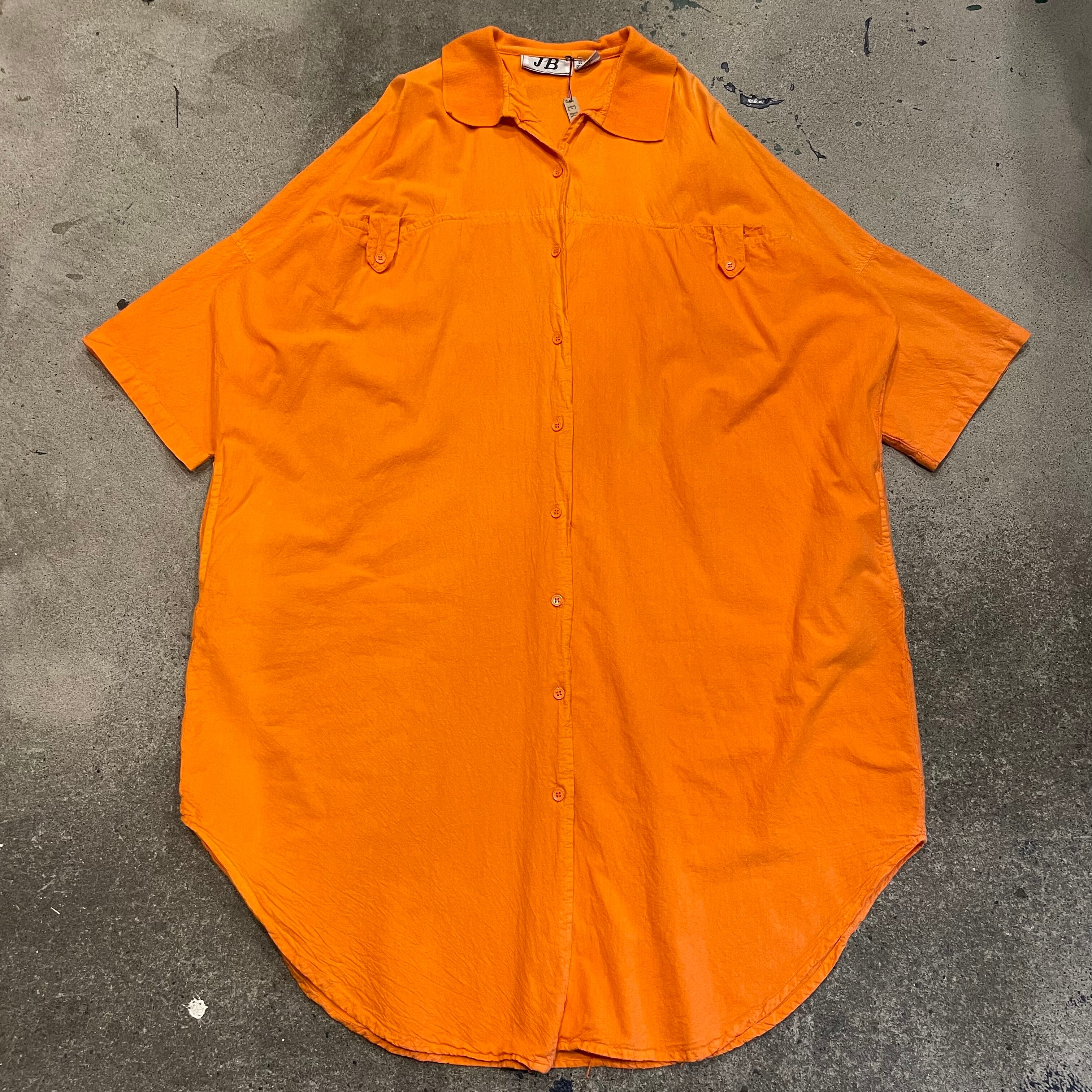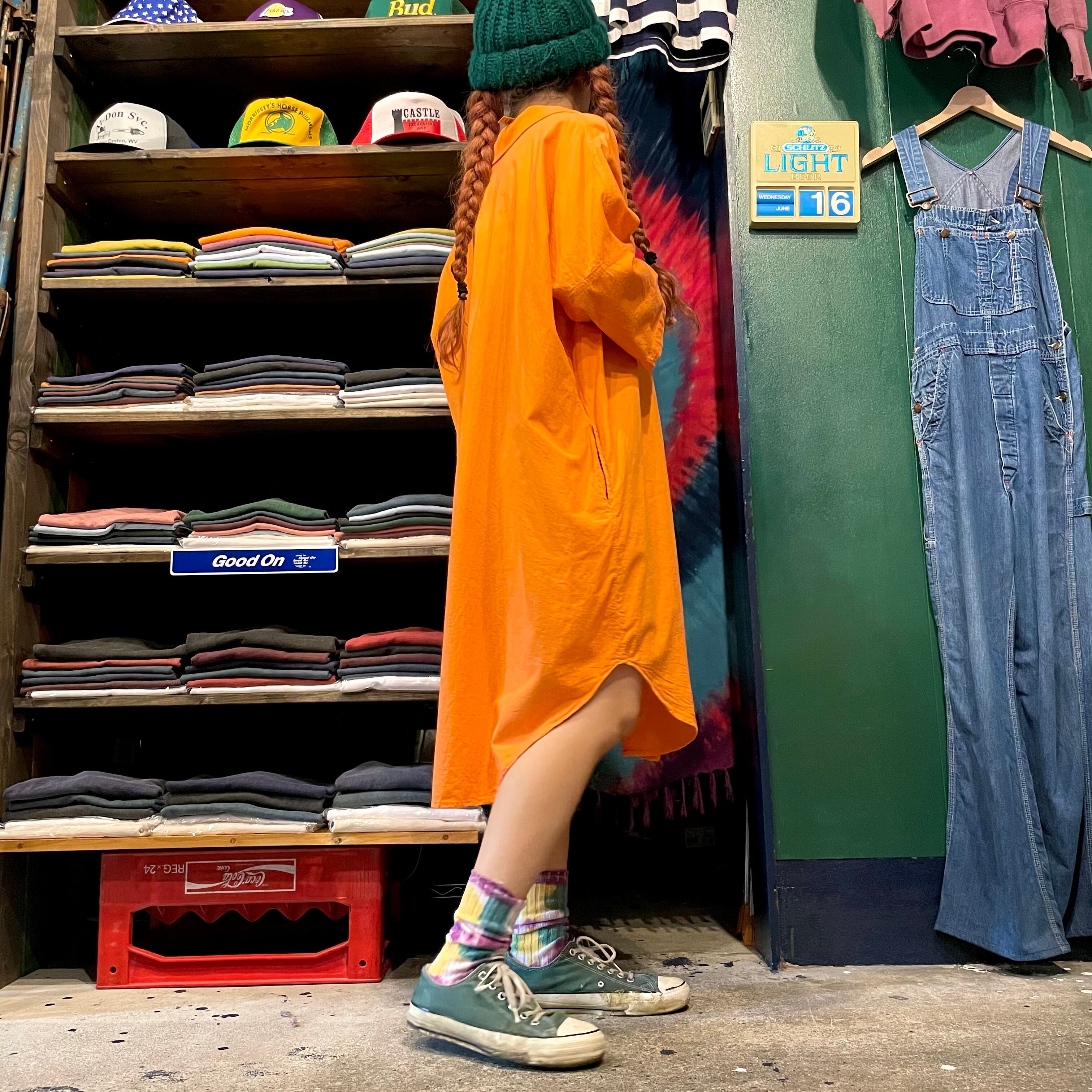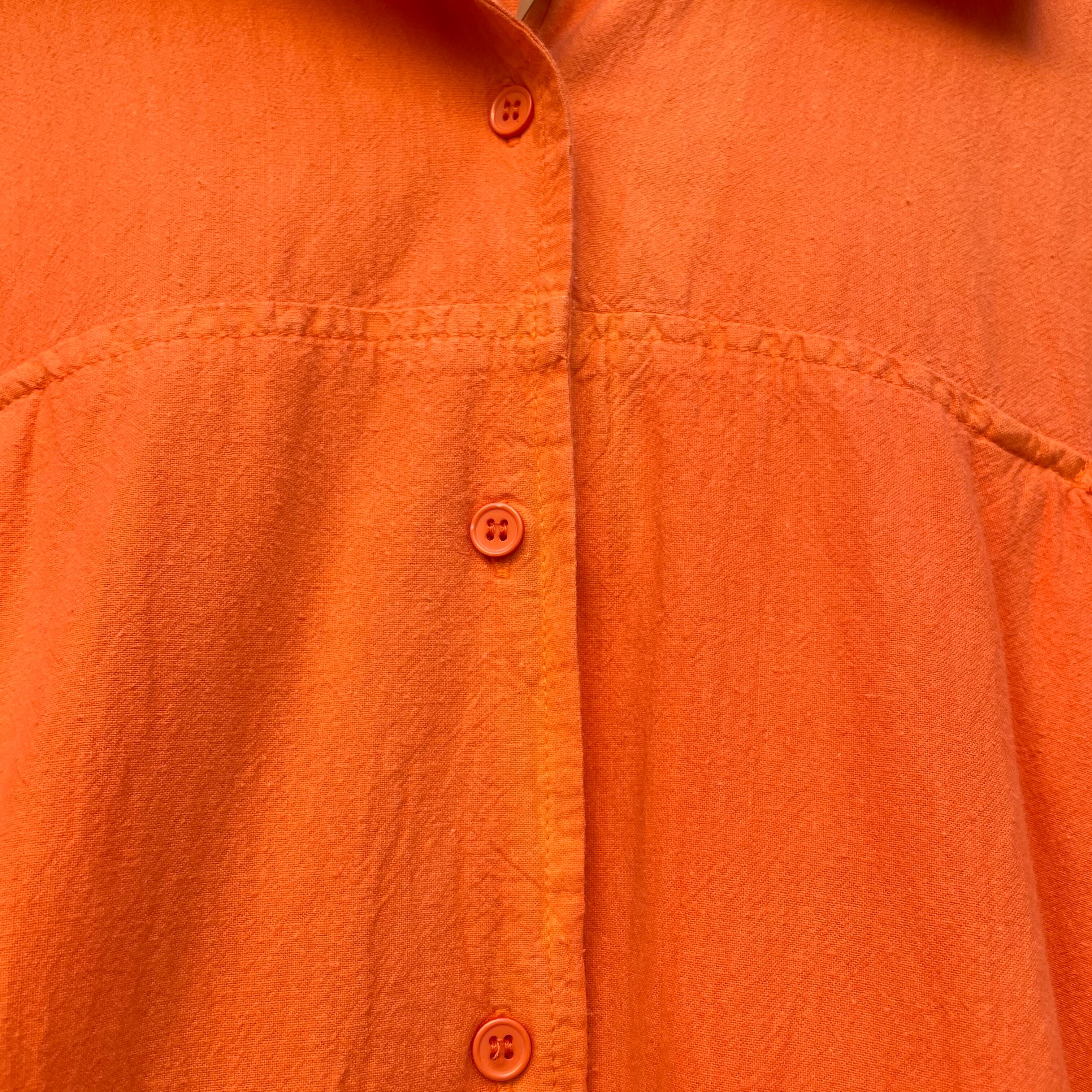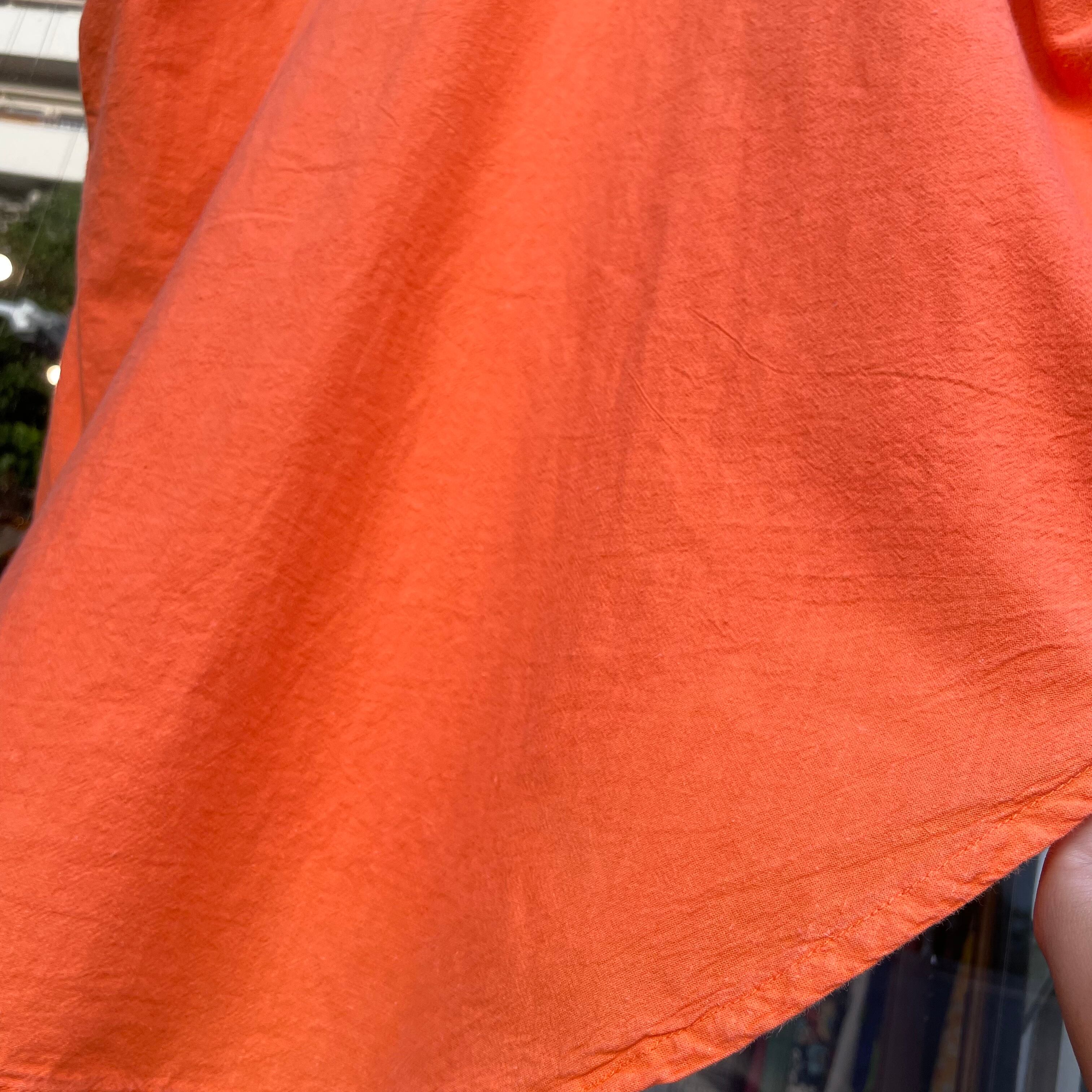 柔らかいオレンジがかわいいゆったりしたシャツワンピースです。