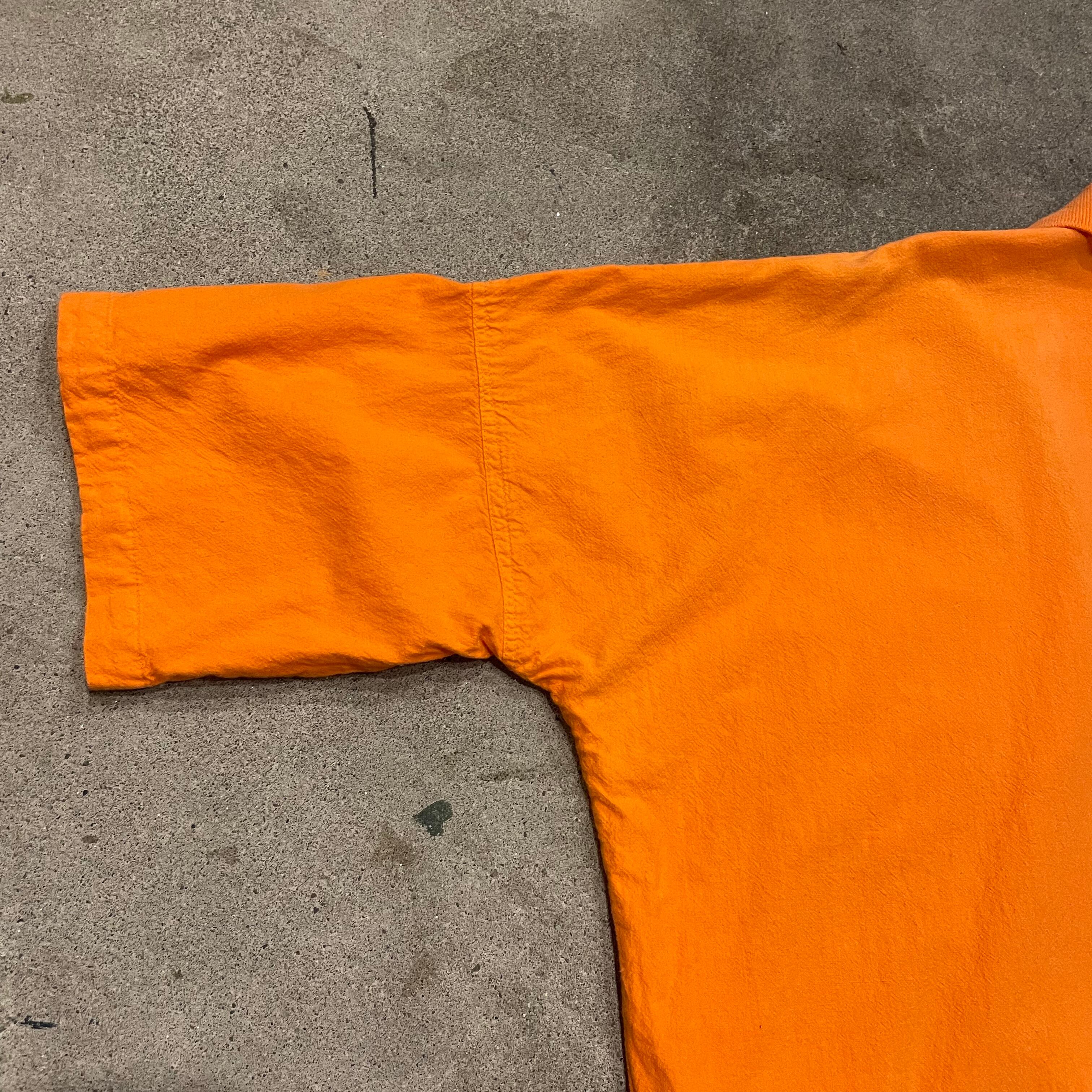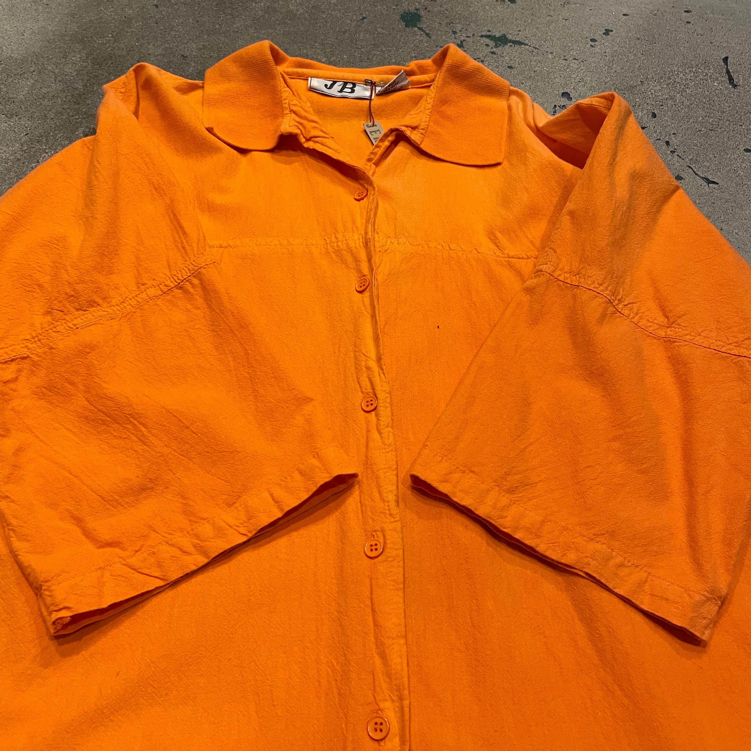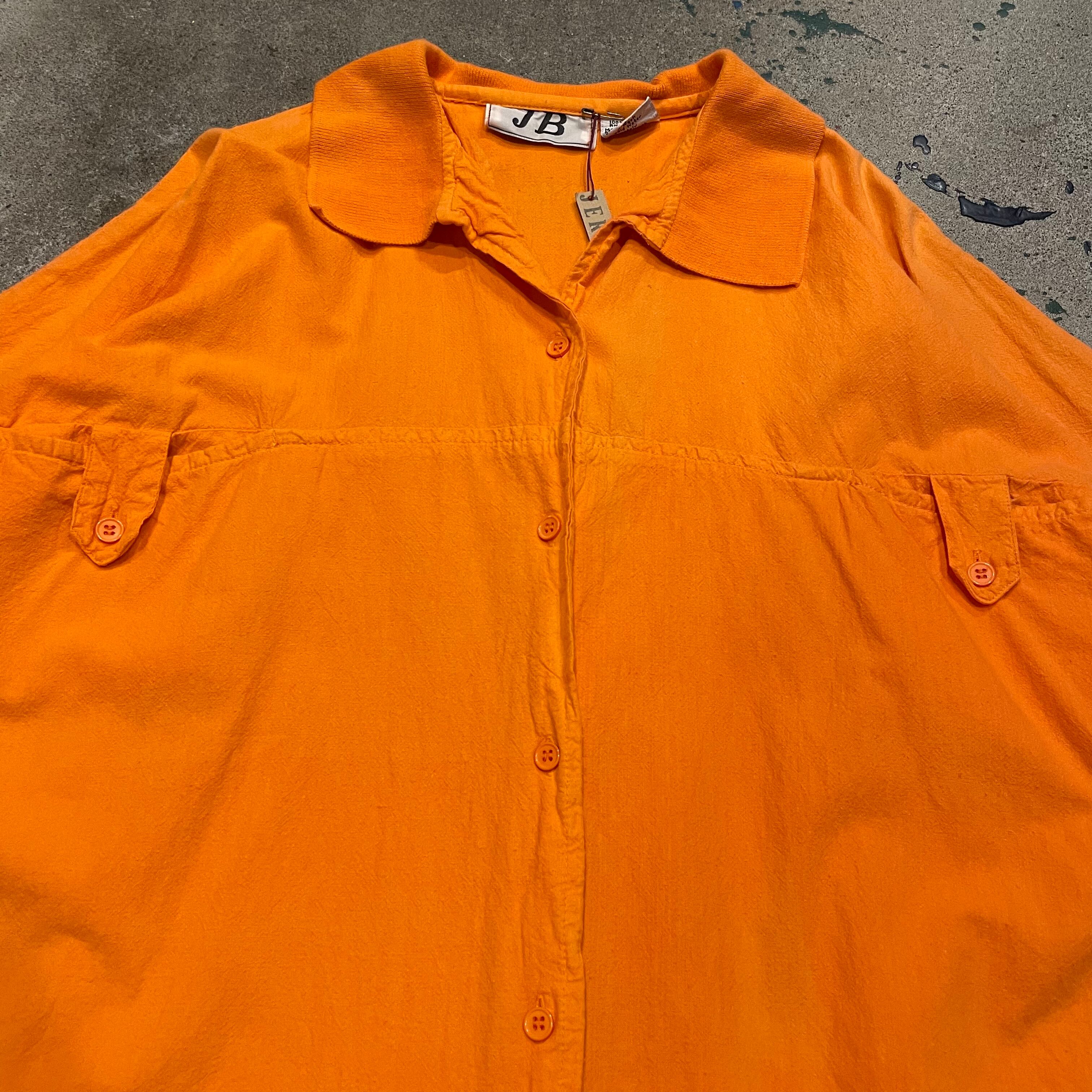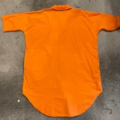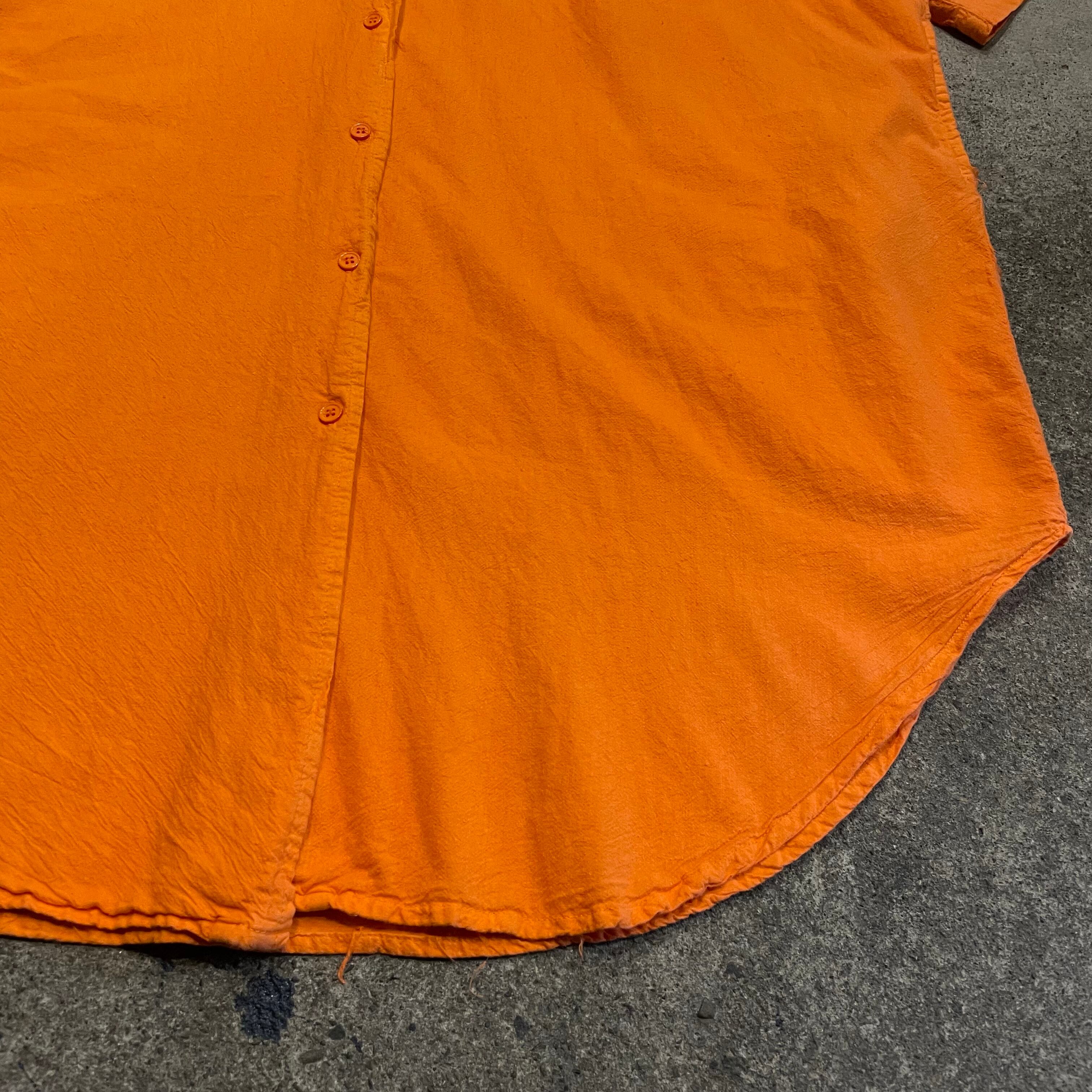 柔らかいオレンジがかわいいゆったりしたシャツワンピースです。