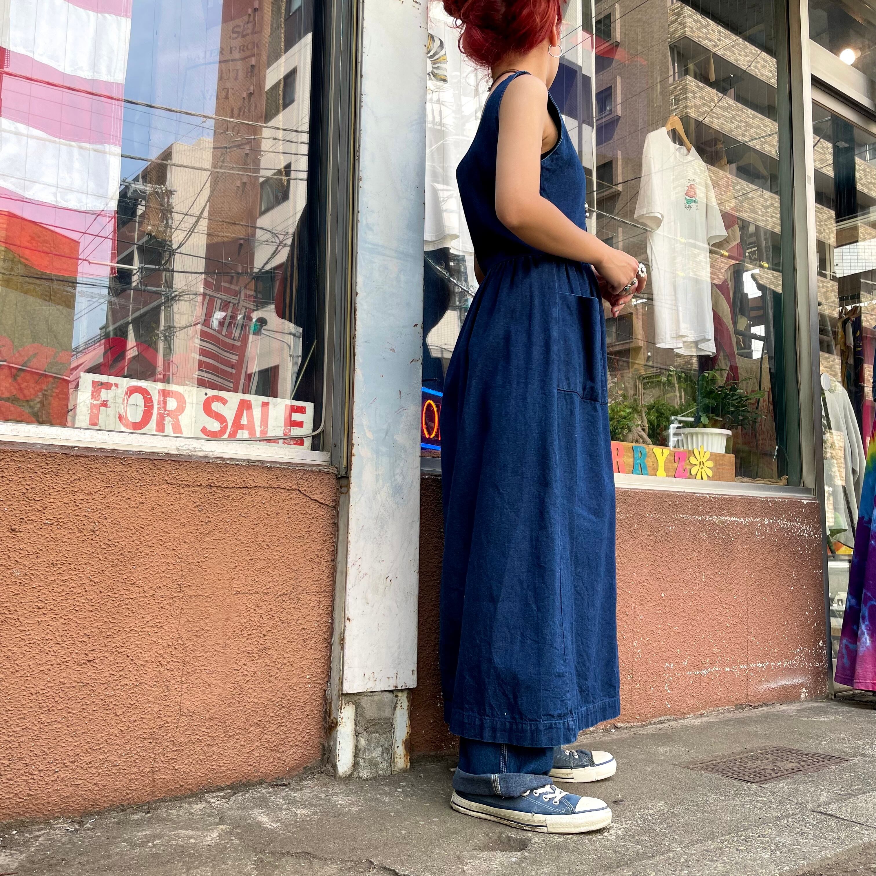濃い色の厚手のデニムワンピースです。
