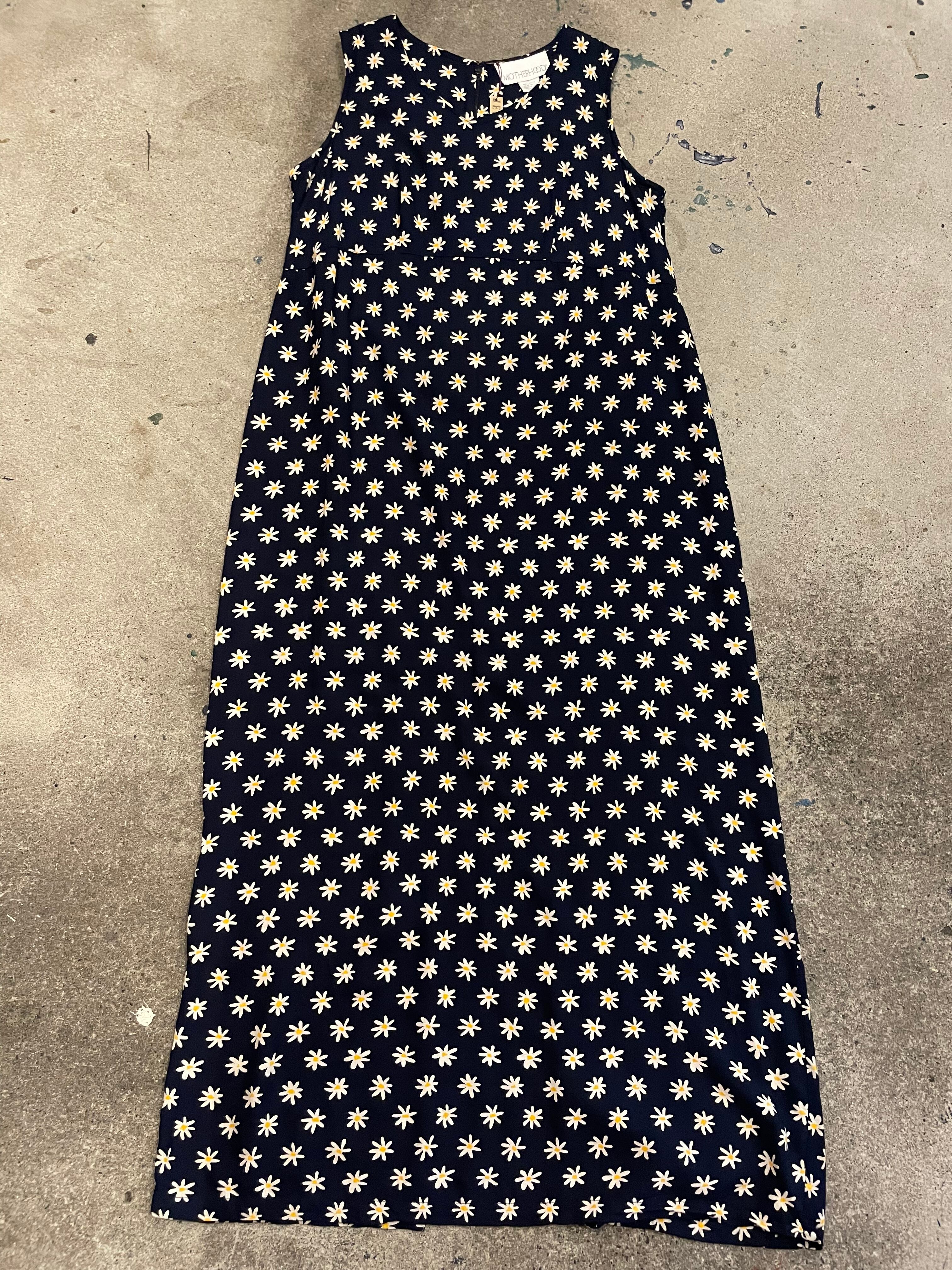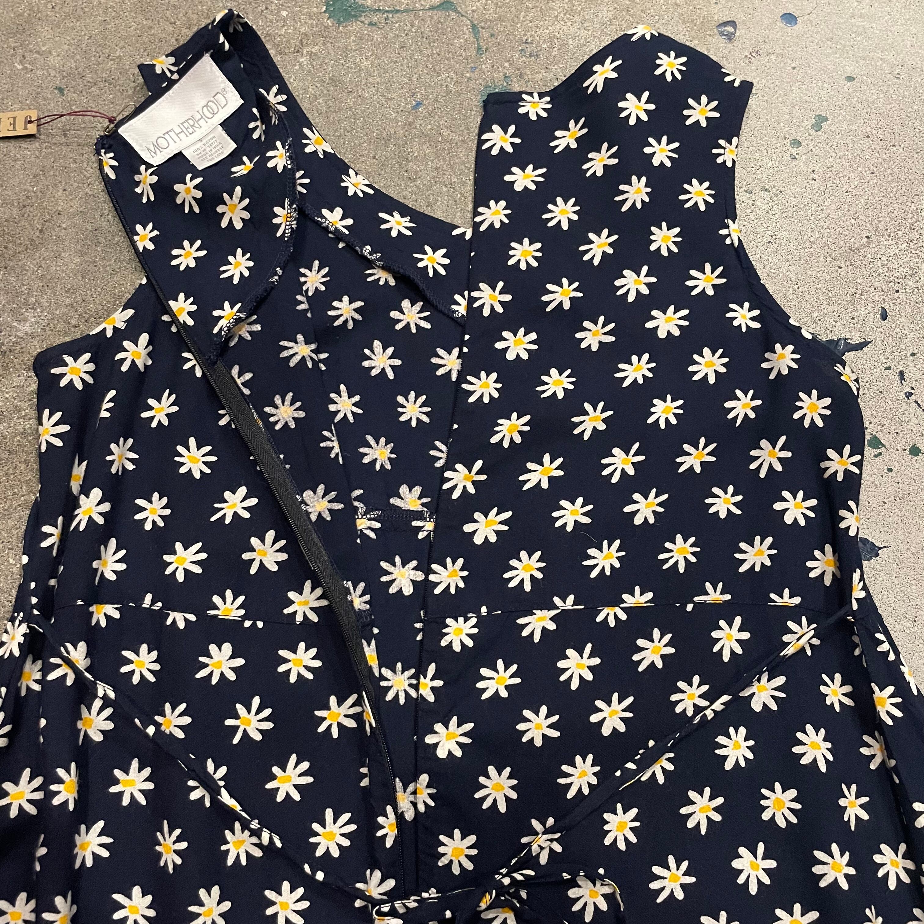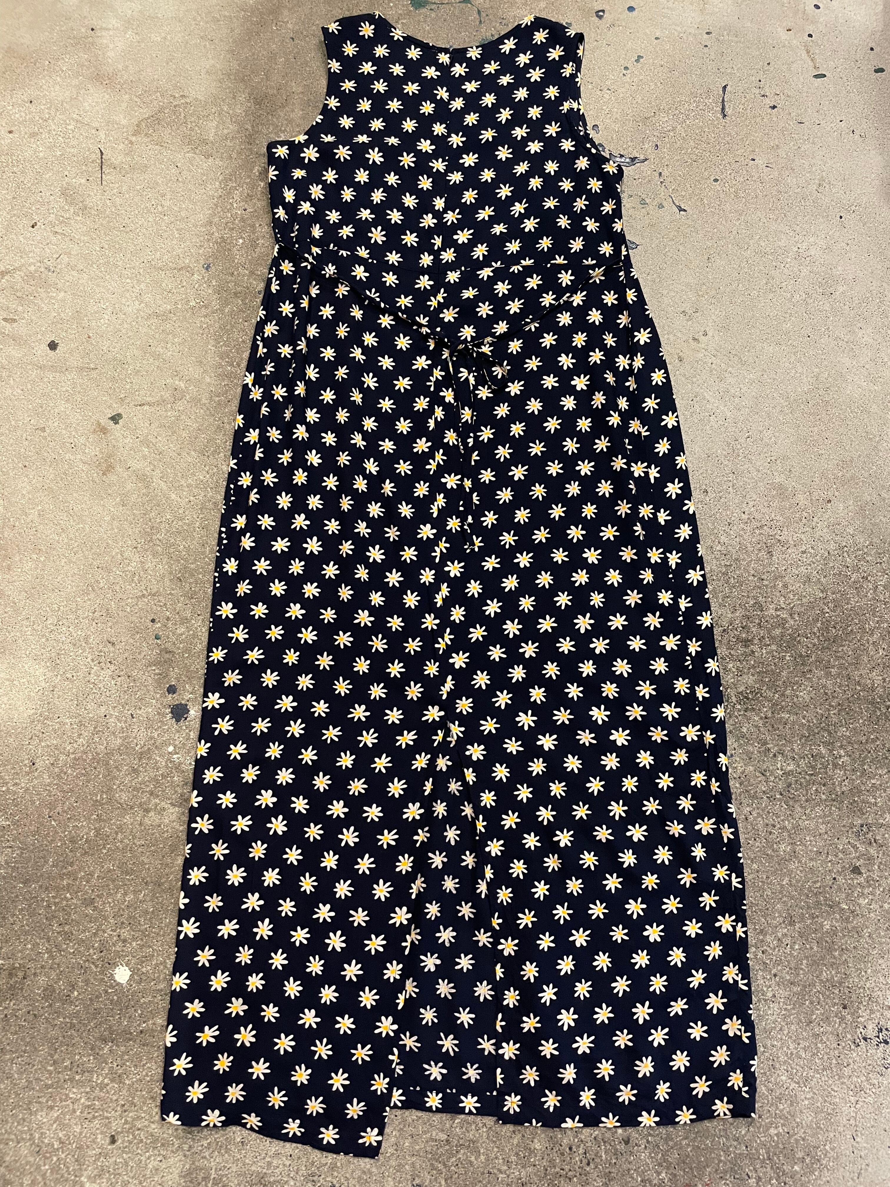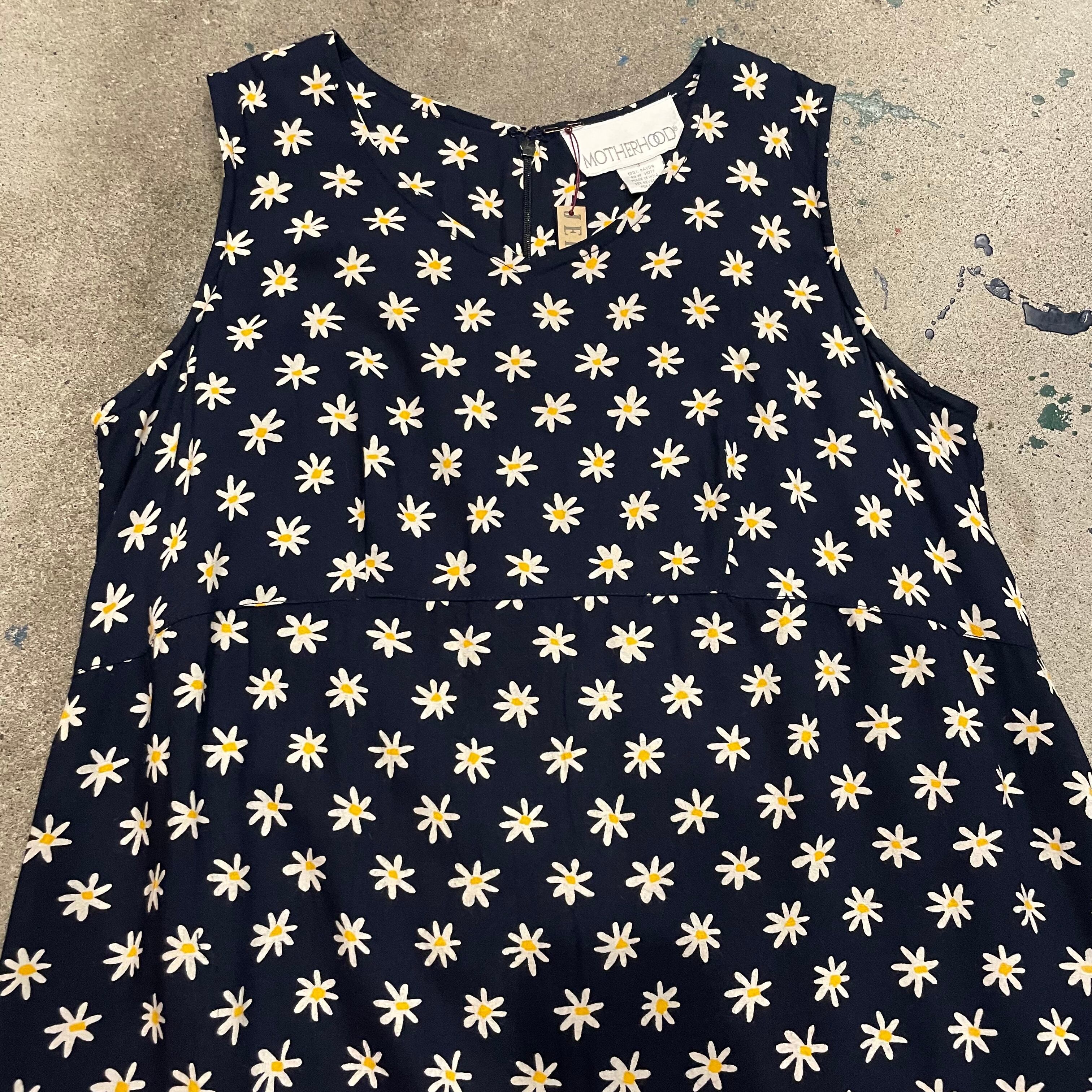 ネイビー地に適当に描いたような白いお花がかわいいワンピースです。