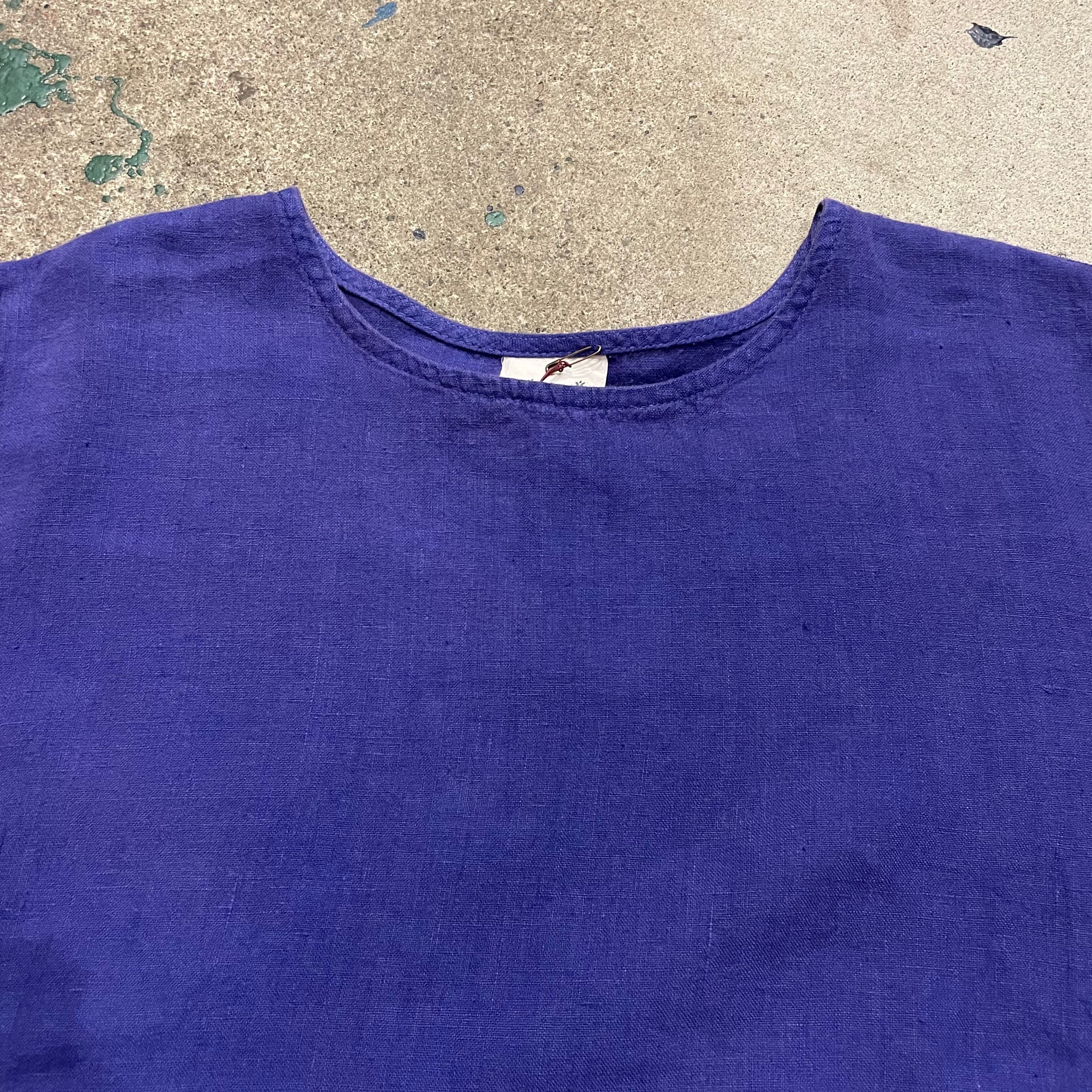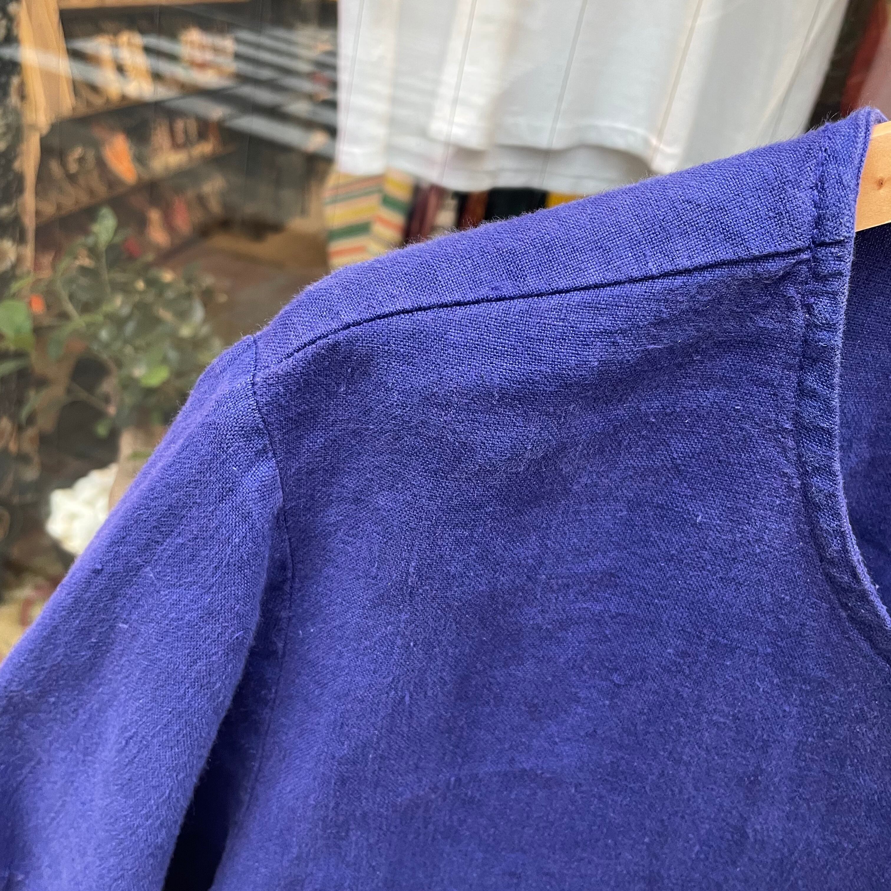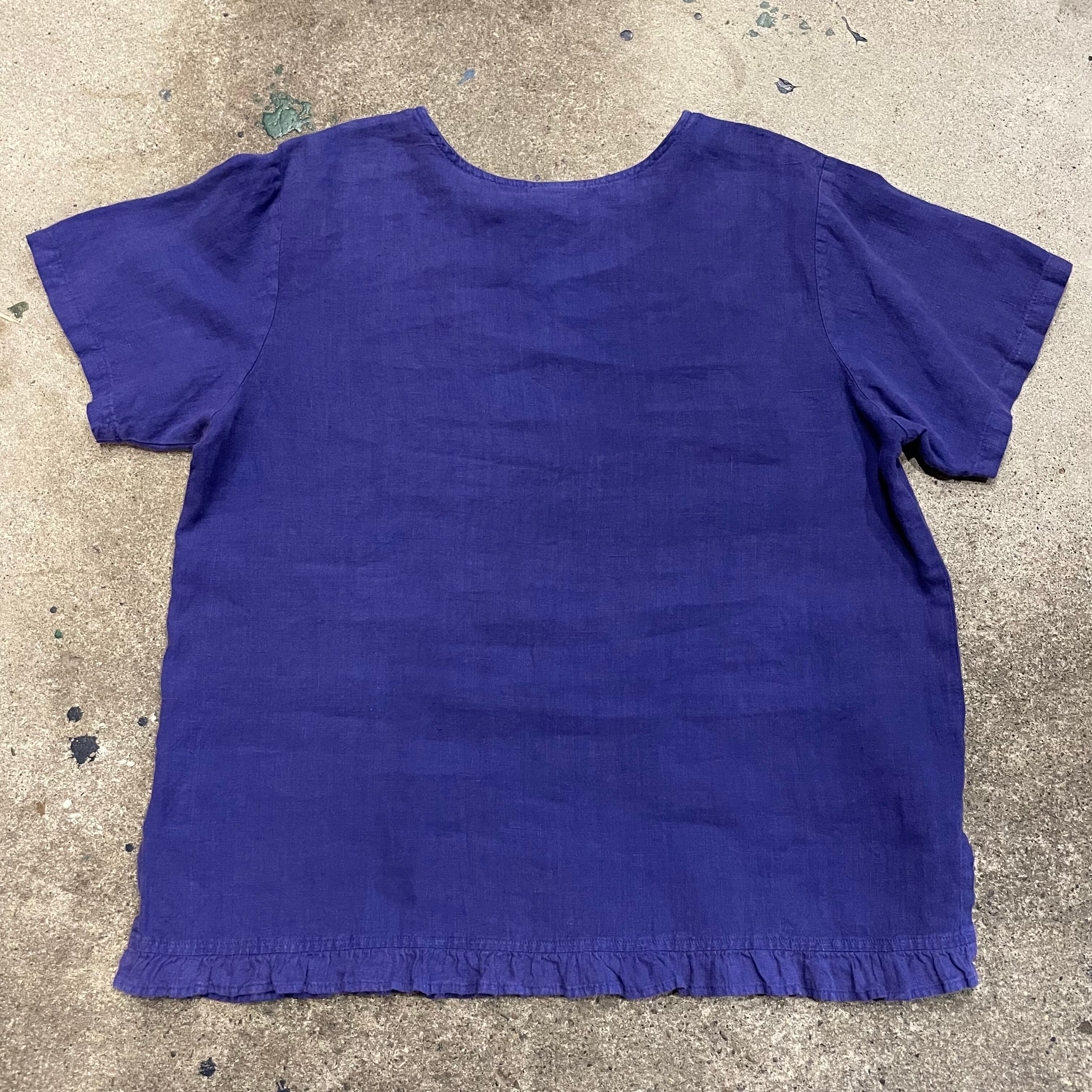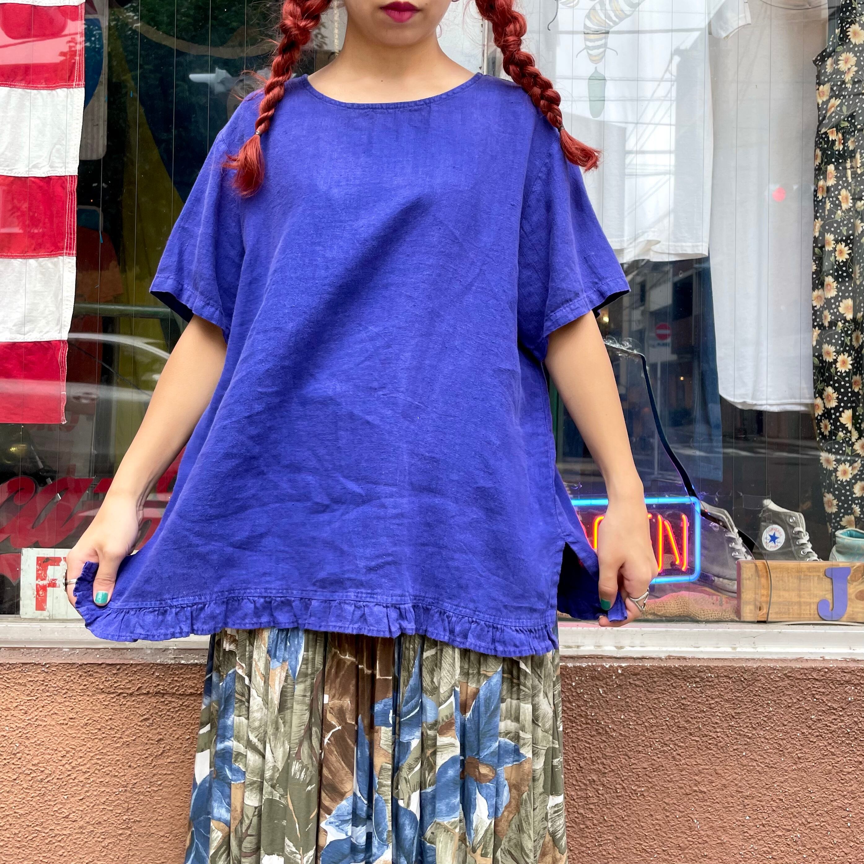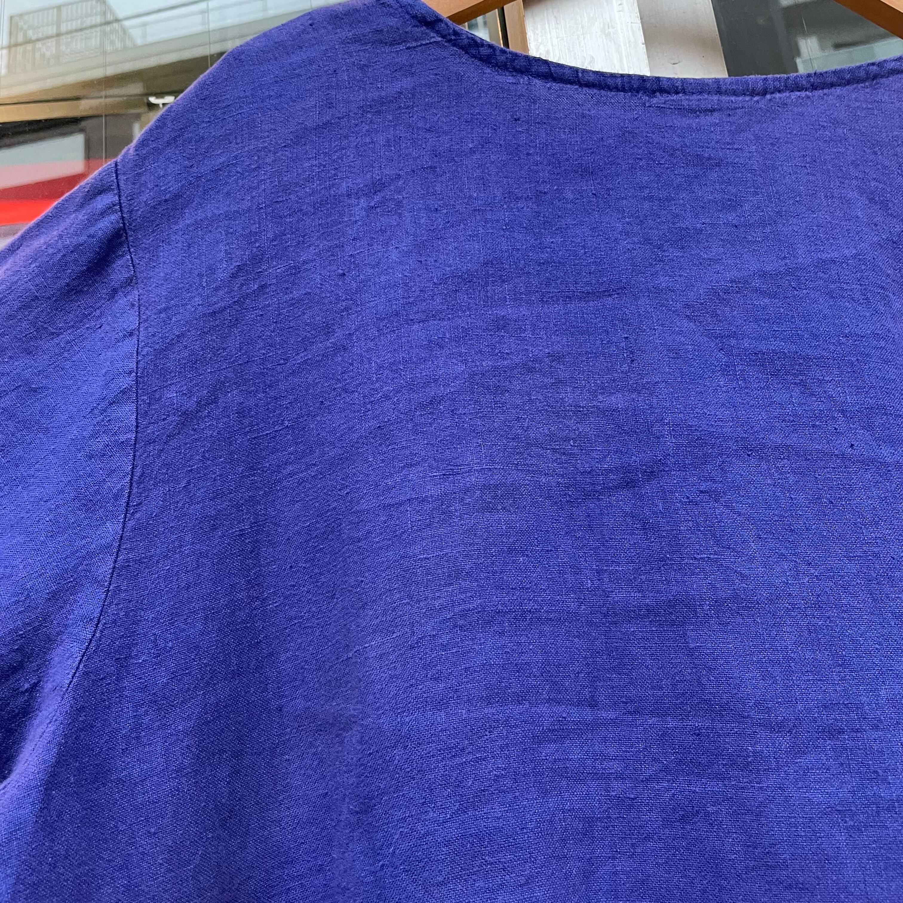 ブルーベリーのような色味がとてもかわいいリネンのトップスです。