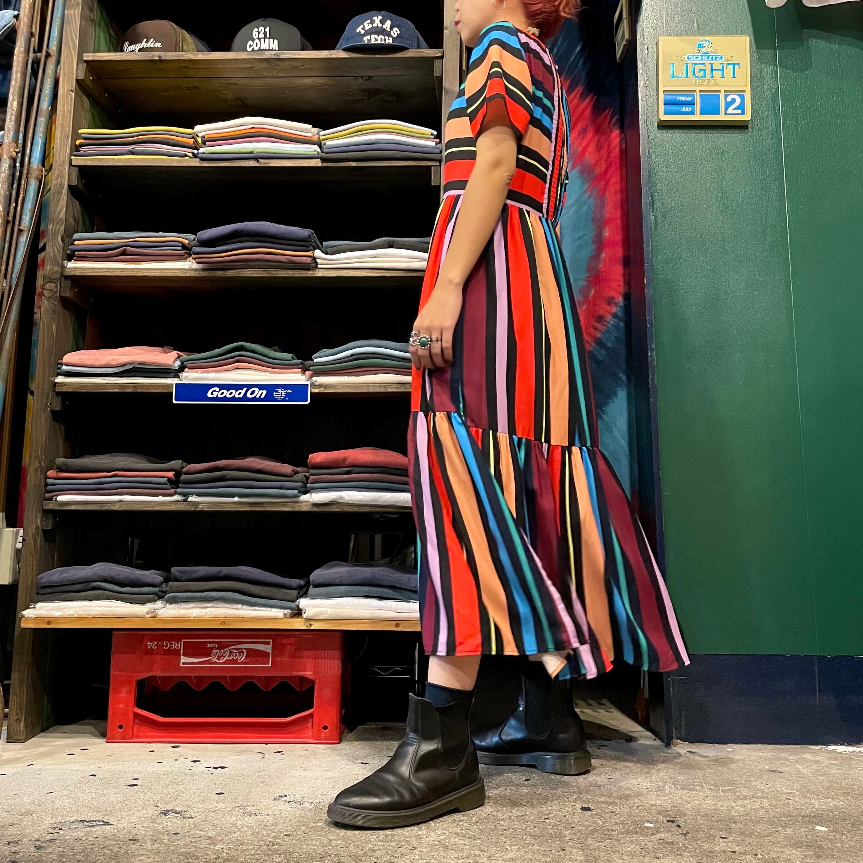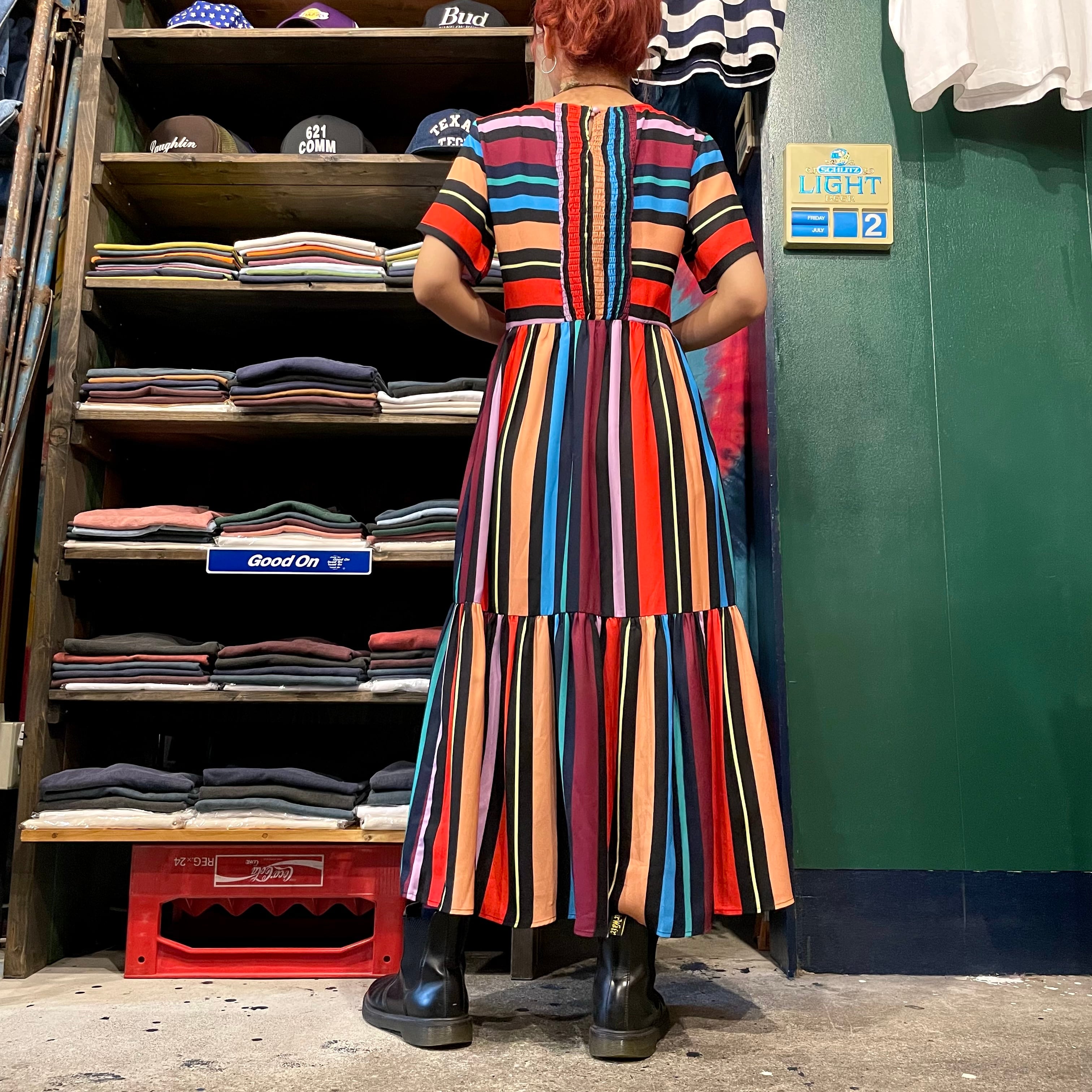 カラフルなストライプのワンピースです。