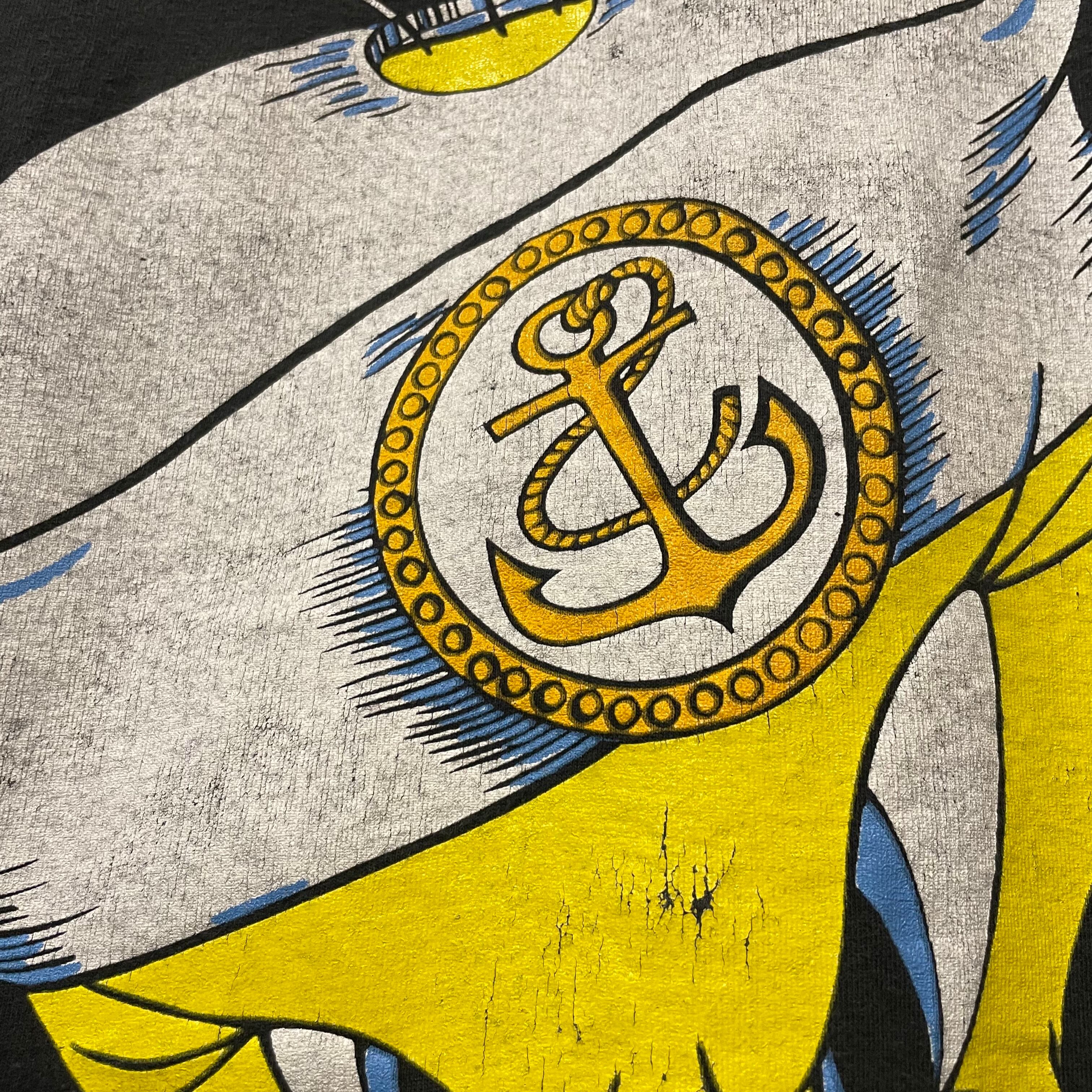 プリントにひび割れ、全体的な色褪せがございます。使用感のある商品ですので古着にご理解のある方のご購入をお願い致します。