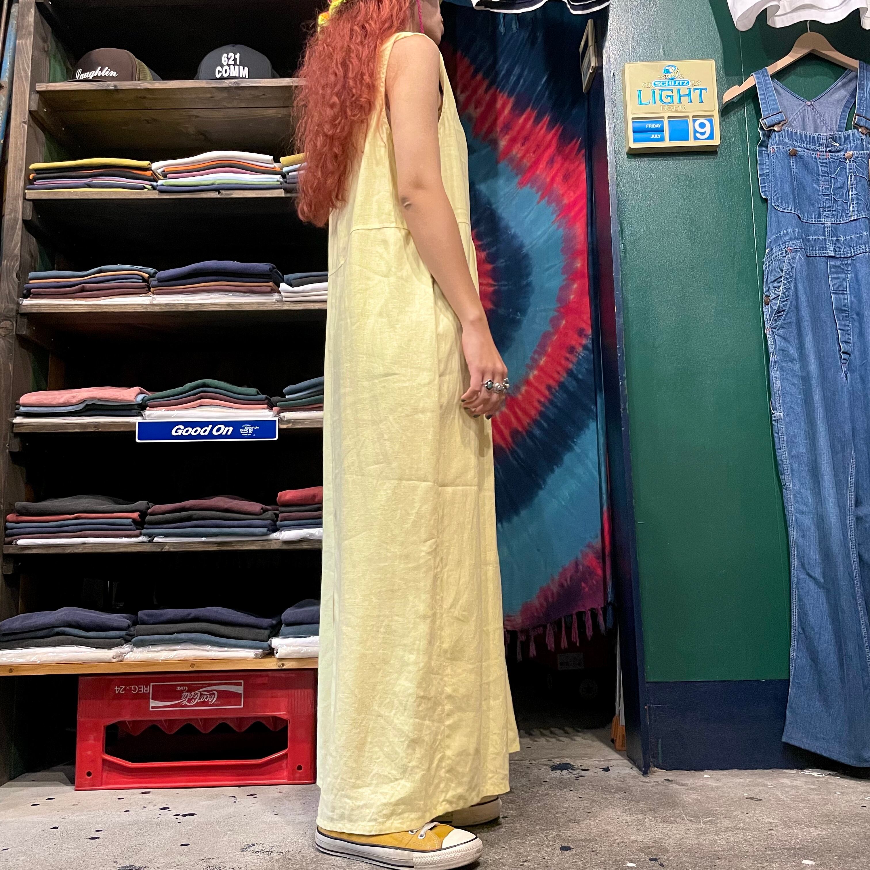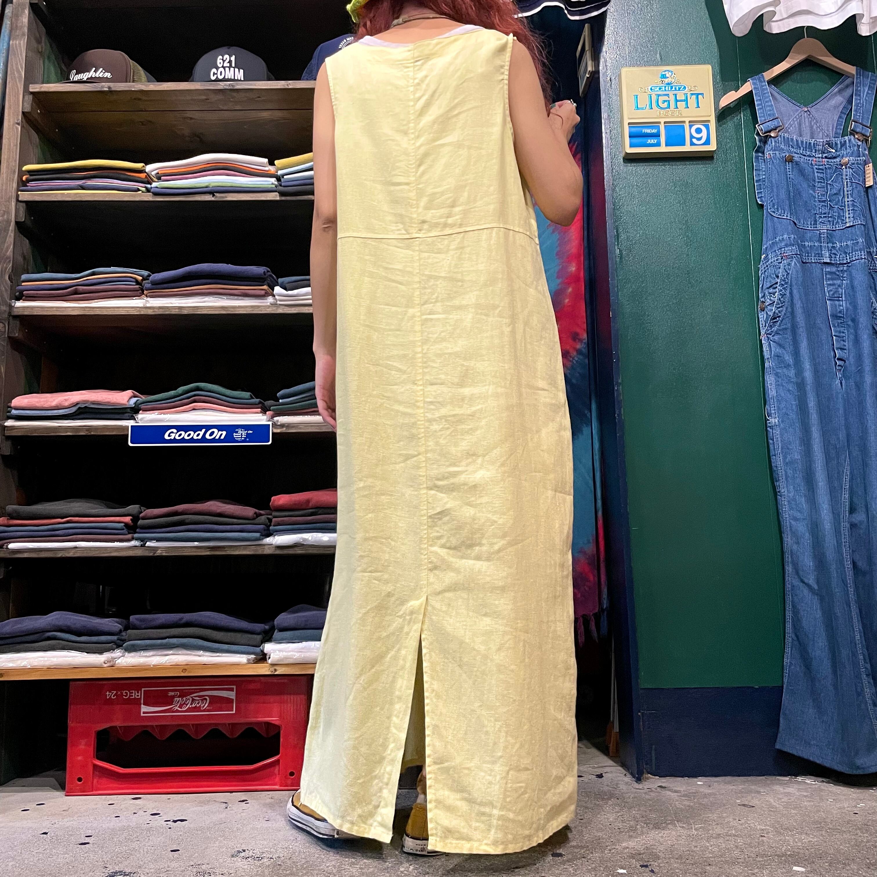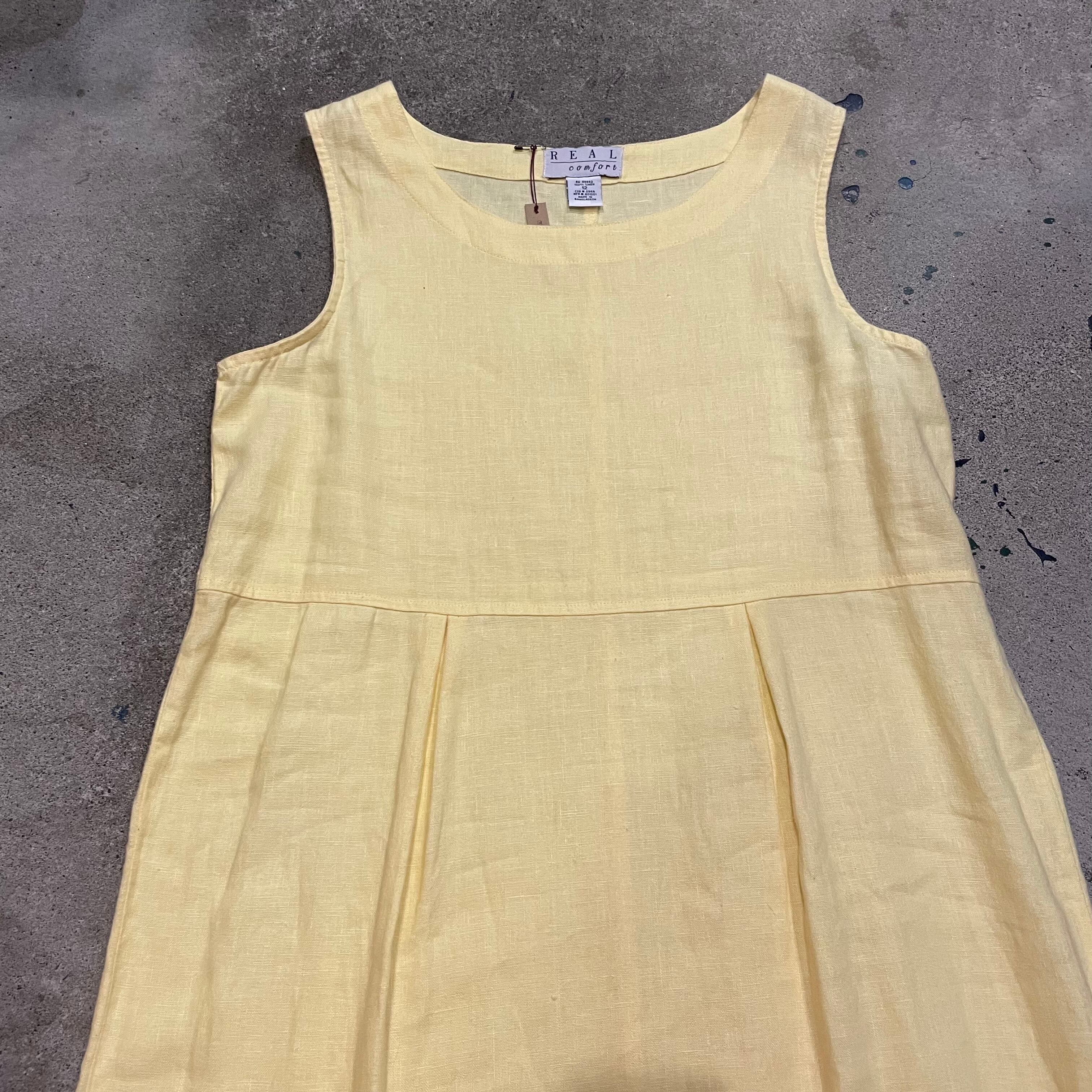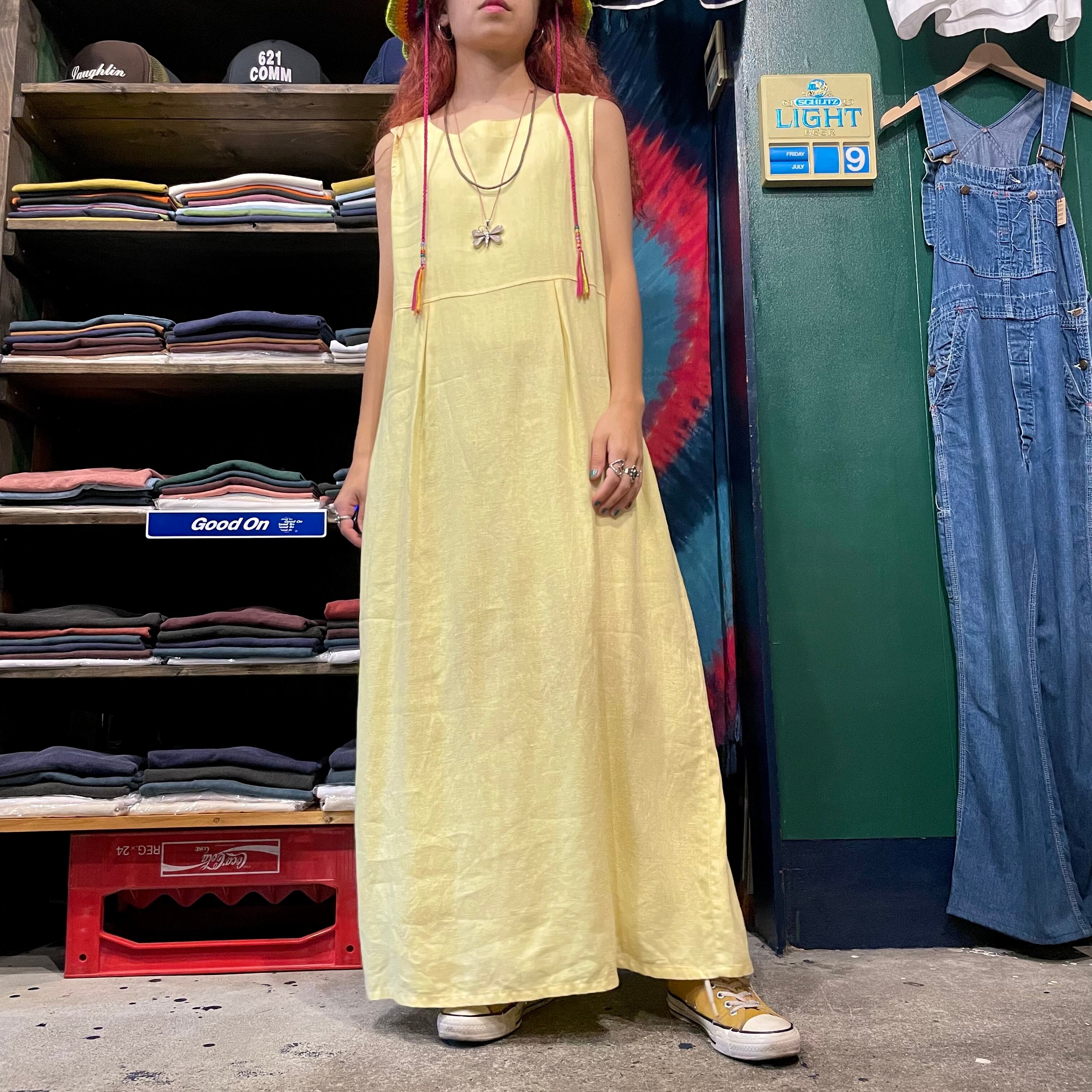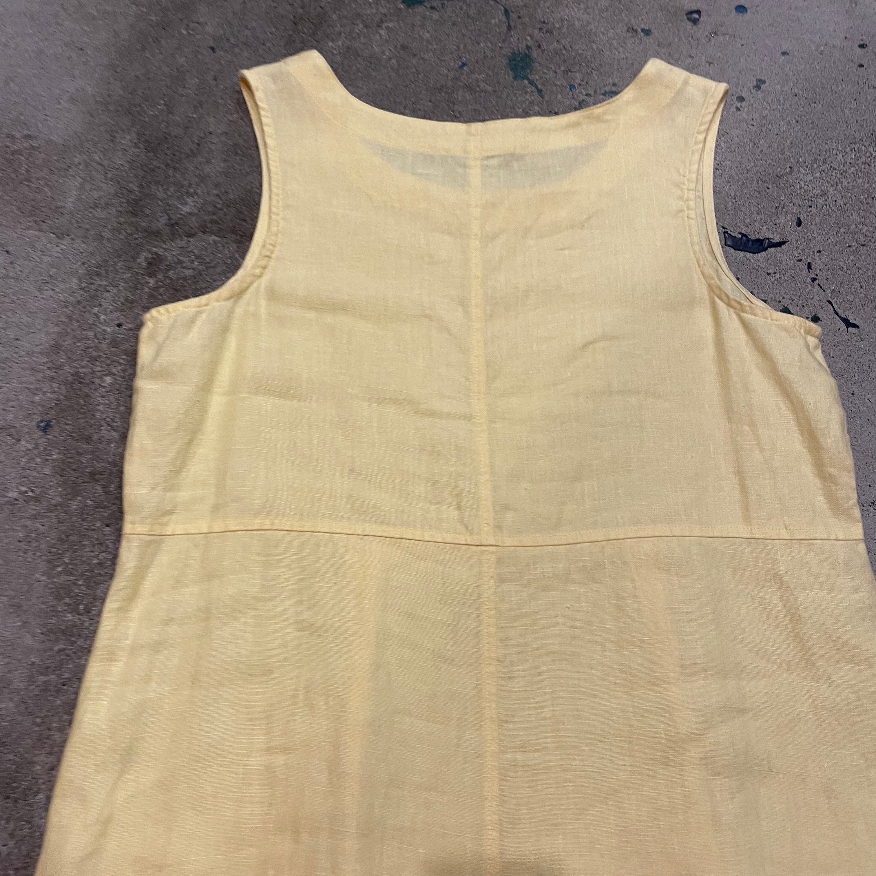 優しい黄色のリネンワンピースです。