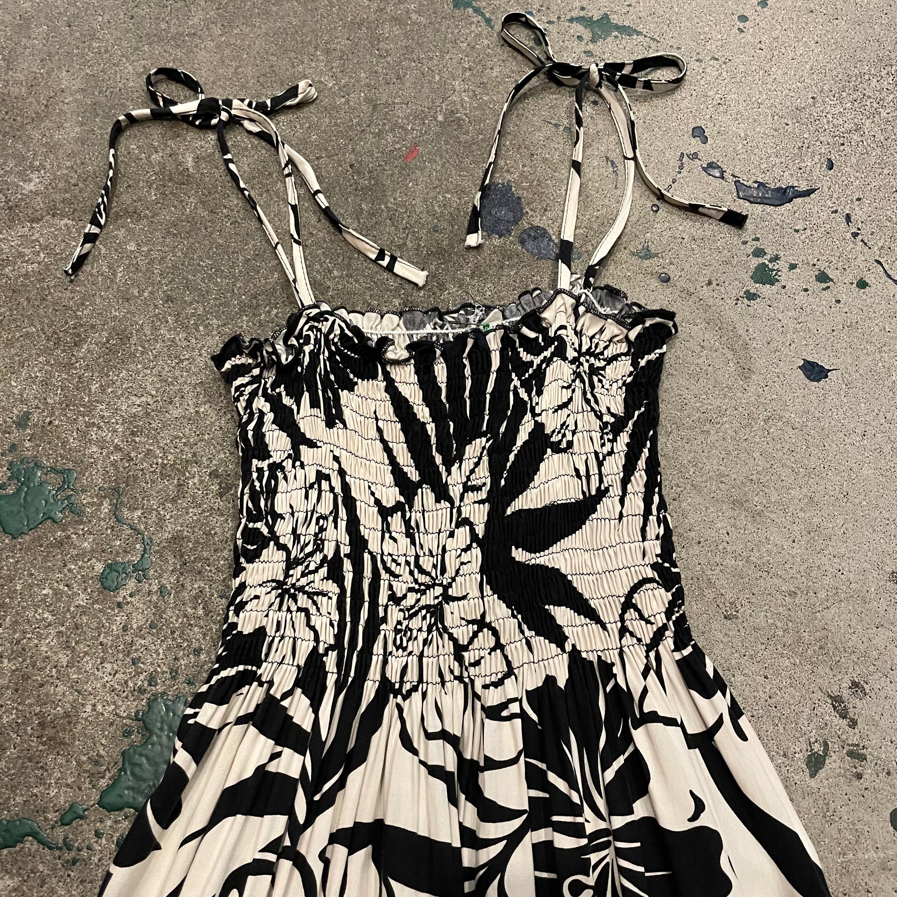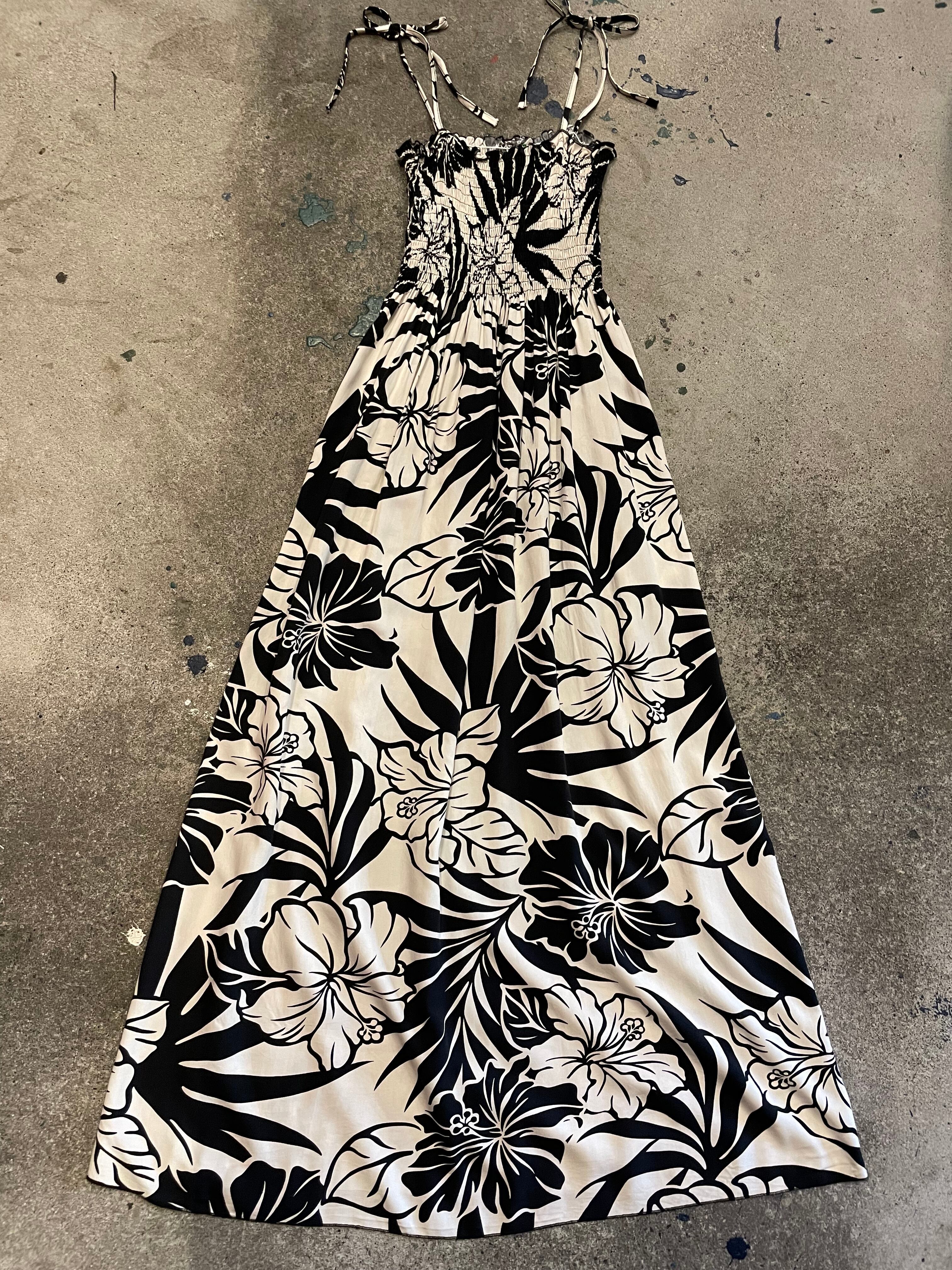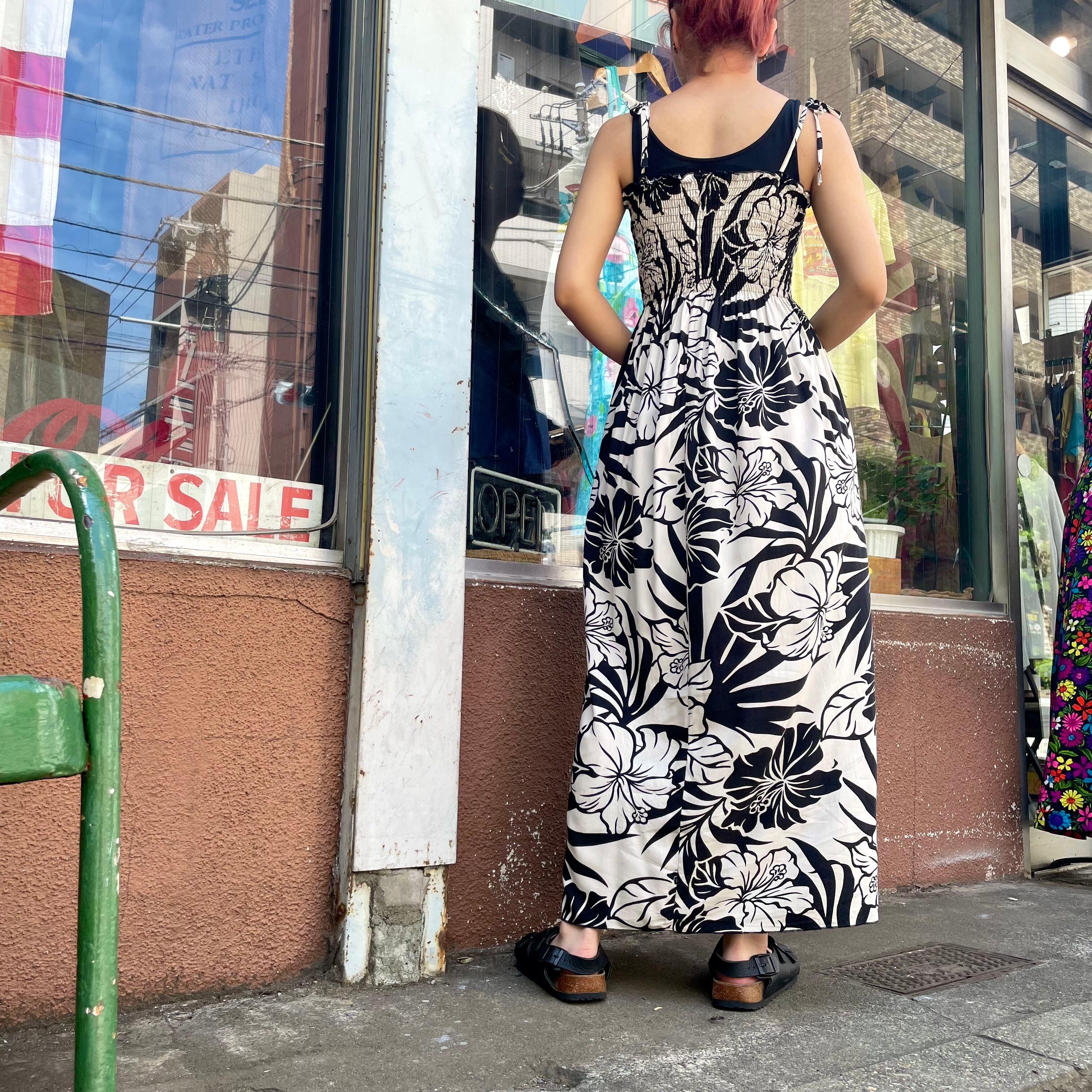 モノトーンのハイビスカス柄のキャミソールワンピースです。