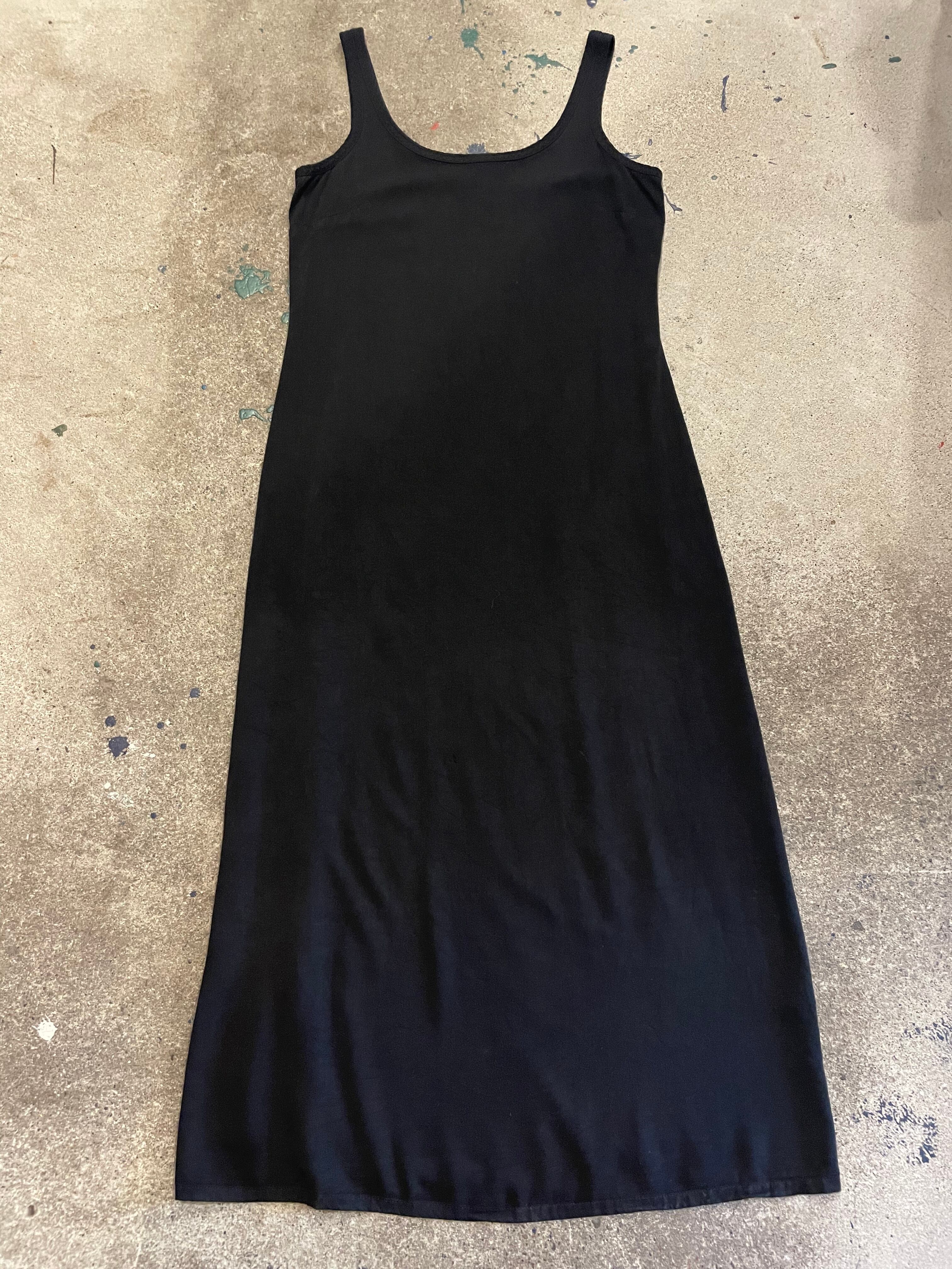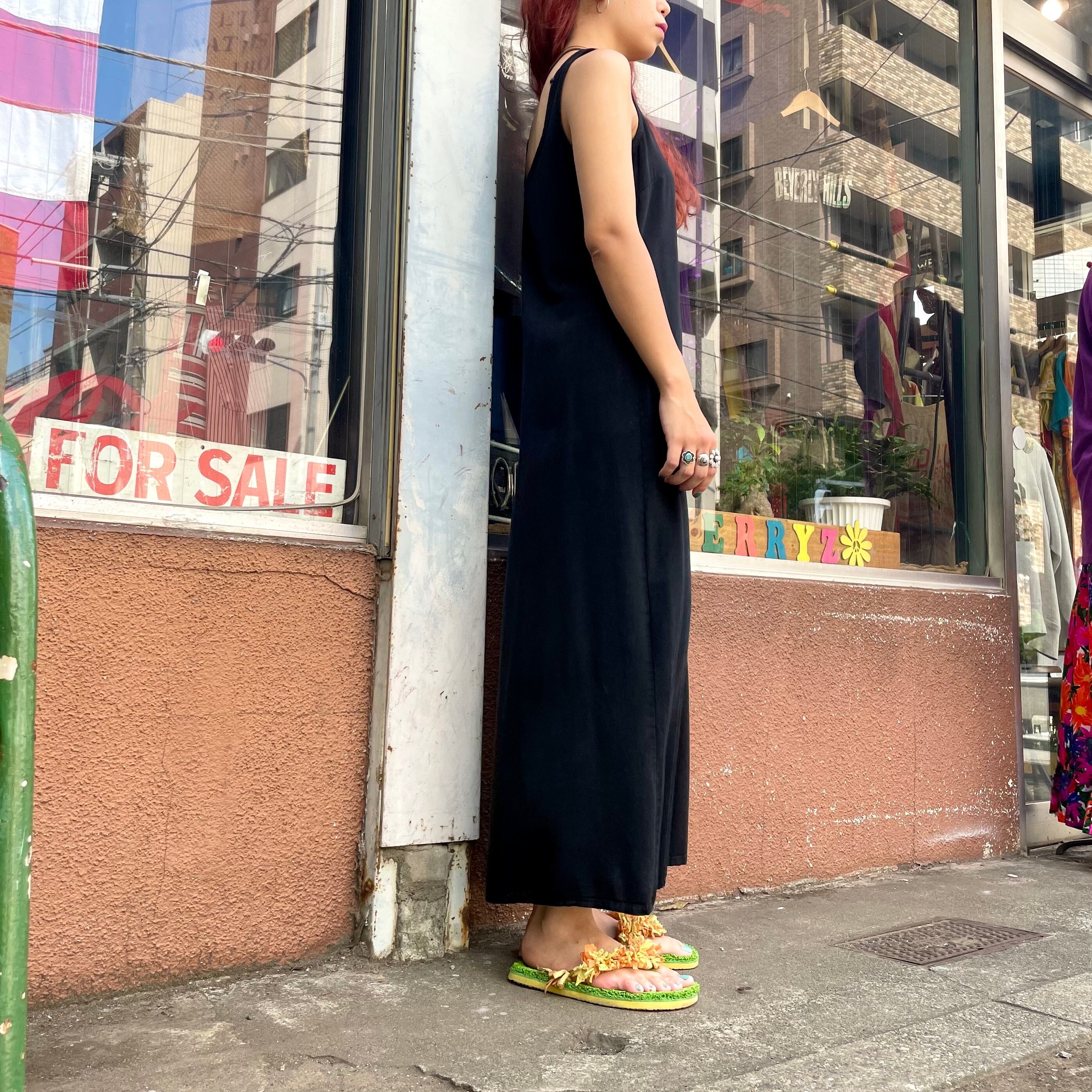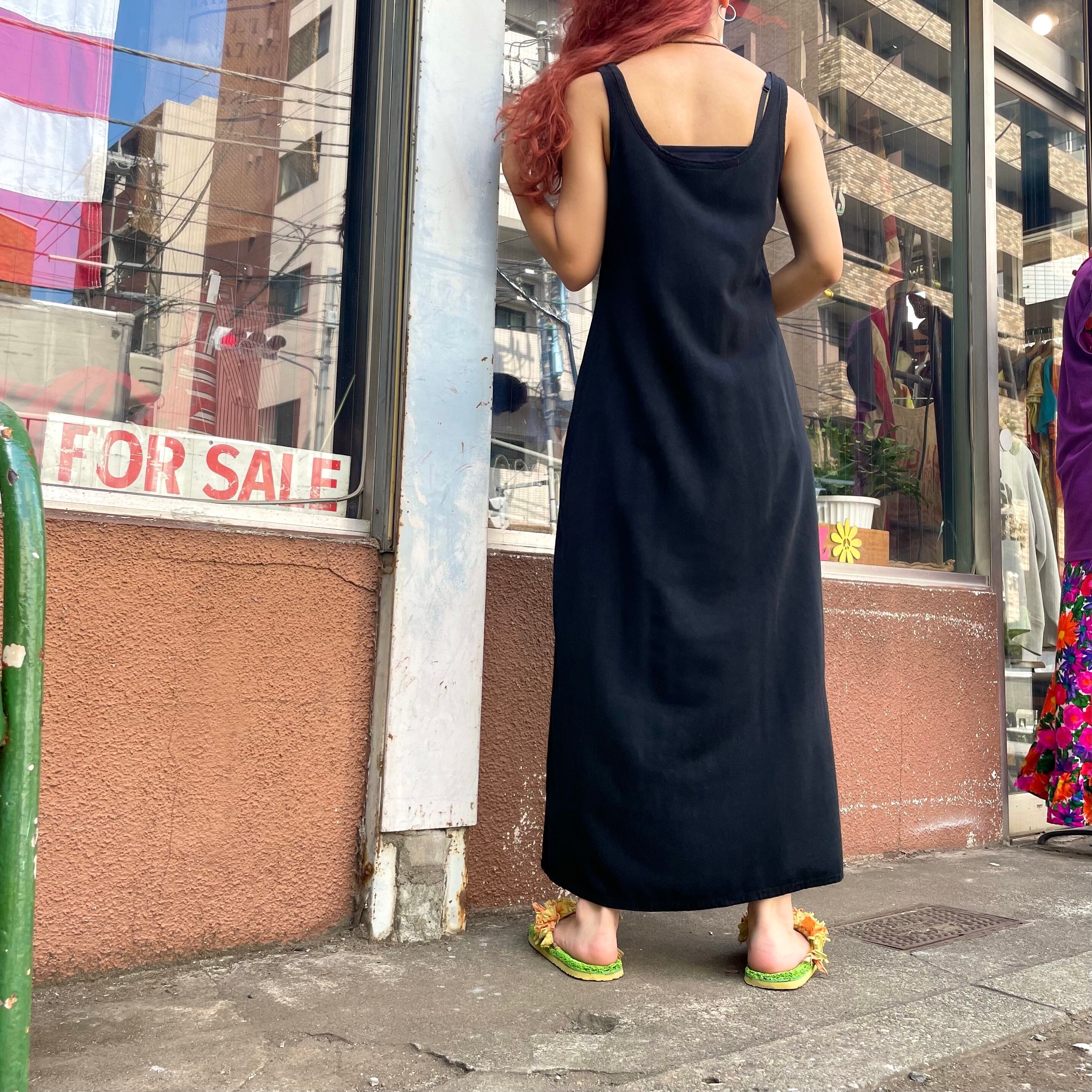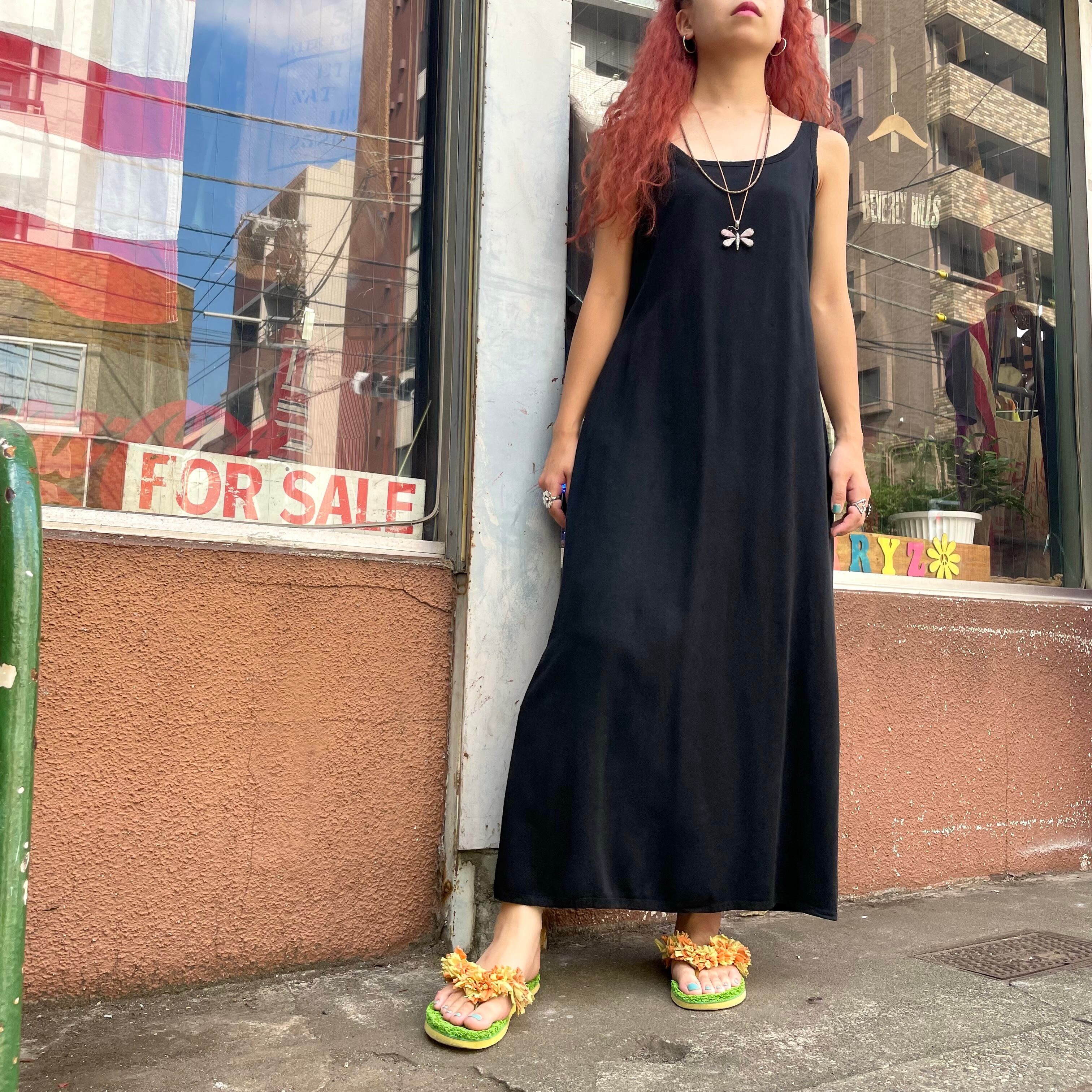 しっかり厚みのあるレーヨン素材のワンピースです。真っ黒でとてもシンプルです。