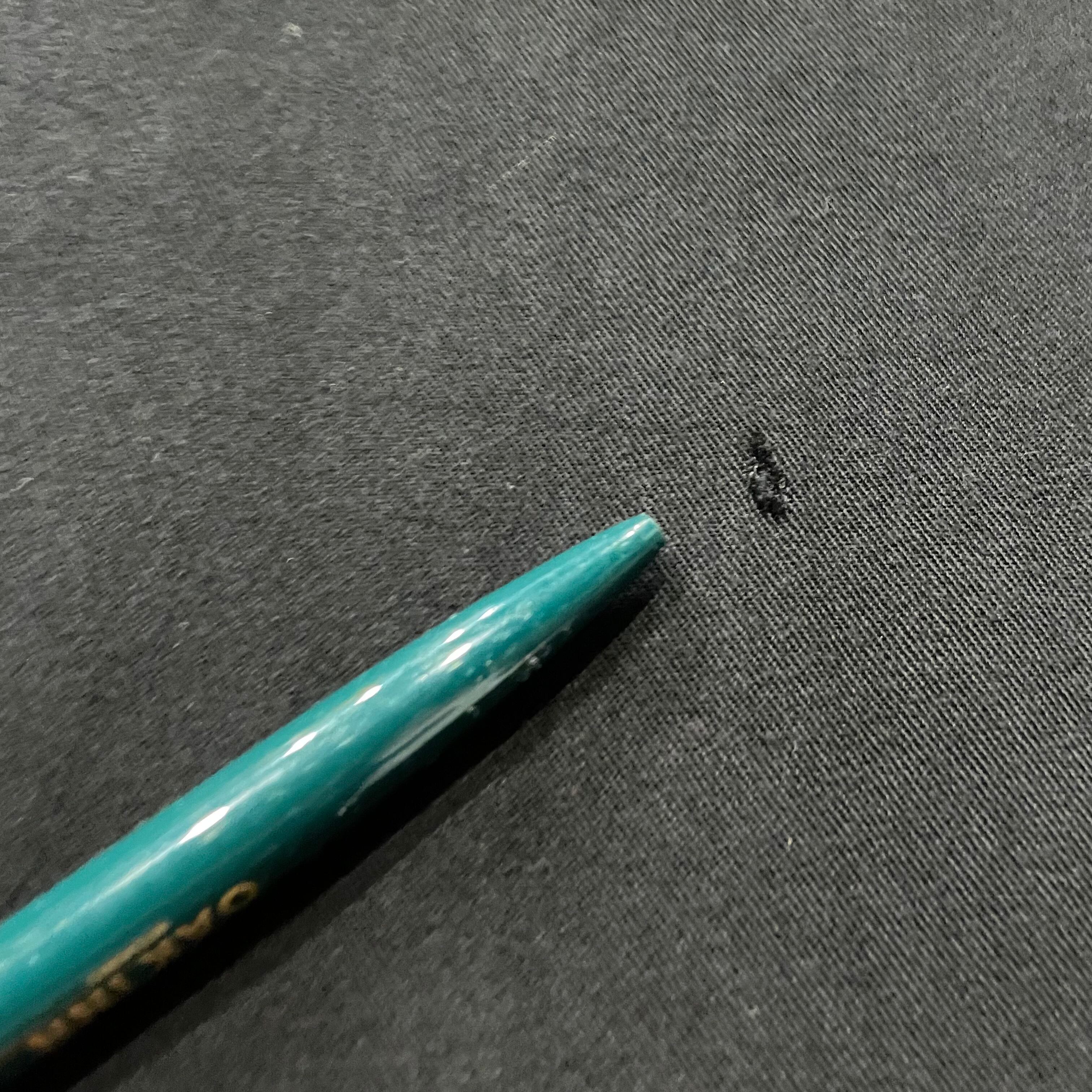 小さい傷が数カ所、よく見ると裾の方を中心にシワの跡があります。