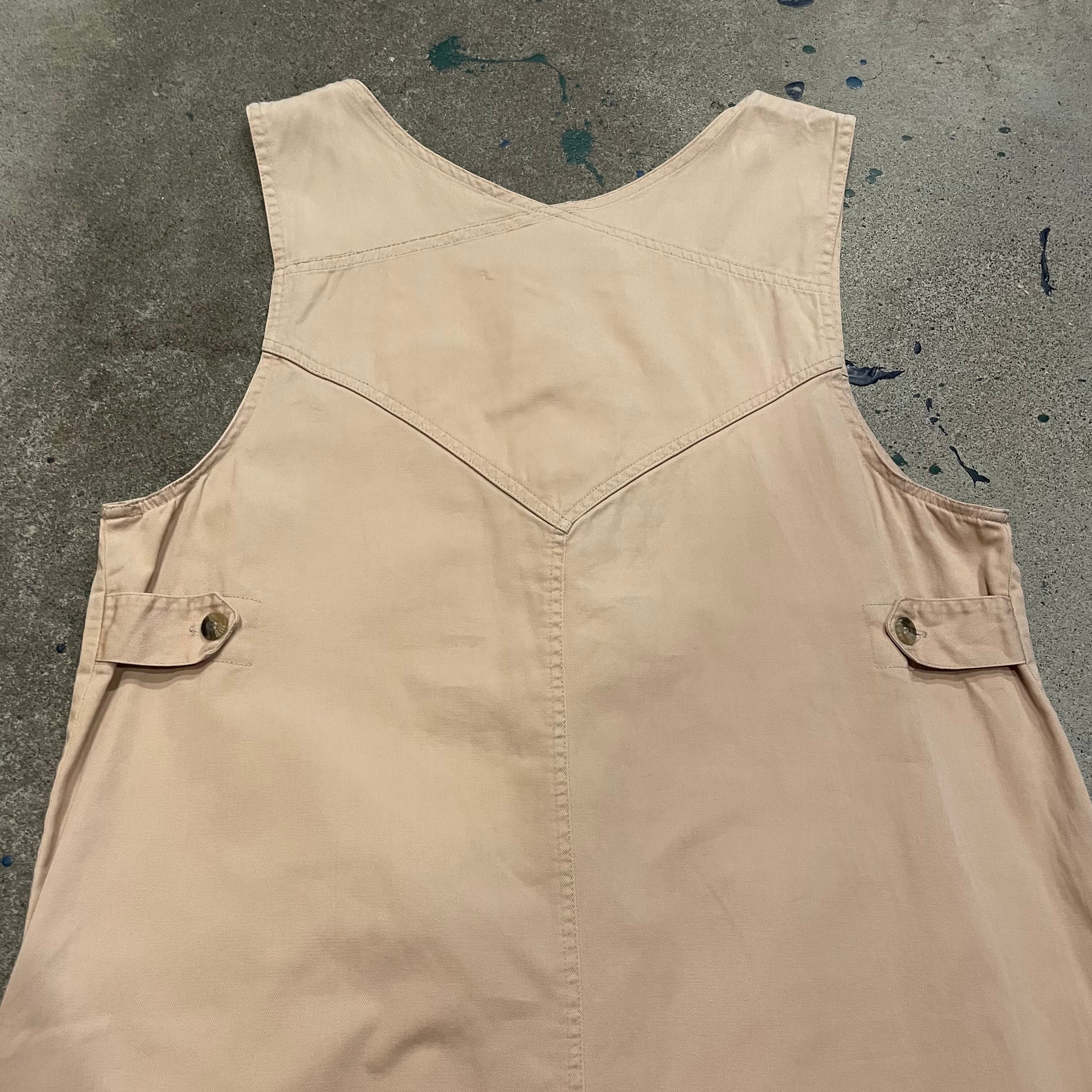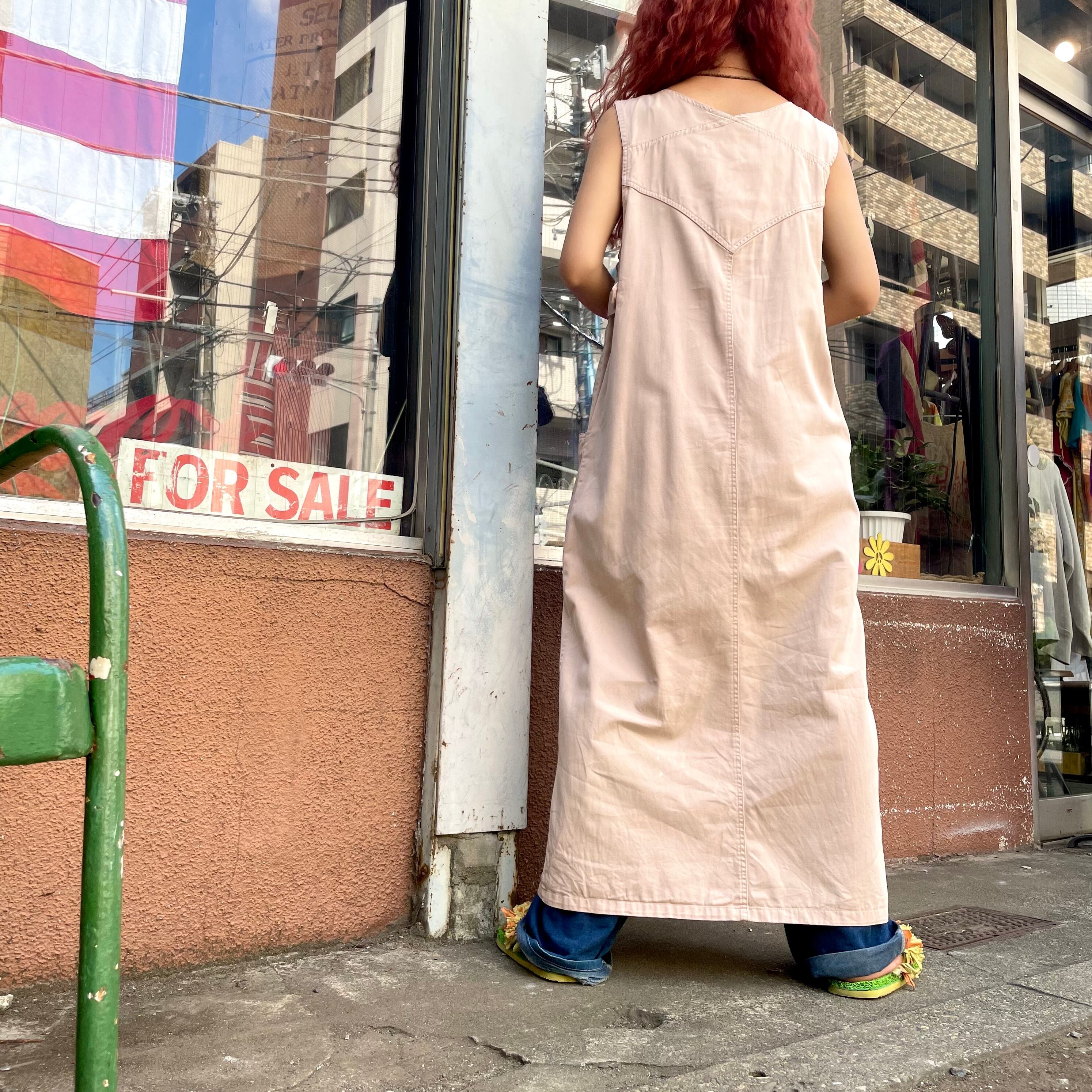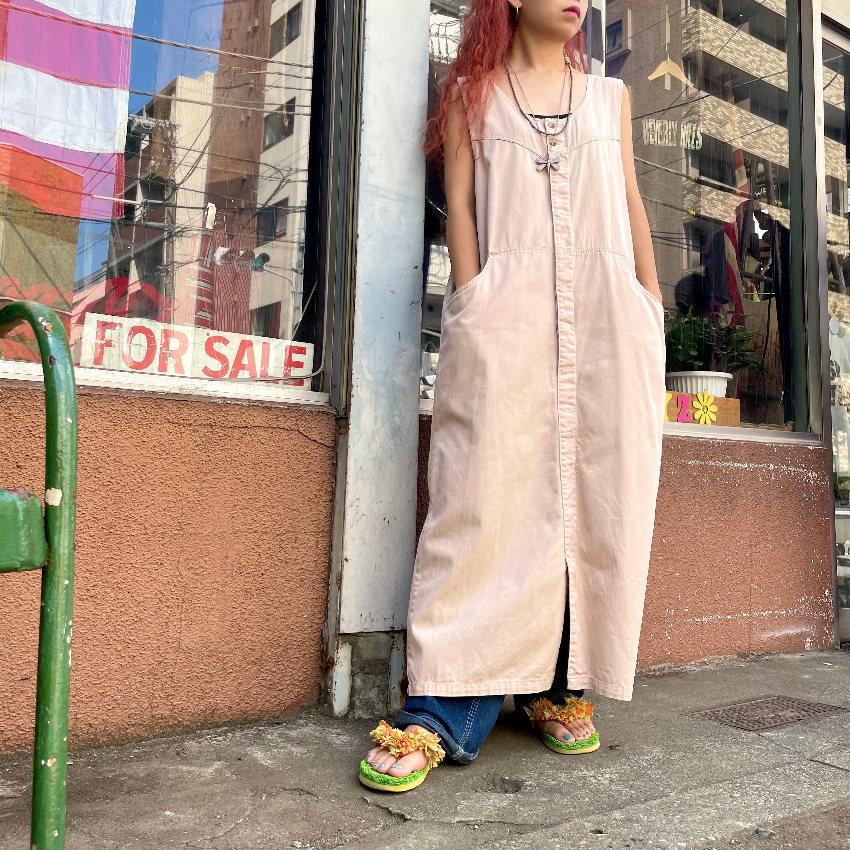ゆったり大きめサイズのコットンワンピースです。大きなポケットやゴワッとした素材感がワークな雰囲気でかわいいです。