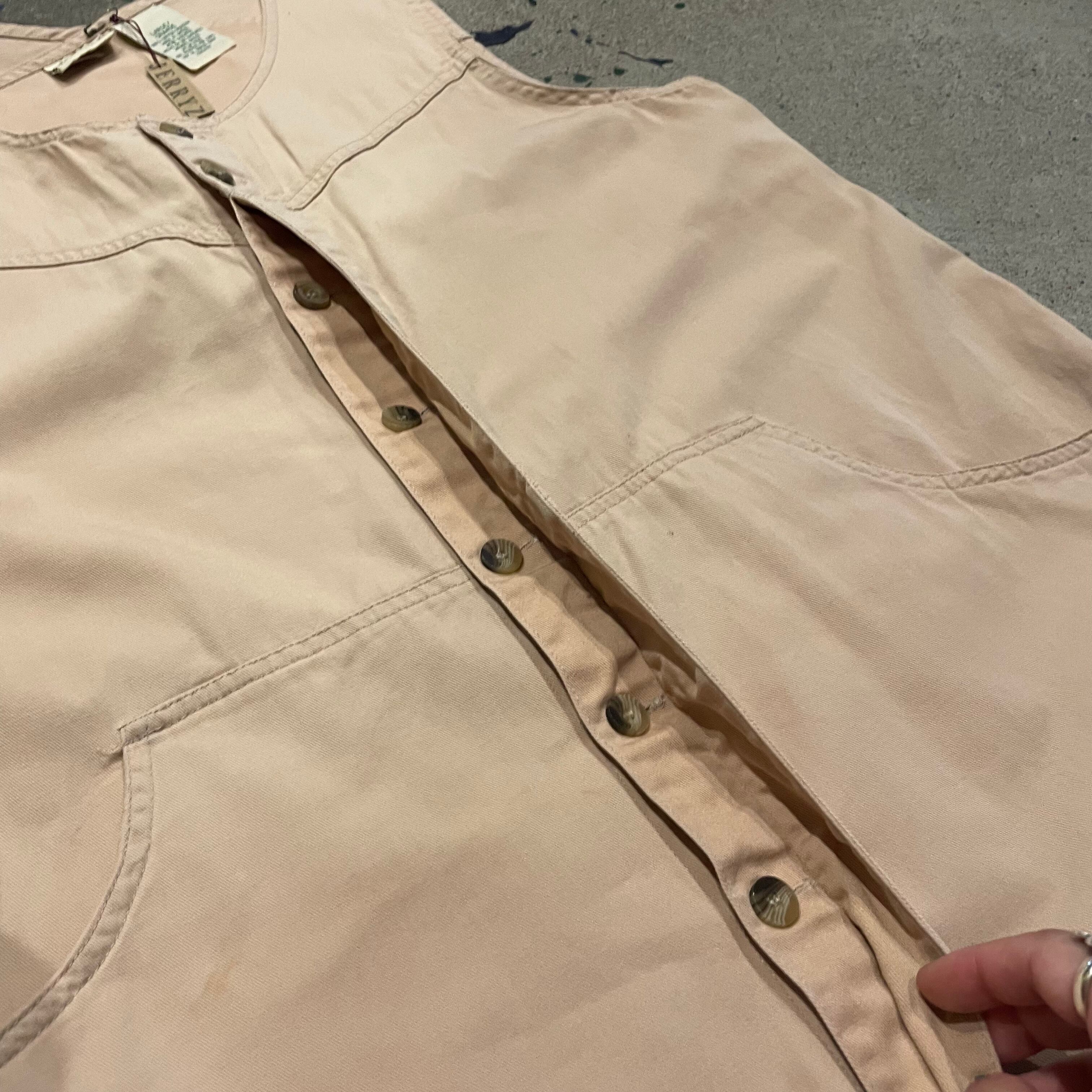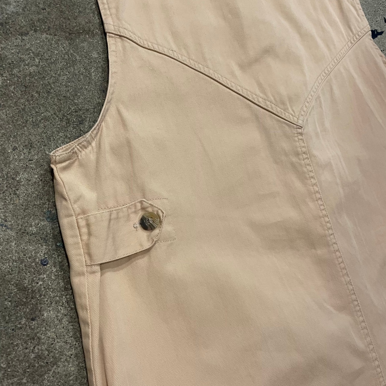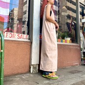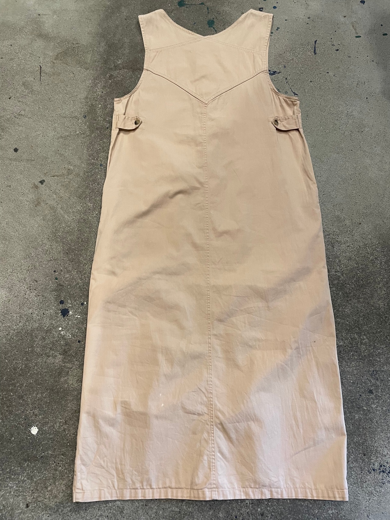 ゆったり大きめサイズのコットンワンピースです。大きなポケットやゴワッとした素材感がワークな雰囲気でかわいいです。