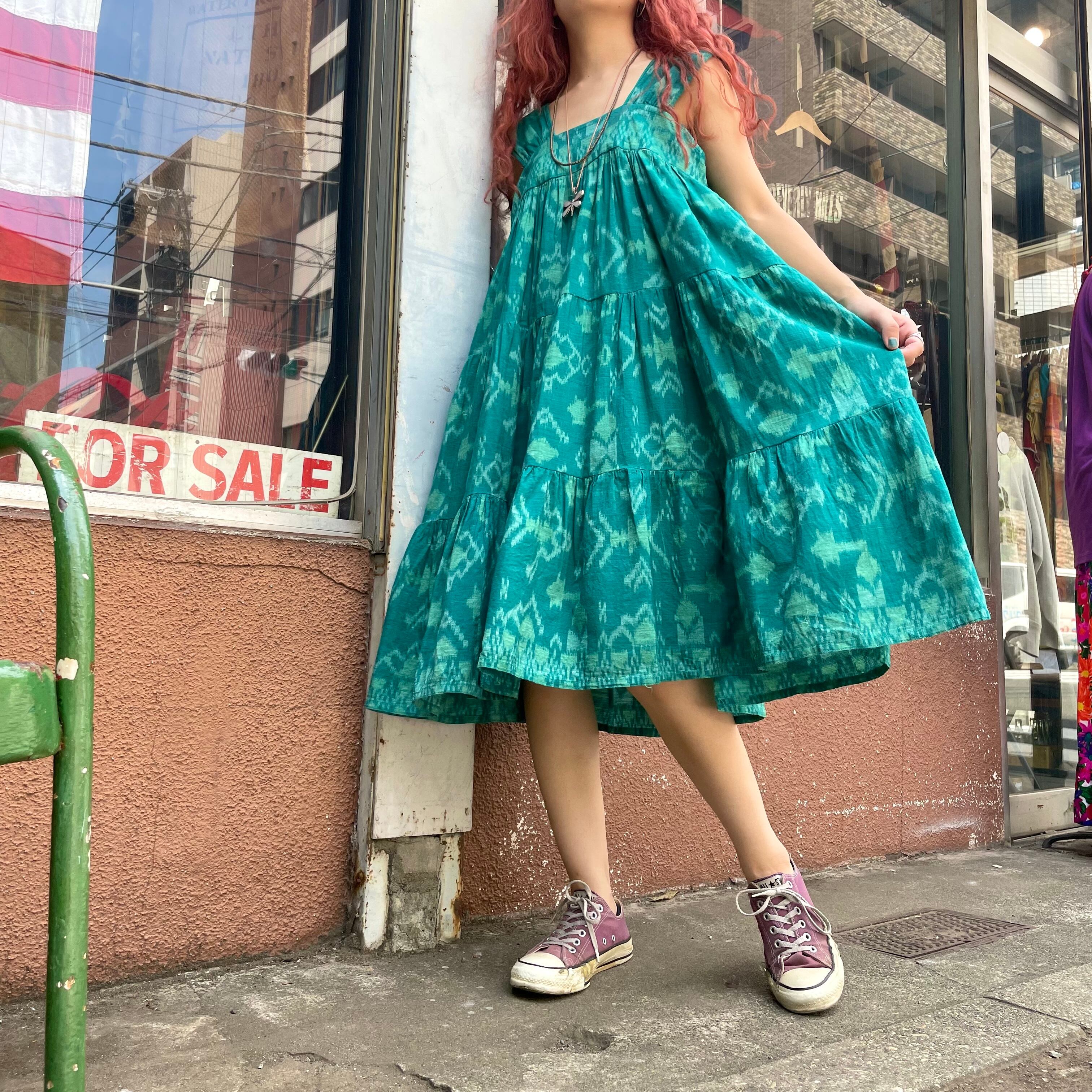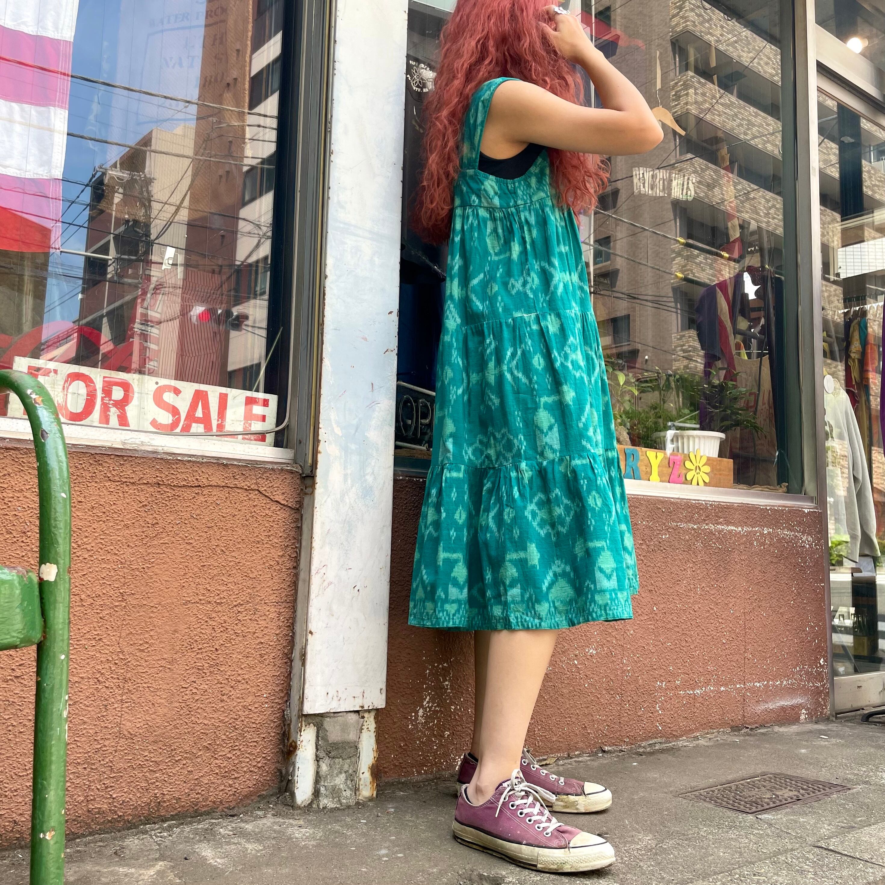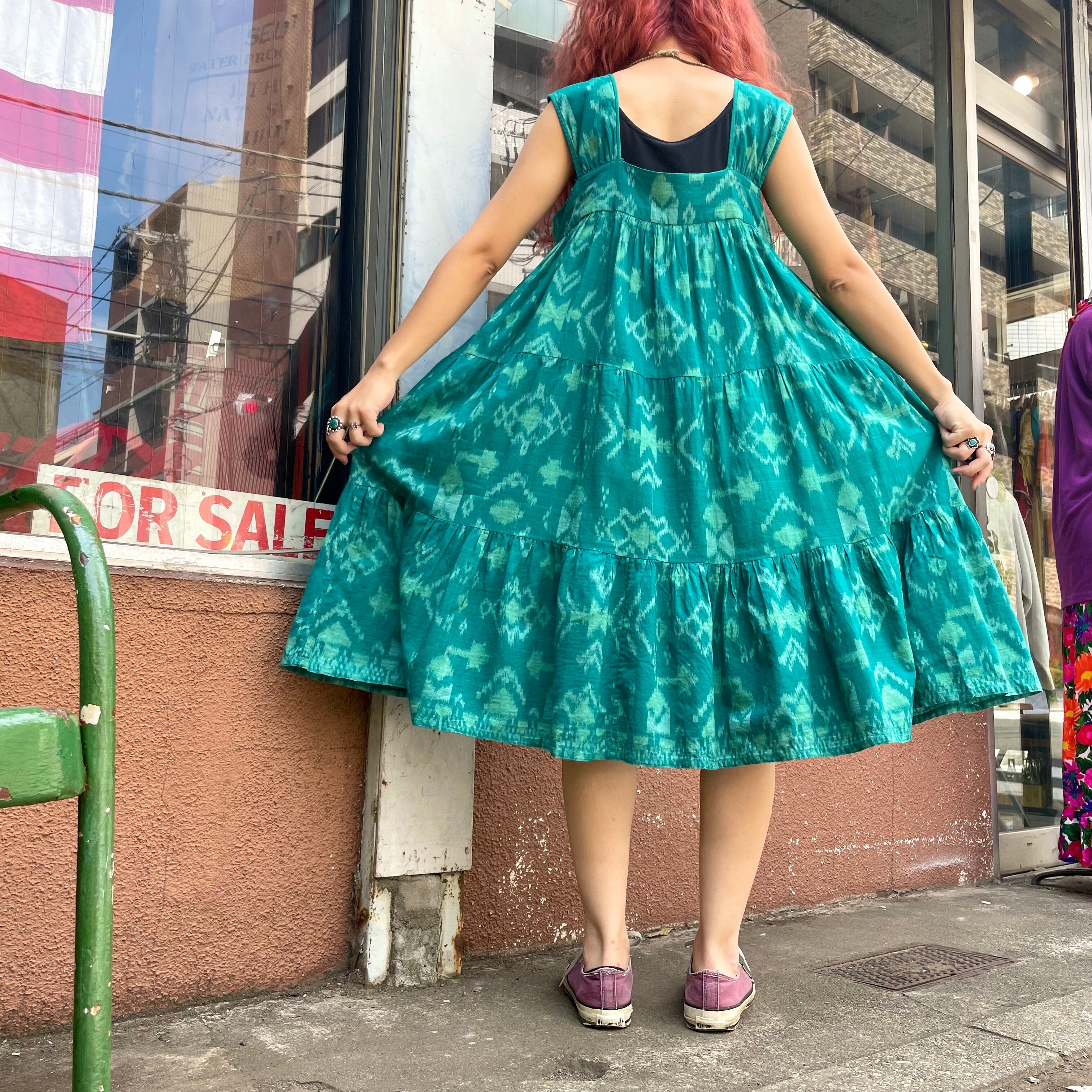 緑の渋めな模様が素敵なワンピースです。