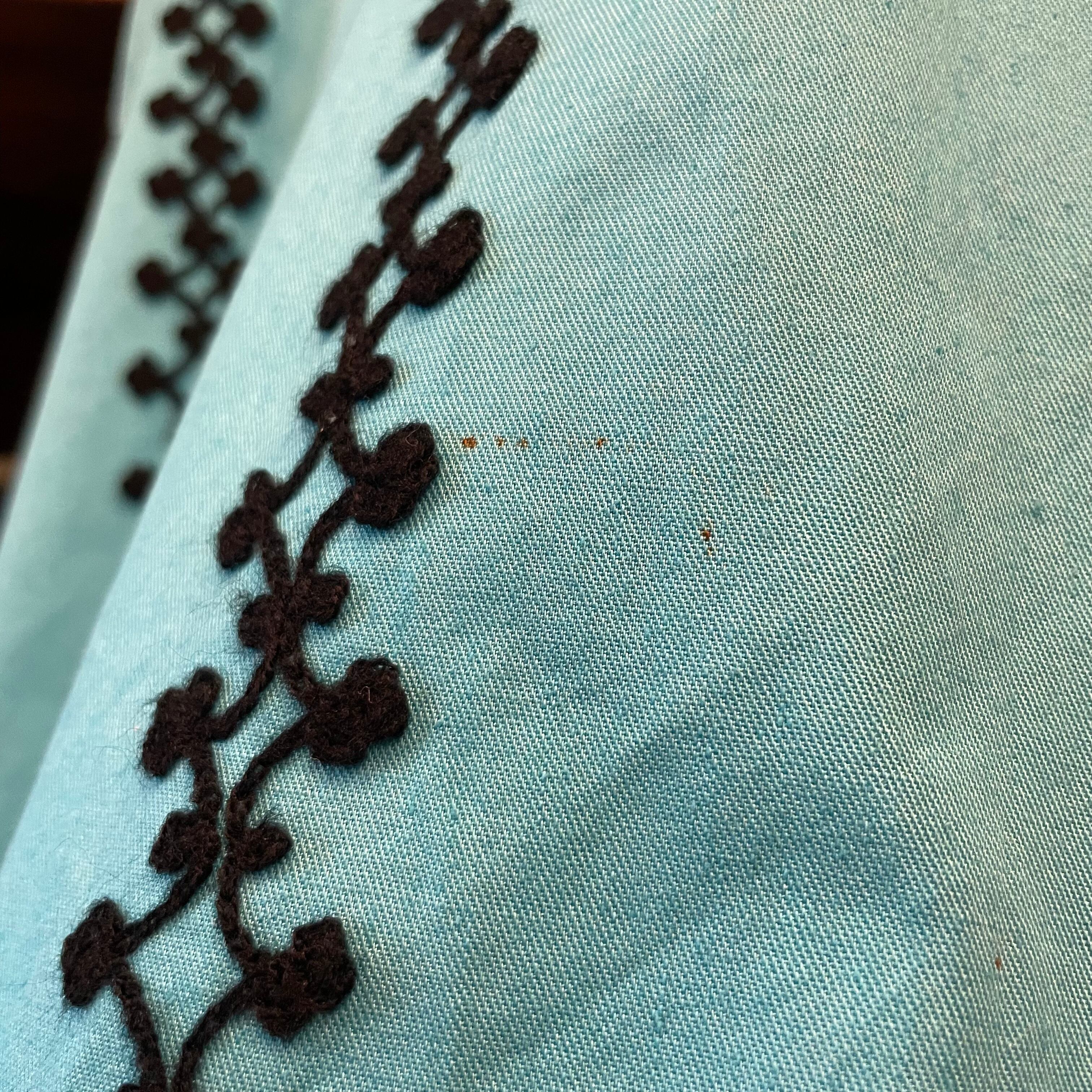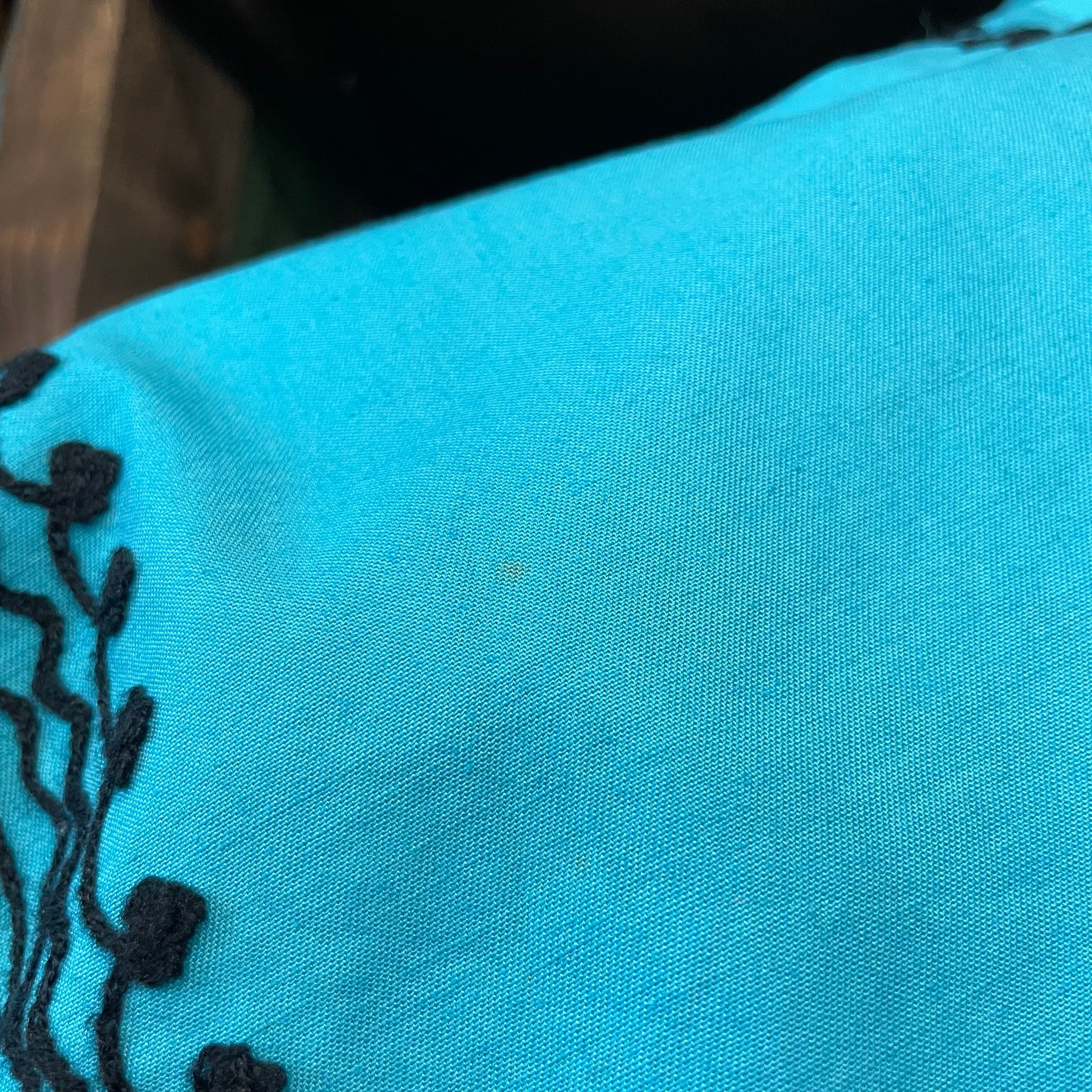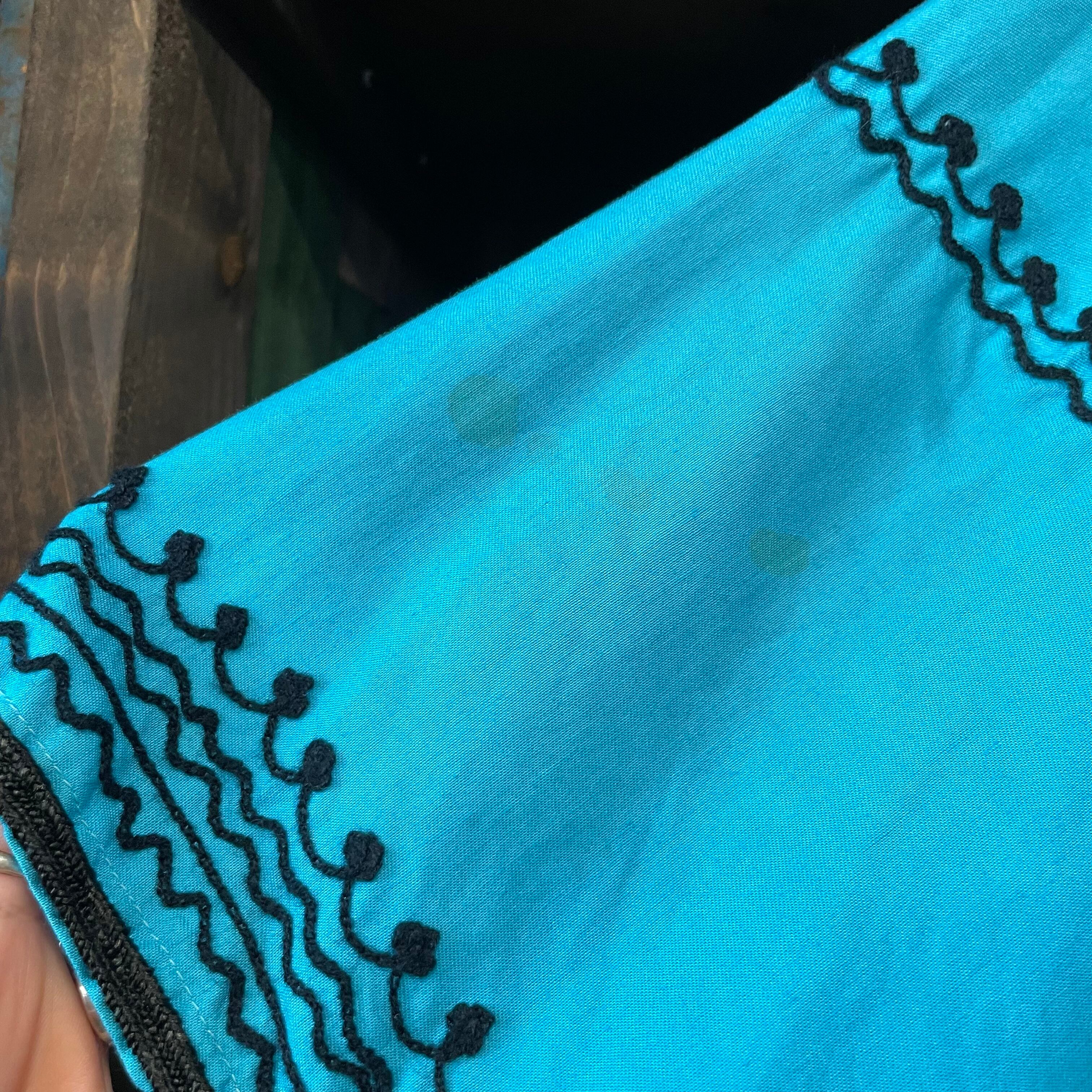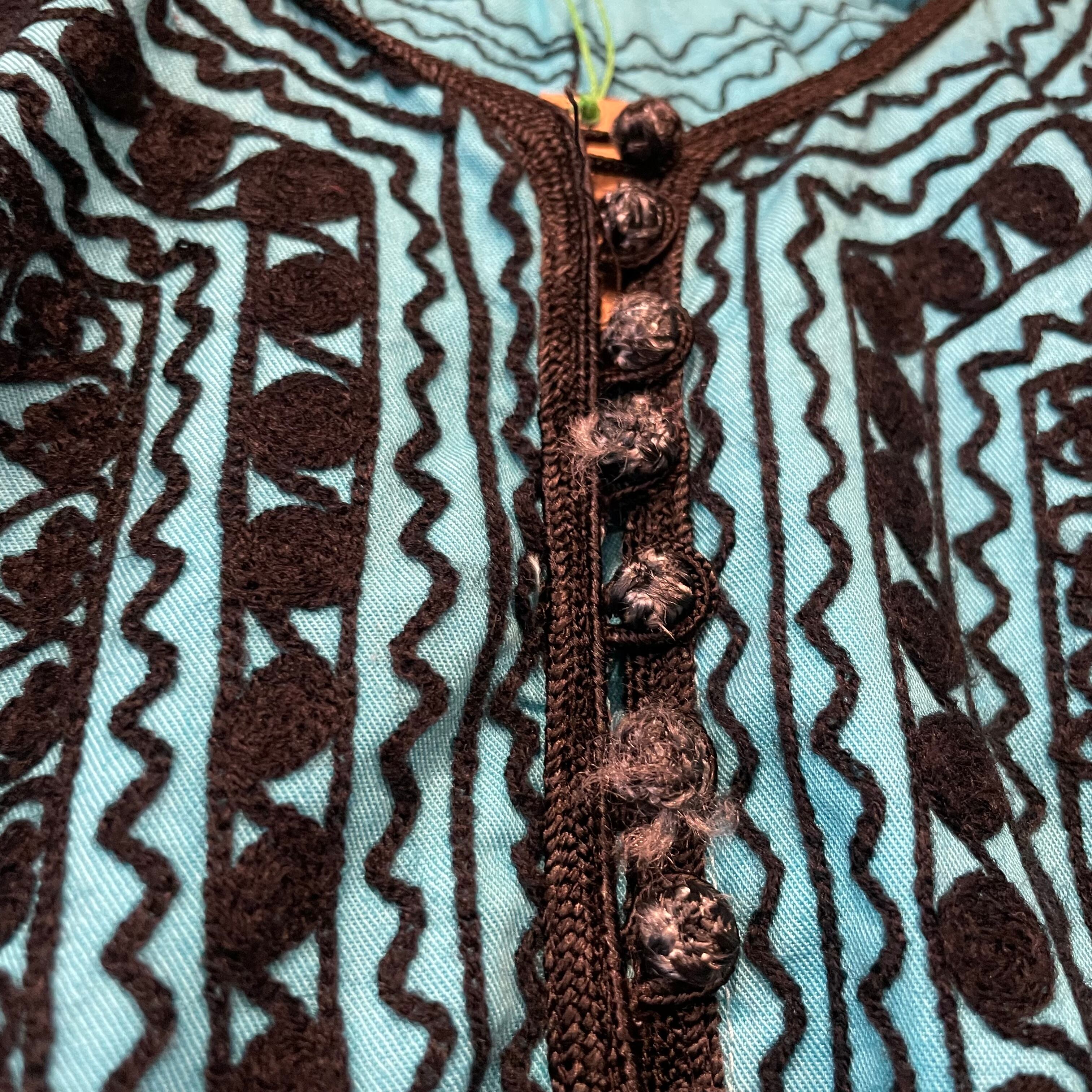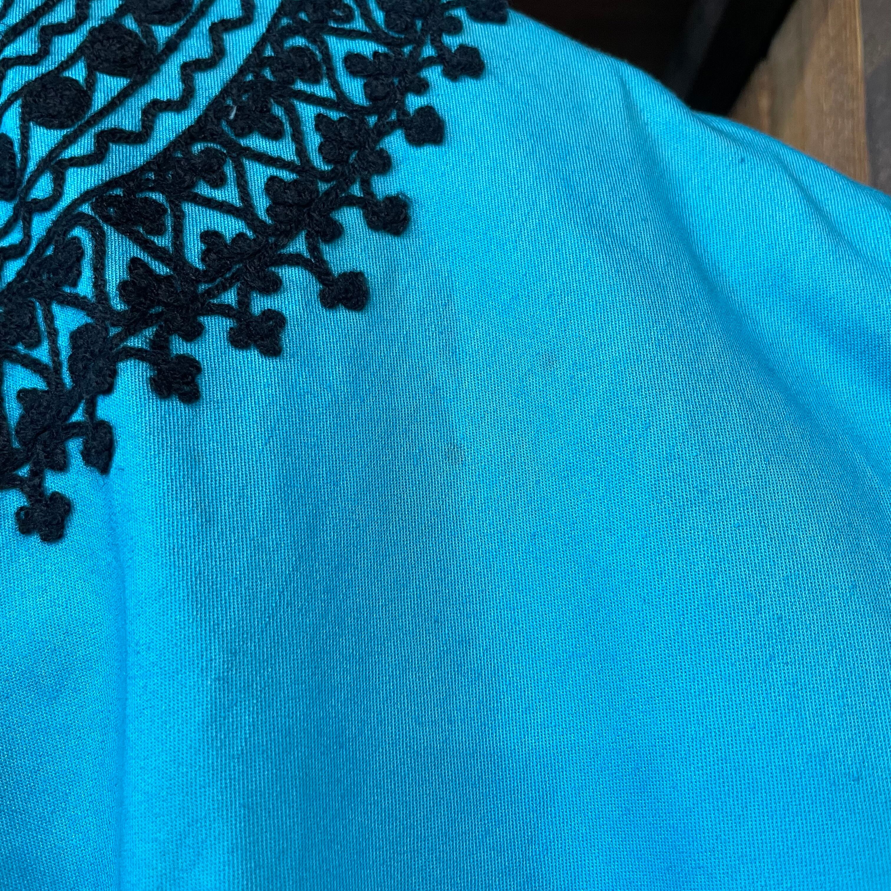 袖がフレアになっていてとても華やかで、幾何学模様の刺繍など全体的に異国感漂う素敵な一着です。