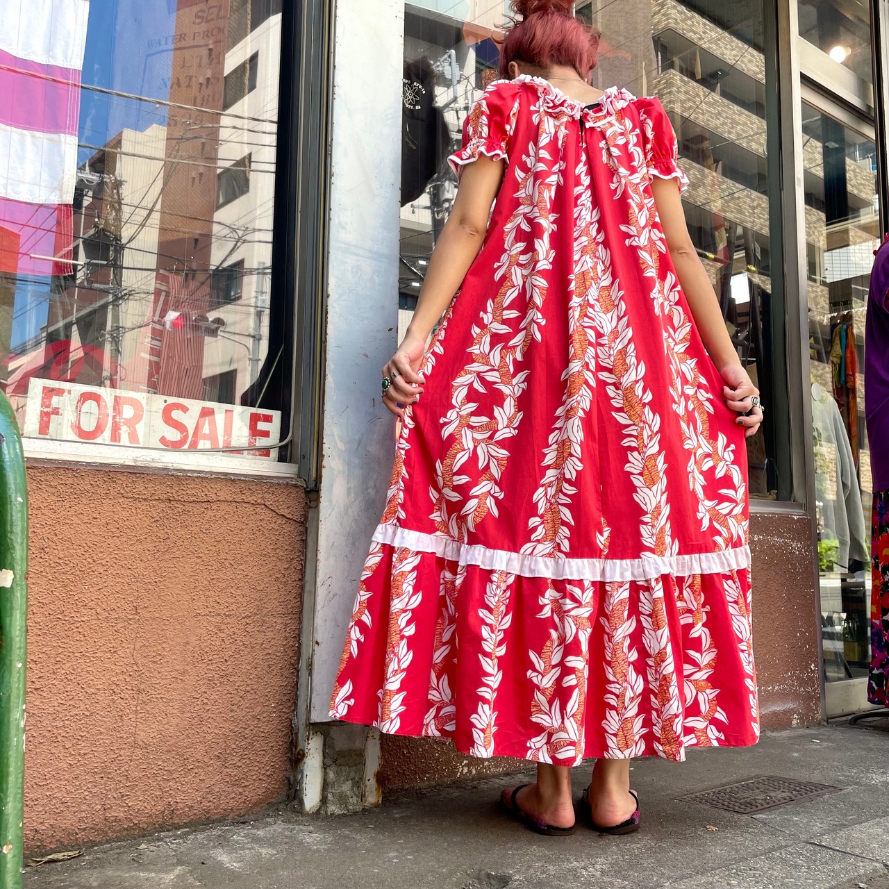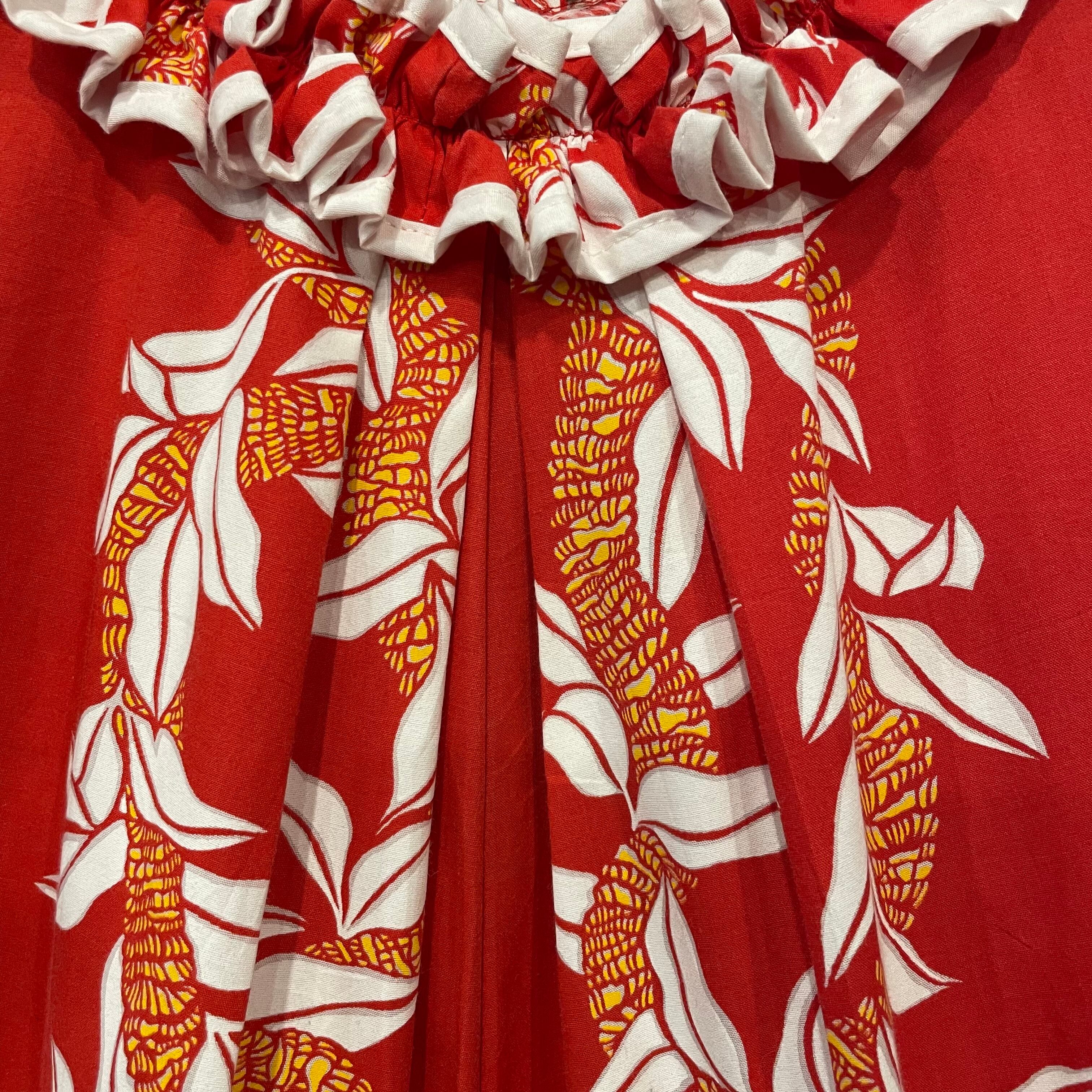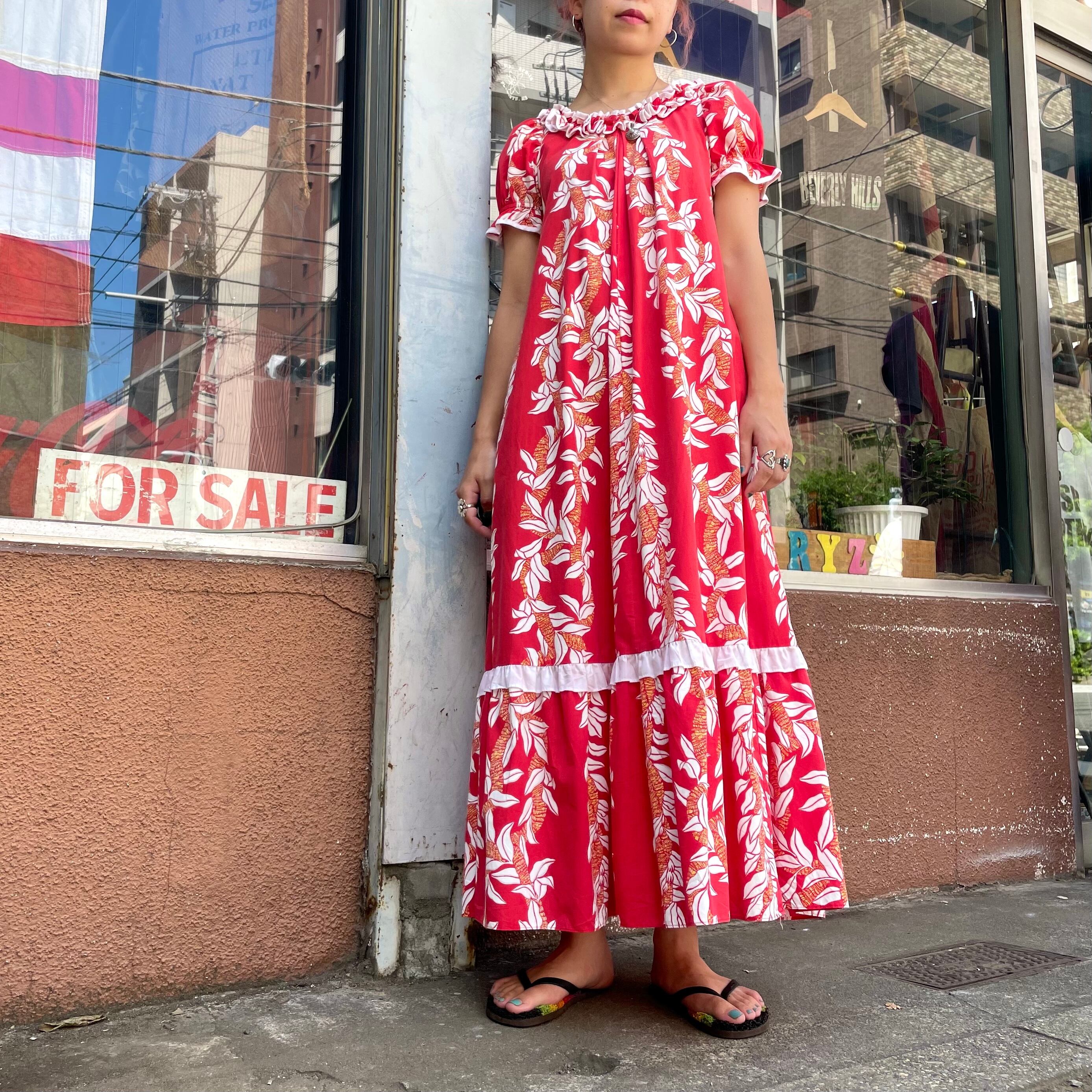 襟ぐりや袖口、裾切り替え部分がフリルになっていてとてもかわいいデザインです。