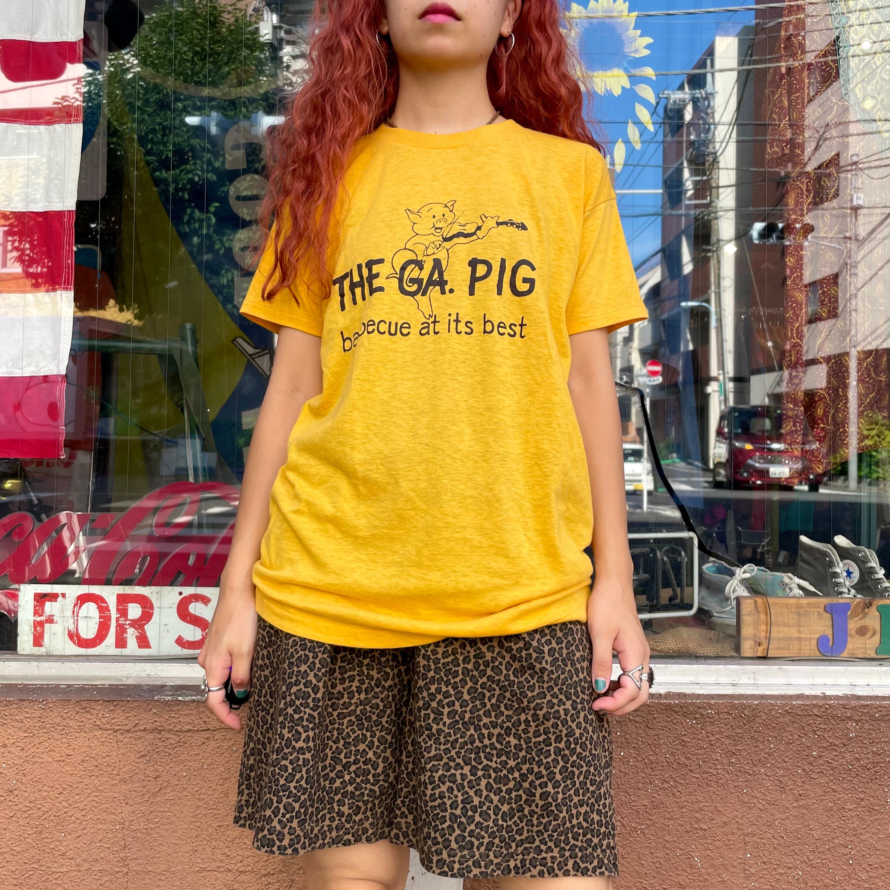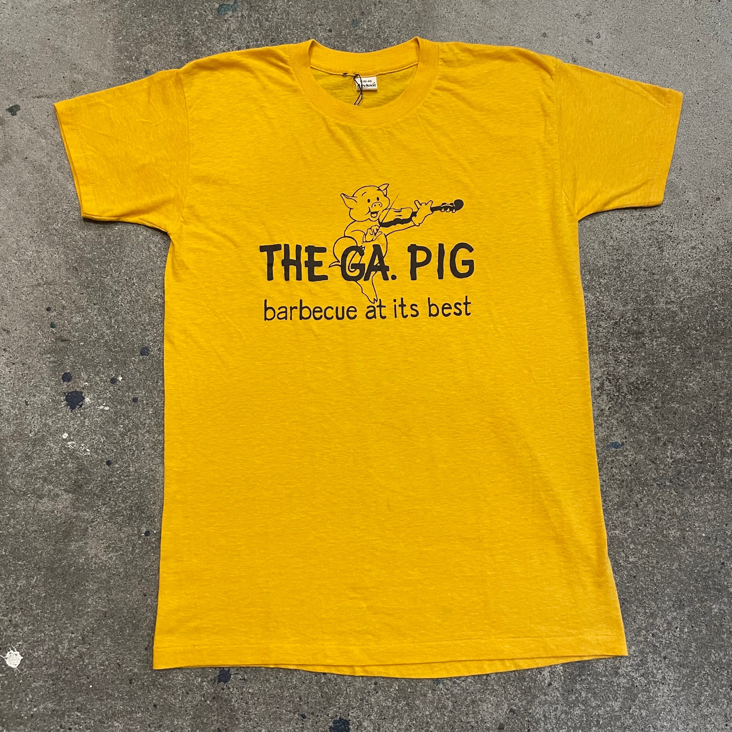 ジョージアピッグというブタのバーベキューが食べられるお店のロゴがプリントされたTシャツです。
