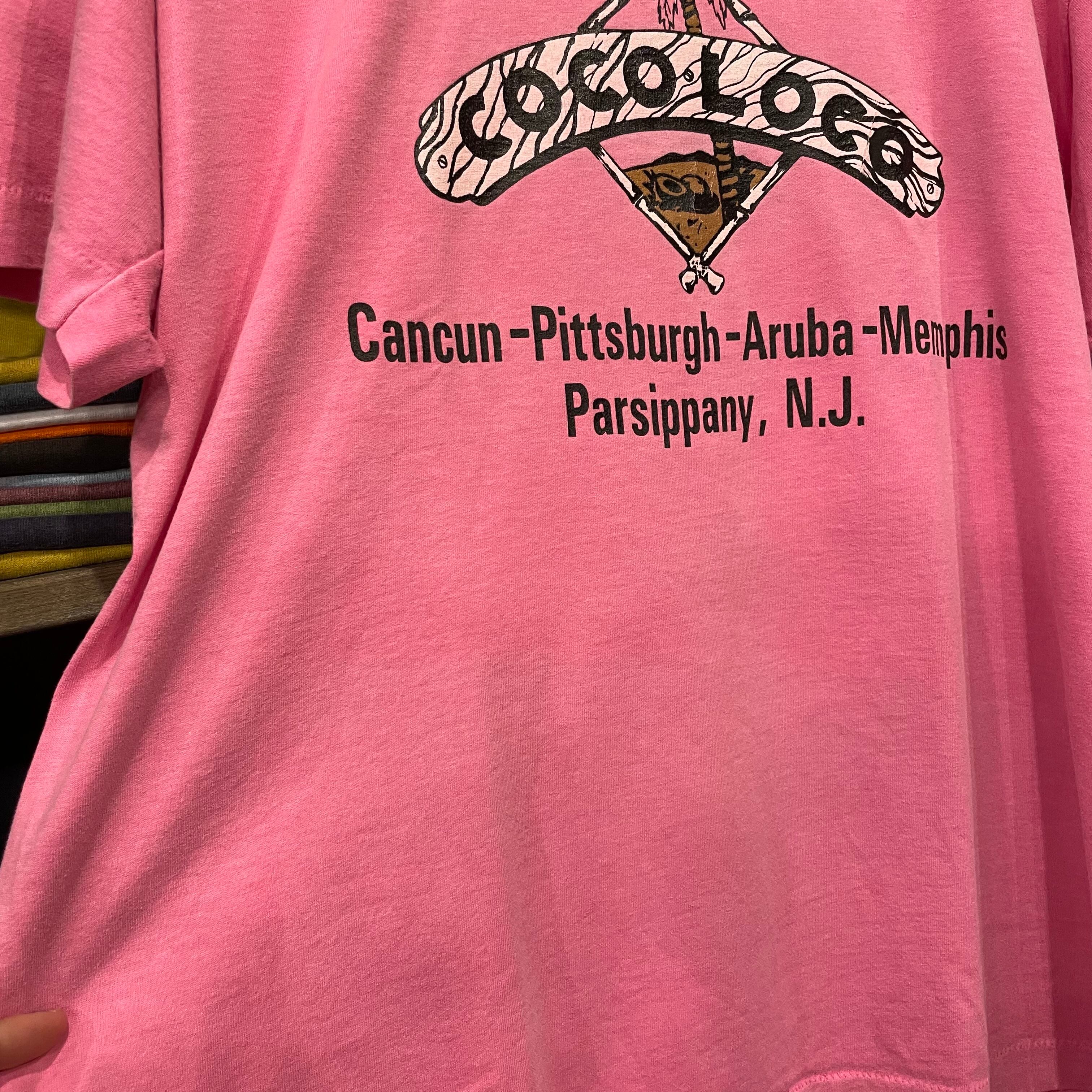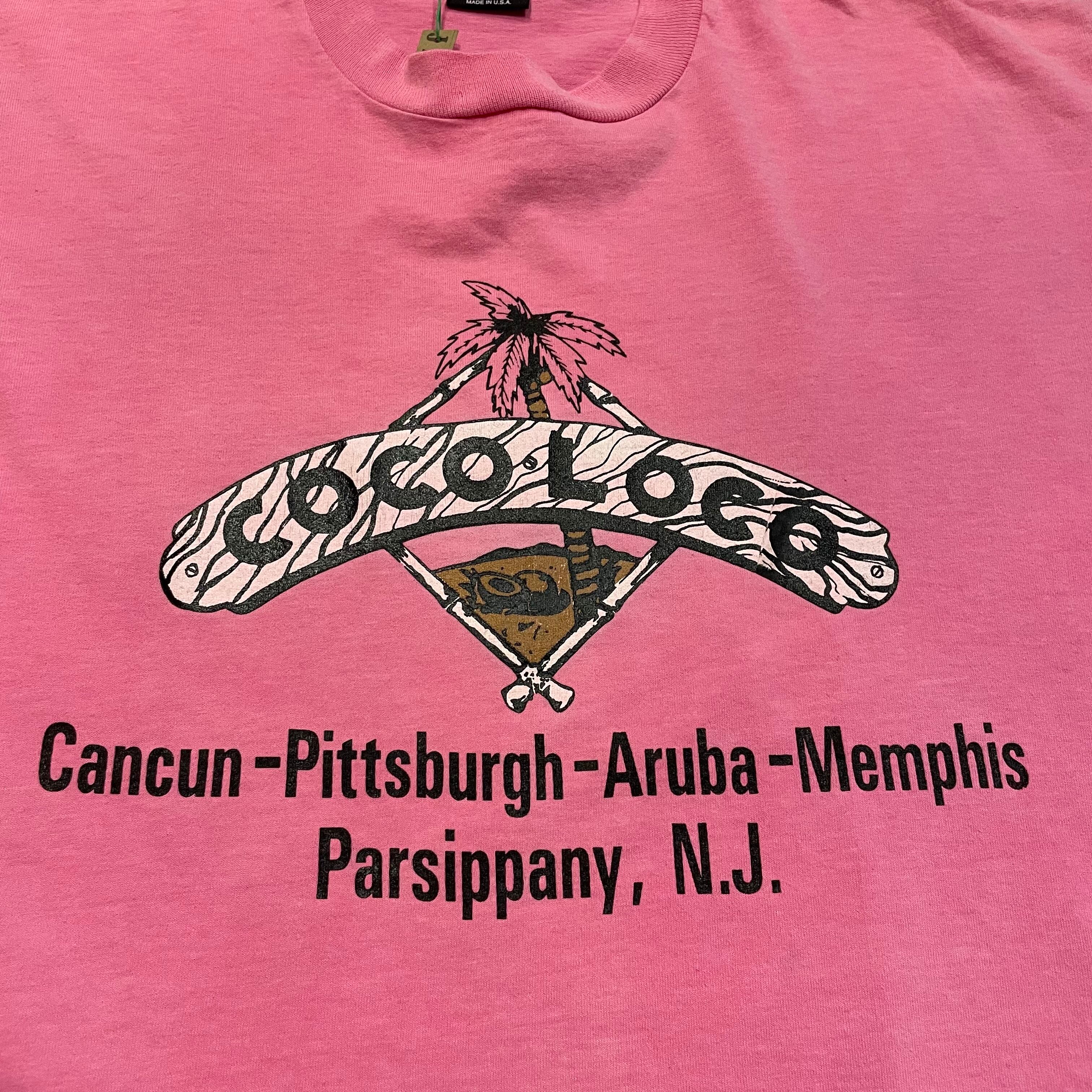 COCO LOCOという名前の飲食店のTシャツだと思われます。夏っぽくヤシの木デザインも入っていて海辺な雰囲気が良い感じです。