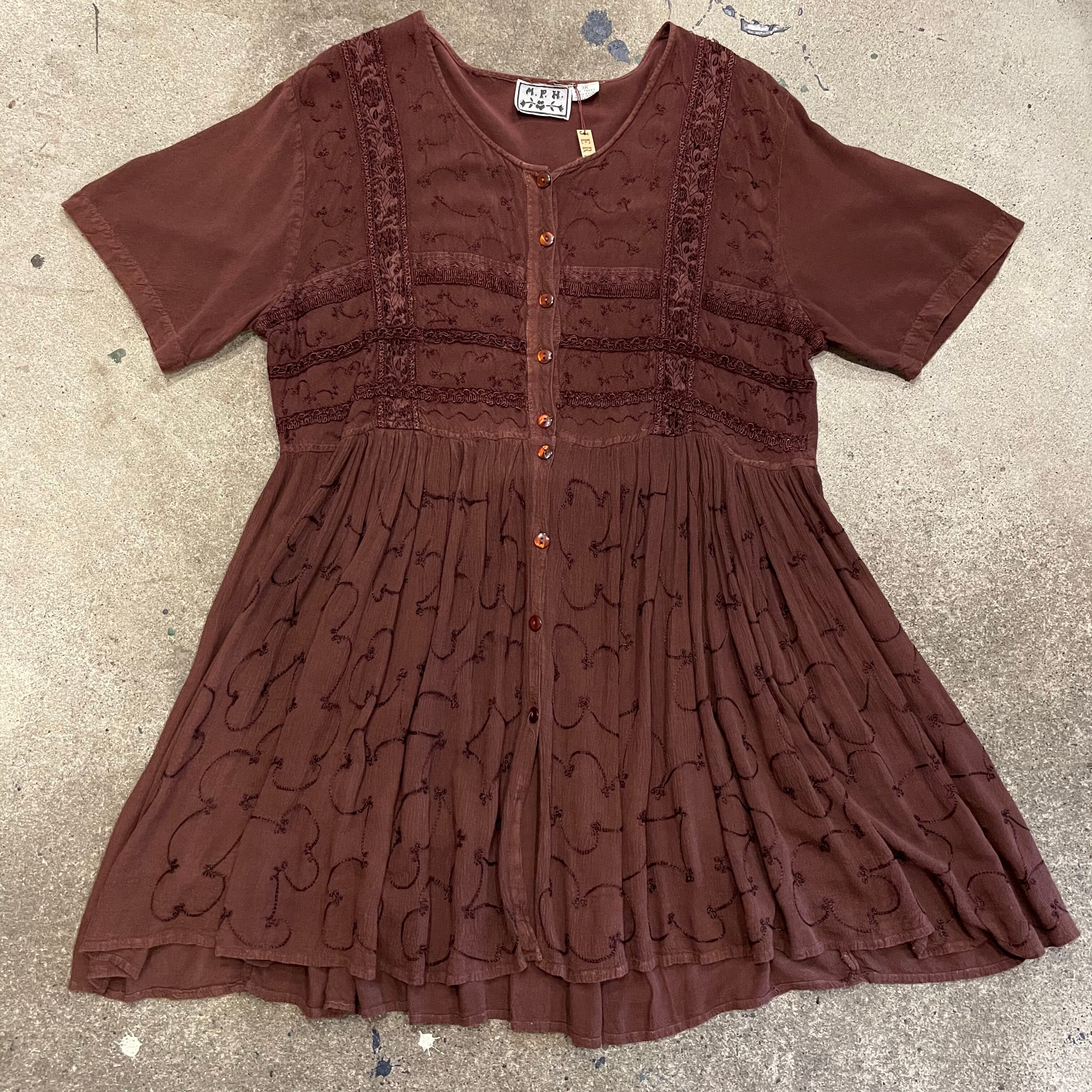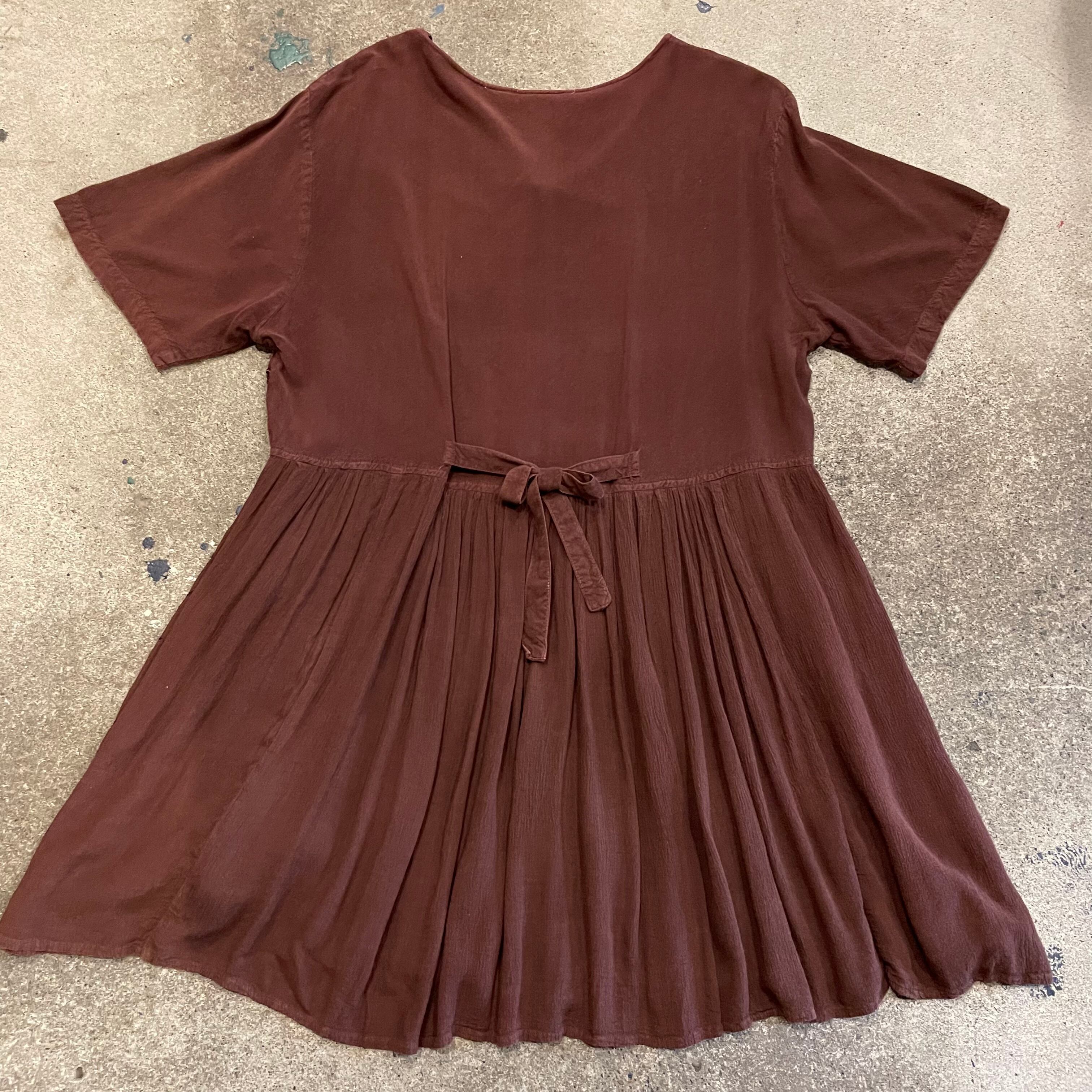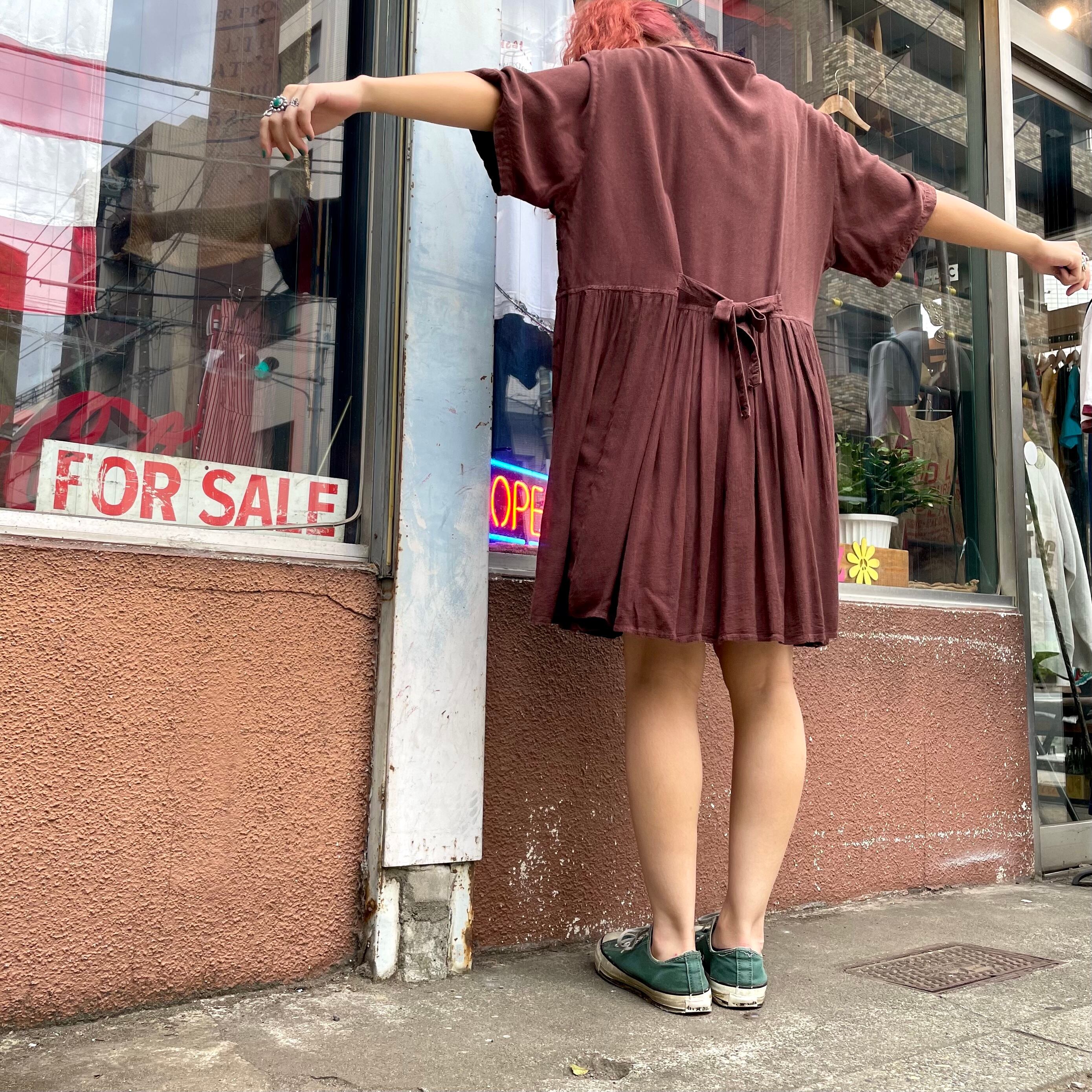 薄手のレーヨンで、かなりゆったり大きめのサイズですので風通しも良く夏にぴったりな一着です。落ち着いた色味なので短いだけでも子供っぽくならないかと思います。パンツを重ねたり、前を開けて羽織りとして着るのもおすすめです!