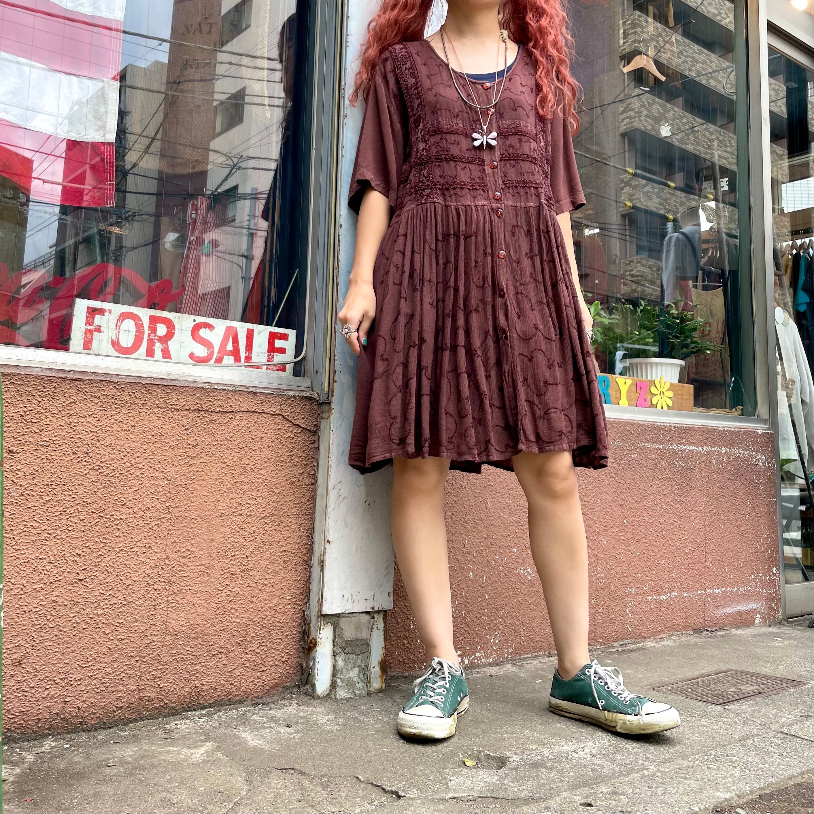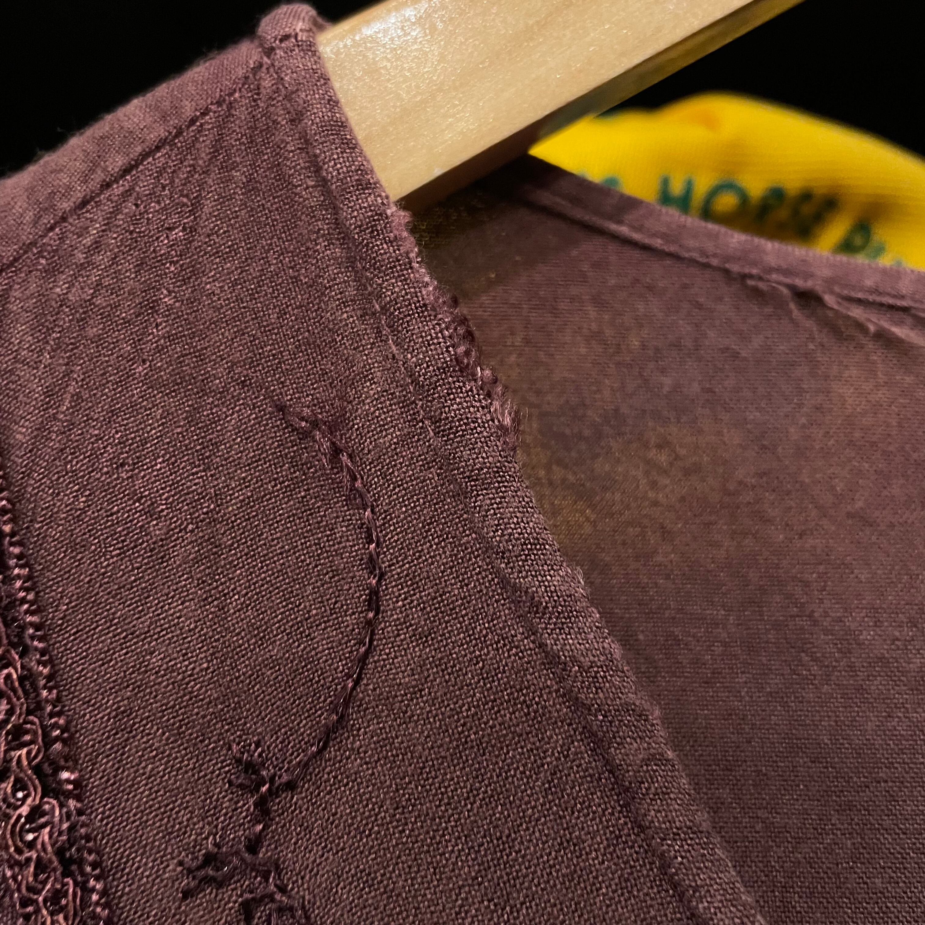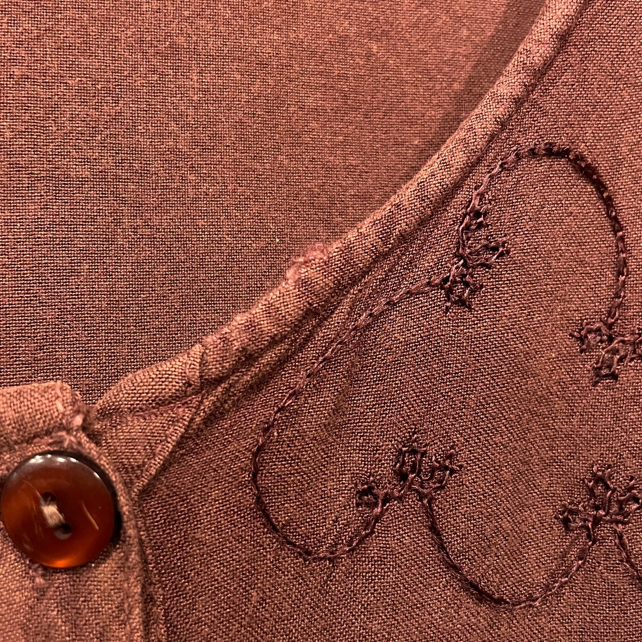 違う色の糸で縫われている箇所、刺繍のほつれ襟ぐりのダメージ等使用感のある商品ですので古着にご理解のある方のご購入をお願い致します。