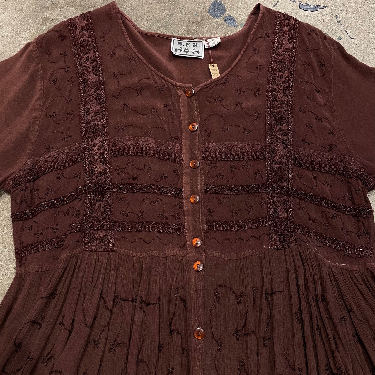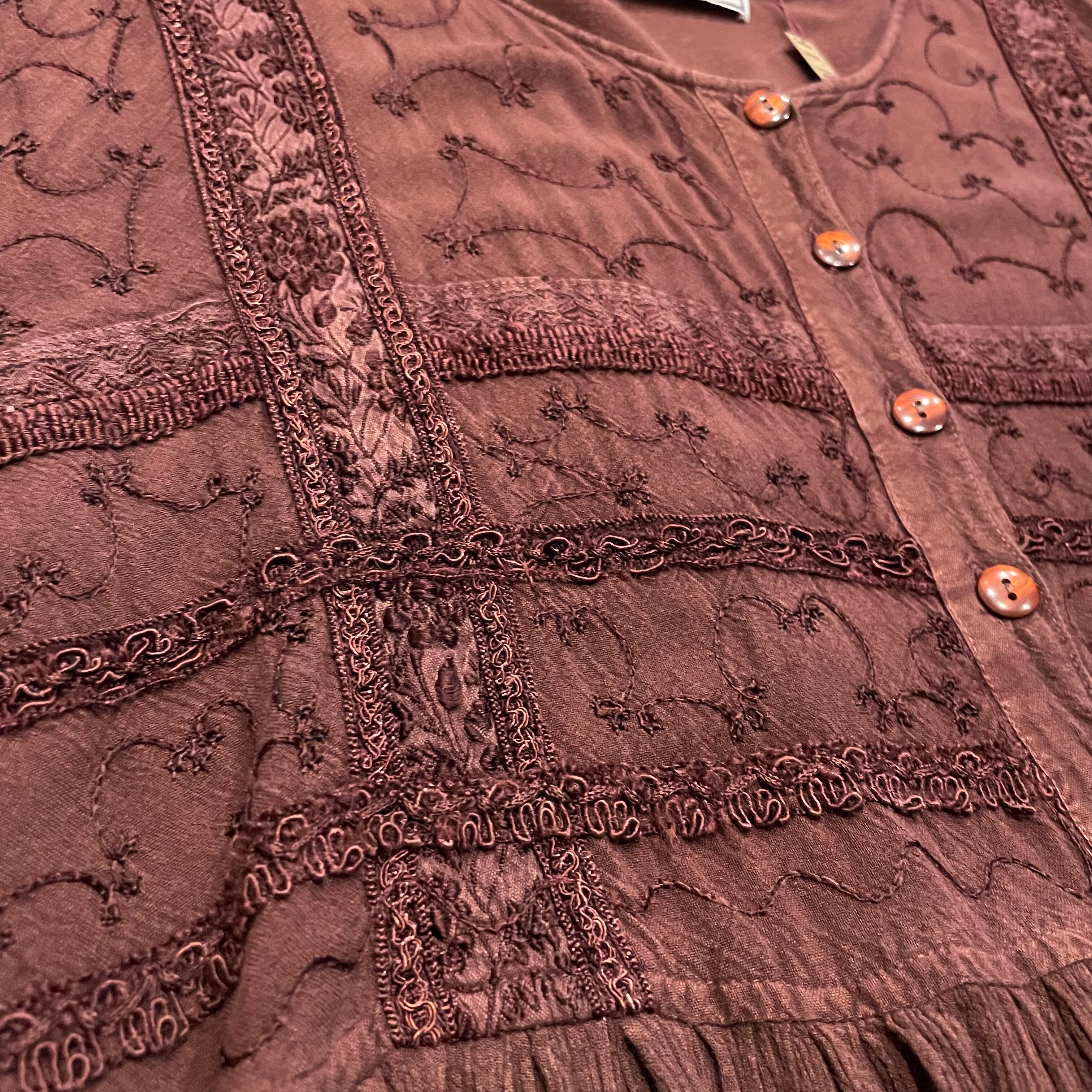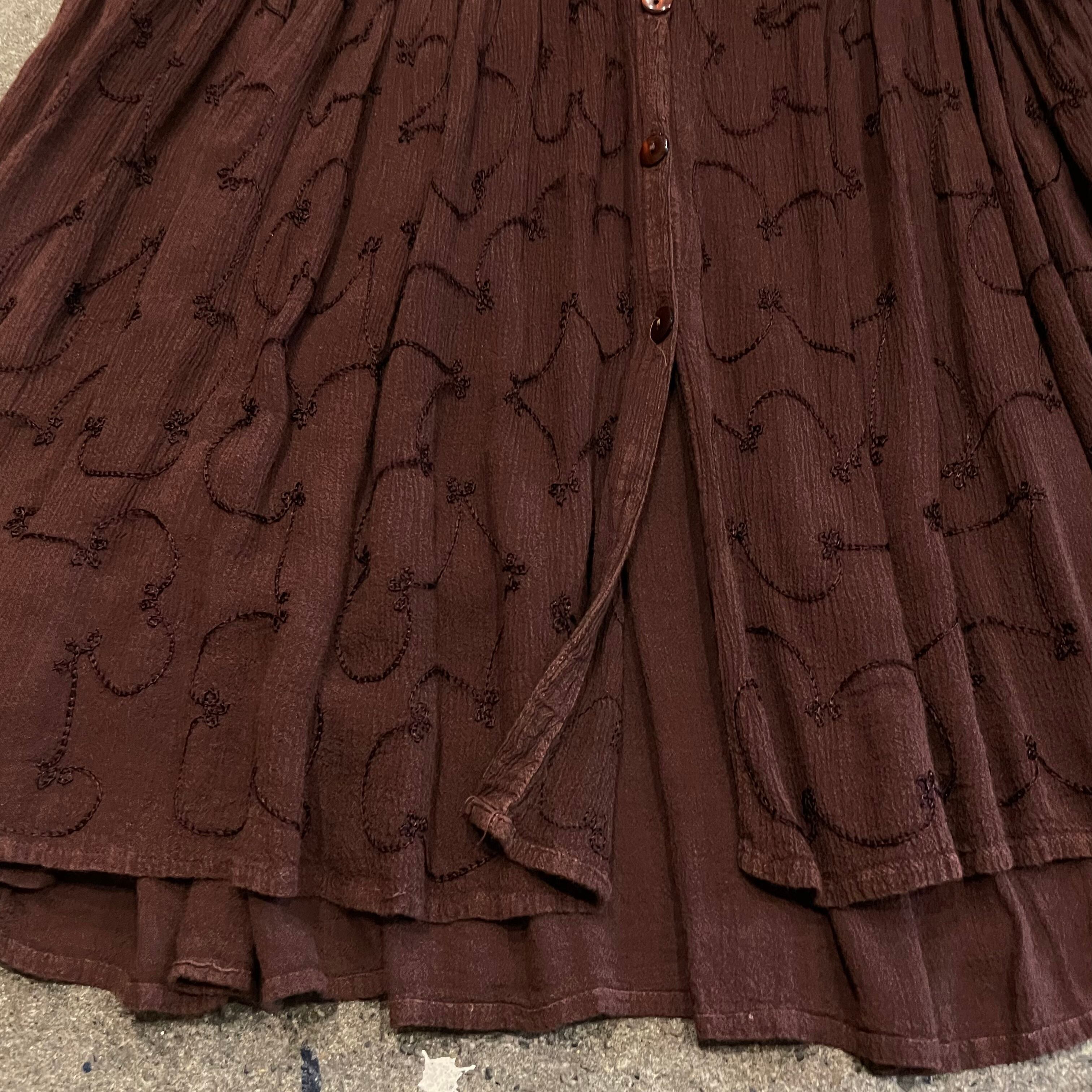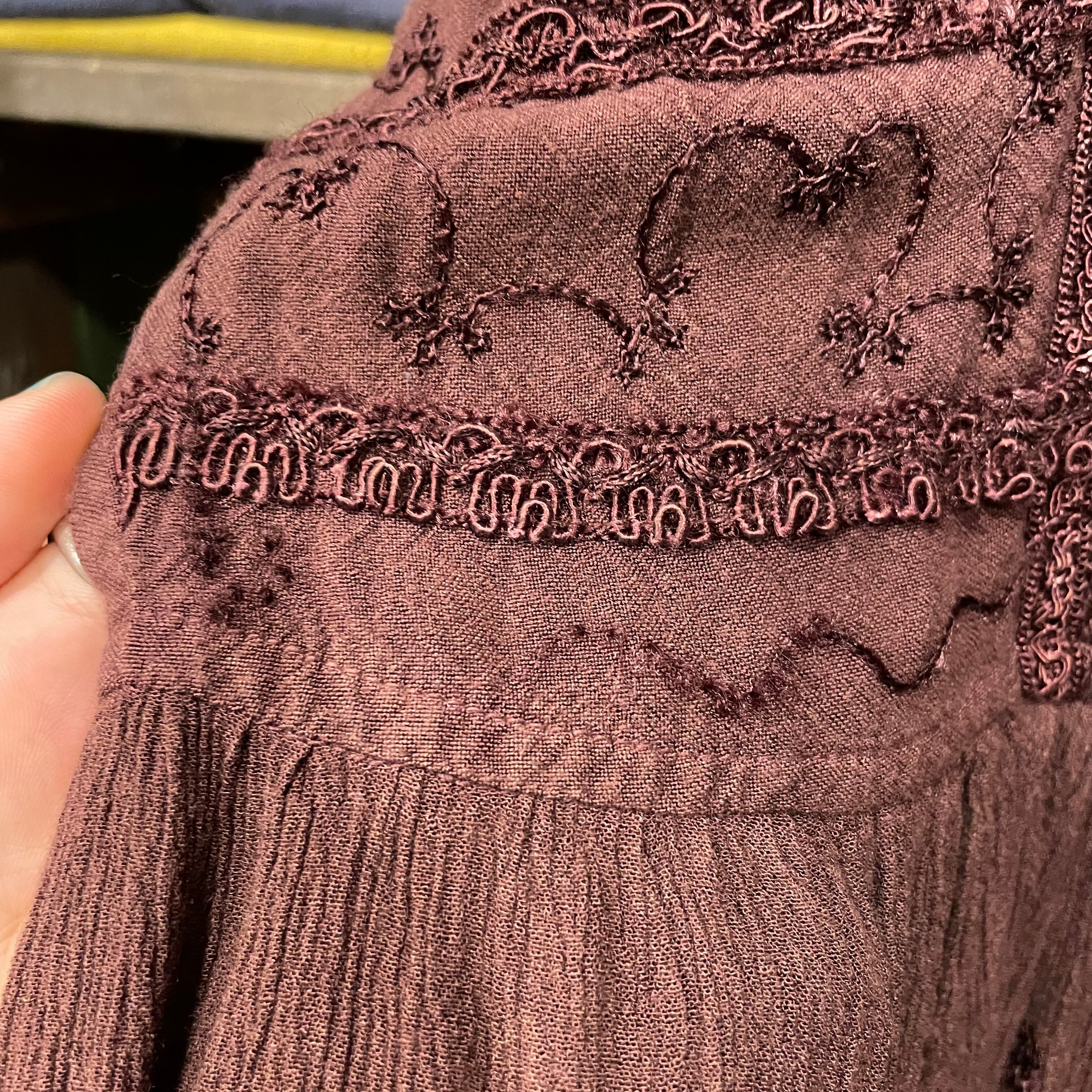違う色の糸で縫われている箇所、刺繍のほつれ襟ぐりのダメージ等使用感のある商品ですので古着にご理解のある方のご購入をお願い致します。