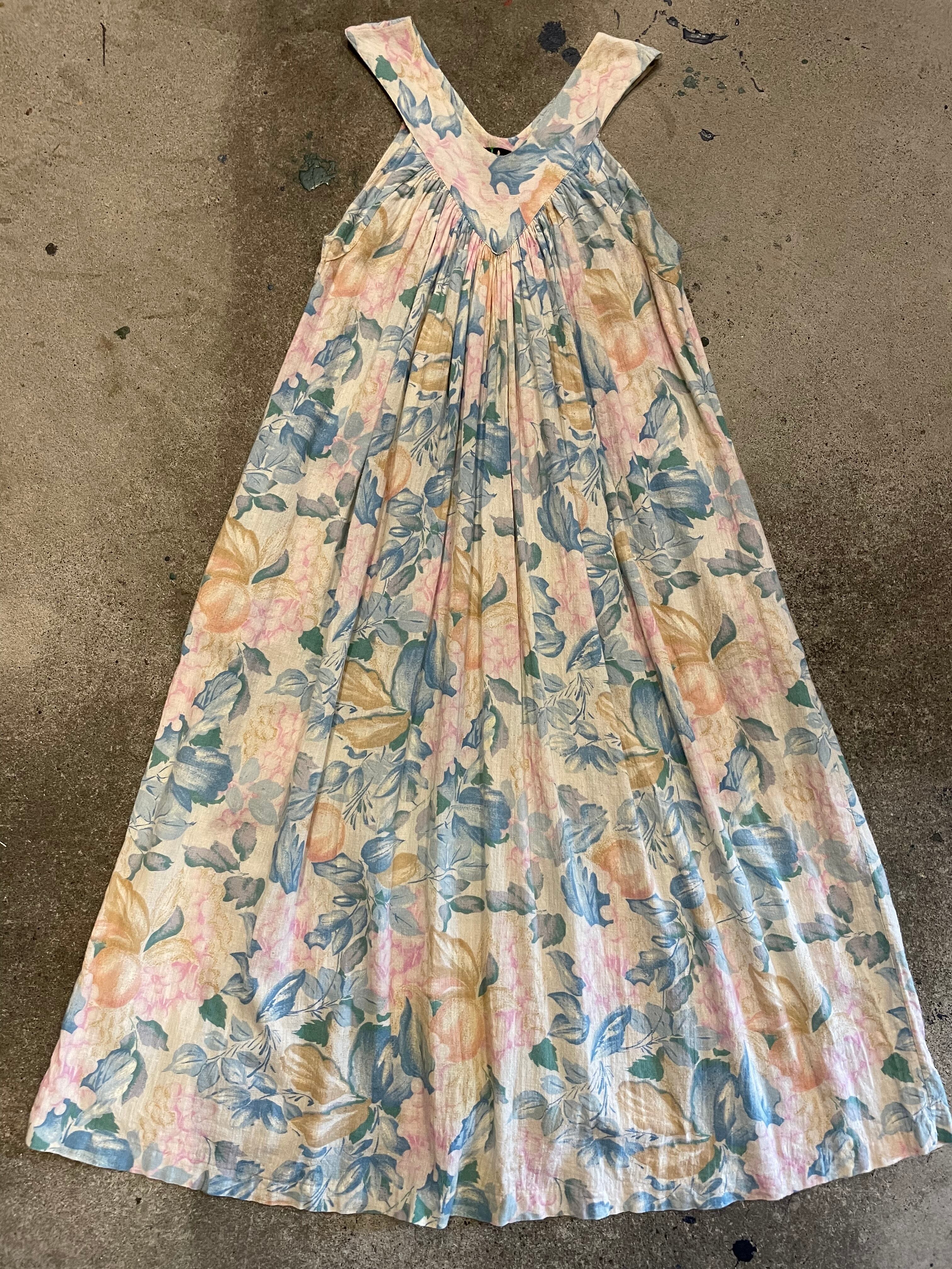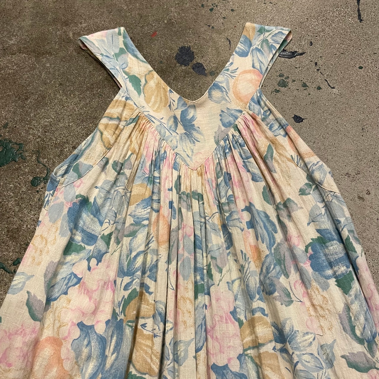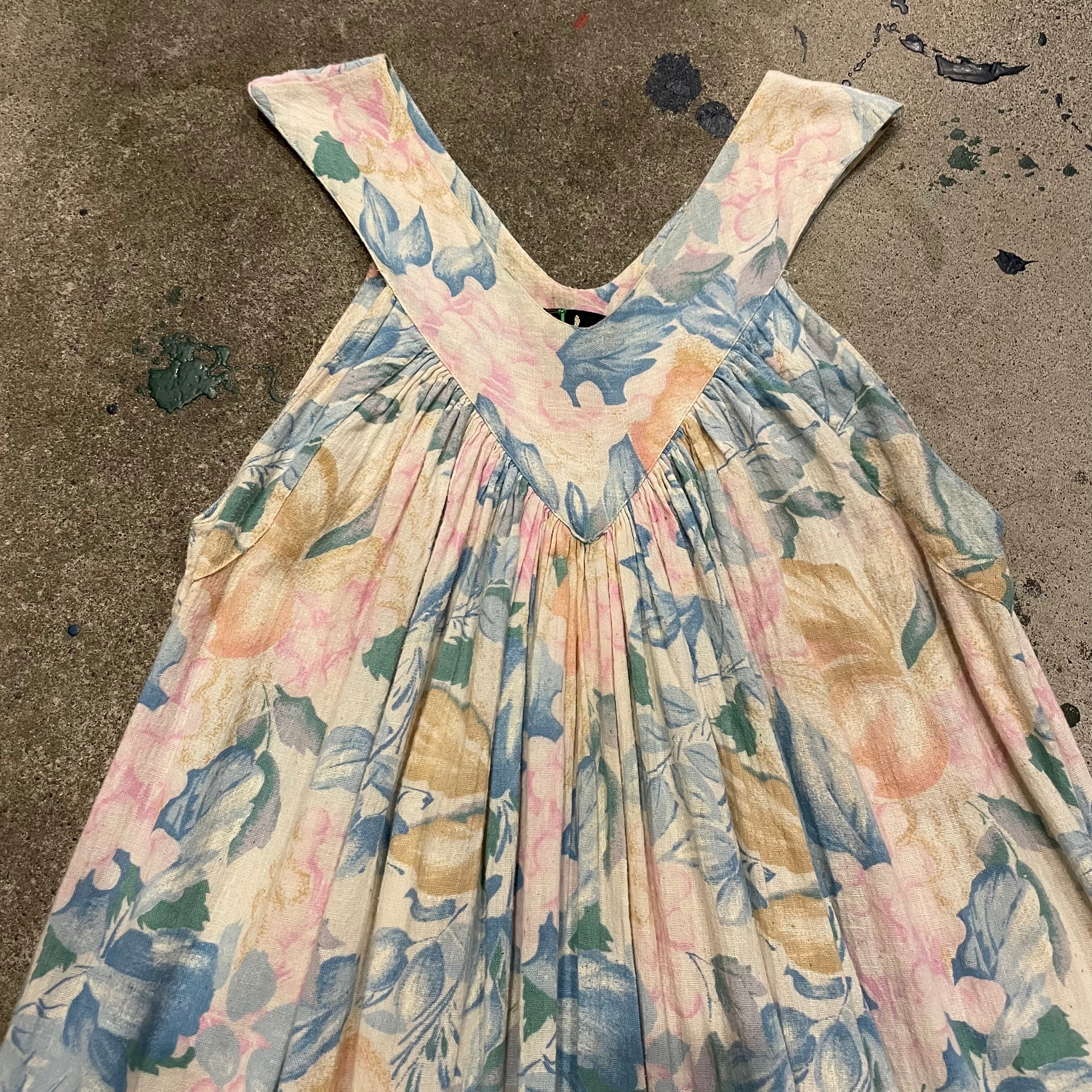 淡い優しいカラーの花柄が素敵なコットン素材のワンピースです。