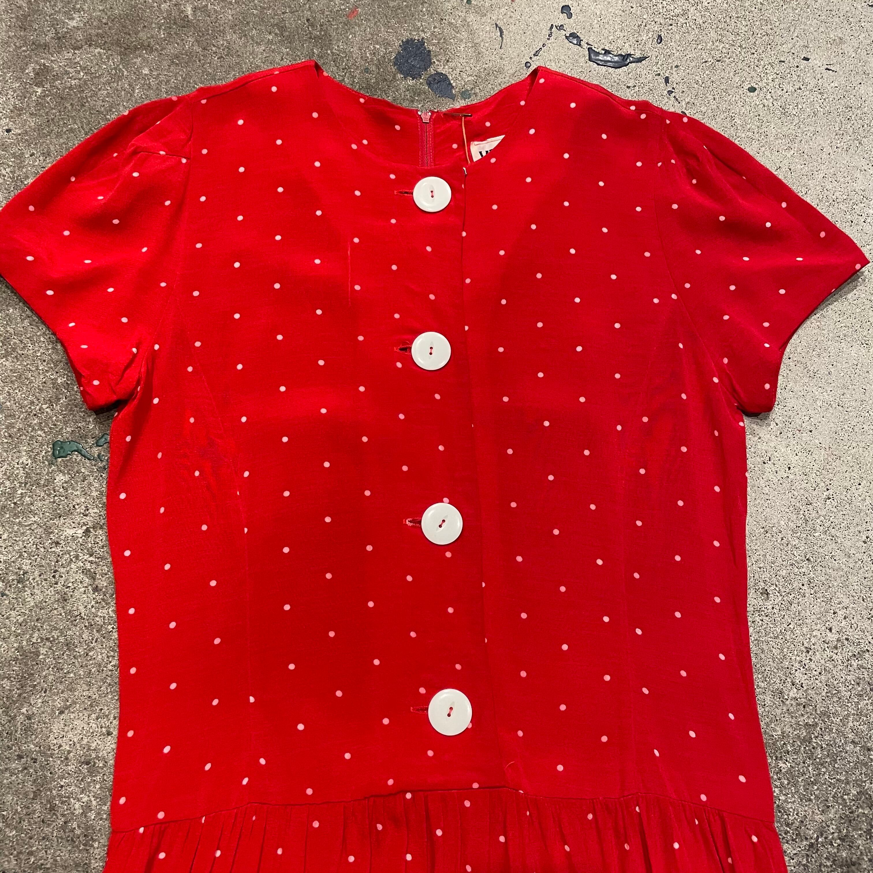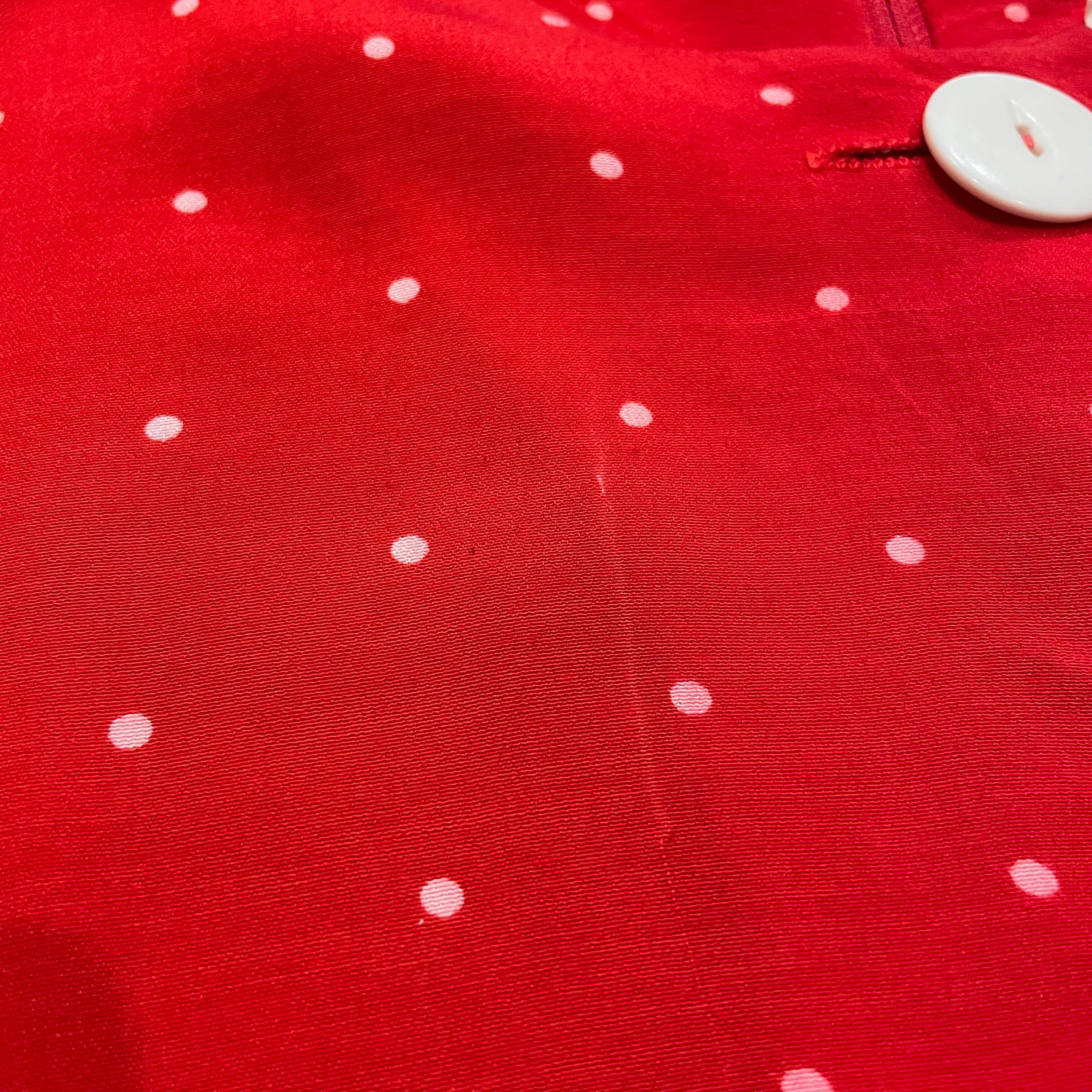 大きなボタンやシンプルなIラインシルエットがおしゃれな雰囲気です。キャットアイなメガネやバレエシューズなど合わせても素敵ですね!小物で印象が変わりそうな一着です。