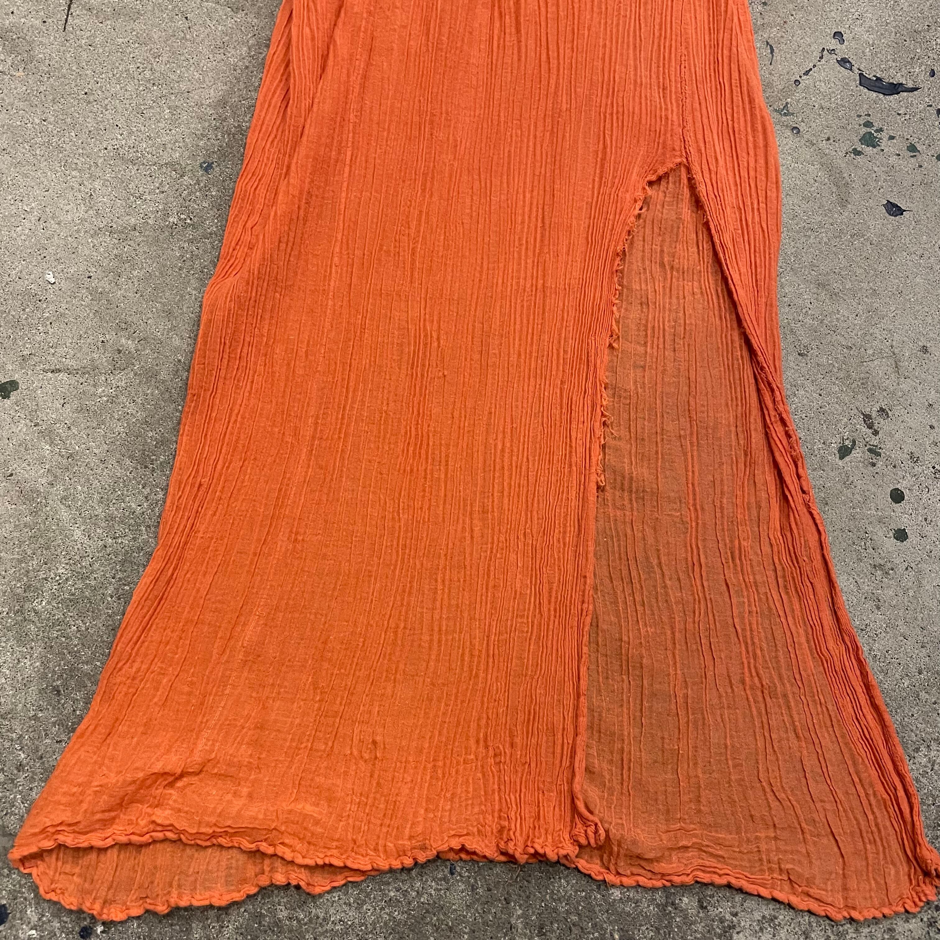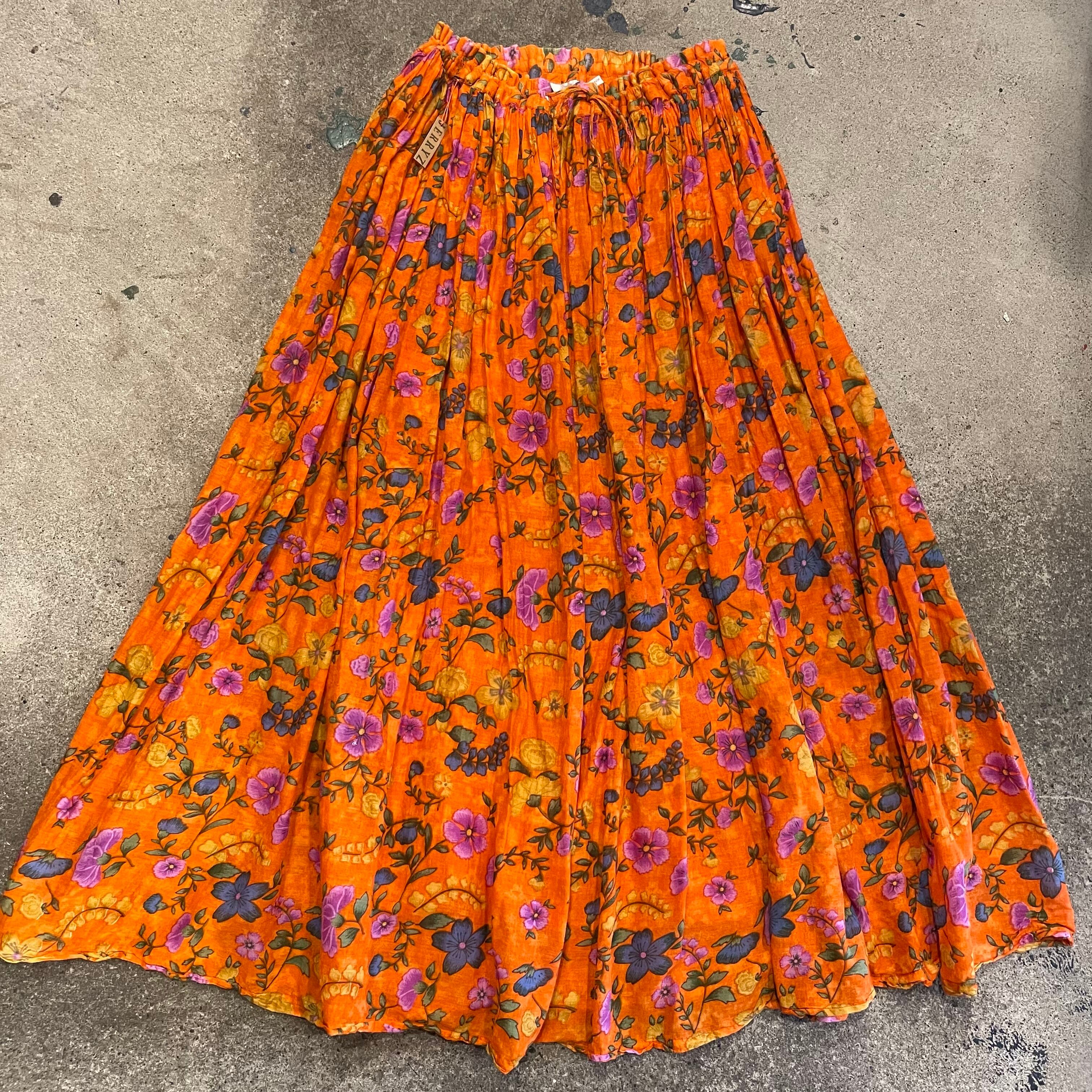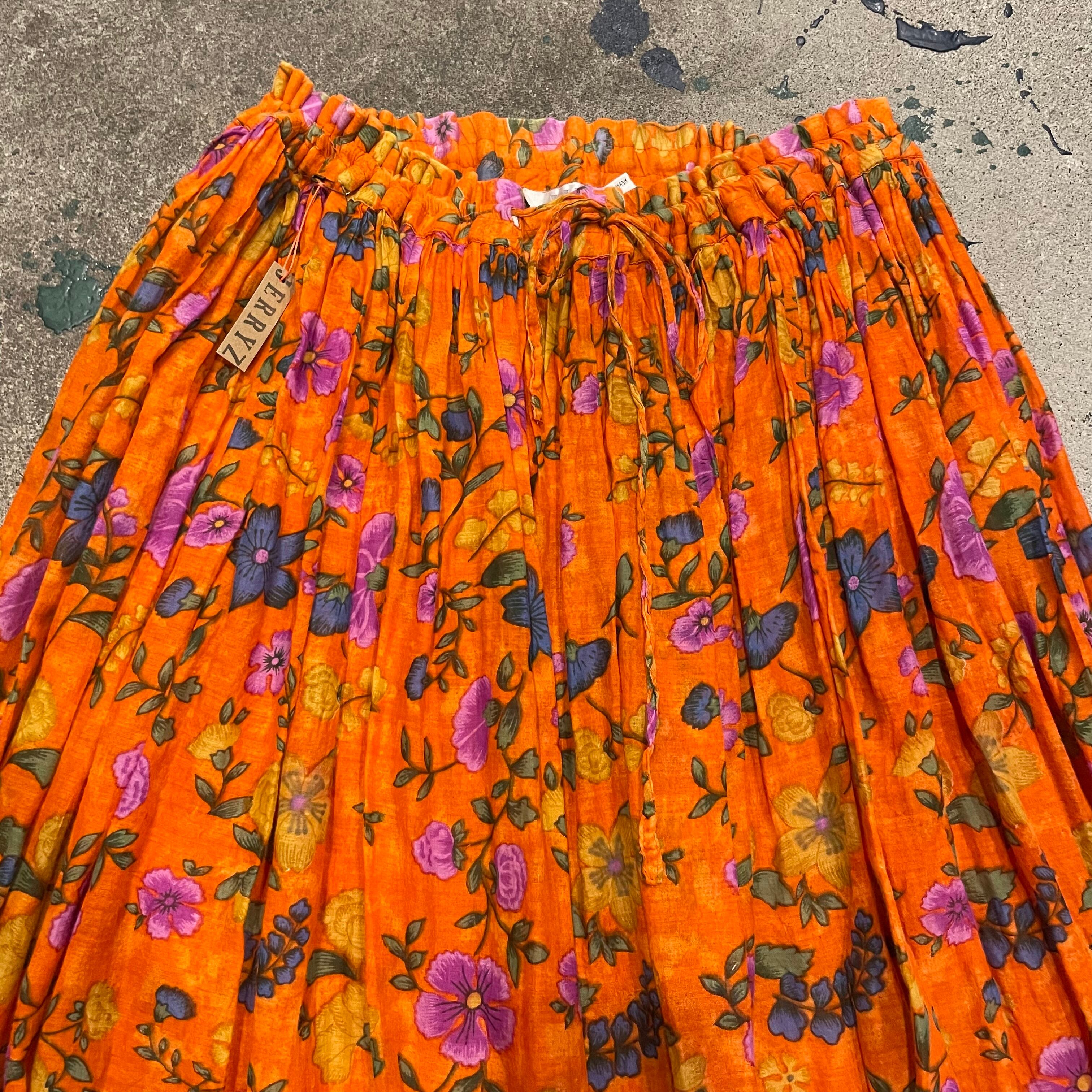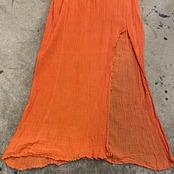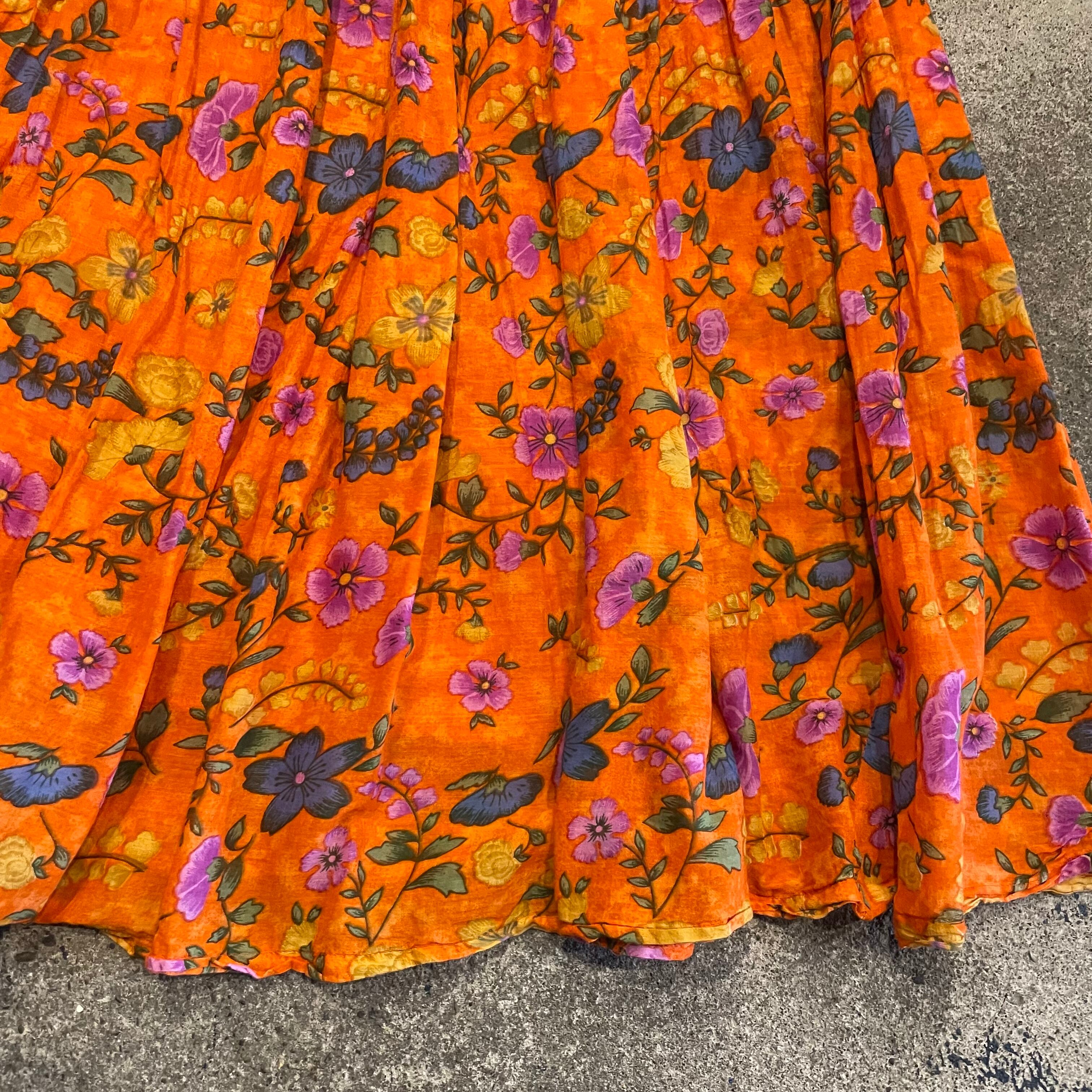 ガーゼのような柔らかくて軽い素材が夏に涼しい一枚です。オレンジベースに花柄の色味が明るくてかわいいハッピーな雰囲気です。