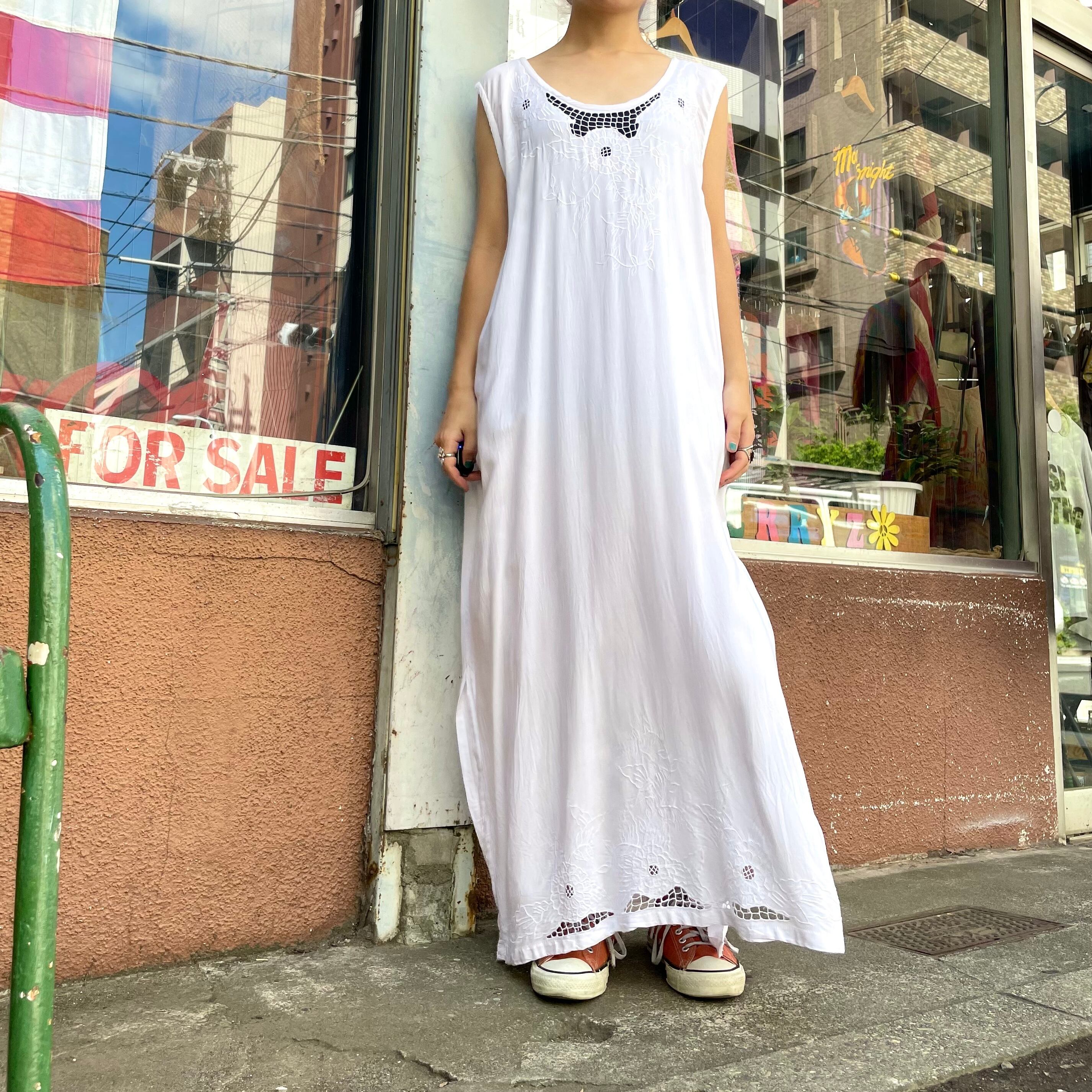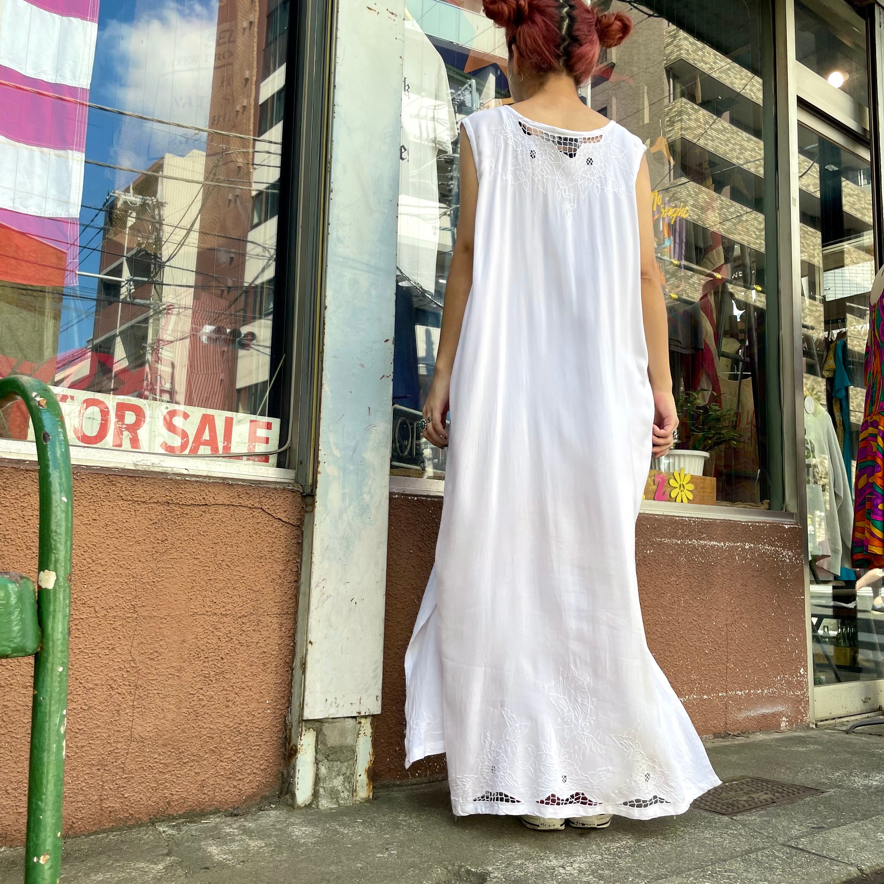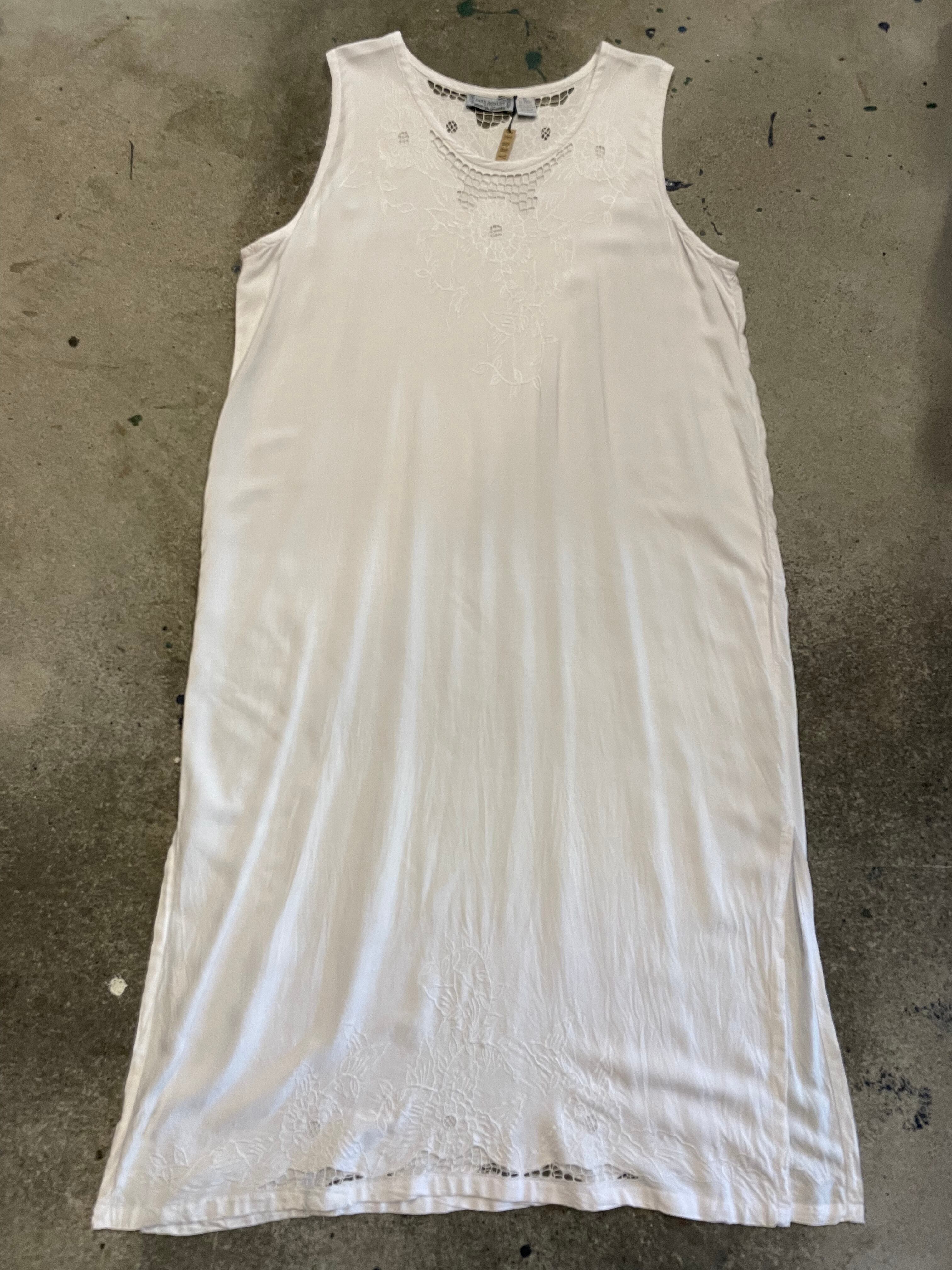 真っ白のレーヨンワンピースです。サイズが3Xととても大きいのでかなりゆったりしています。