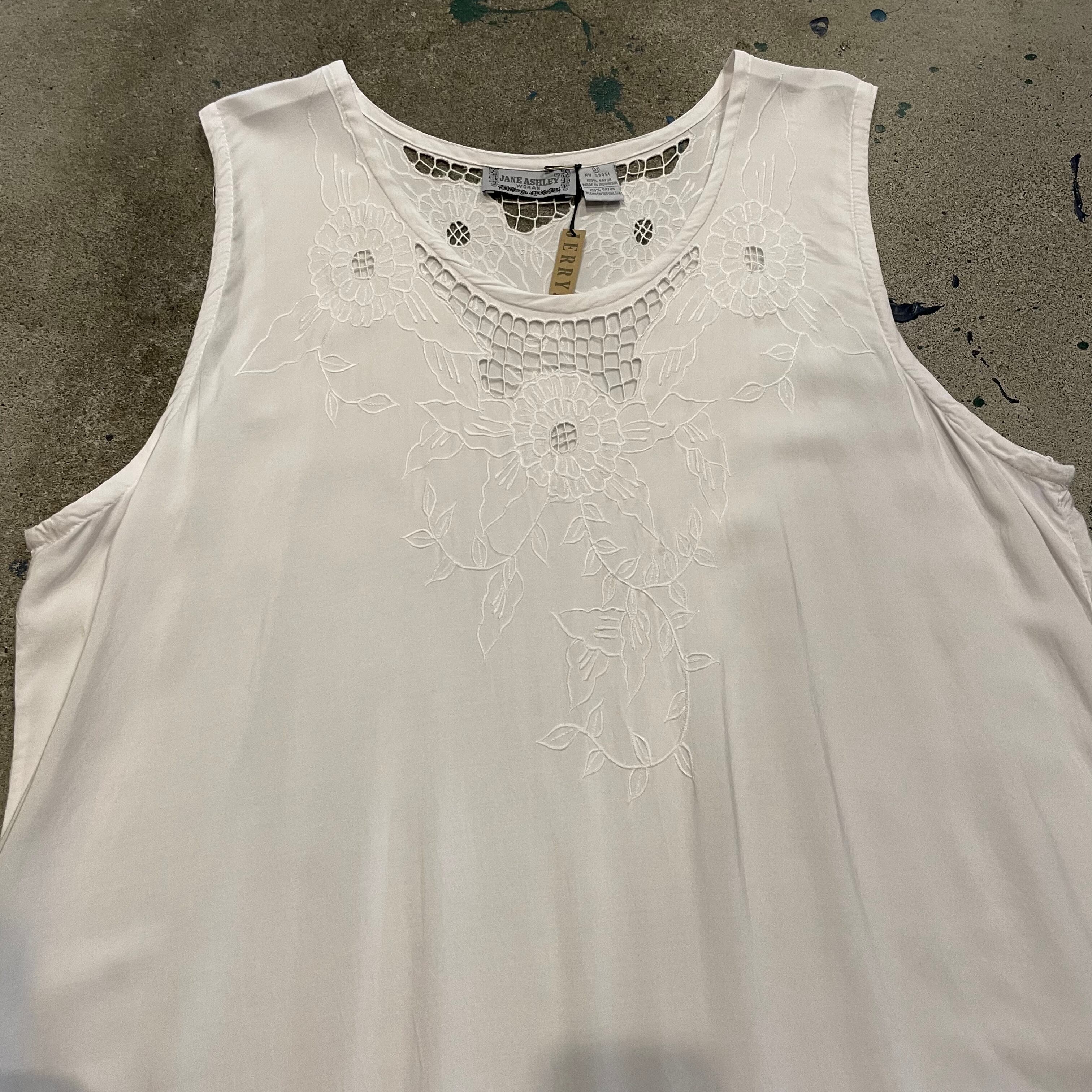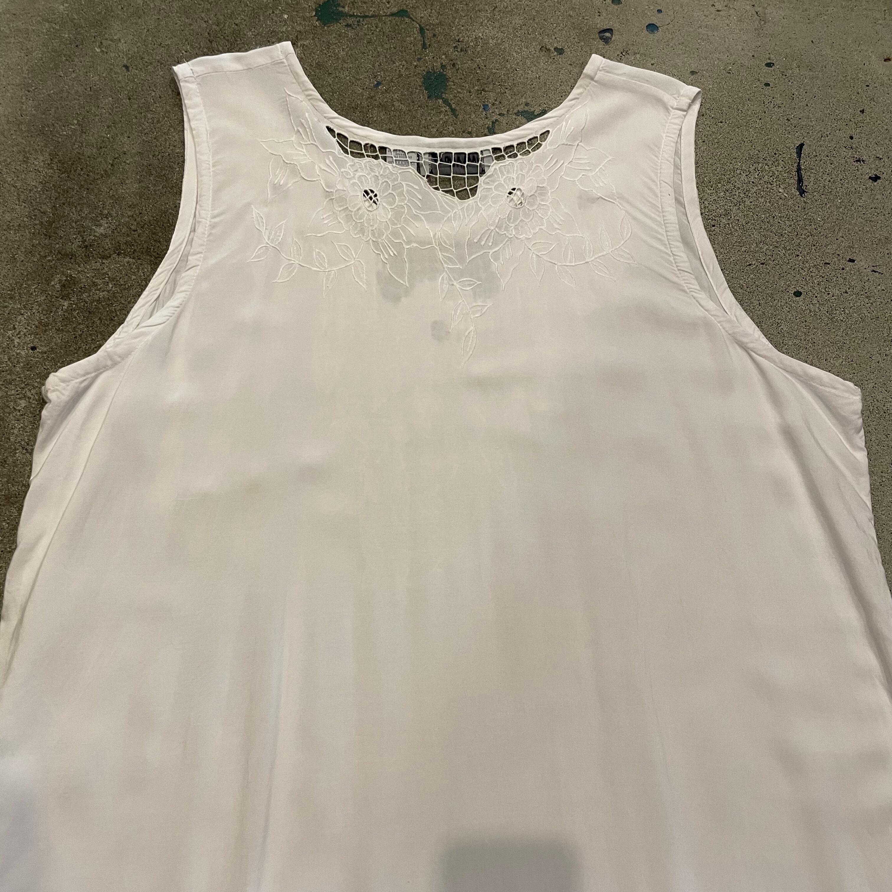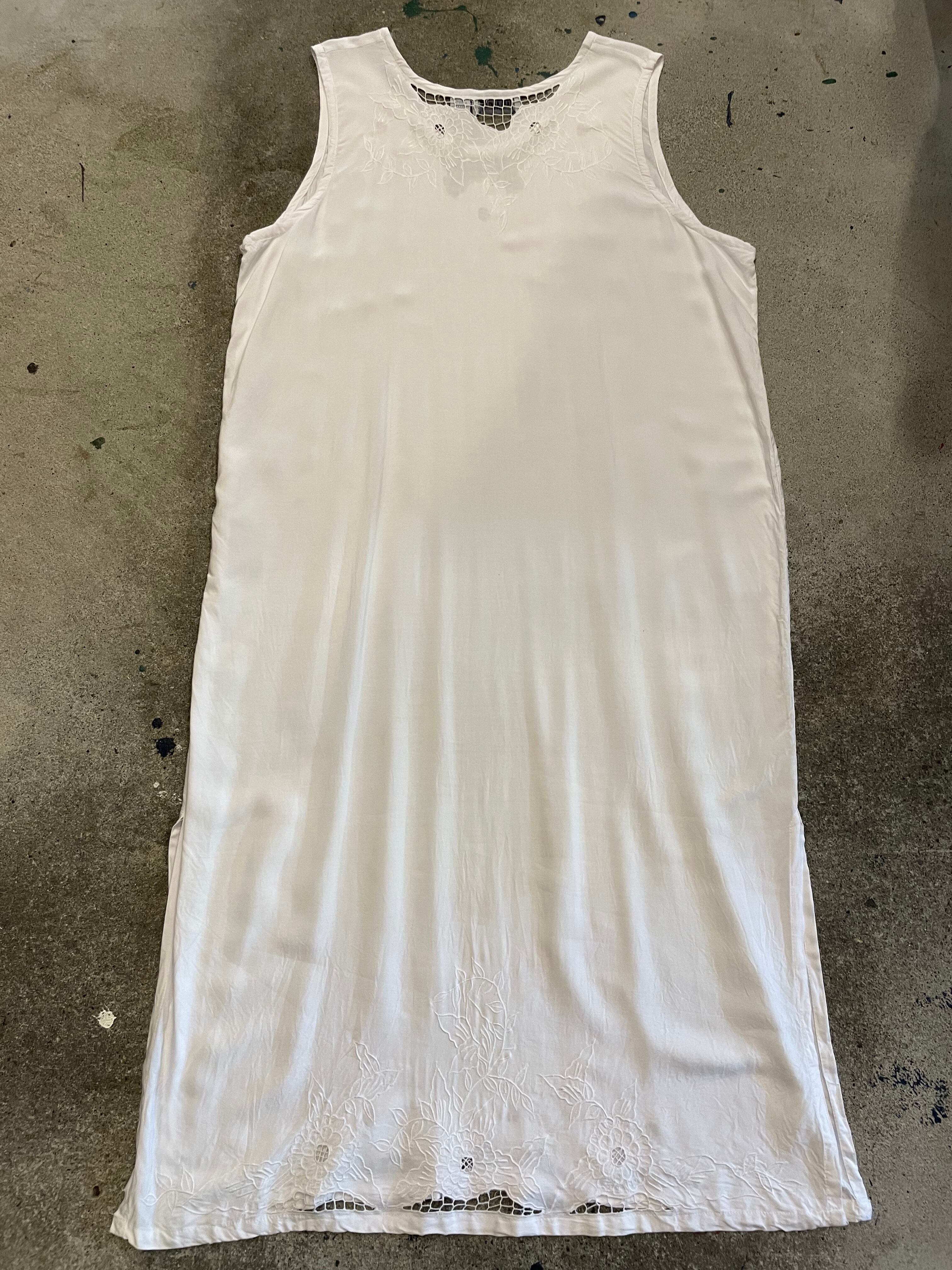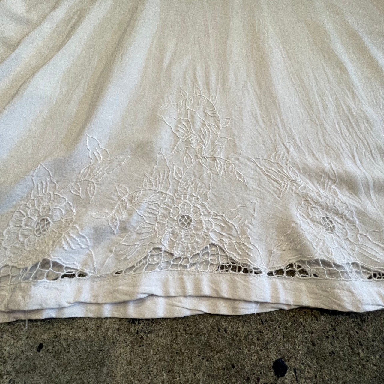 真っ白のレーヨンワンピースです。サイズが3Xととても大きいのでかなりゆったりしています。