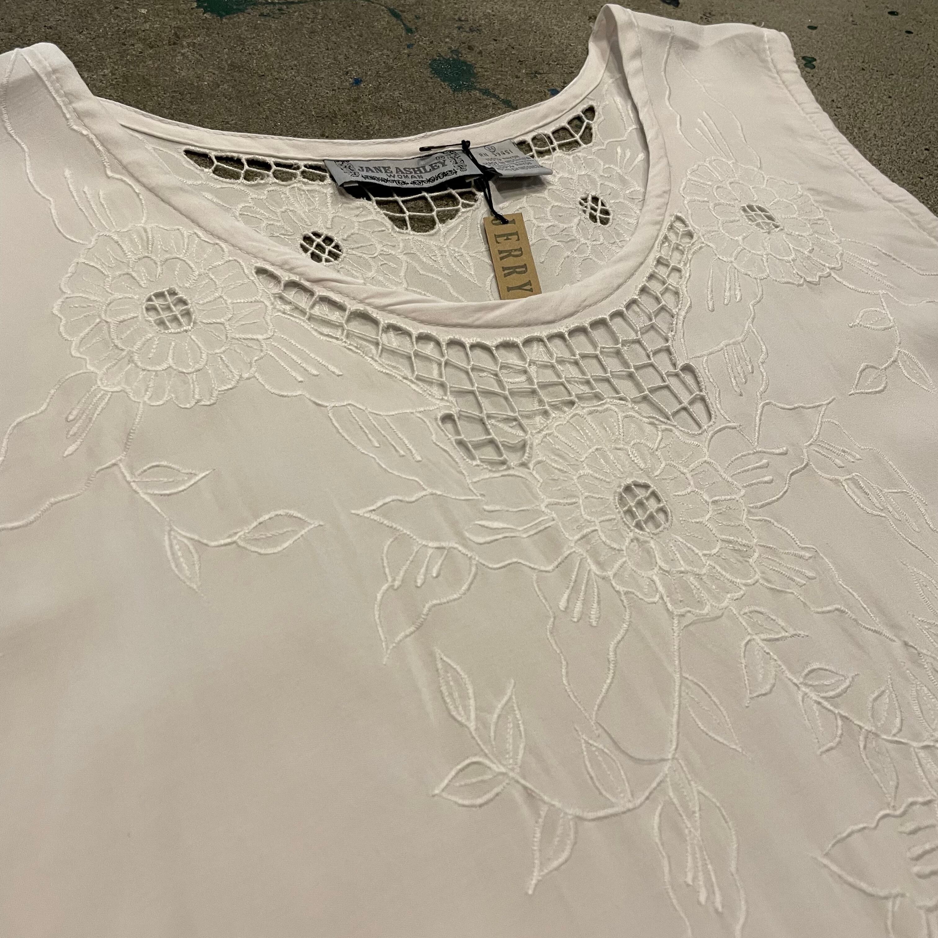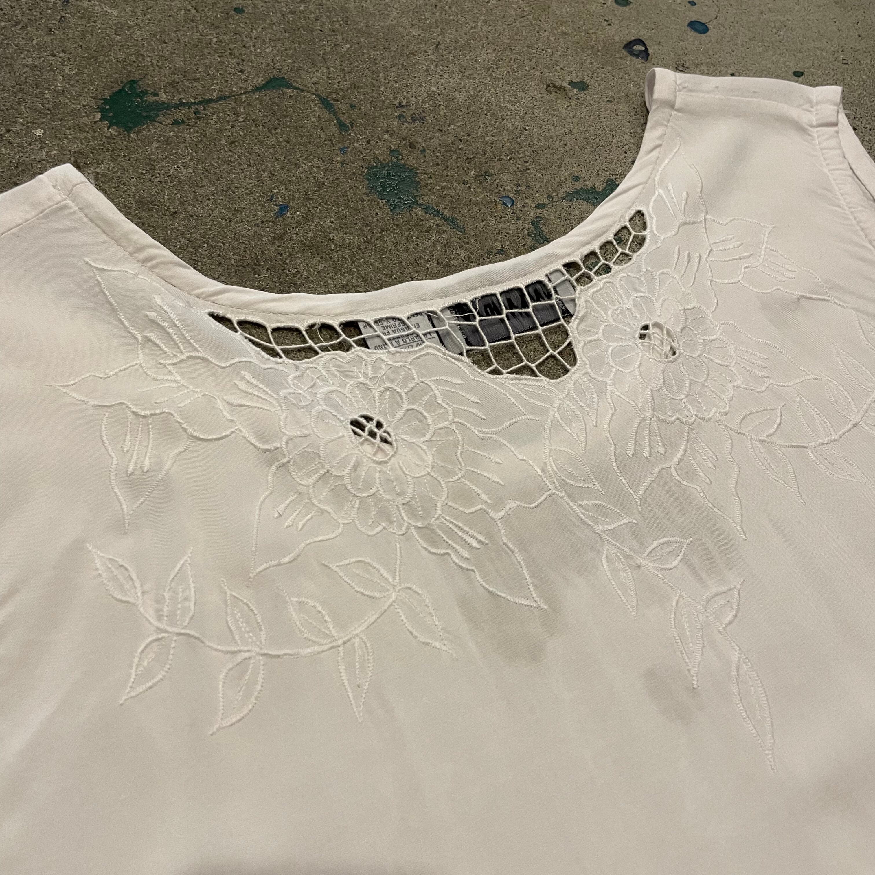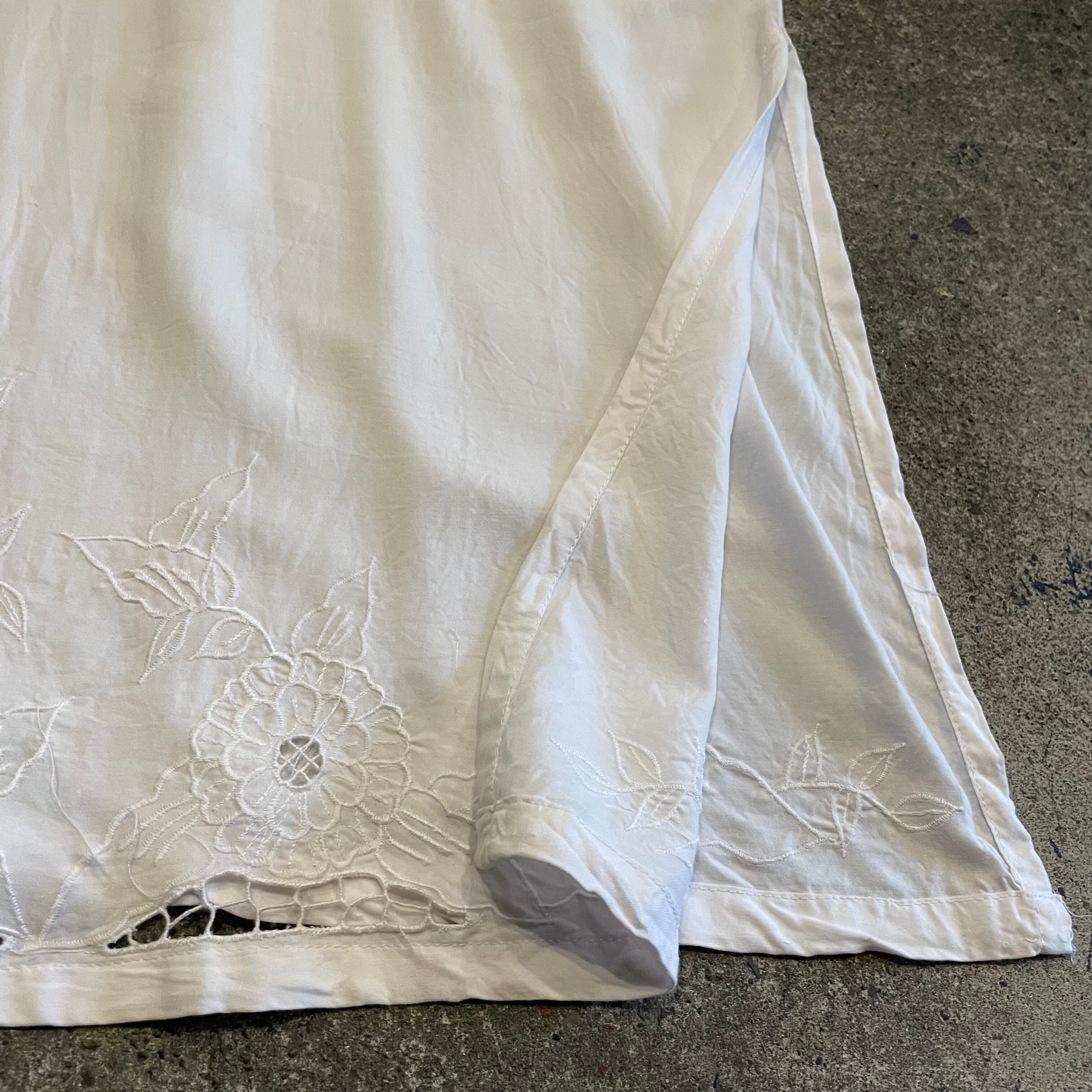 胸元、背中、裾にくり抜きの刺繍が施されておりさりげなくとてもかわいいです。