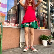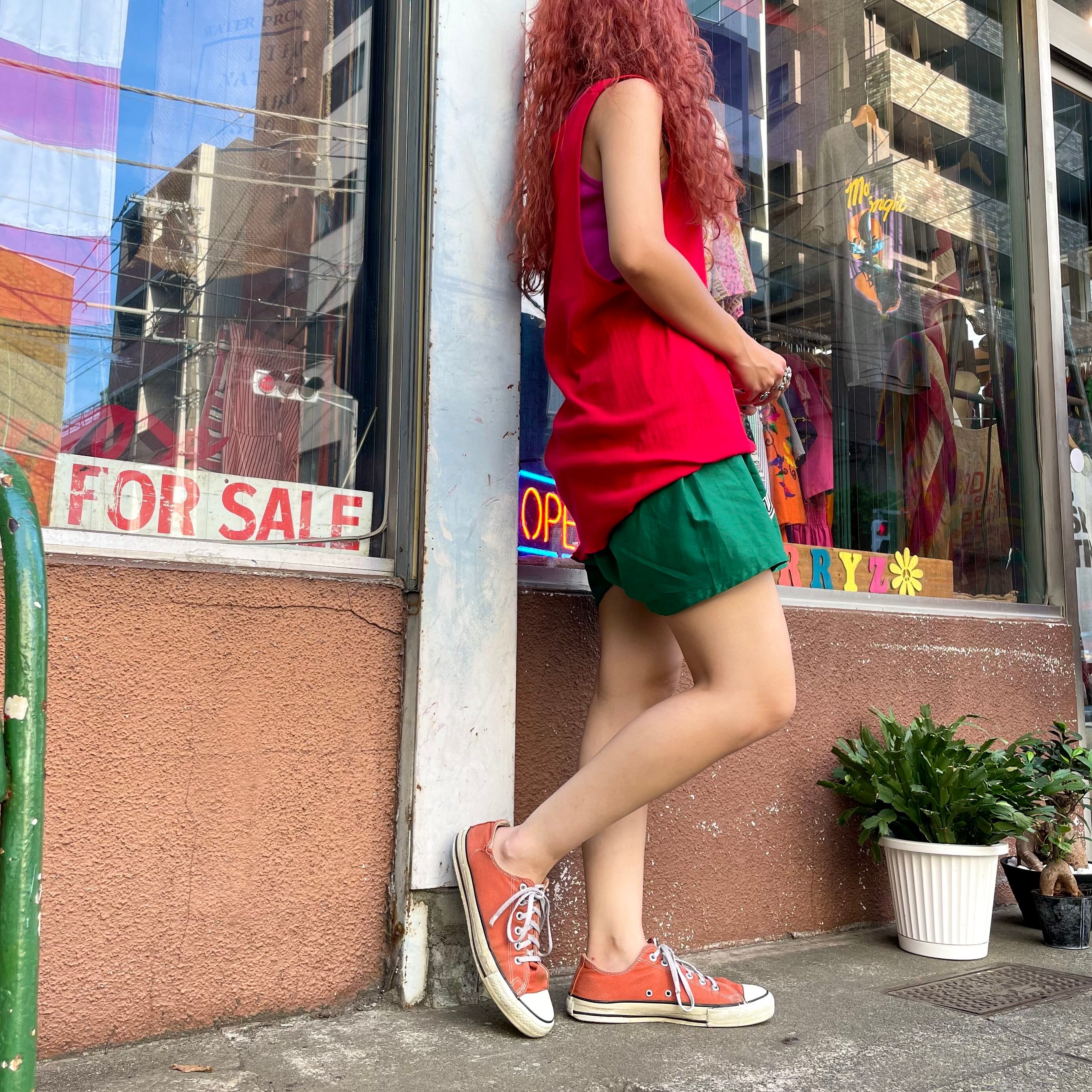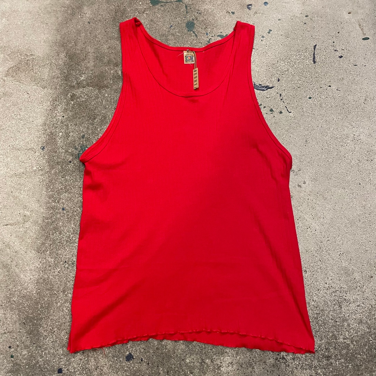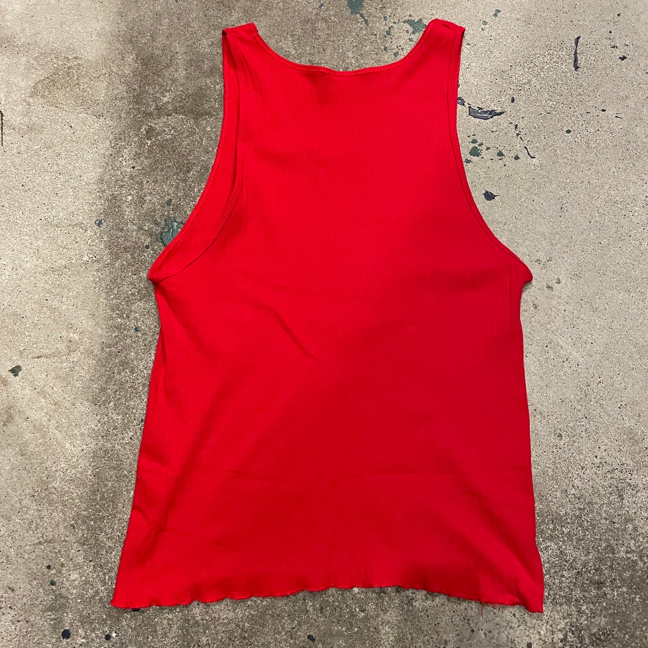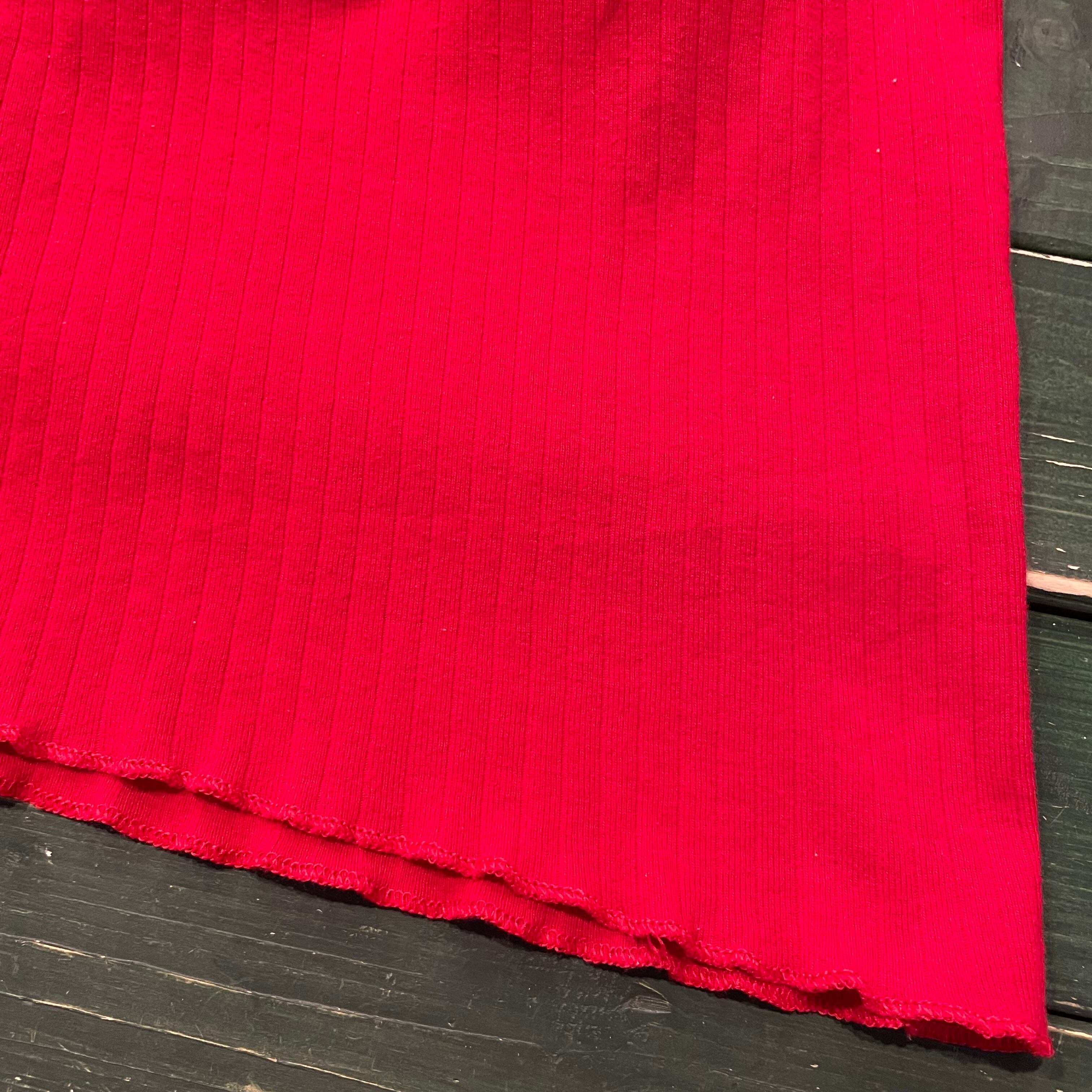 リブ編みがかわいい真っ赤なタンクトップです。