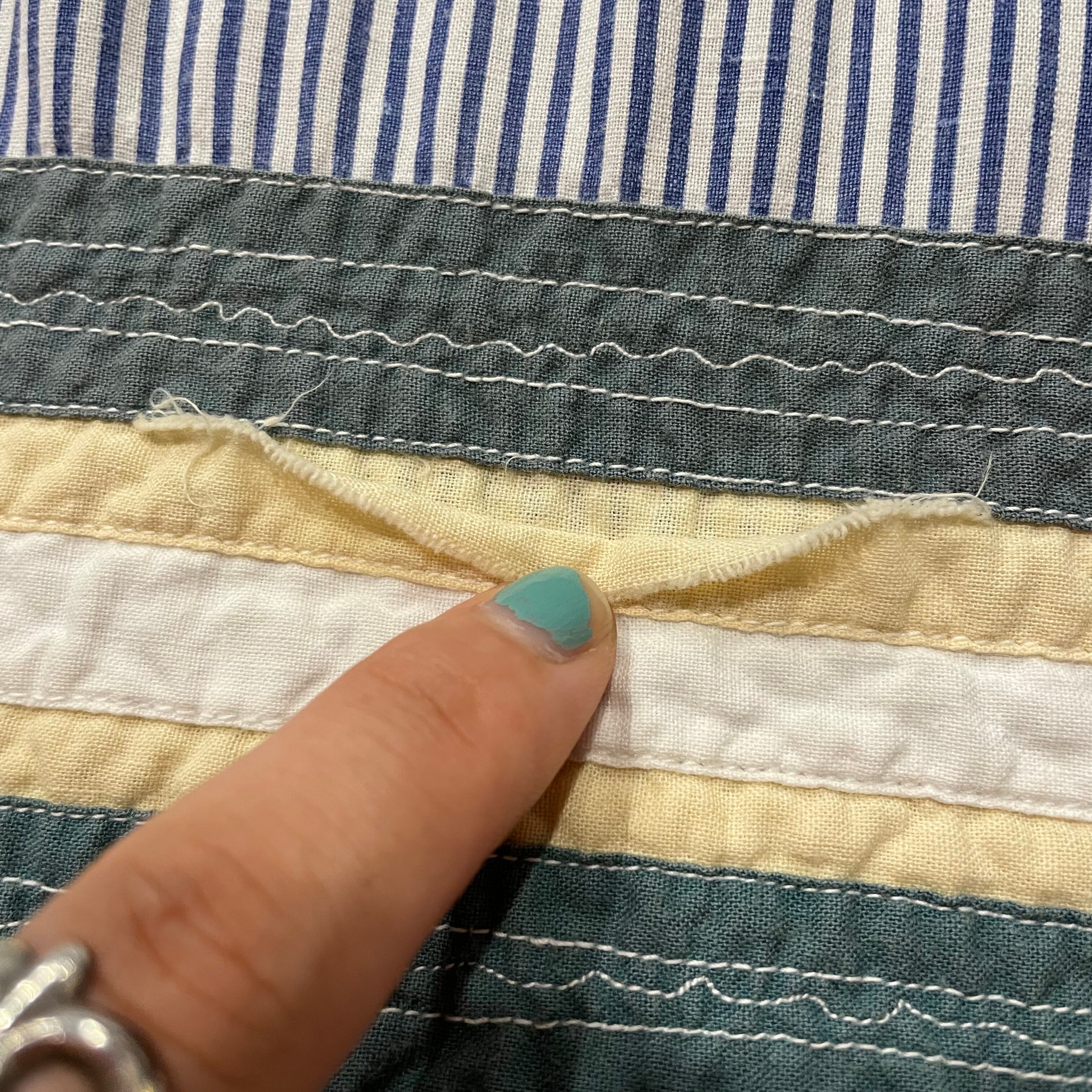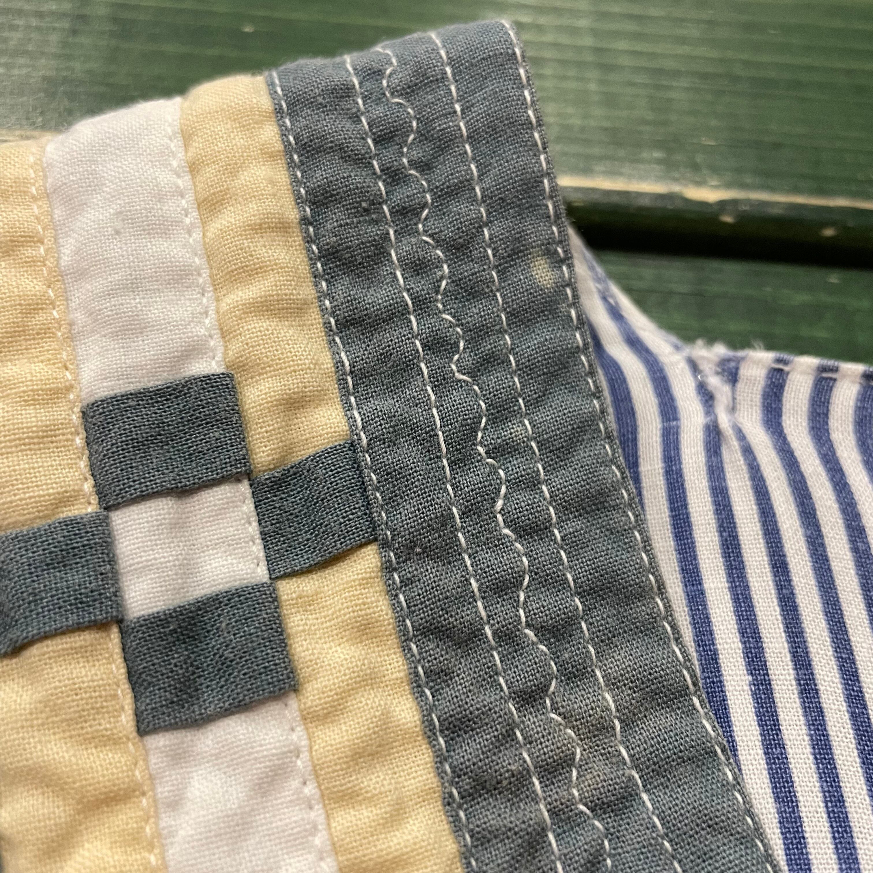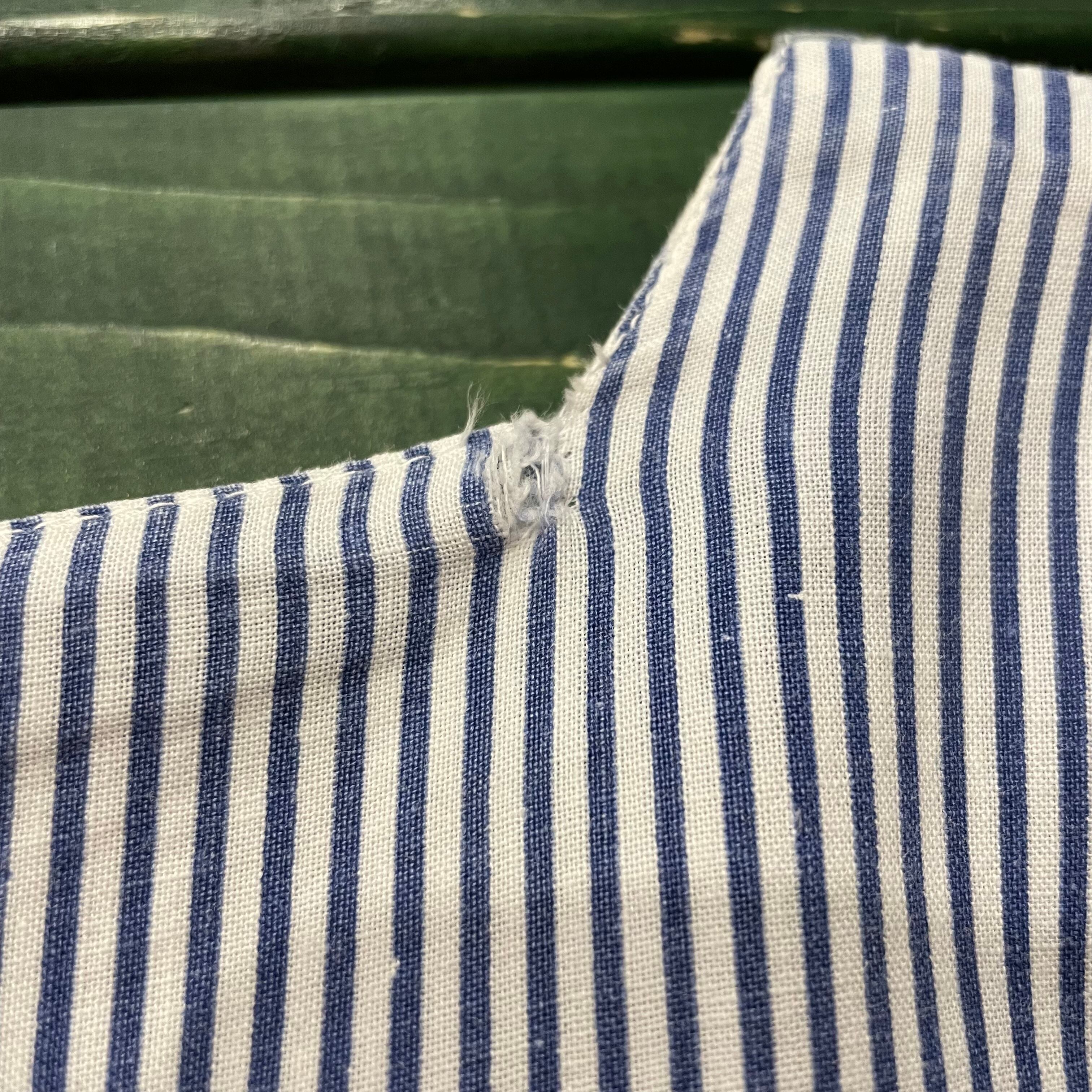 後ろ襟ぐりにキズ、前襟ぐりに汚れ、裾パッチワーク部分のほつれ多数 等使用感のある商品ですので古着にご理解のある方のご購入をお願い致します。