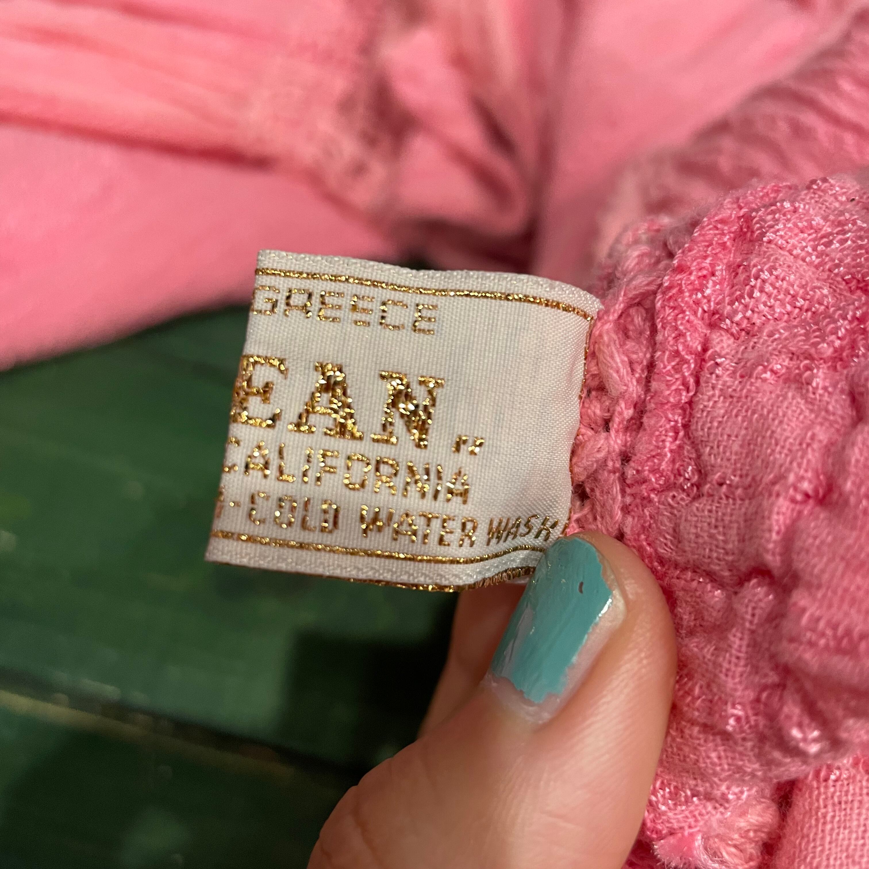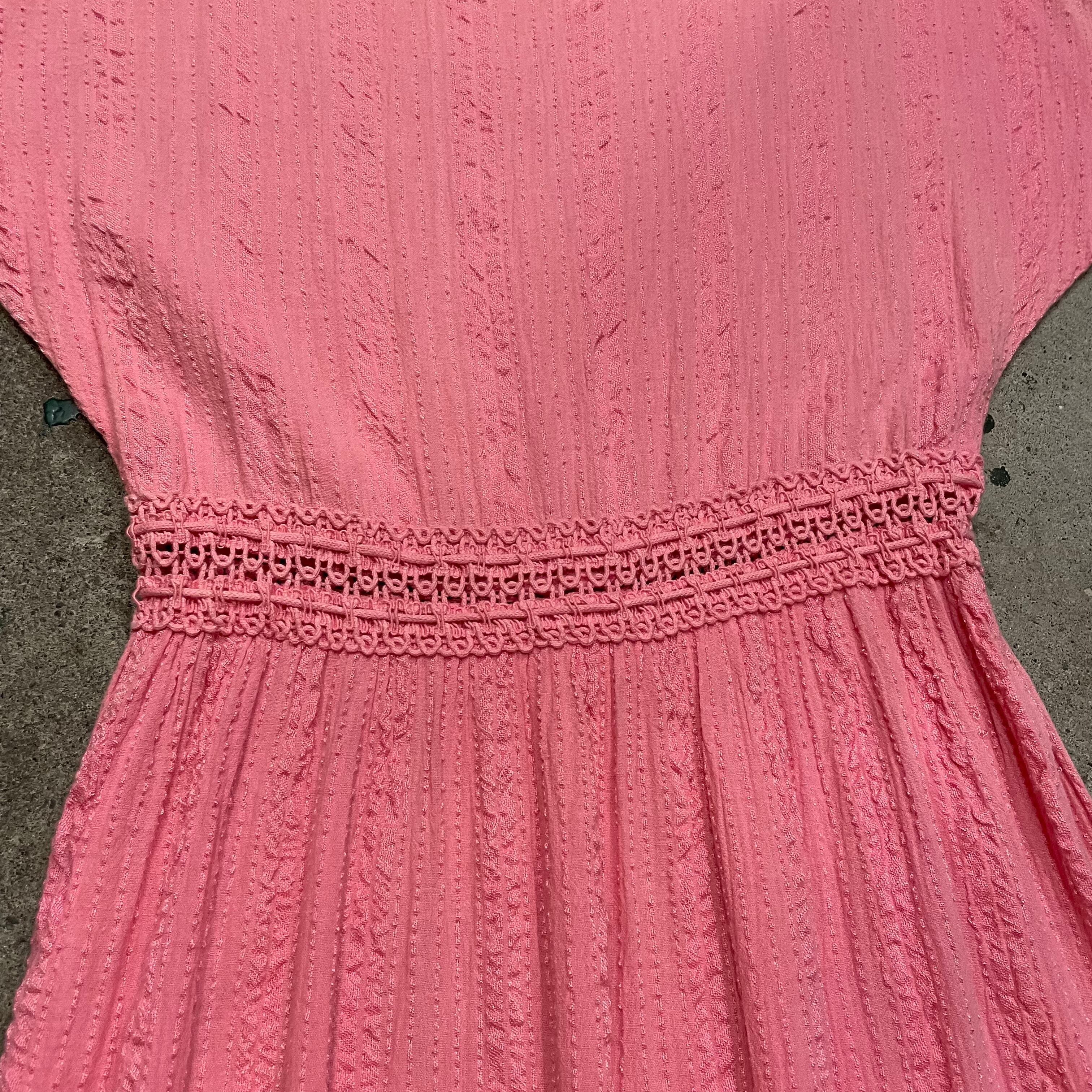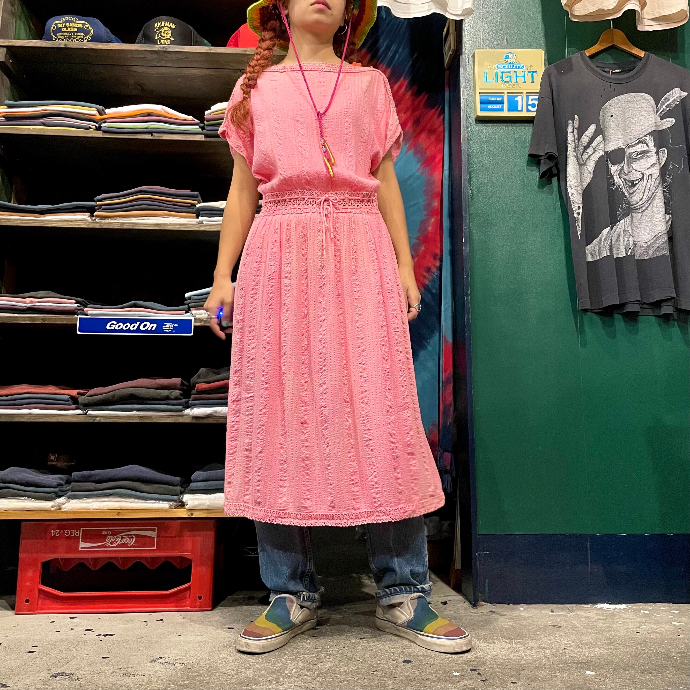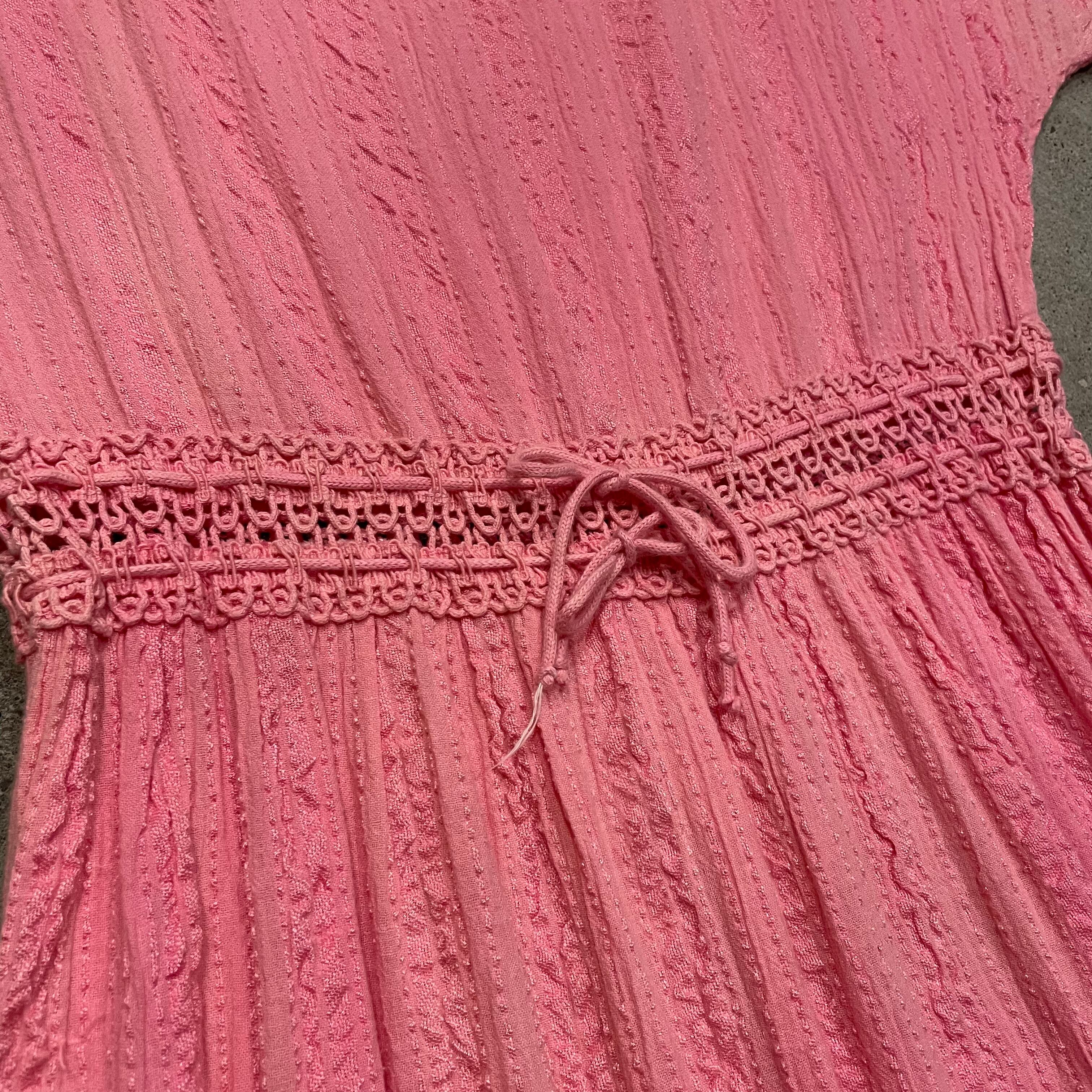 ボートネックでドルマンスリーブで素敵なシルエットです。ウエストは紐で調節可能になっていたり、ぽこぽこ凹凸のある素材だったり、シンプルなデザインですが細かいディテールがかわいいです。