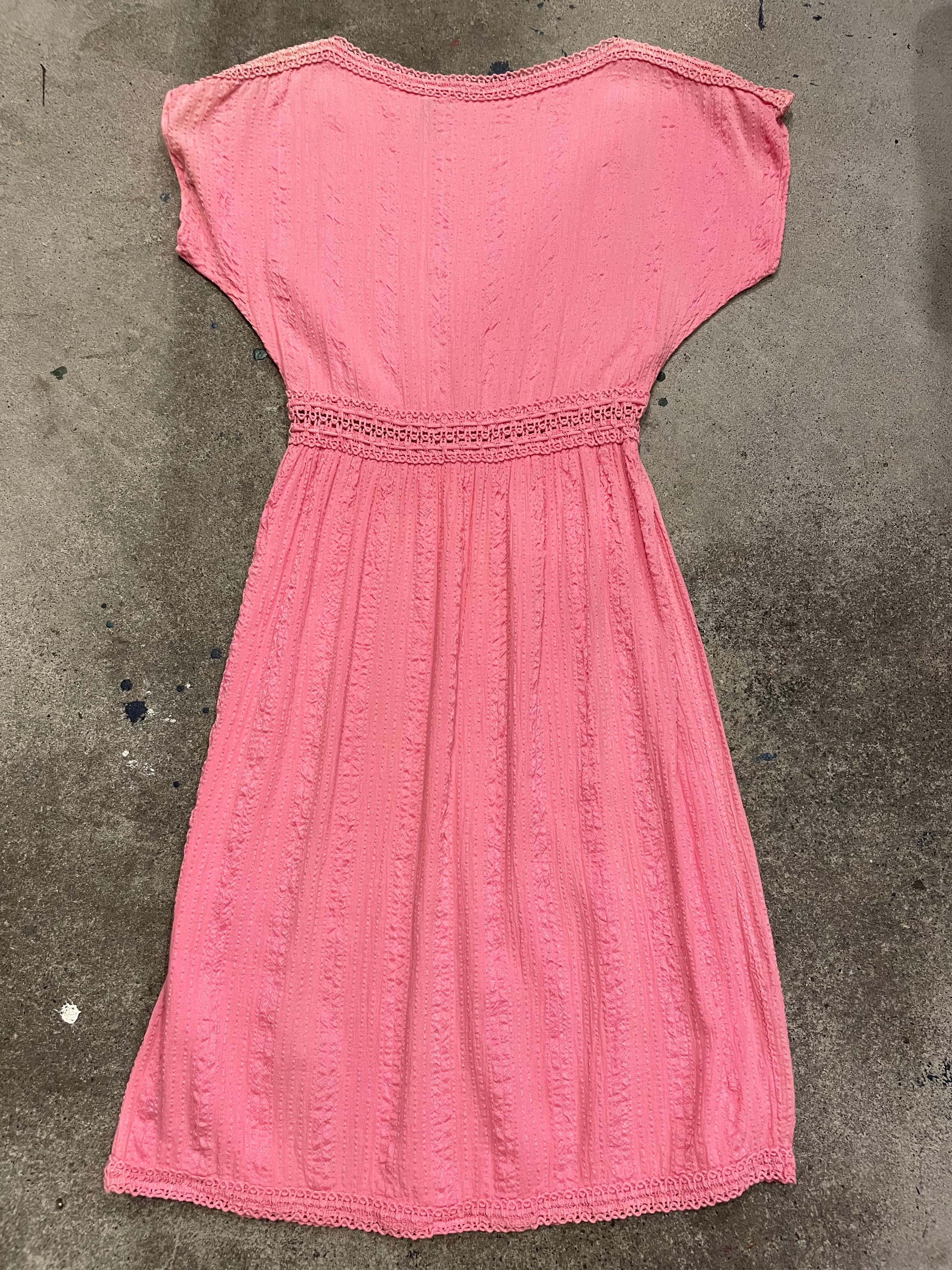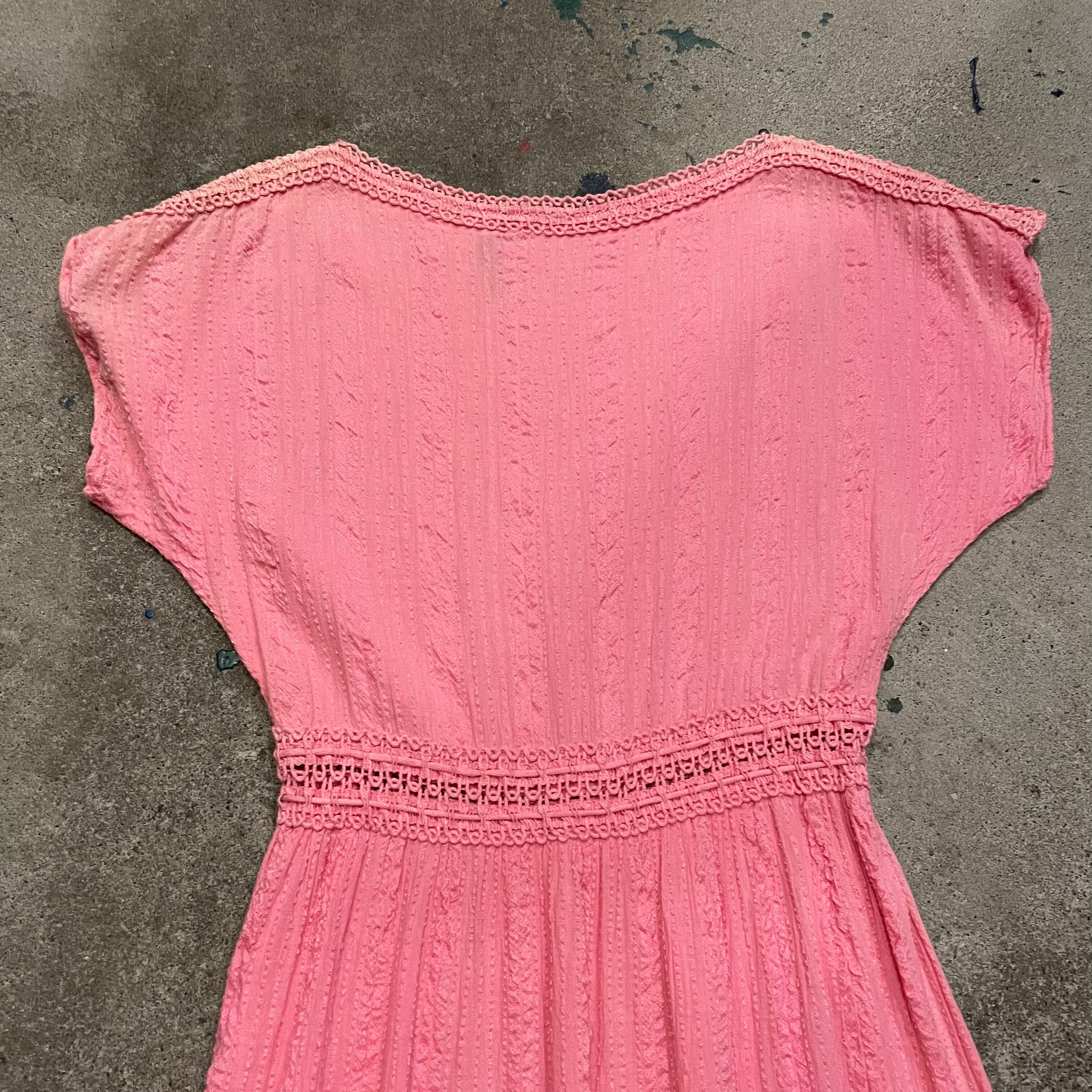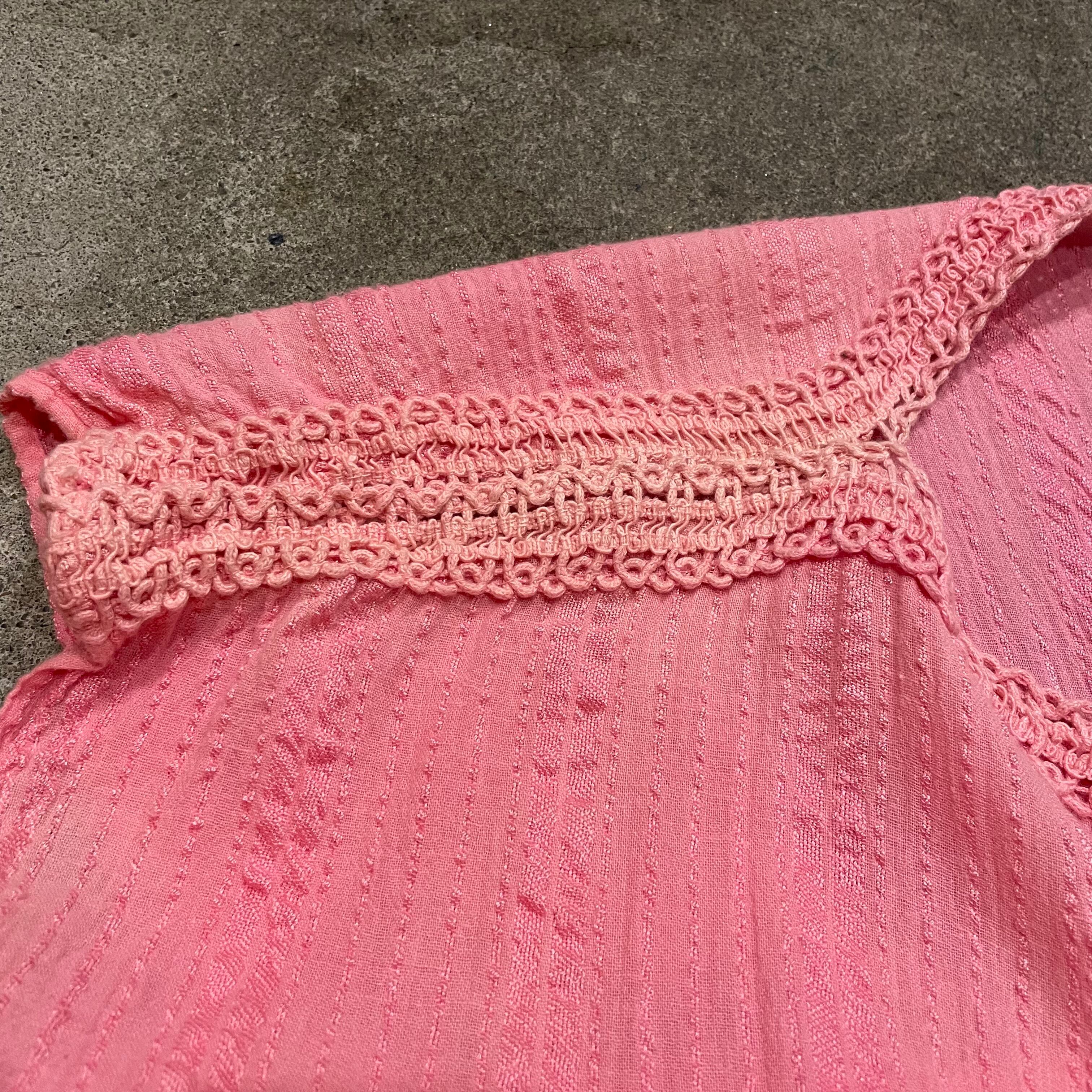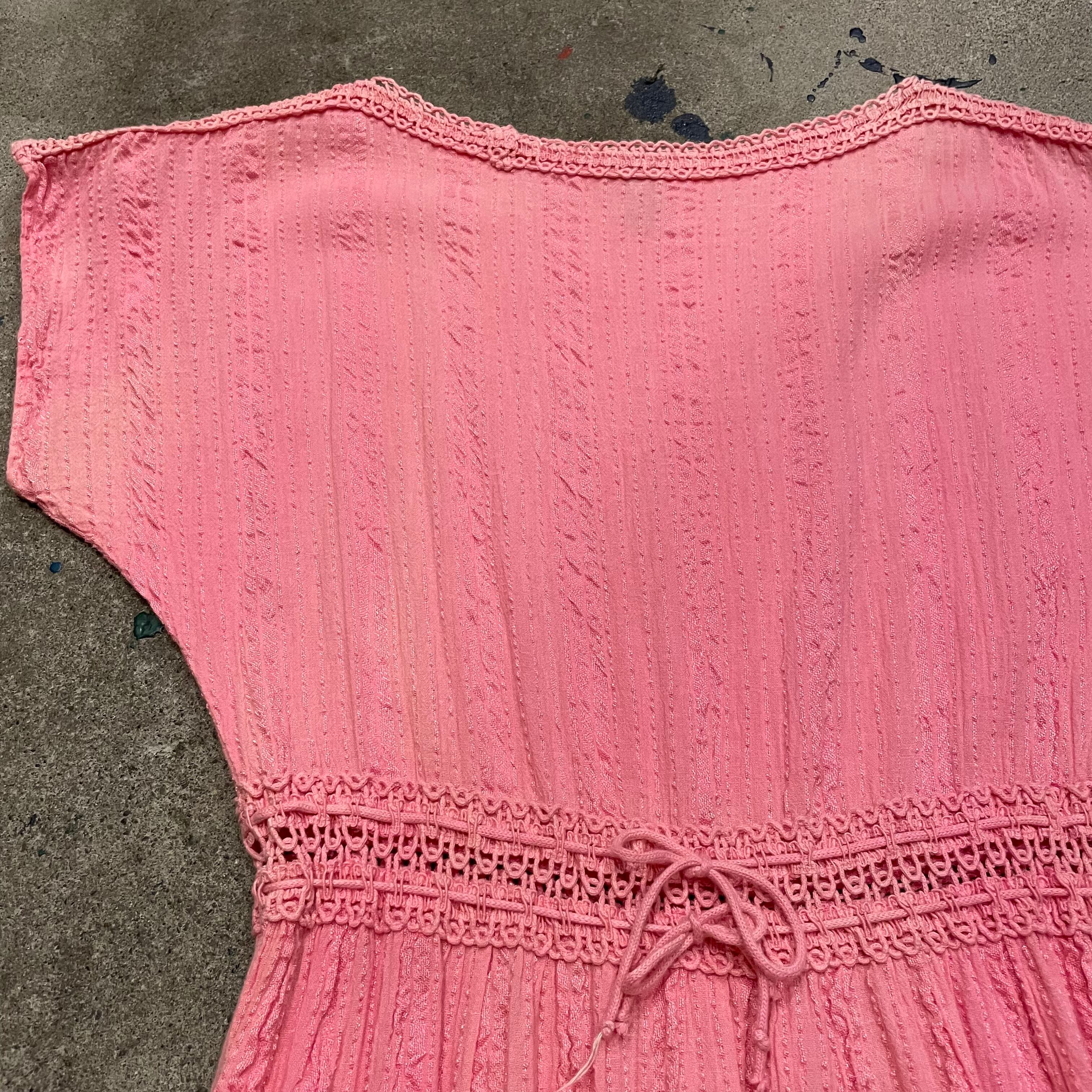 ボートネックでドルマンスリーブで素敵なシルエットです。ウエストは紐で調節可能になっていたり、ぽこぽこ凹凸のある素材だったり、シンプルなデザインですが細かいディテールがかわいいです。