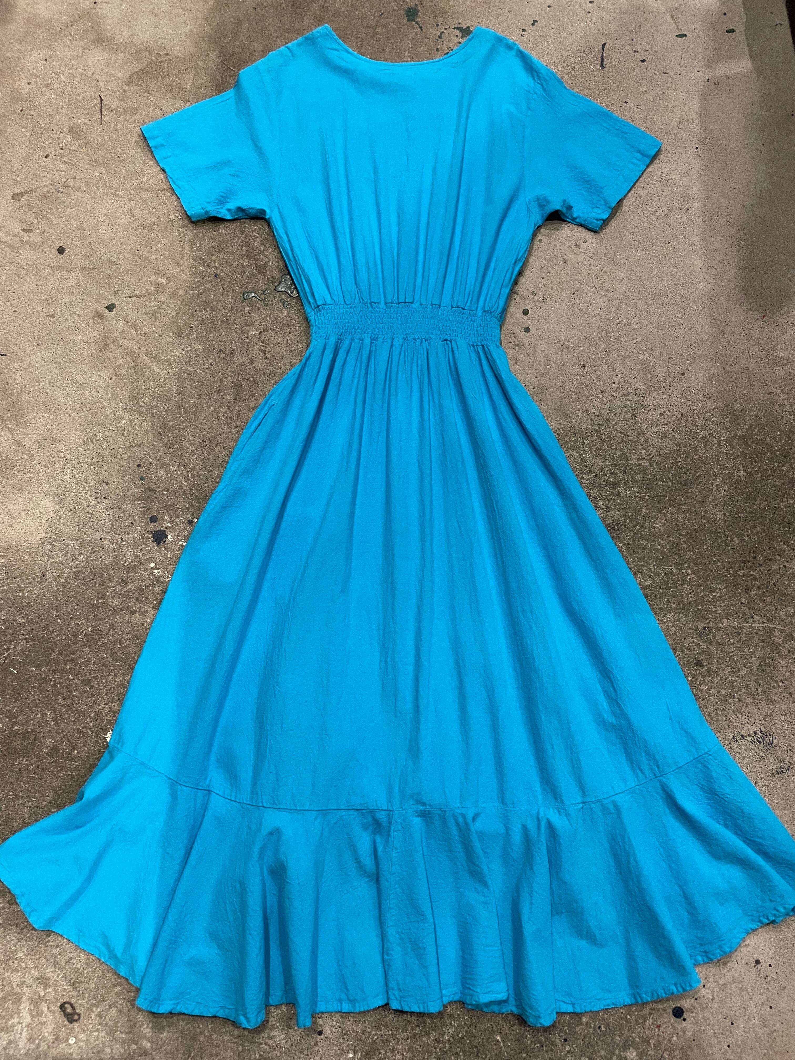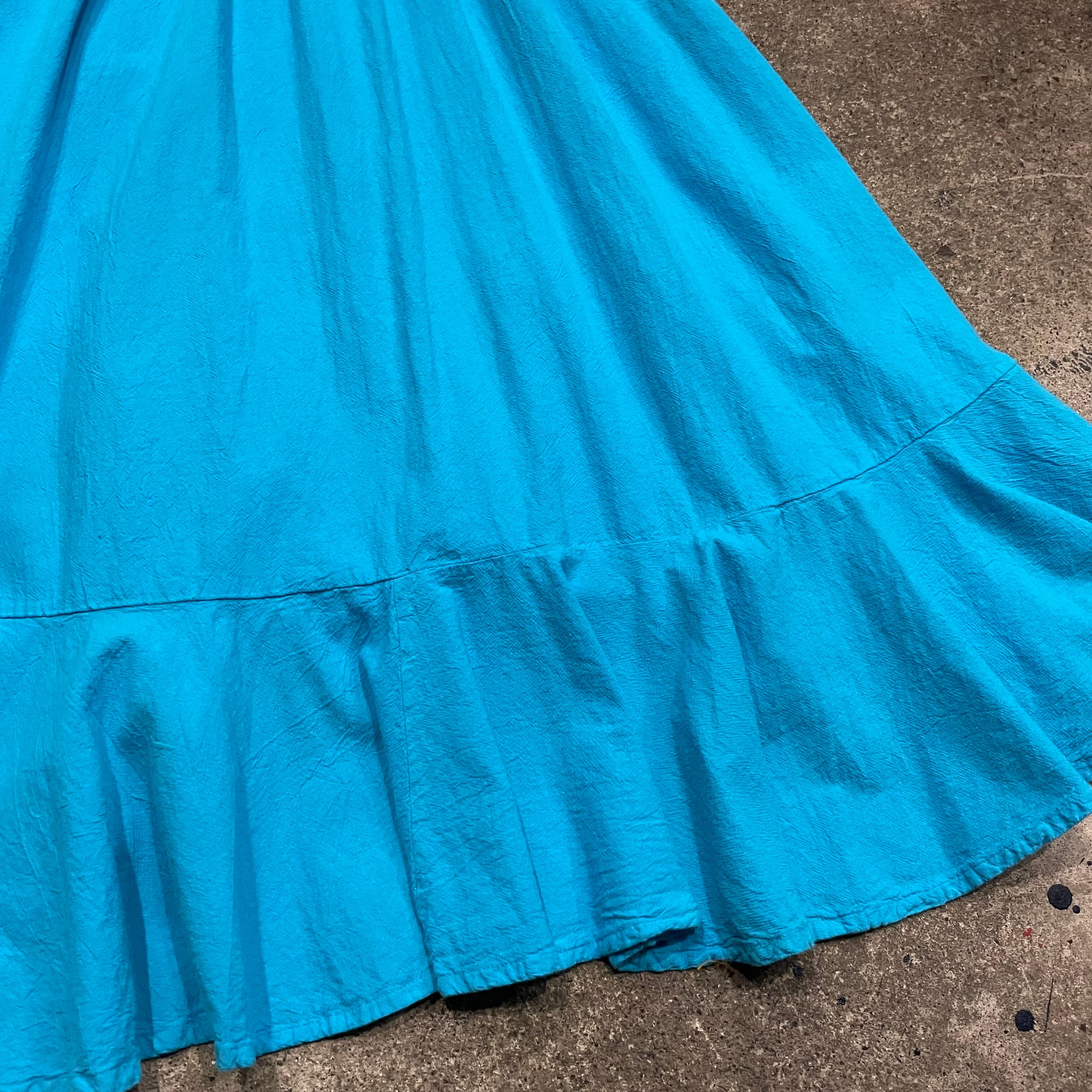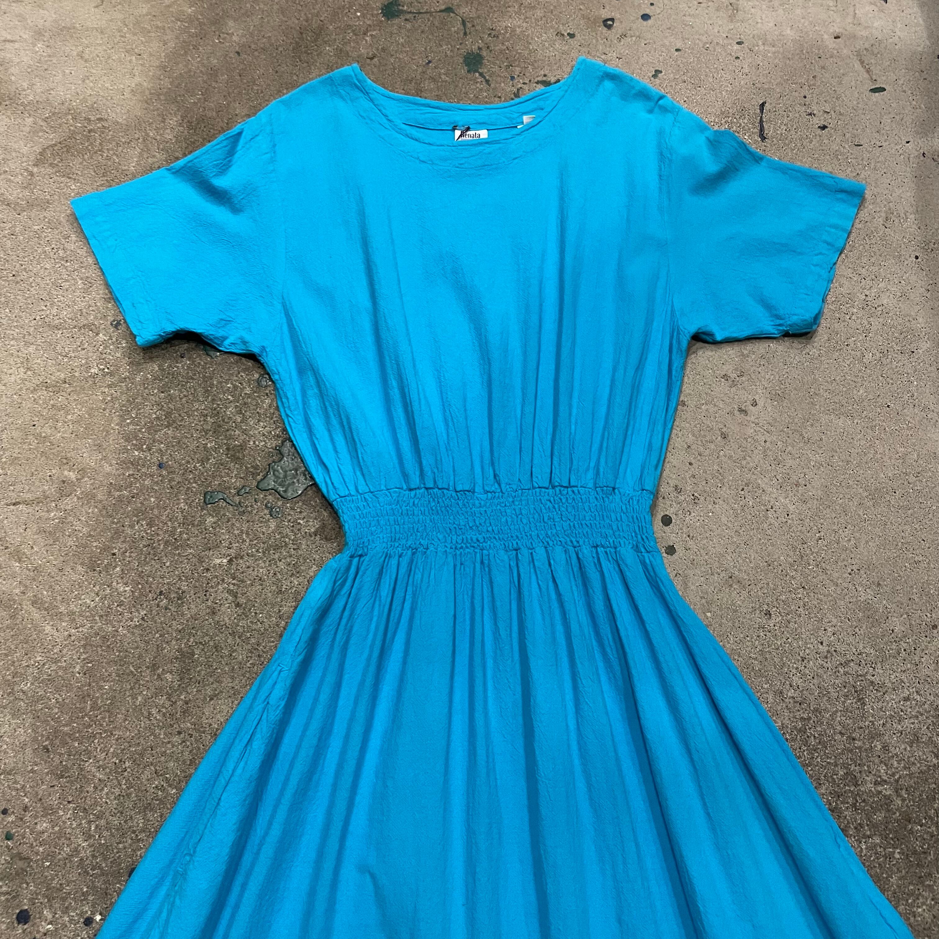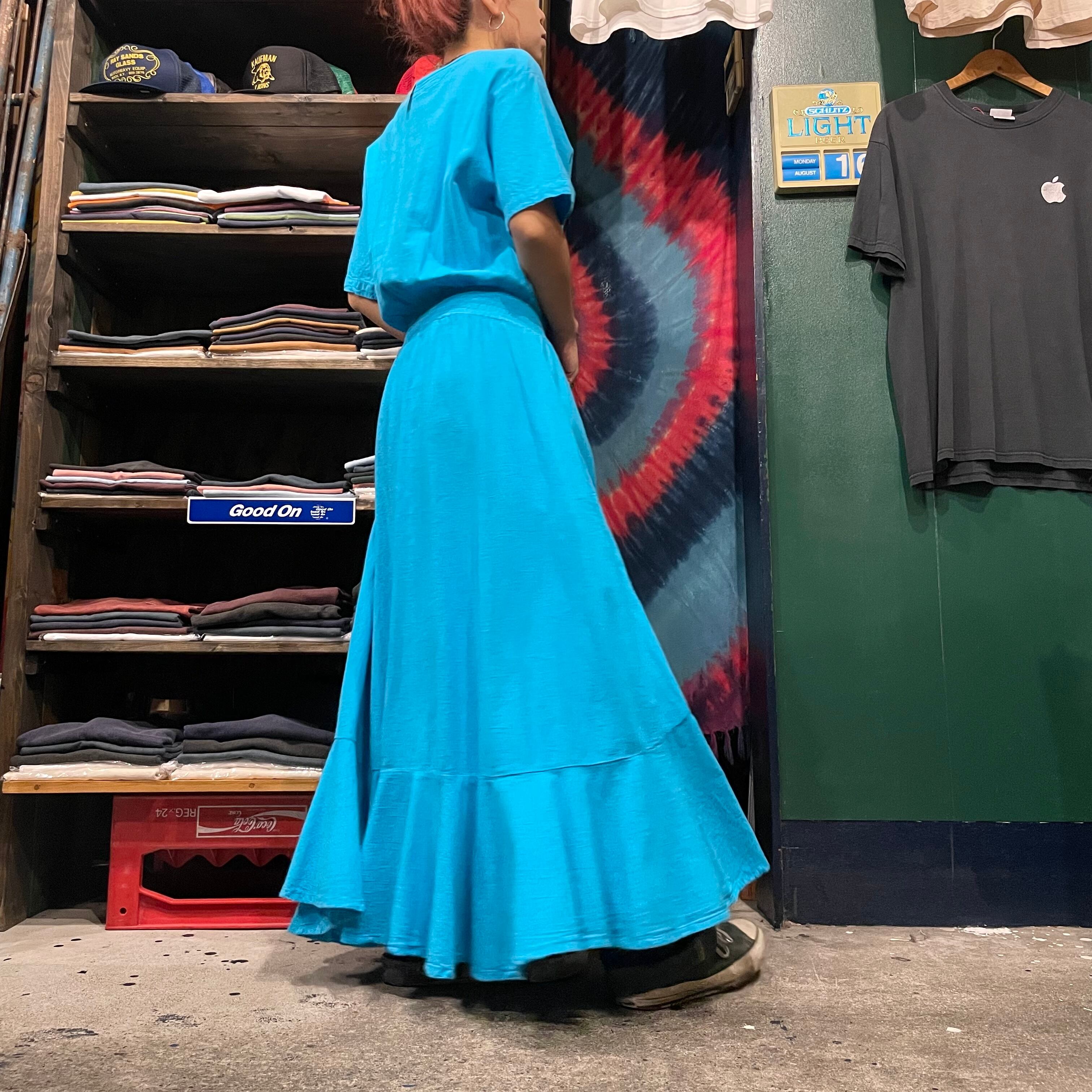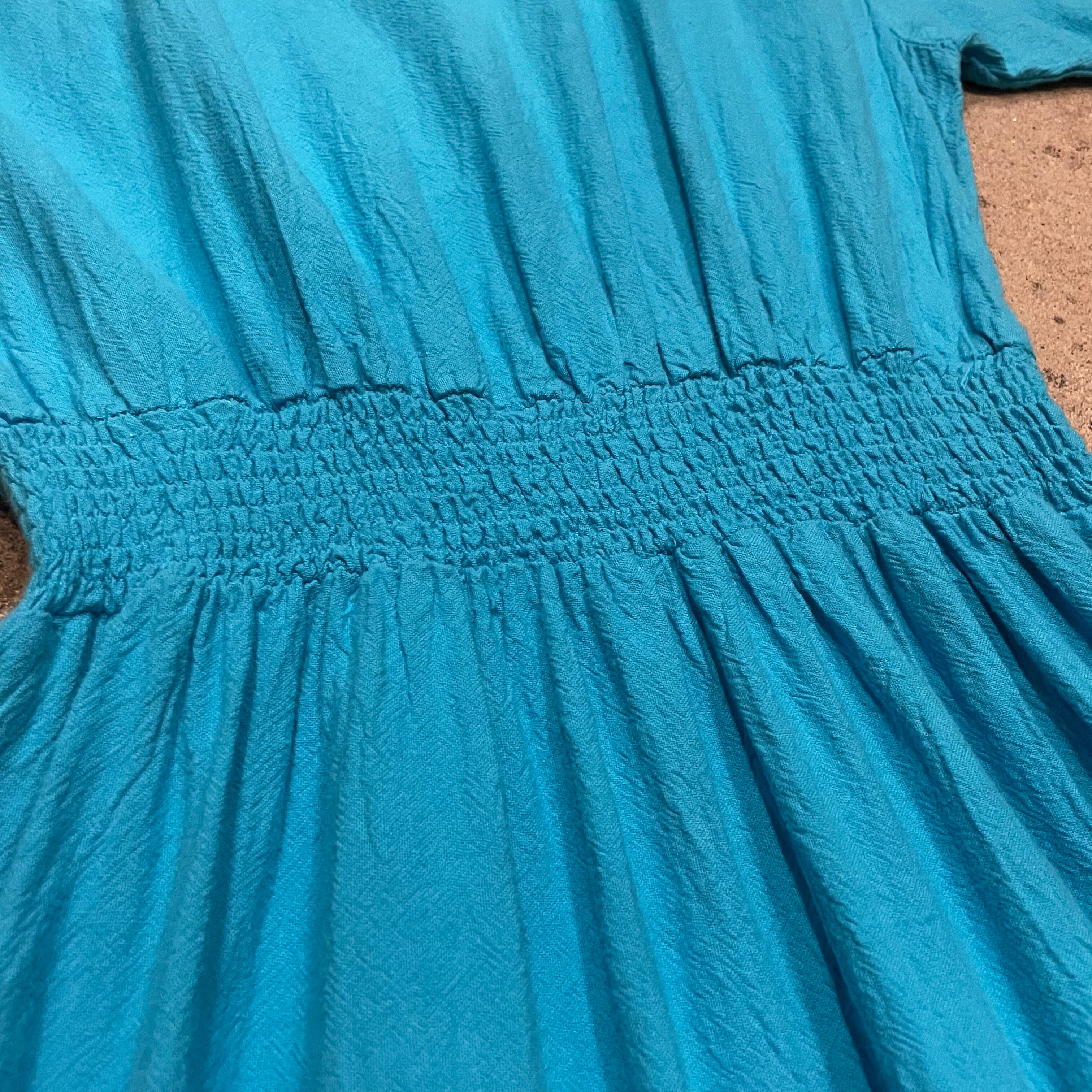 裾が前は短く、後ろは長くなっていてボリュームのあるフレアがかわいいデザインです。ウエストはシャーリングになっていてブラウジングのように着ていただけますし、メリハリがあって素敵な一着です。