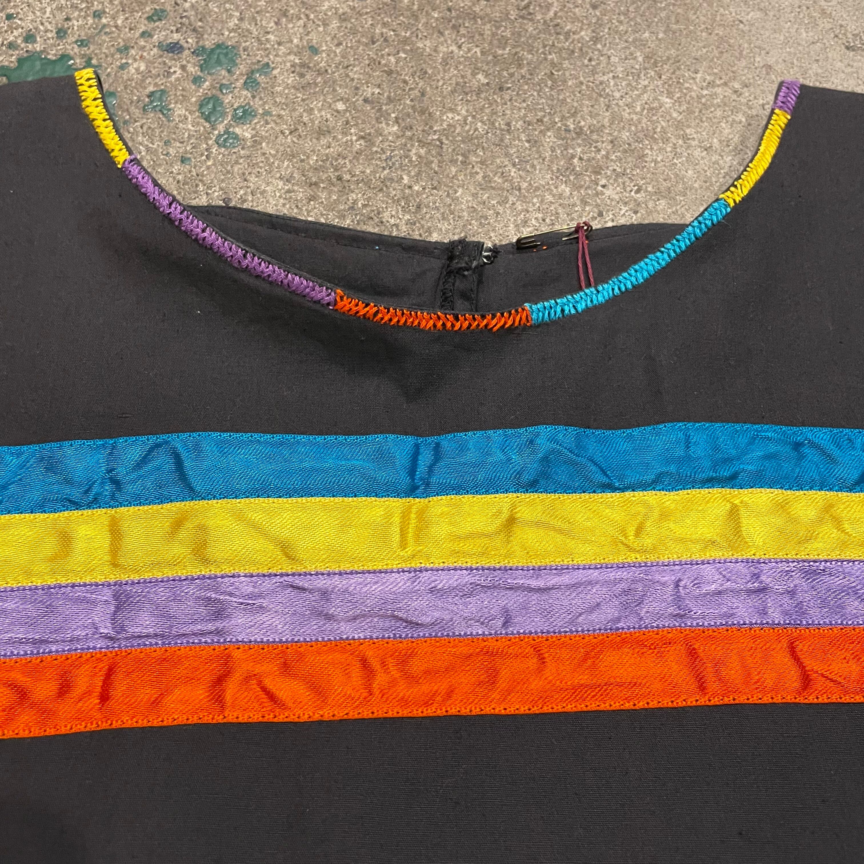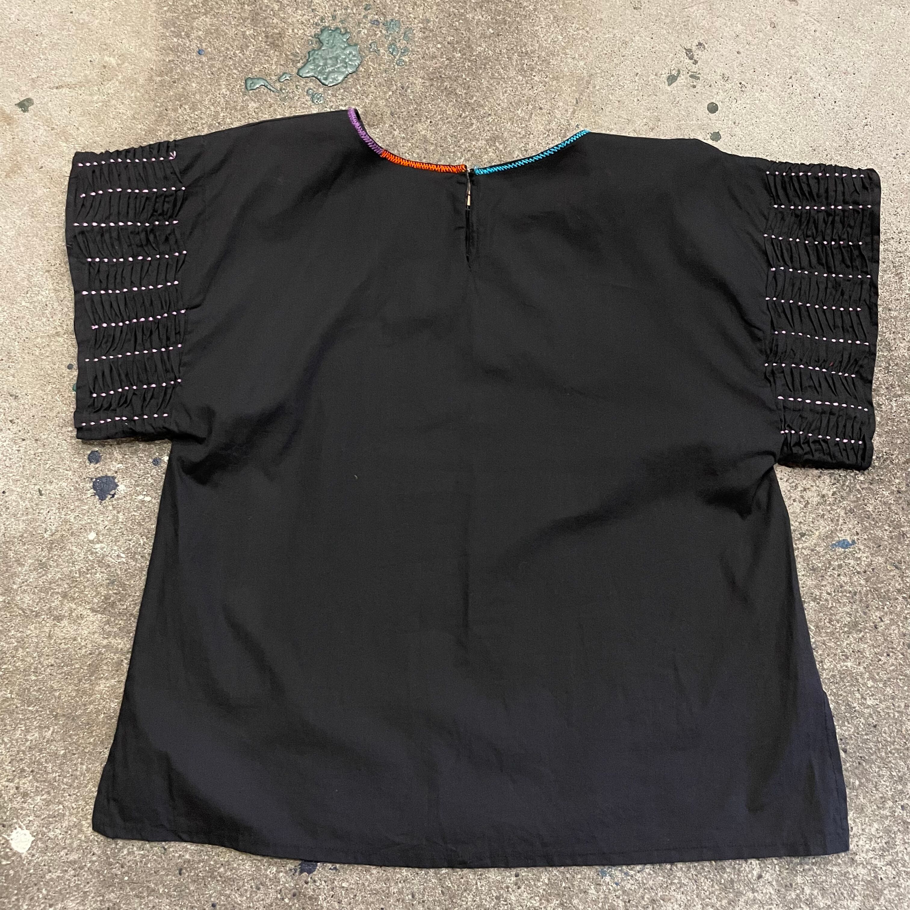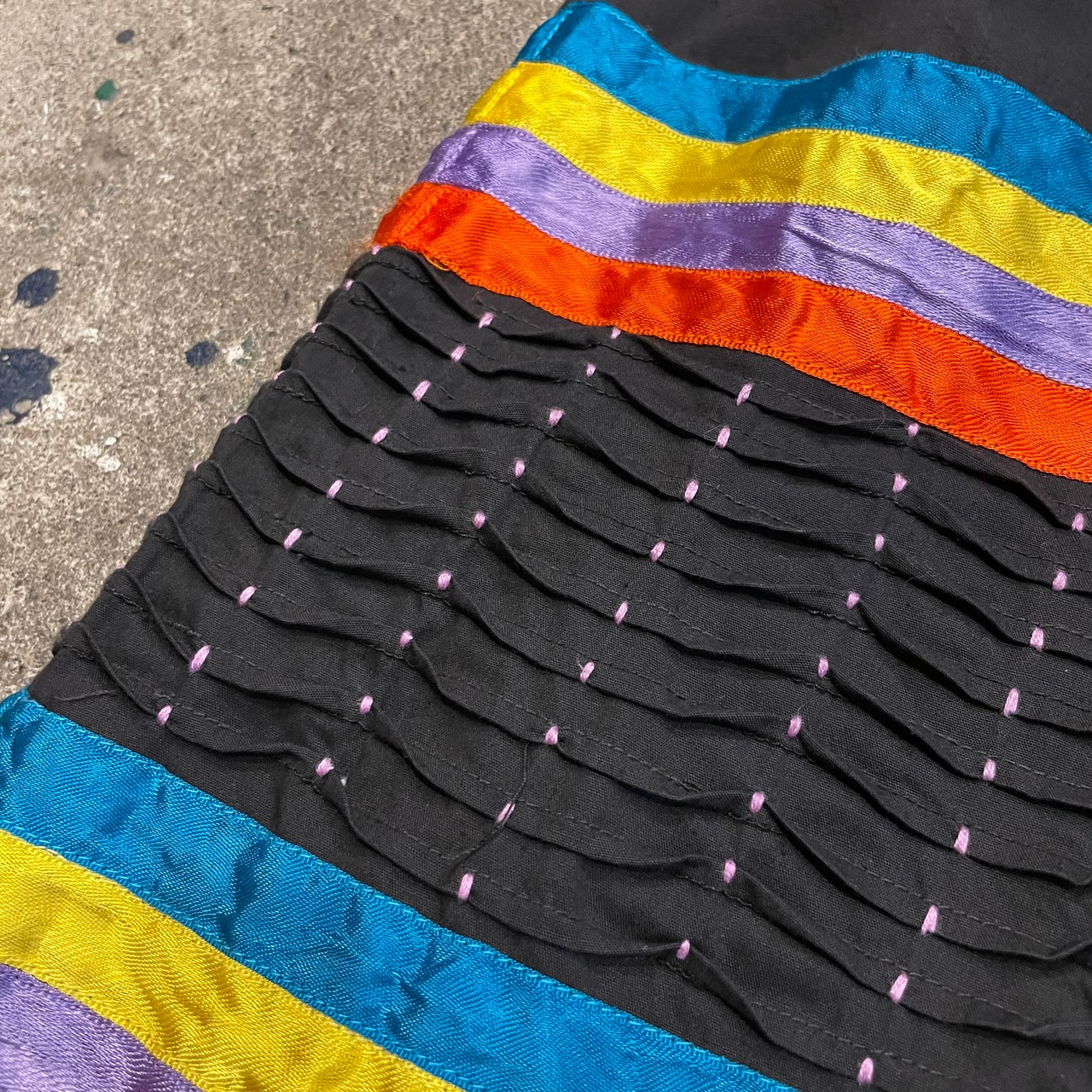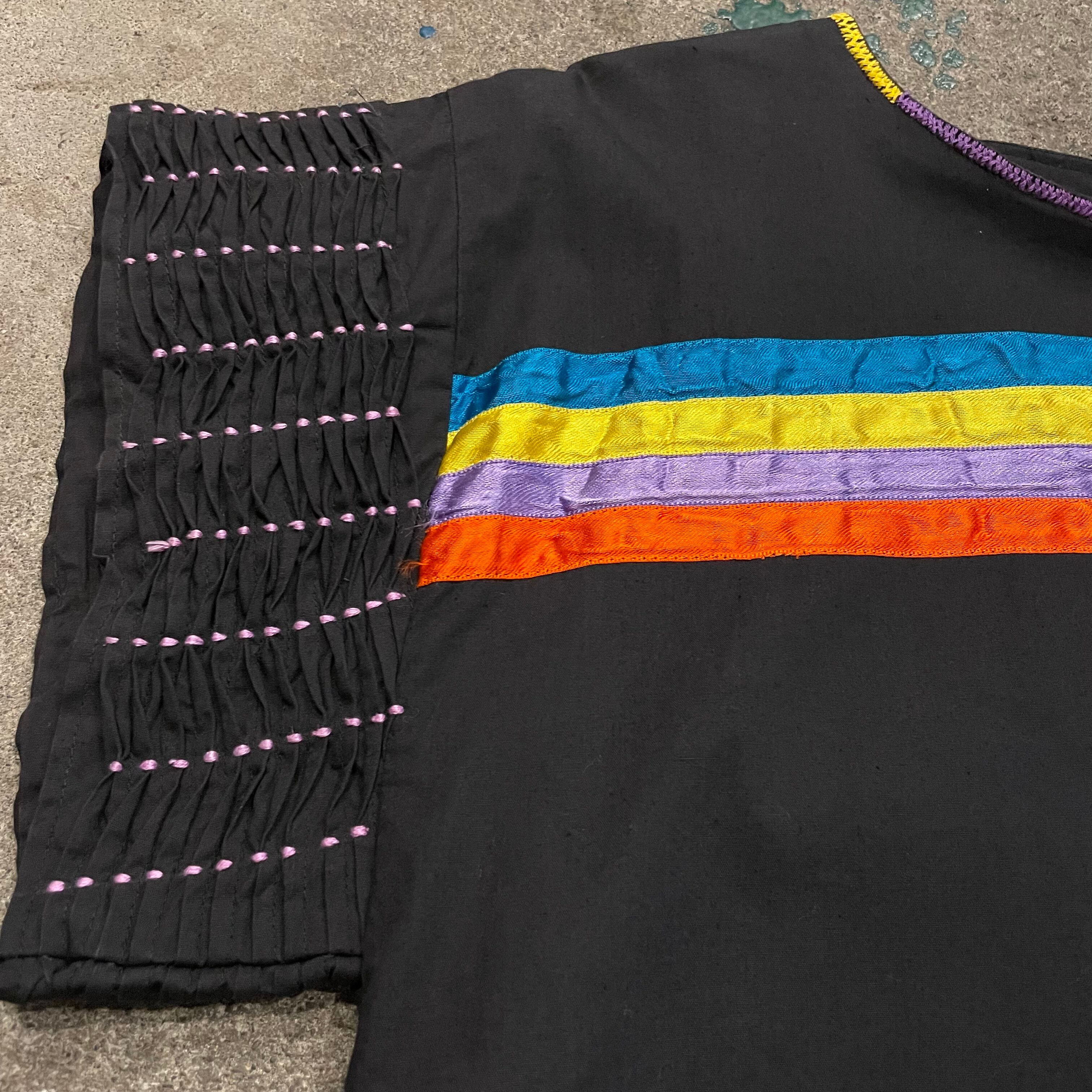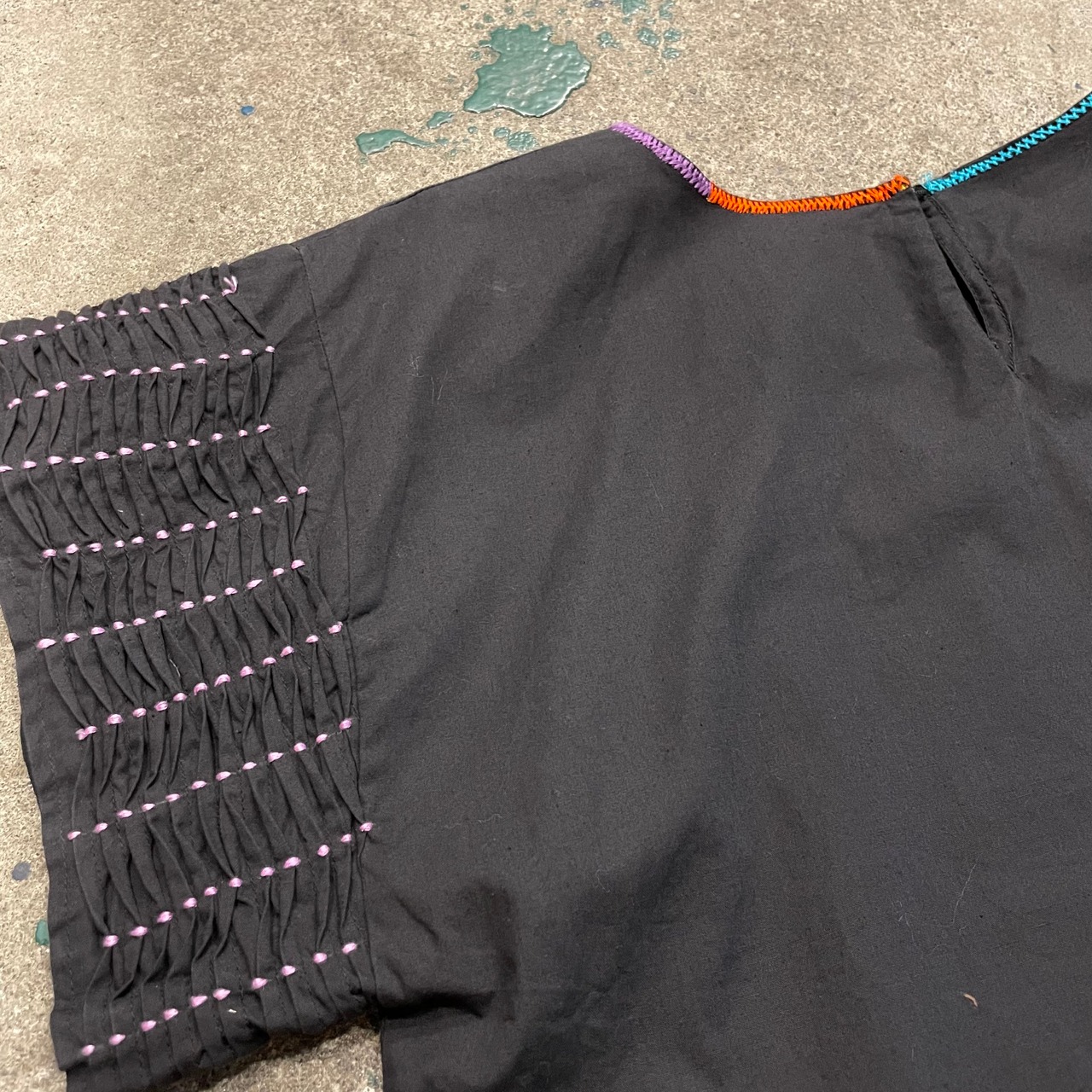 黒地に映えるサテンテープやピンタック、刺繍など装飾がかわいいセットアップです。