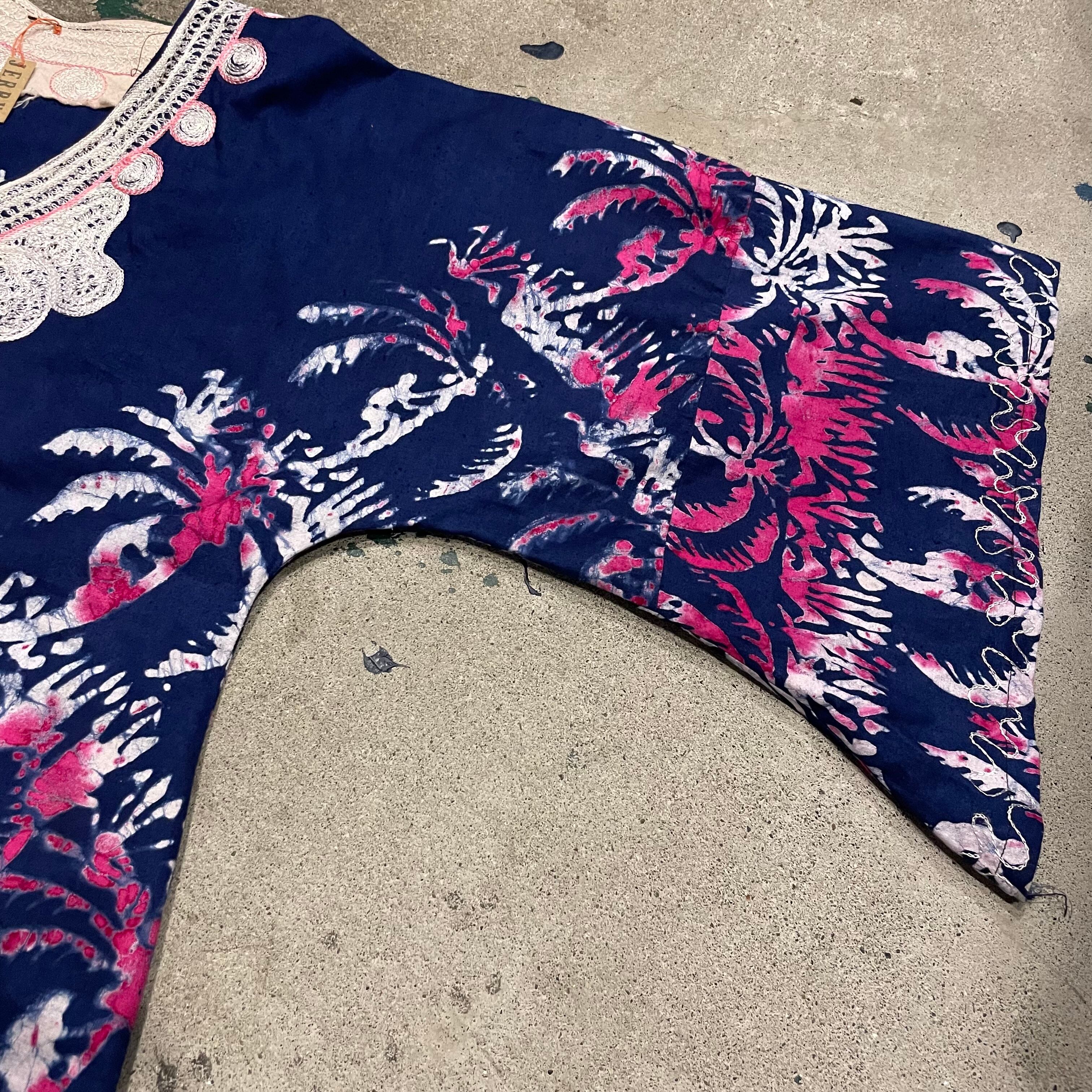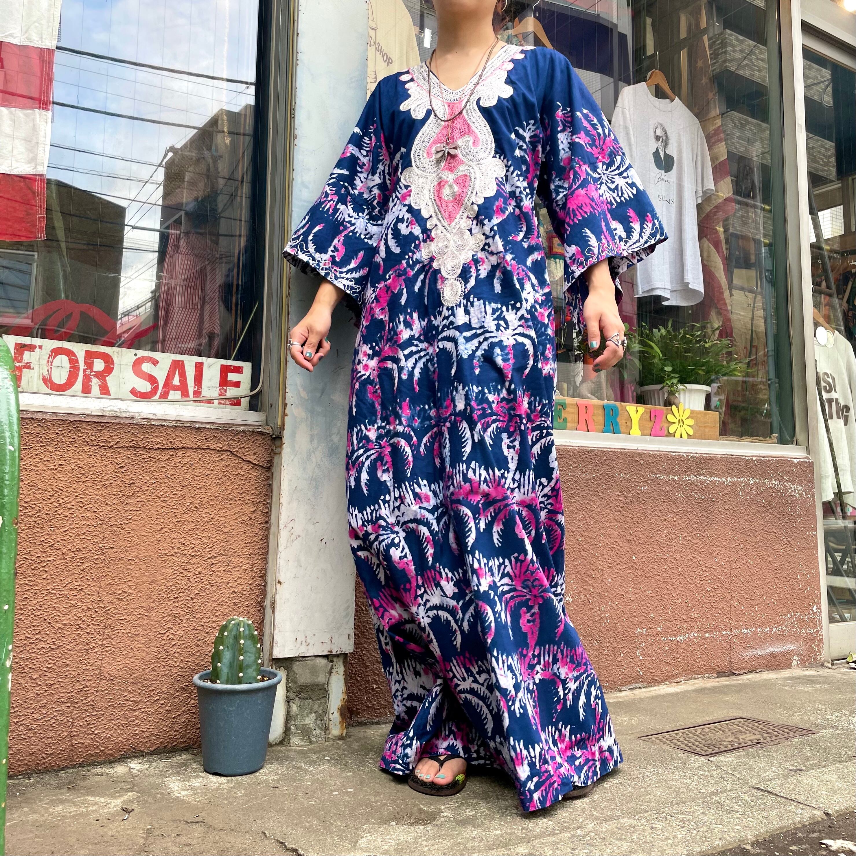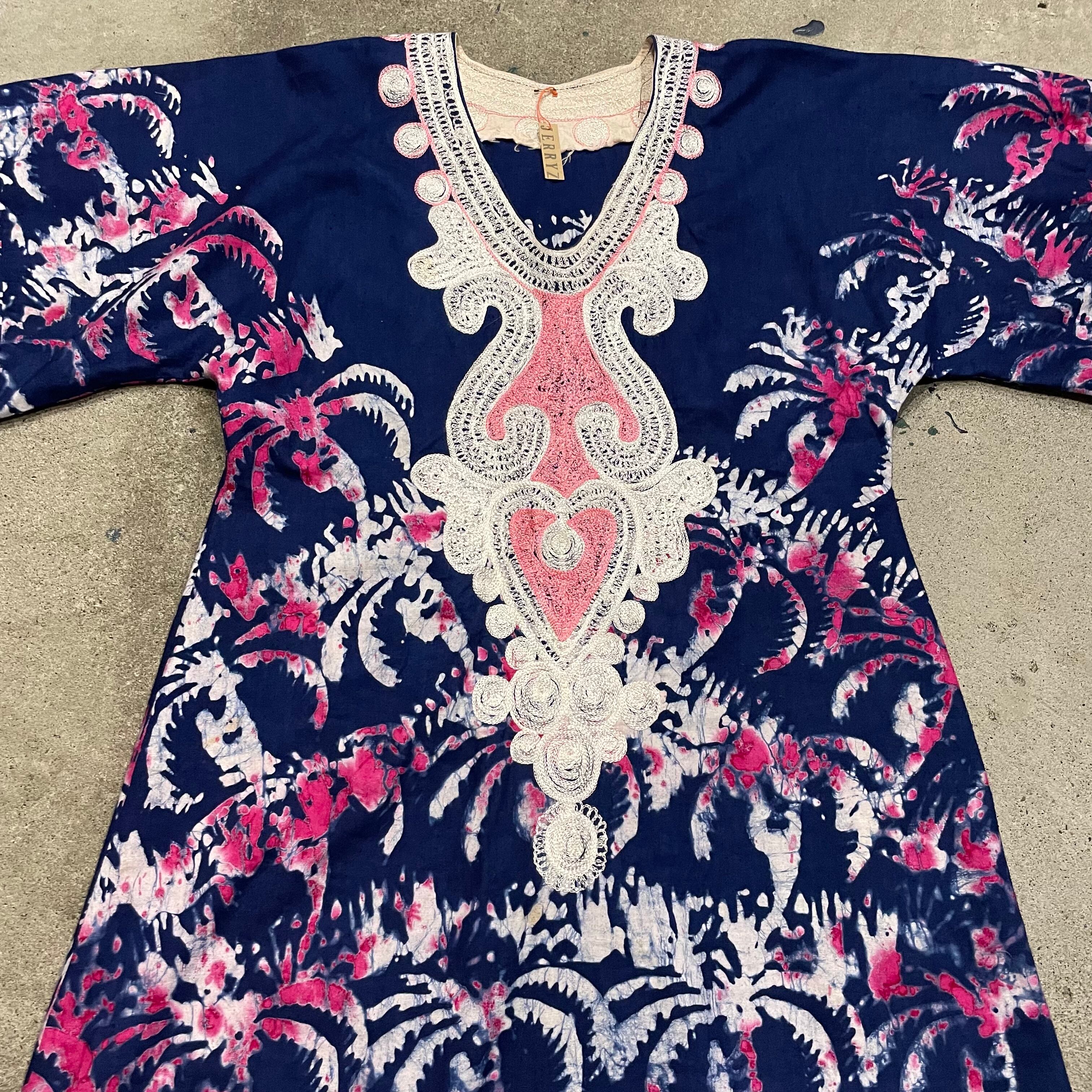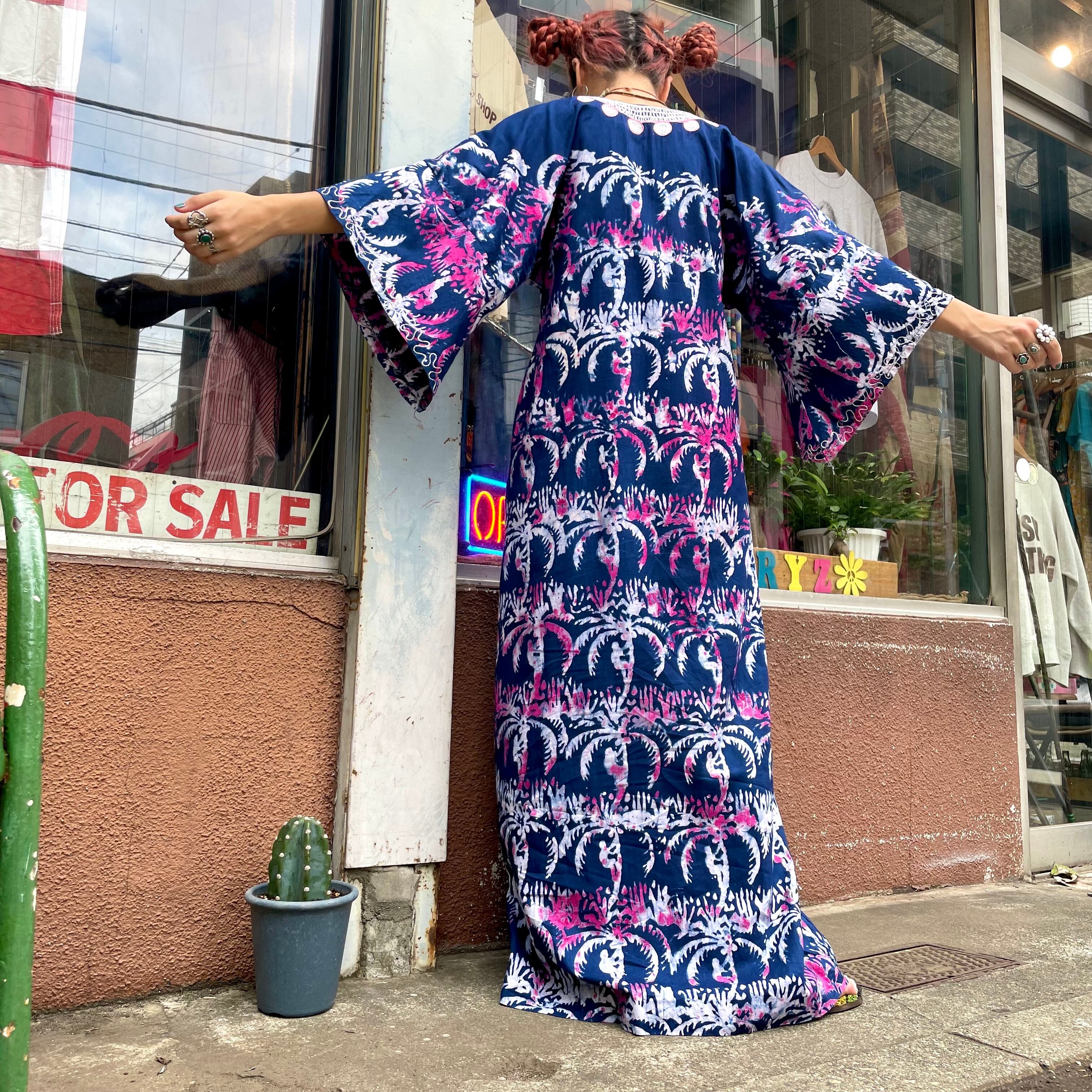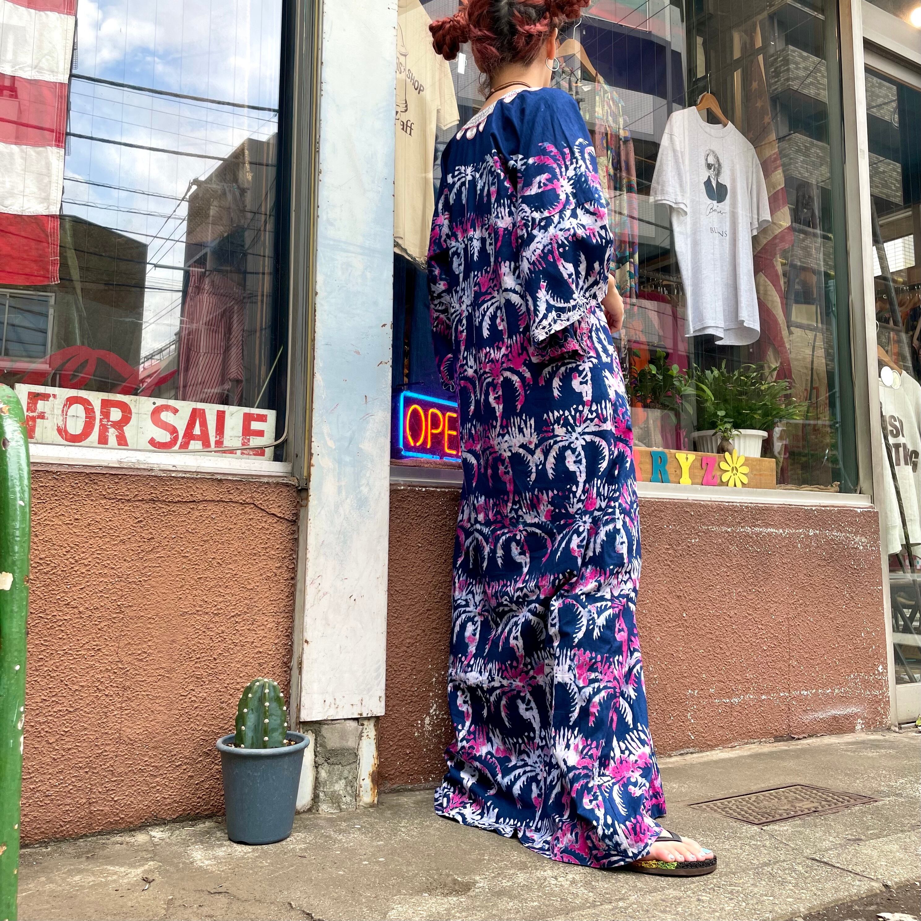 ろうけつ染めのような、タイダイのような不思議な模様が素敵なワンピースです。