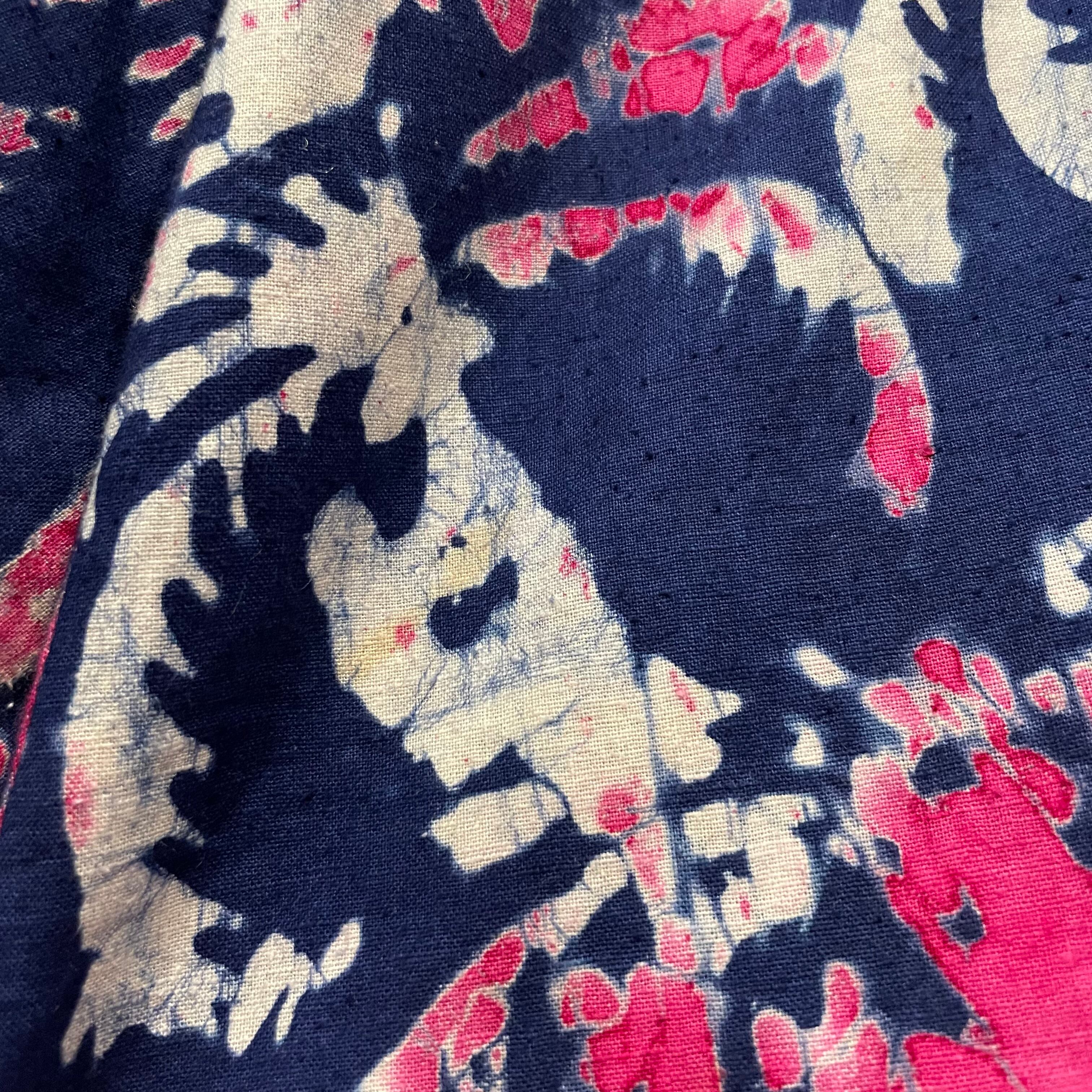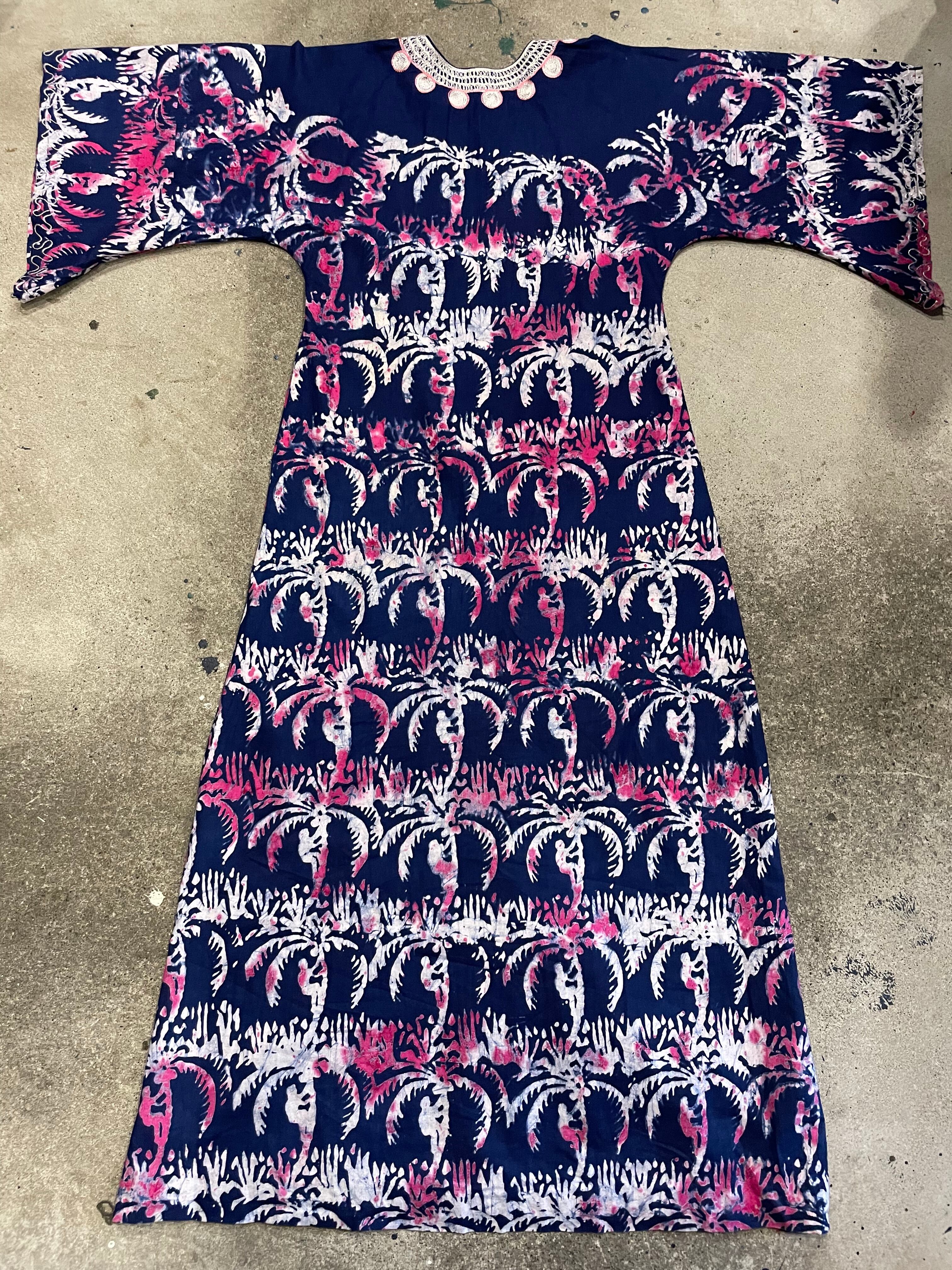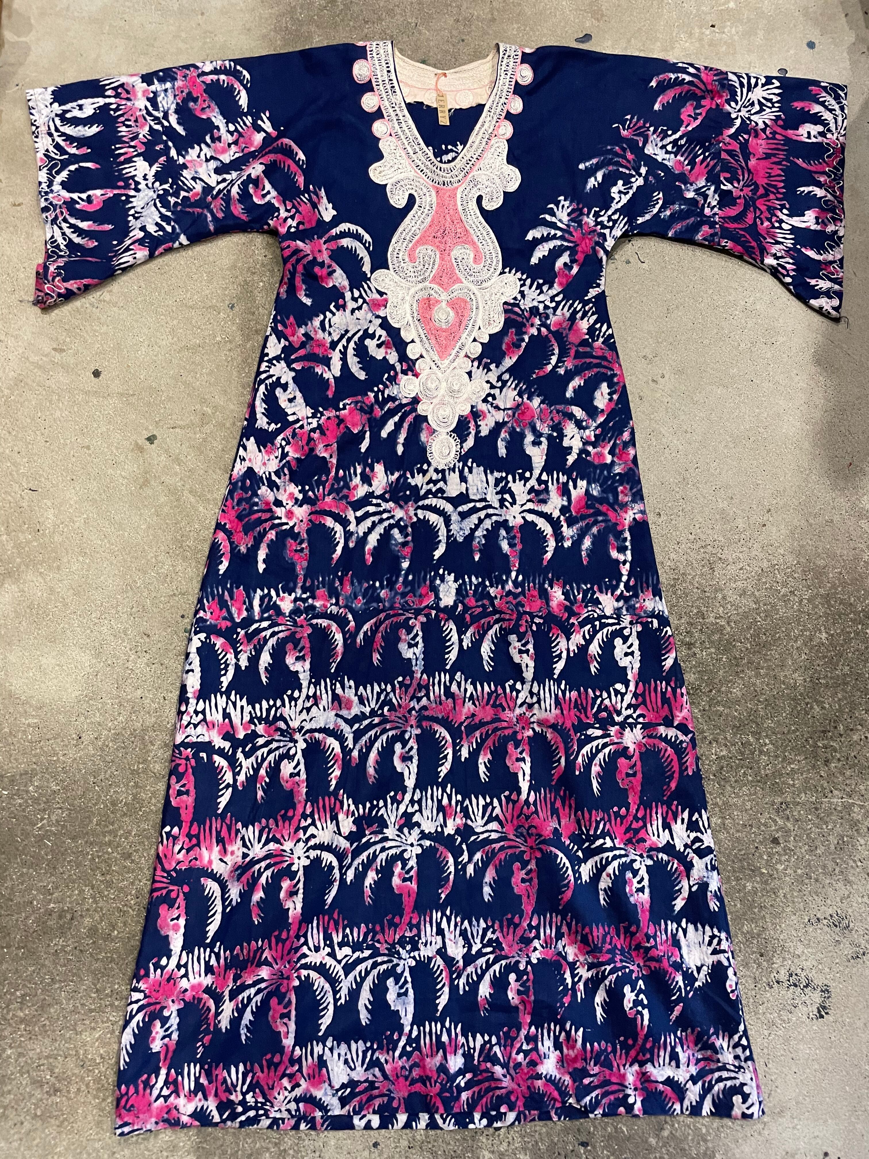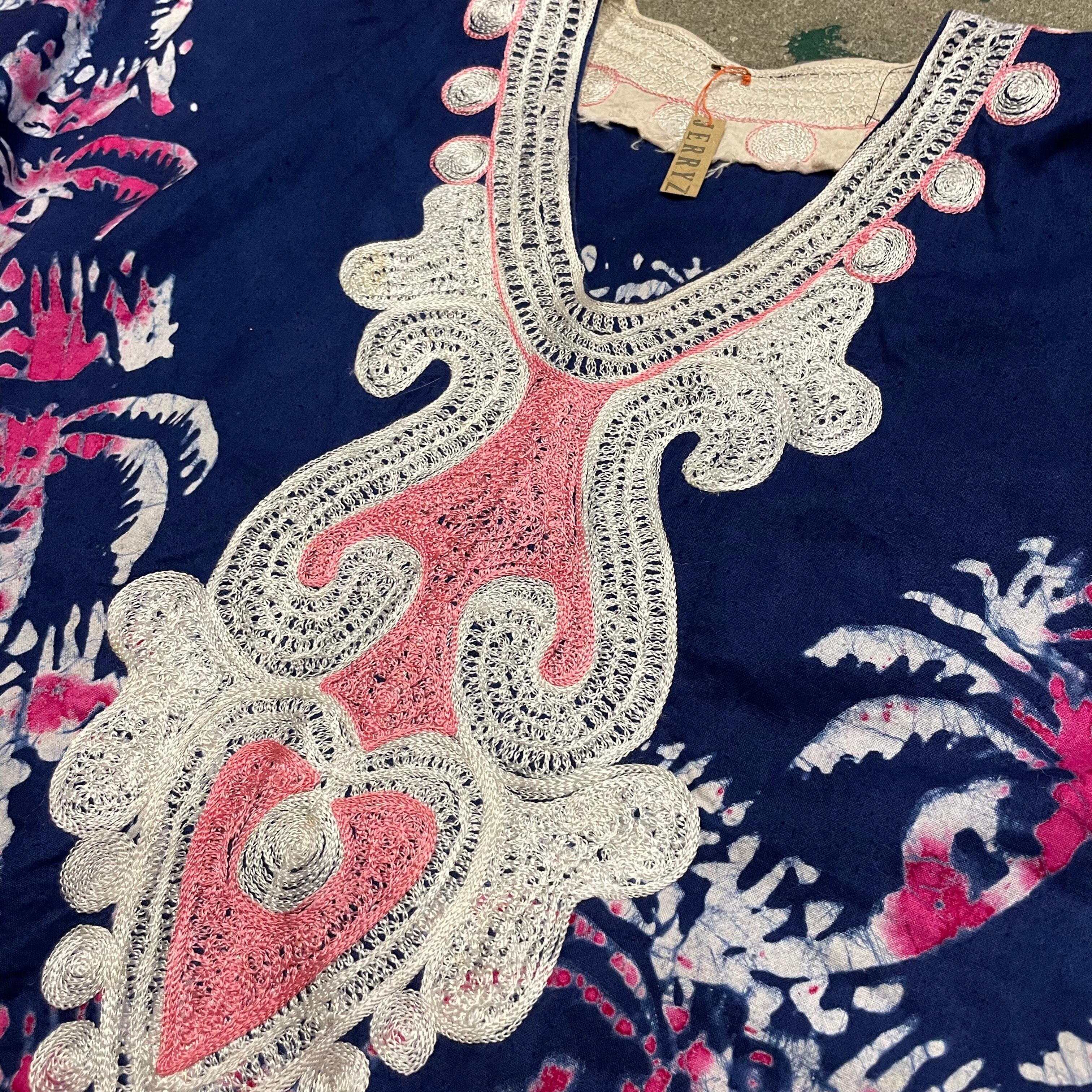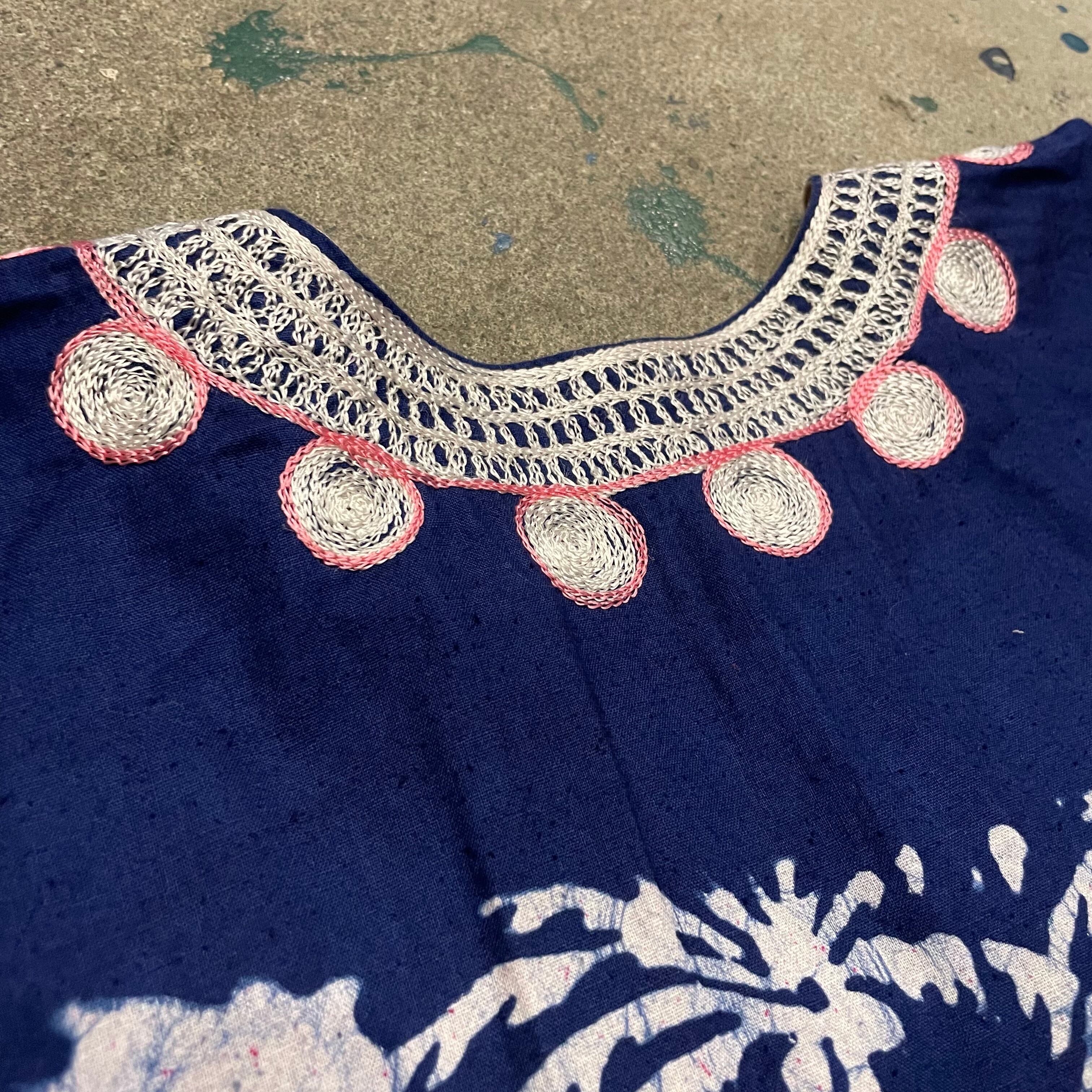 ろうけつ染めのような、タイダイのような不思議な模様が素敵なワンピースです。