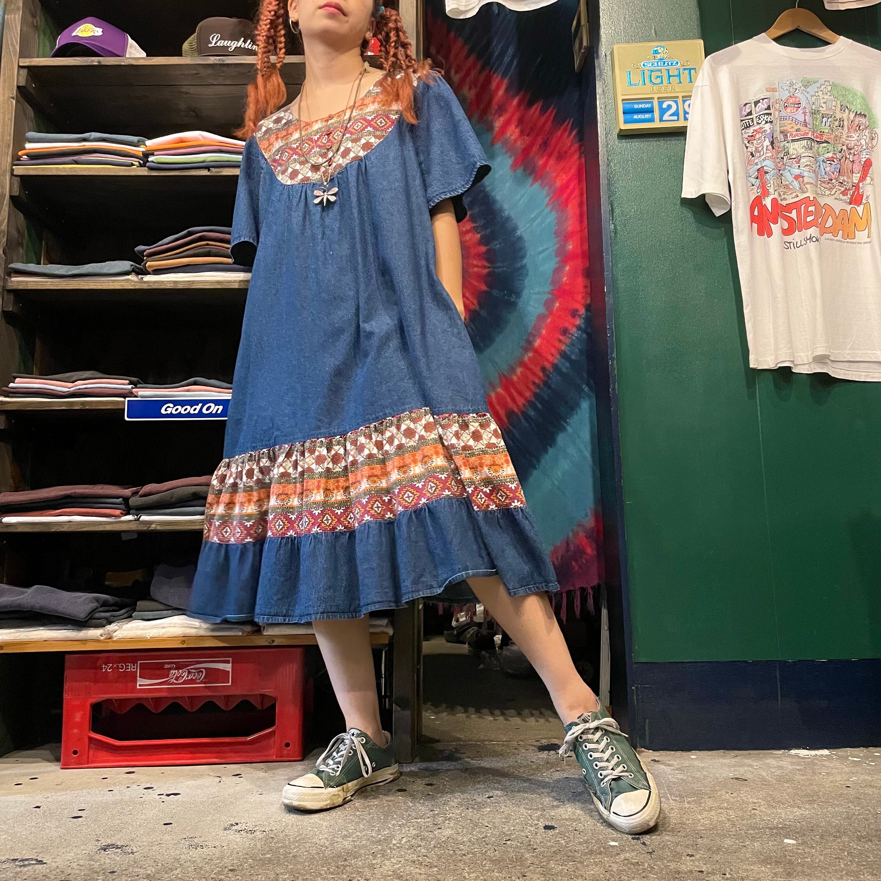 denim switching dress